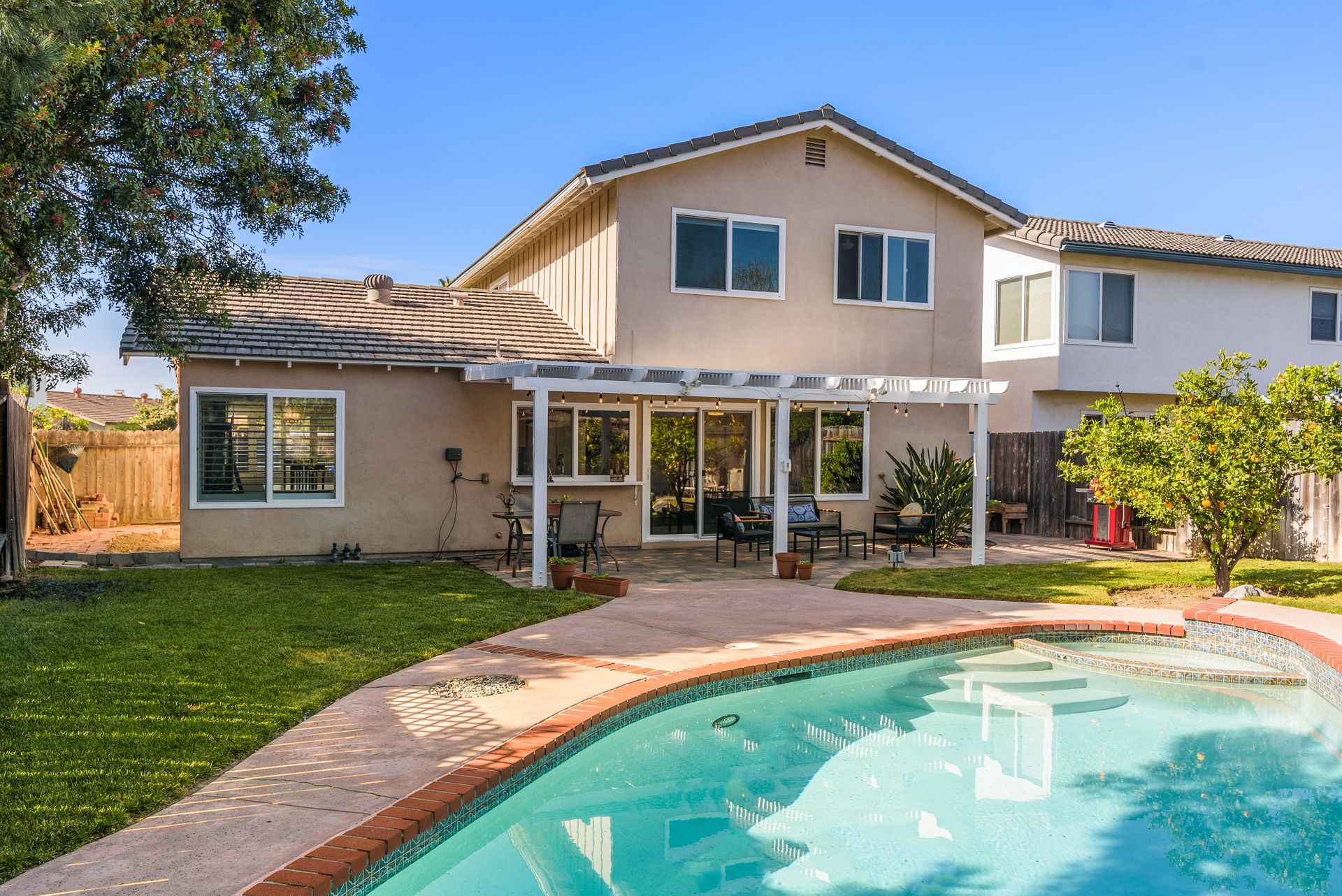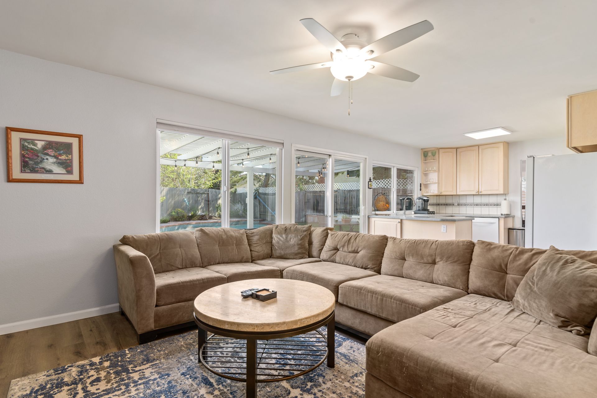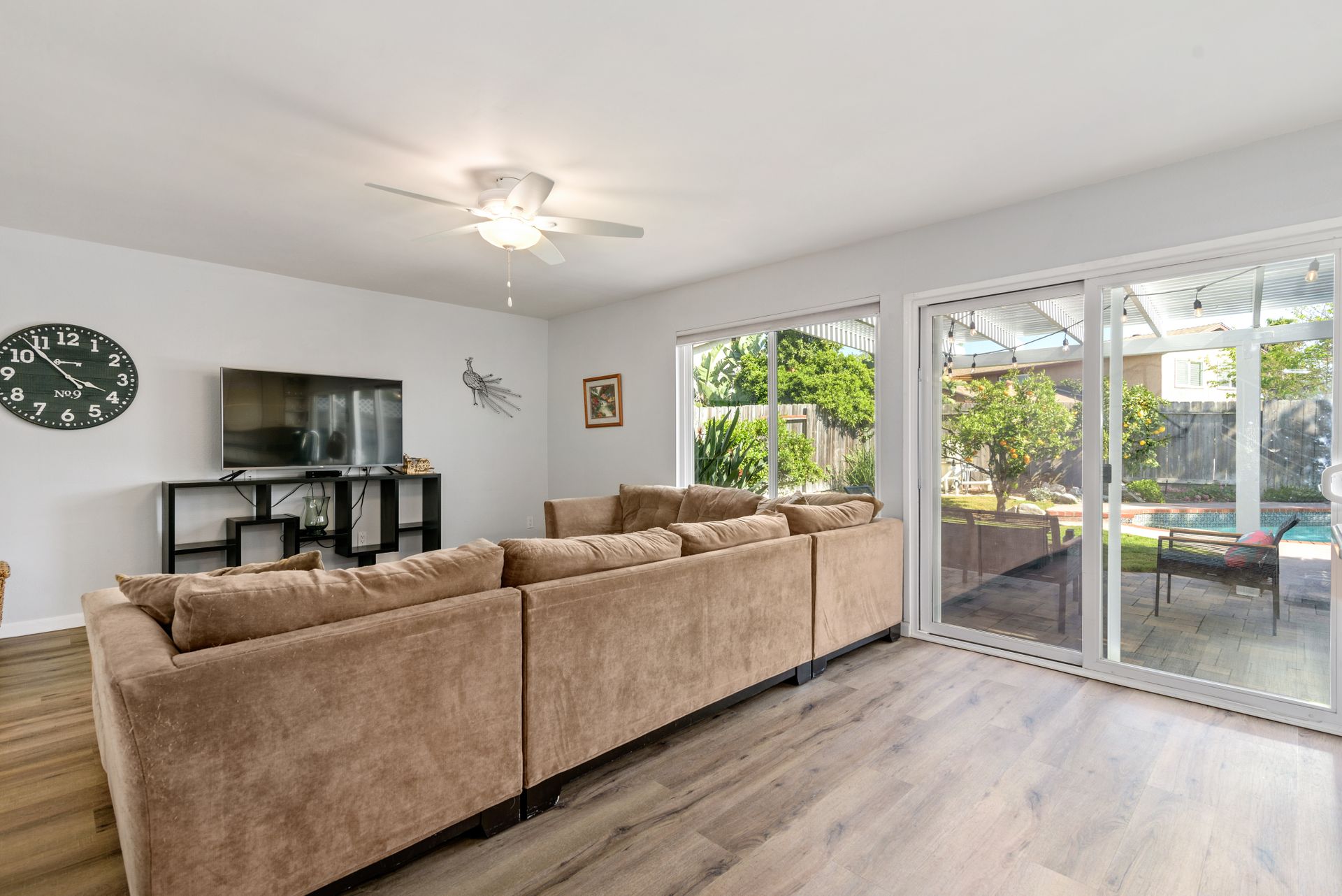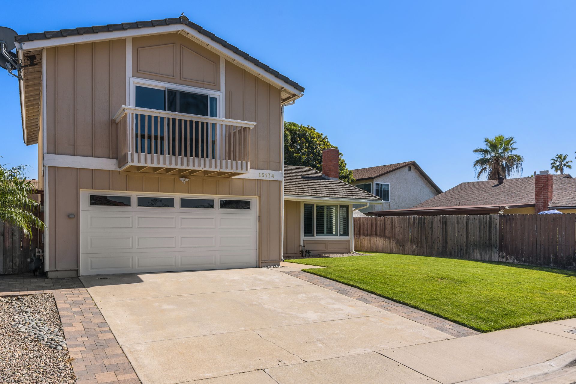This is a charming two-story home in Rancho Penasquitos on a serene street with no HOA. Four bedrooms are located upstairs providing extra privacy with two bathrooms, plus a half bath downstairs. Enjoy newer upgraded waterproof laminate flooring installed throughout and a freshly painted interior. The main bedroom features a balcony plus an en-suite bathroom. The kitchen opens to the family room with eye-catching views of the tranquil backyard. Plenty of windows provide sunshine and fresh breezes as home is nicely situated to capture both. Escape to the fully landscaped backyard and relax under the pergola or in the pool and spa. Located in award winning PUSD and a short distance to Rolling Hills Elementary.