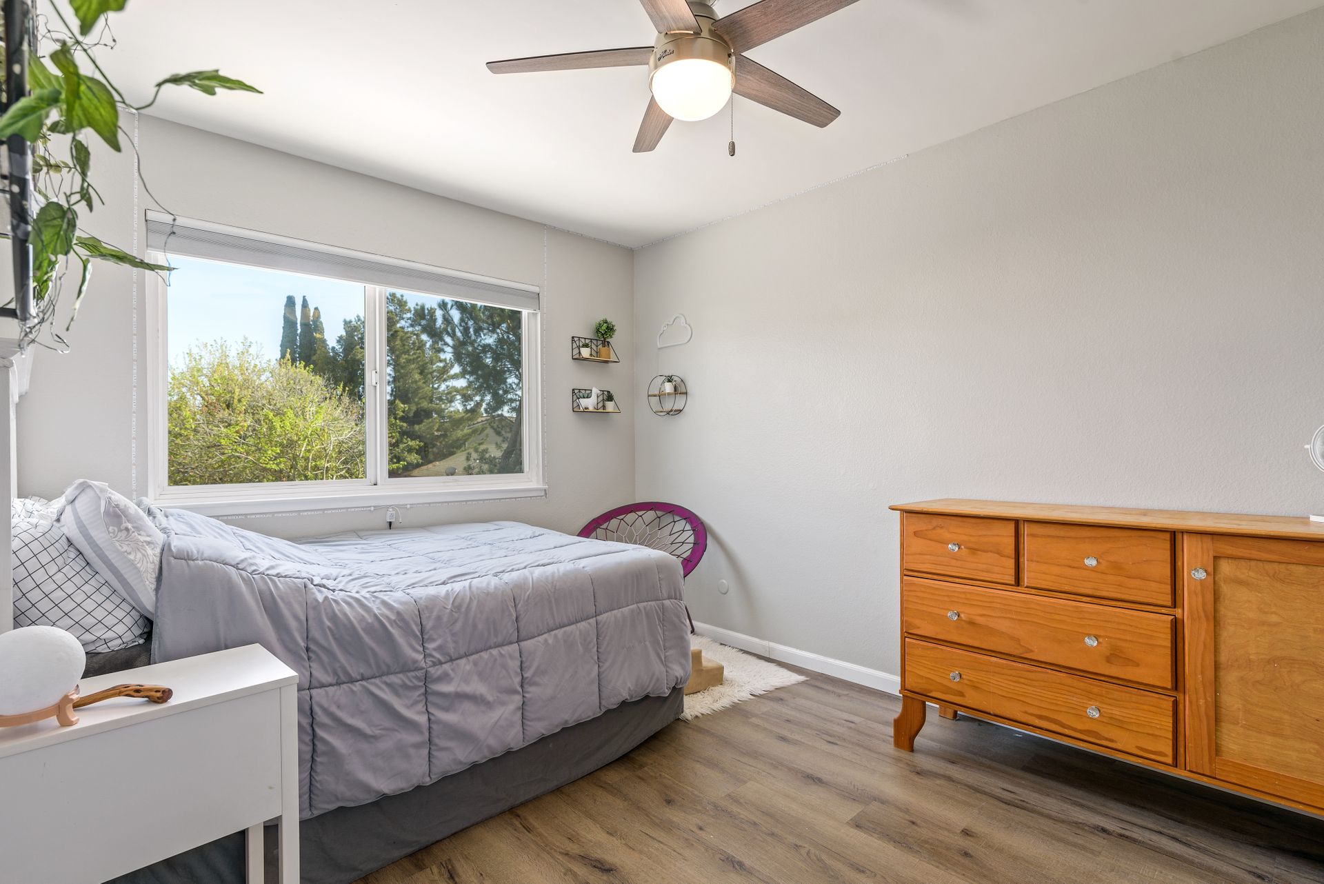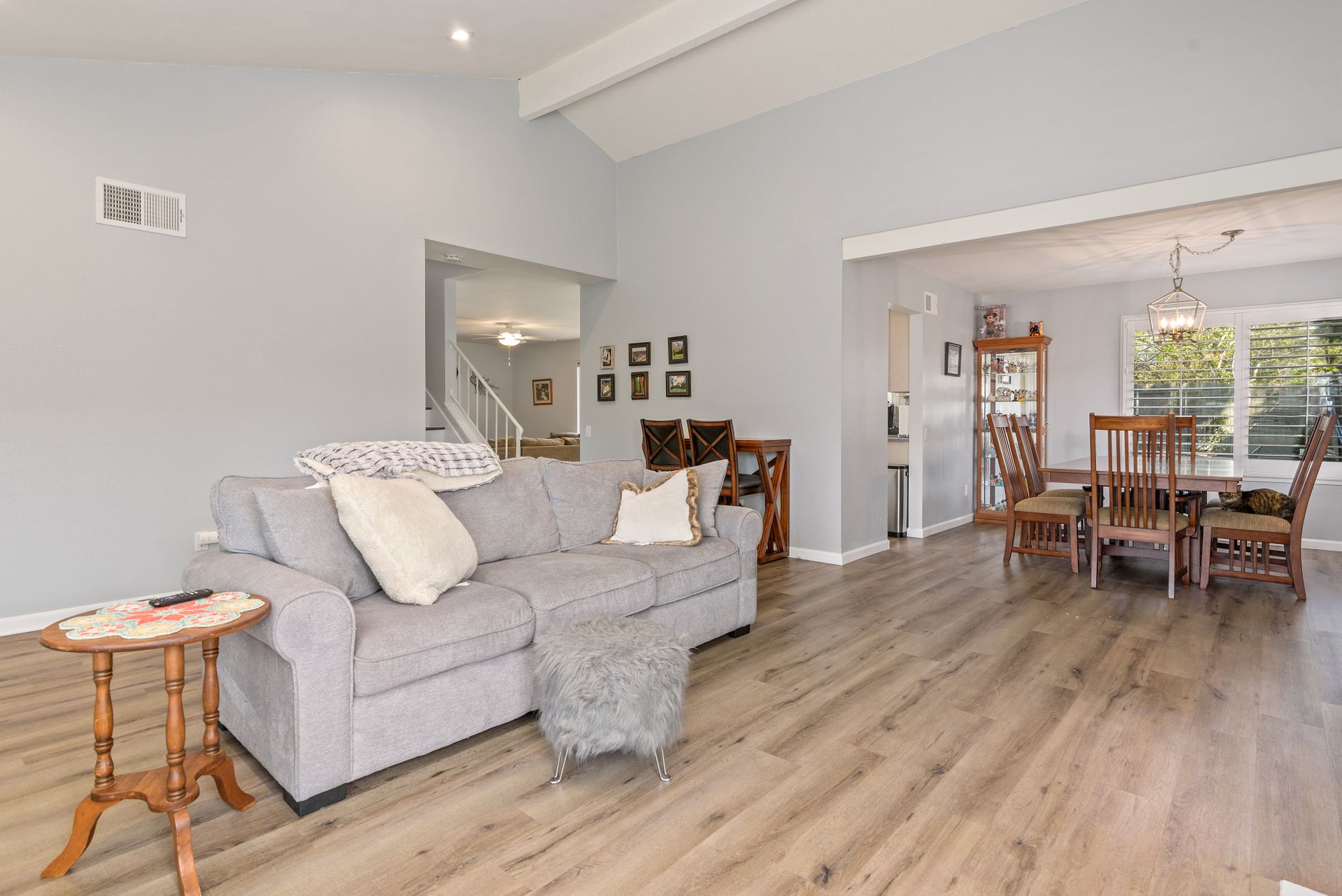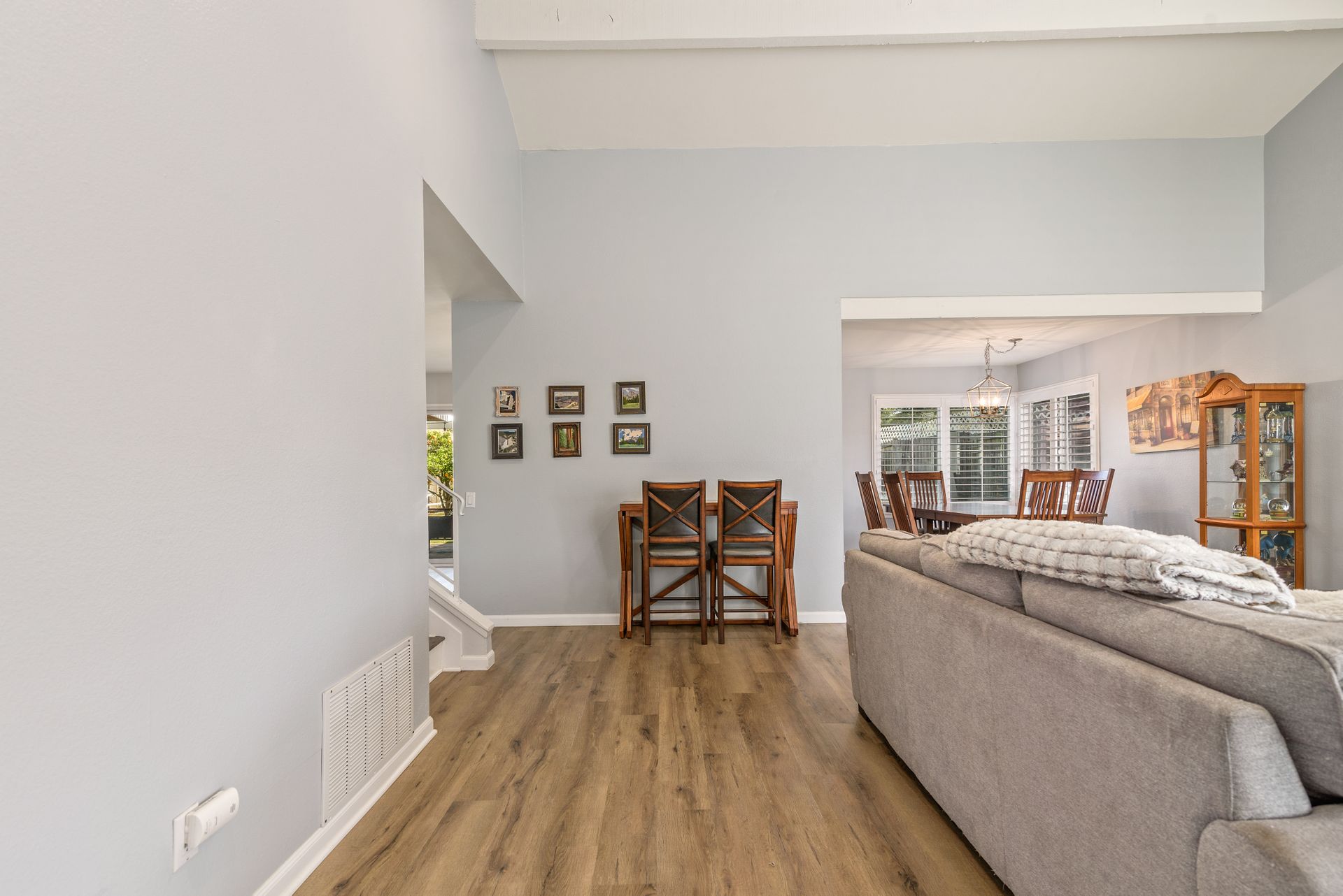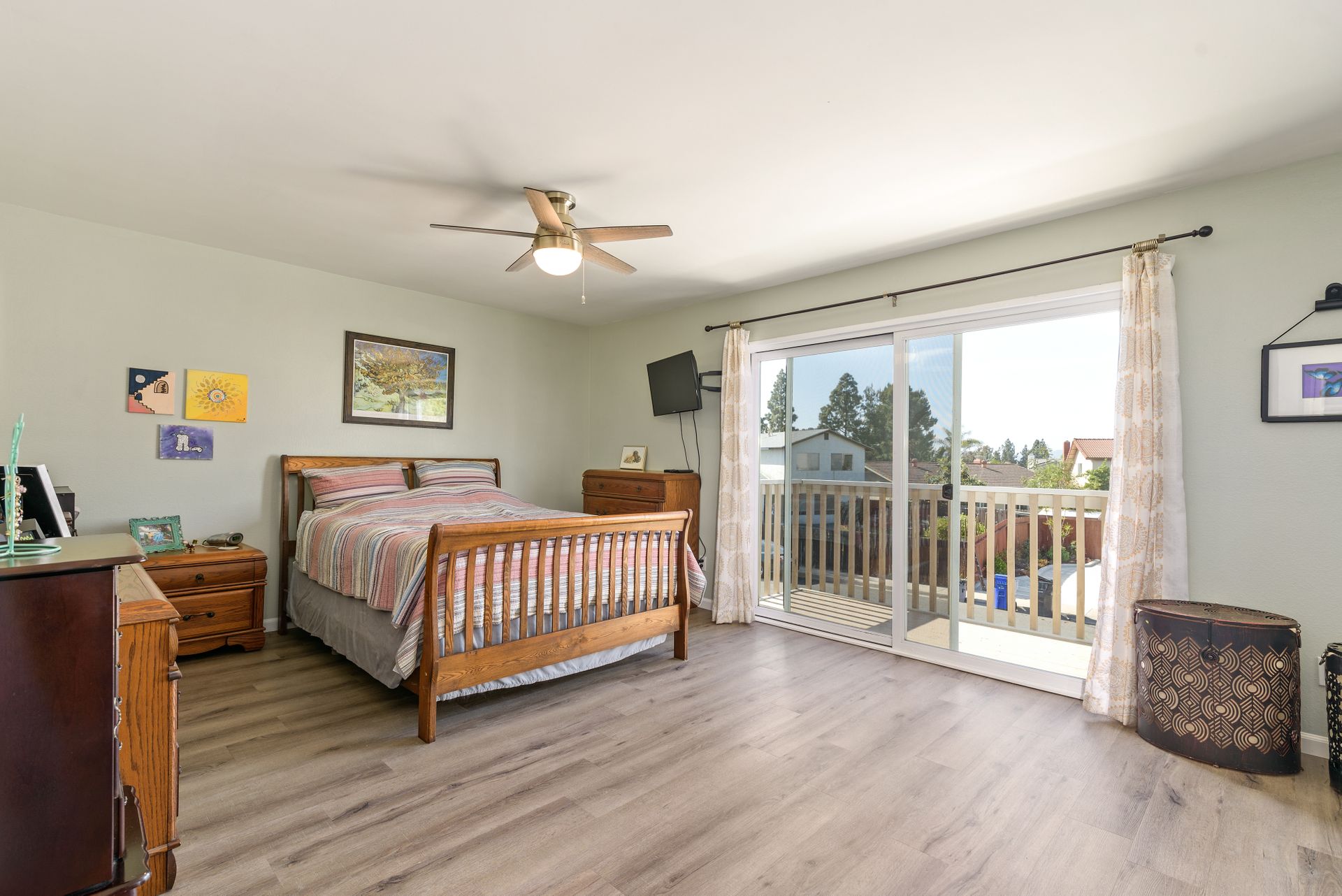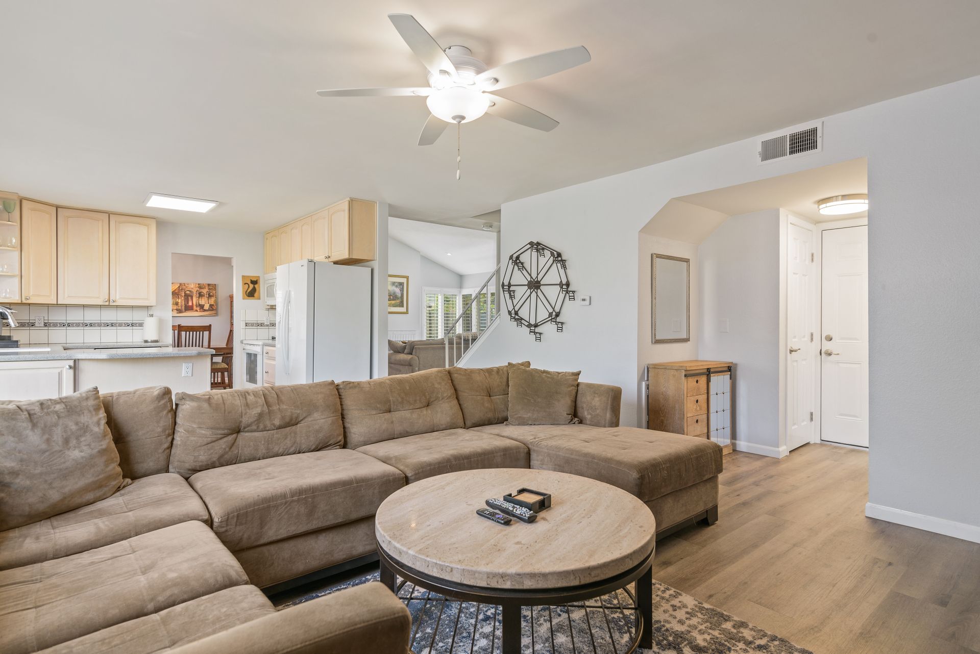 This is a charming two-story home in Rancho Penasquitos on a serene street with no HOA. Four bedrooms are located upstairs providing extra privacy with two bathrooms, plus a half bath downstairs. Enjoy newer upgraded waterproof laminate flooring installed throughout and a freshly painted interior. The main bedroom features a balcony plus an en-suite bathroom. The kitchen opens to the family room with eye-catching views of the tranquil backyard. Plenty of windows provide sunshine and fresh breezes as home is nicely situated to capture both. Escape to the fully landscaped backyard and relax under the pergola or in the pool and spa. Located in award winning PUSD and a short distance to Rolling Hills Elementary.