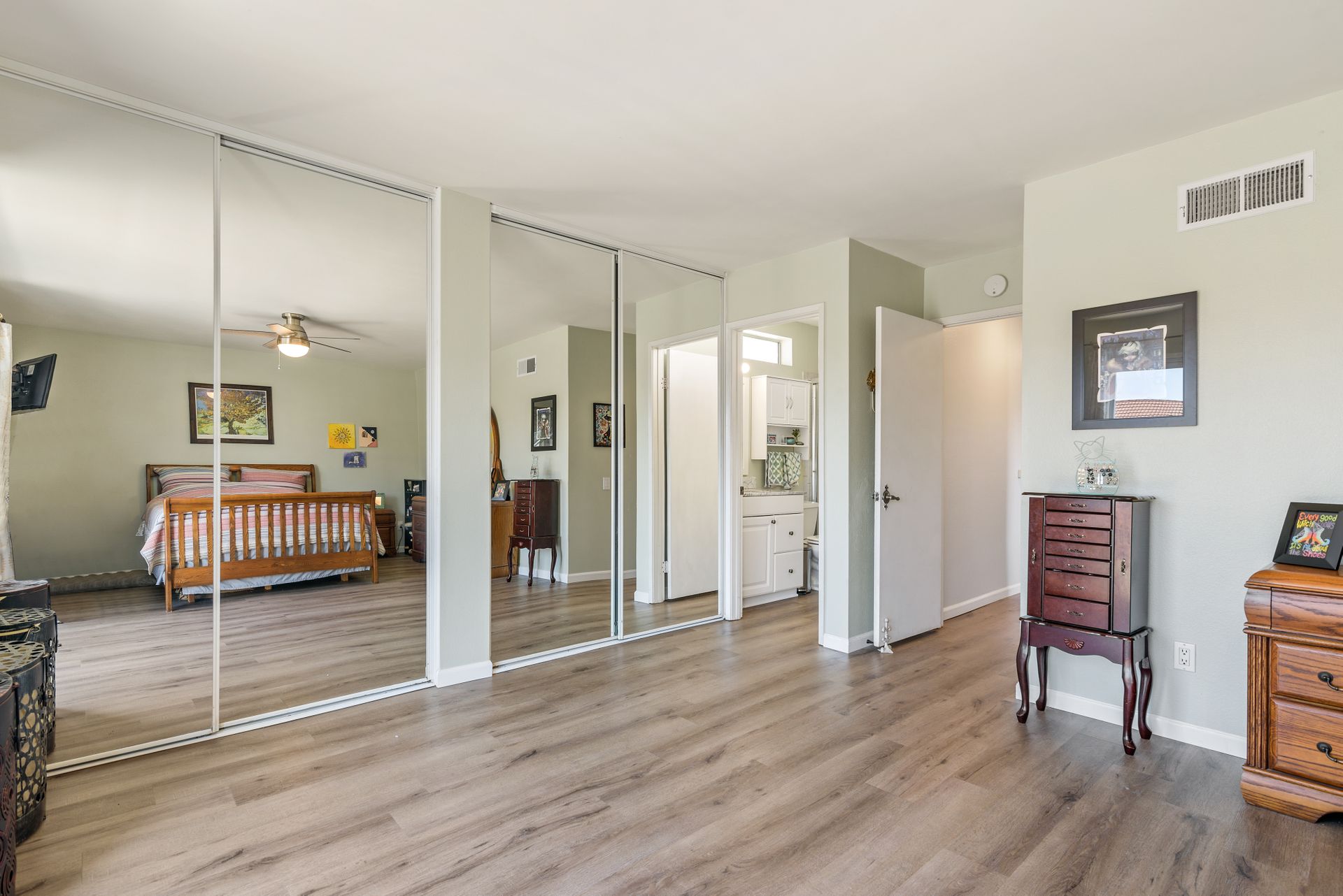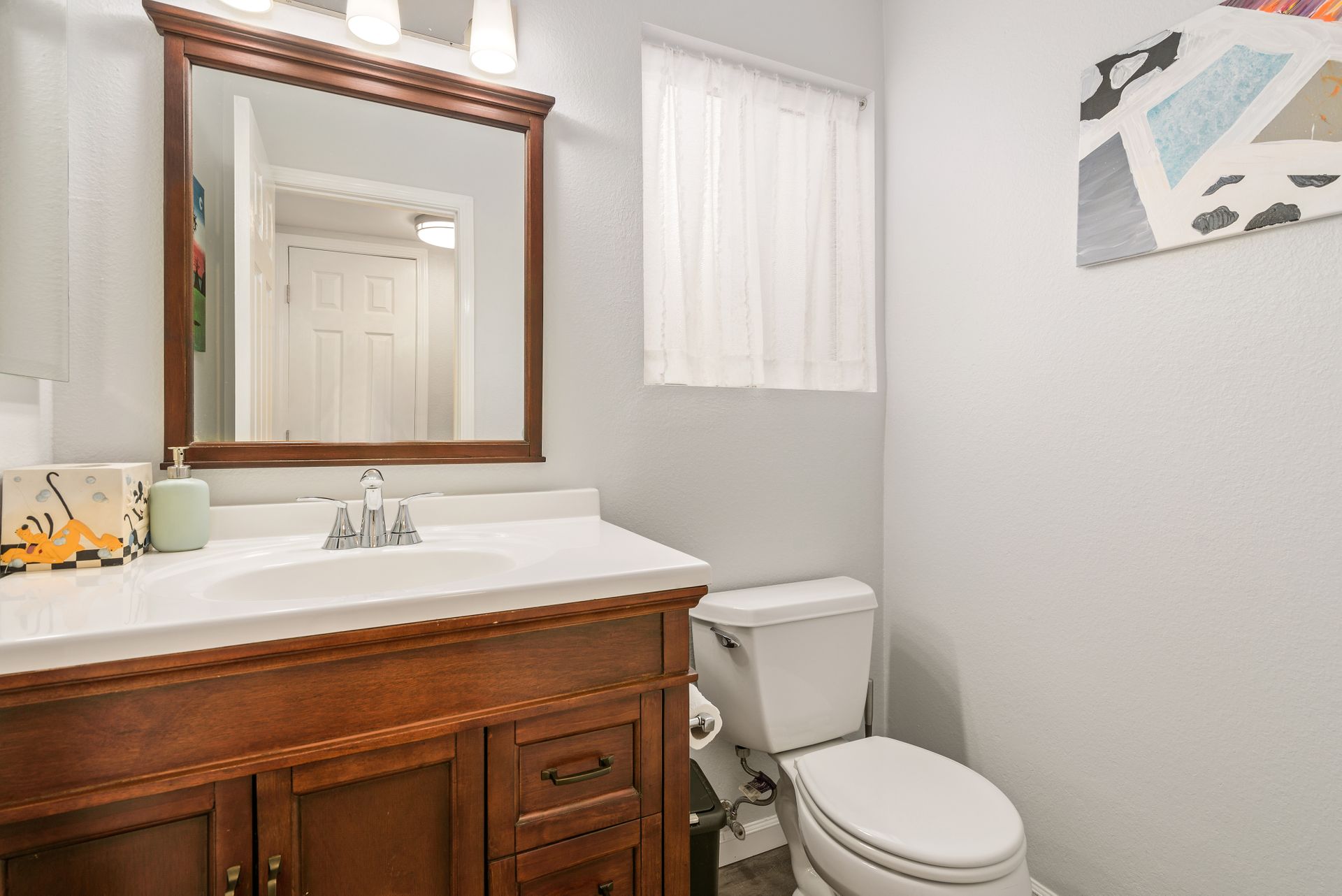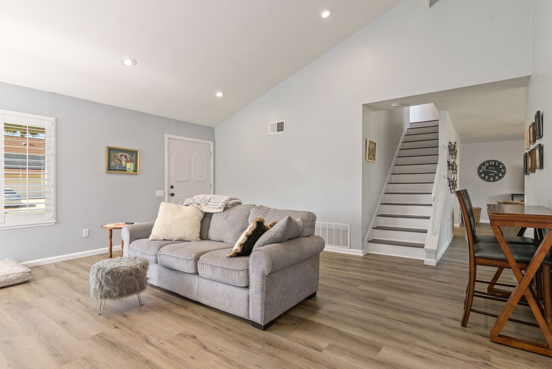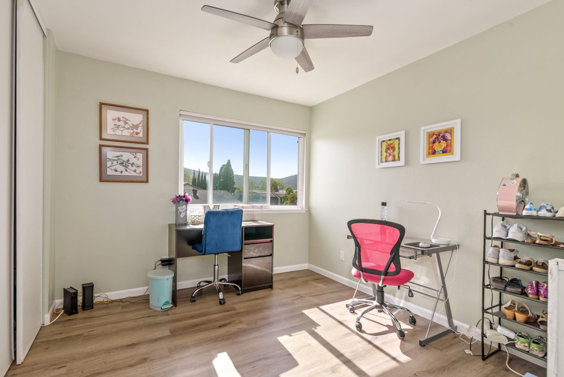 This is a charming two-story home in Rancho Penasquitos on a serene street with no HOA. Four bedrooms are located upstairs providing extra privacy with two bathrooms, plus a half bath downstairs. Enjoy newer upgraded waterproof laminate flooring installed throughout and a freshly painted interior. The main bedroom features a balcony plus an en-suite bathroom. The kitchen opens to the family room with eye-catching views of the tranquil backyard. Plenty of windows provide sunshine and fresh breezes as home is nicely situated to capture both. Escape to the fully landscaped backyard and relax under the pergola or in the pool and spa. Located in award winning PUSD and a short distance to Rolling Hills Elementary.