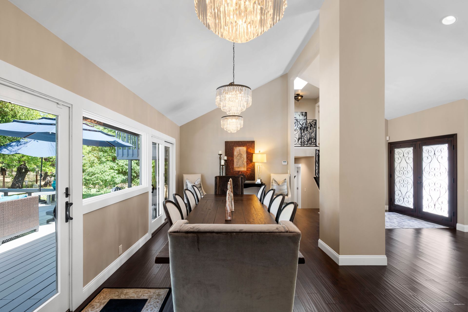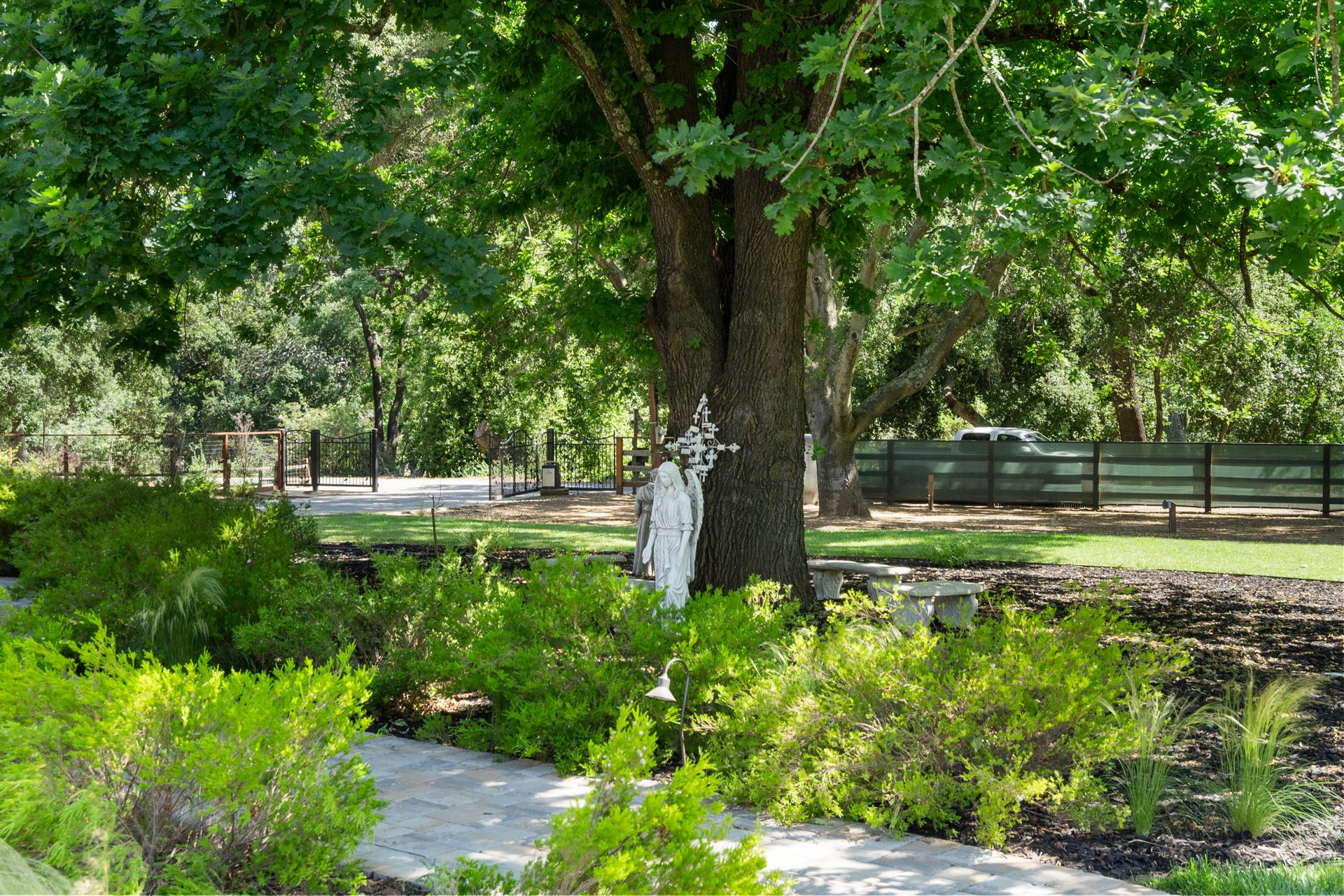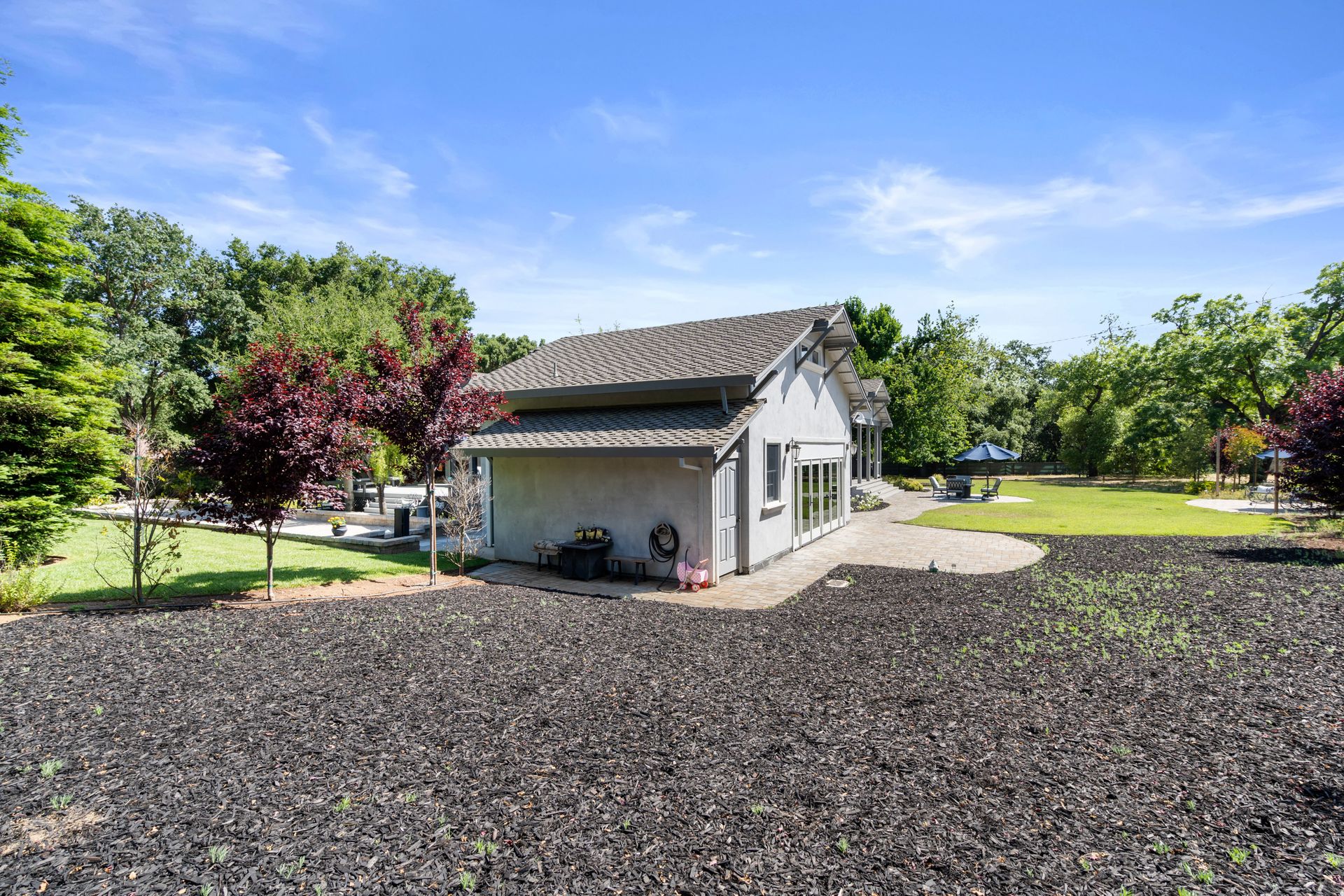 Minutes from downtown and wineries off of a private road lies your slice of heaven in Paradise Valley. This beautiful custom four bedroom four bath home situated on your own private park and creekside setting has been thoughtfully re-designed and updated throughout approximately five years ago. This estate consists of two primary suites upstairs and two bedrooms downstairs each with their own en-suite. The formal dining area and adjacent living room boast soaring vaulted ceilings, chandeliers and custom light fixtures. The kitchen and adjacent family room have luxurious French doors which bring in natural light and lead to the beautiful park-like front yard with a fountain, while wrapping around to the landscaped backyard, bocce court, deck and gazebo. There is a detached unit with heat, AC, water, electricity, cabinetry, countertops and French doors providing lots of natural light. Lots of other beauty you'll experience when you see this property. Once you arrive you won't want to leave.