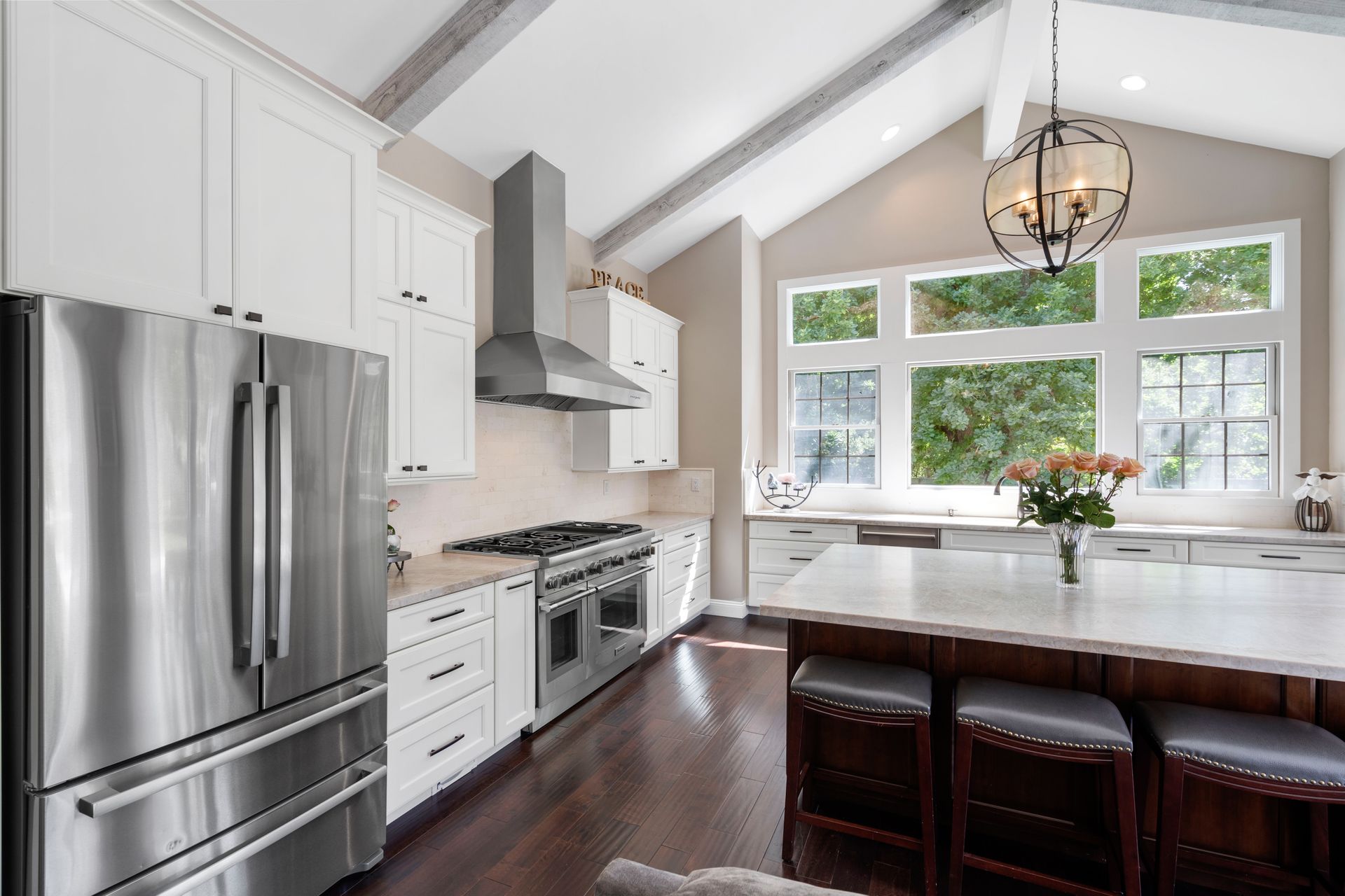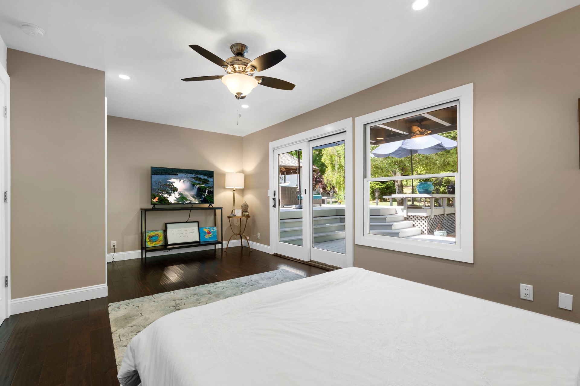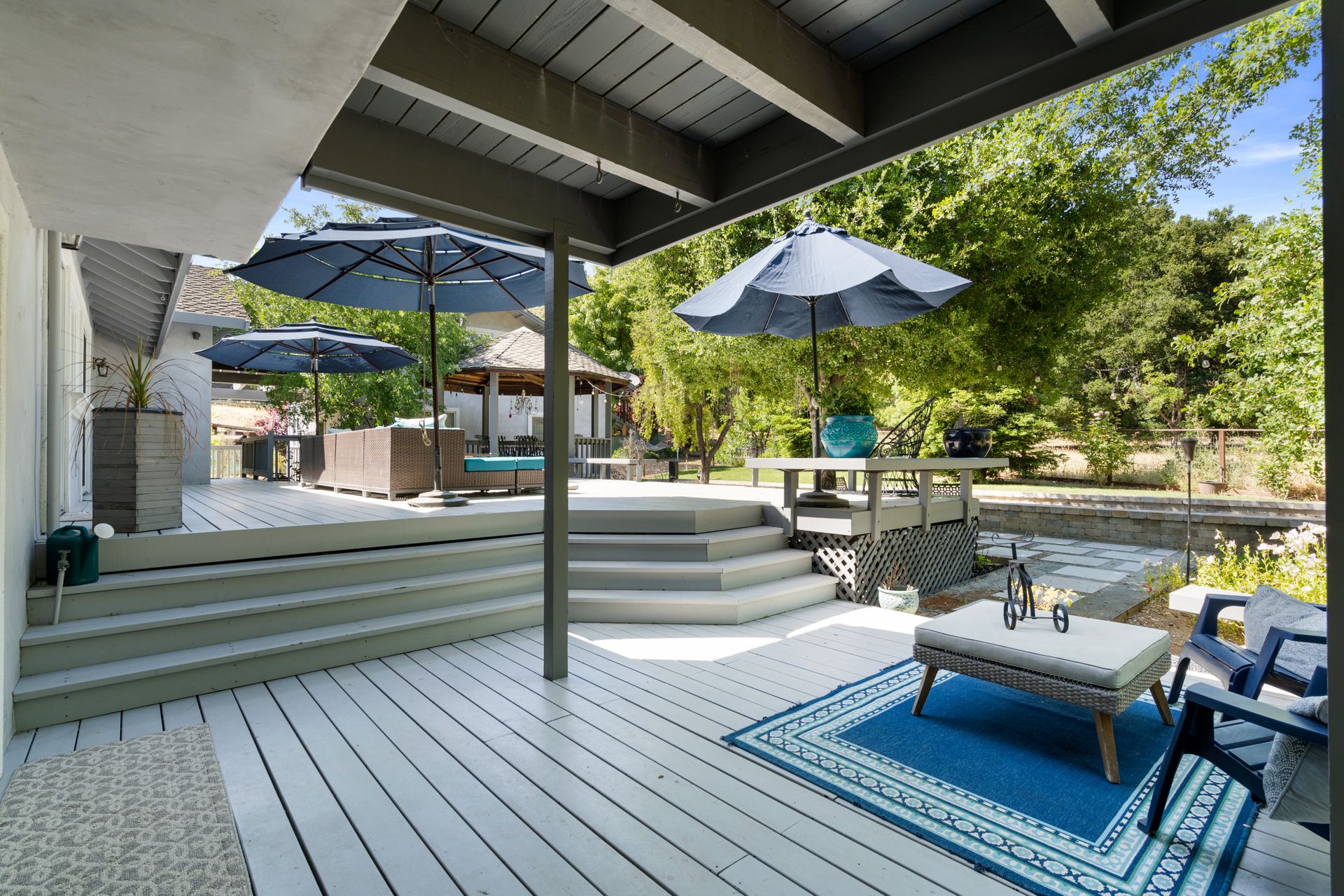 Minutes from downtown and wineries off of a private road lies your slice of heaven in Paradise Valley. This beautiful custom four bedroom four bath home situated on your own private park and creekside setting has been thoughtfully re-designed and updated throughout approximately five years ago. This estate consists of two primary suites upstairs and two bedrooms downstairs each with their own en-suite. The formal dining area and adjacent living room boast soaring vaulted ceilings, chandeliers and custom light fixtures. The kitchen and adjacent family room have luxurious French doors which bring in natural light and lead to the beautiful park-like front yard with a fountain, while wrapping around to the landscaped backyard, bocce court, deck and gazebo. There is a detached unit with heat, AC, water, electricity, cabinetry, countertops and French doors providing lots of natural light. Lots of other beauty you'll experience when you see this property. Once you arrive you won't want to leave.