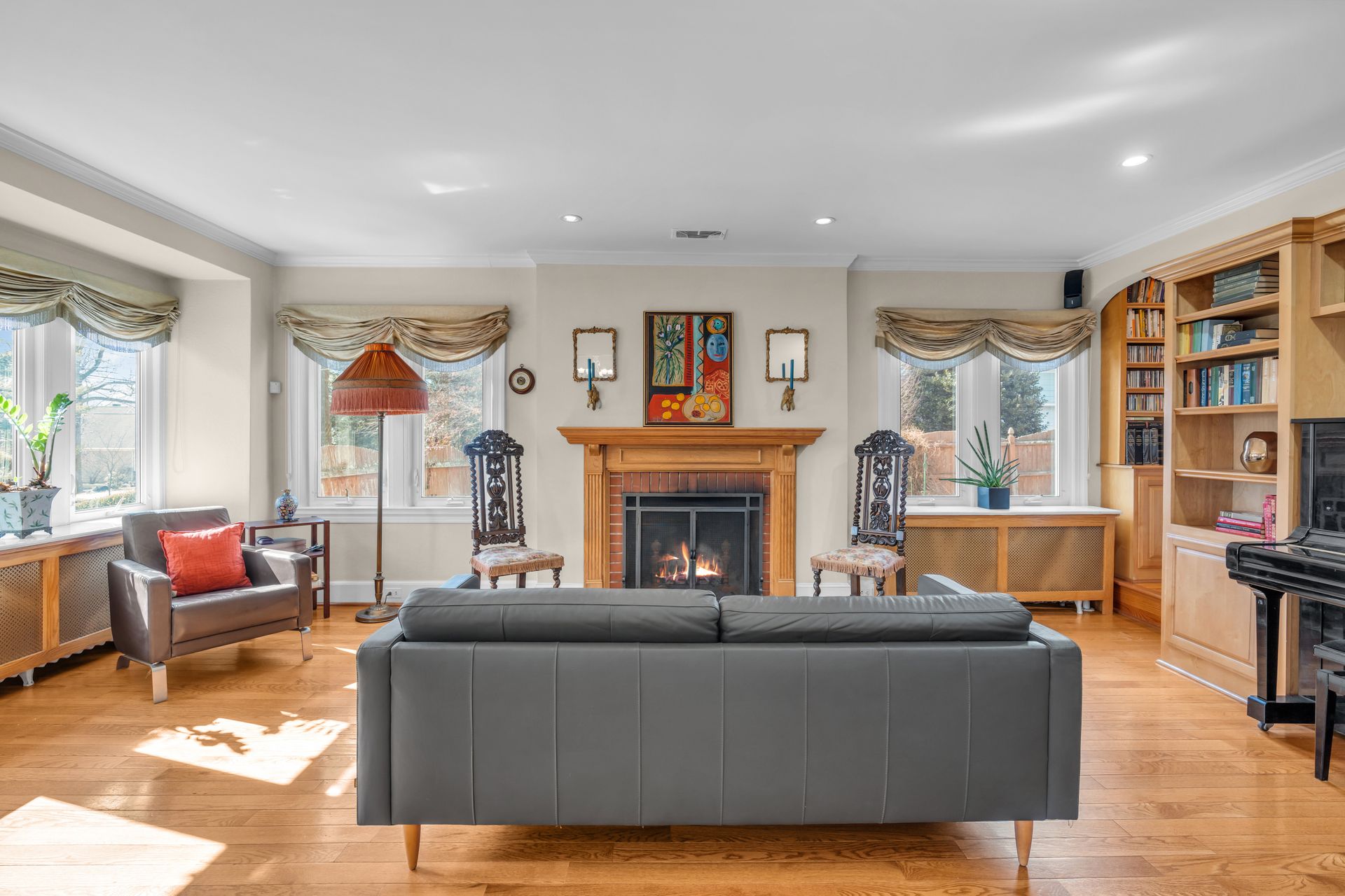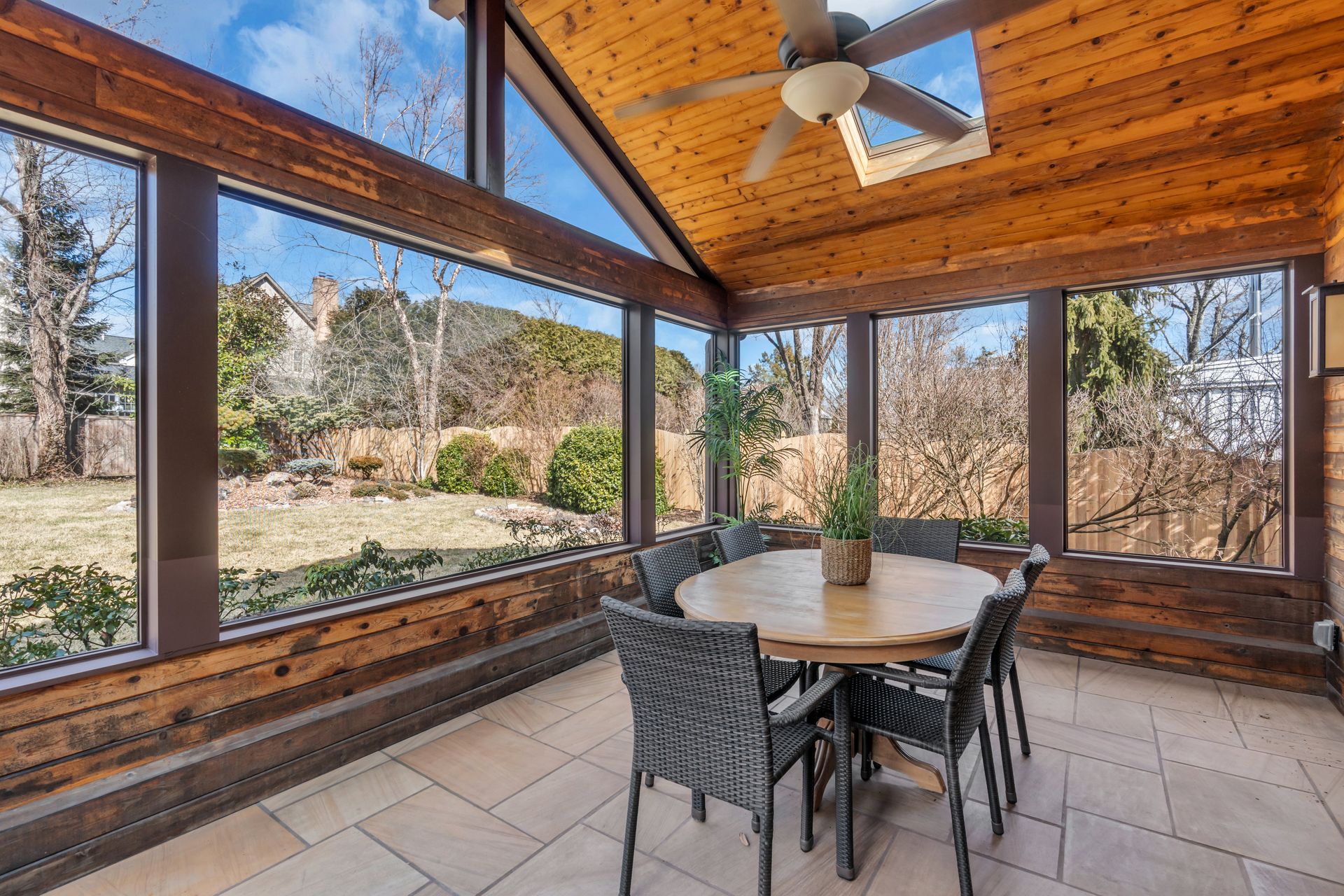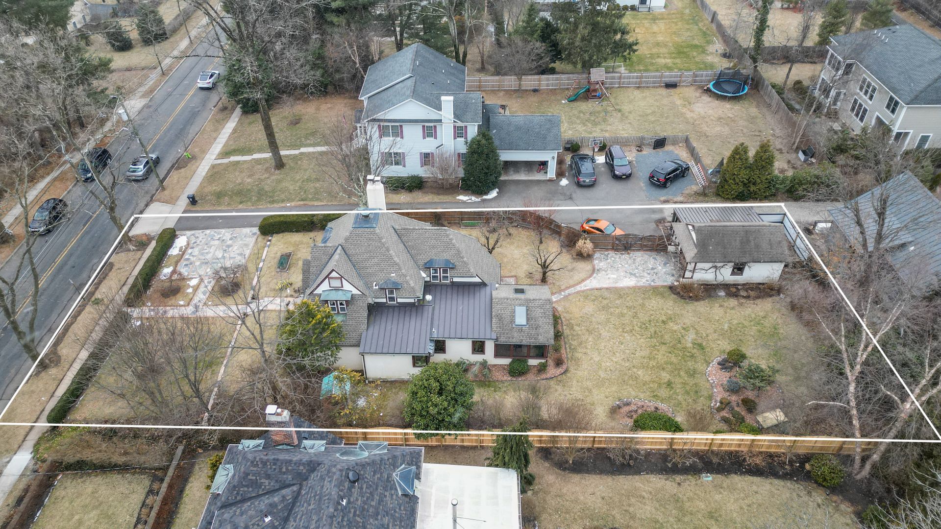 Nestled just moments from town, this beautifully expanded and renovated Tudor seamlessly blends classic charm with modern luxury. Thoughtfully enhanced by its current owner, the home sits gracefully on a picturesque lot featuring raised garden beds, fruit trees and professional landscaping. Inside the home's elegant proportions and refined details shine throughout. The expanded kitchen boasts high-end appliances, quartz counters, center island/breakfast bar and an open flow into the inviting family room addition with a floating wall fireplace, vaulted ceiling and hardwood floors. Glass French doors open to a vaulted sunroom addition with skylights, stone flooring and an outdoor heater. Surrounded by three walls of screening, this inviting space offers uninterrupted views of the rear lawn and gardens while allowing for fresh air and seasonal enjoyment. Formal living and dining rooms showcase enduring 1920's architectural details, combining sophistication and comfort, ideal for both everyday living and grand entertaining. The living room centers around a classic fireplace, with an adjacent wall of custom built-ins and open shelving designed to accommodate a piano for musical gatherings. Just beyond, the spacious dining room sets the stage for memorable dining for either an intimate setting or a festive Thanksgiving feast. The second floor hosts three bedrooms, including a primary suite and two fully renovated bathrooms. A fourth bedroom on the main level is accompanied by a third beautifully updated bathroom. All three bathrooms, along with the kitchen and family room, feature heated floors for additional comfort. A fenced yard completes this storybook setting, offering privacy and space to enjoy the exquisite outdoor surroundings. Stroll to town and the university, or the shopping center and pool. With its seamless blend of timeless architecture and modern amenities, this Princeton gem is a rare find.