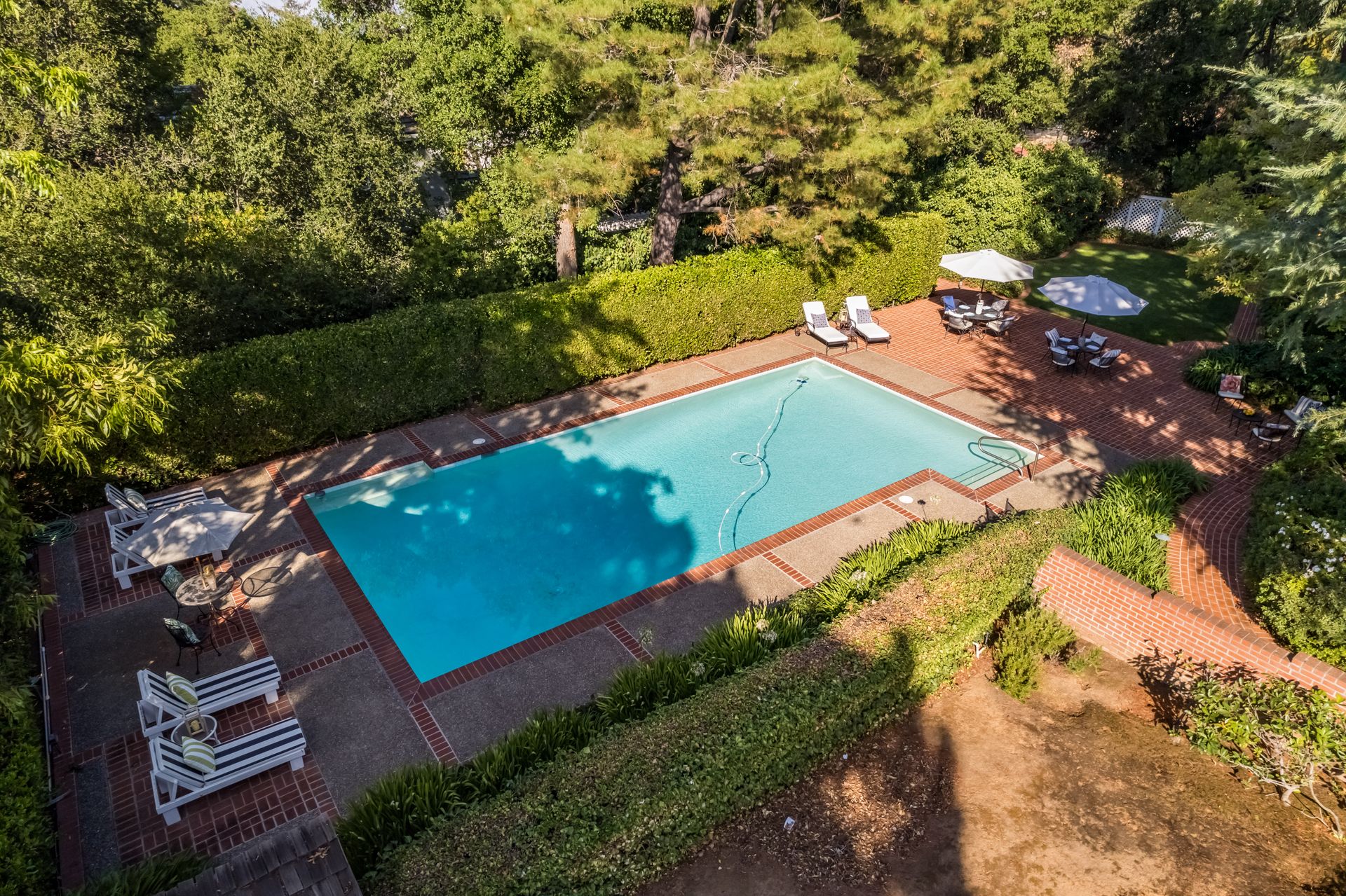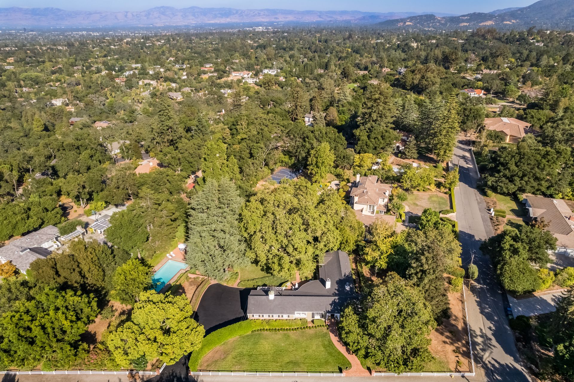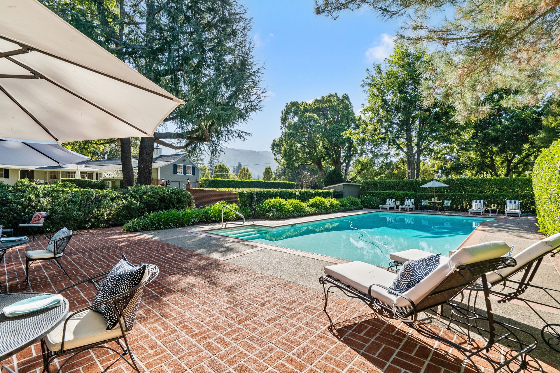 Beyond words! Must see! Extraordinary chic Carmel style ranch home in one of Saratoga's most premier neighborhoods on well over nearly flat acre of usable land. Entertainers' dream setting with soaring trees, orchards, ample space, and privacy, make this the most livable sanctuary. Stunning views of the lush Saratoga and Monte Sereno mountainside and surrounded by multi-million dollar estates offers endless opportunities for the next owner of this unique home. Within close proximity to award-winning Saratoga Schools, the Village of Saratoga and the Town of Los Gatos, and all one could possibly desire on the west side of Silicon Valley. Idyllic poolside setting makes one want to sit and stay a while and just relax. The Main House is approximately 2815 square feet and the Guest House is approximately 770 square feet. Build your dreams here, add on to existing, or add an ADU. Ideal setting for a combined living experience. We are excited for you to experience this extraordinary home.