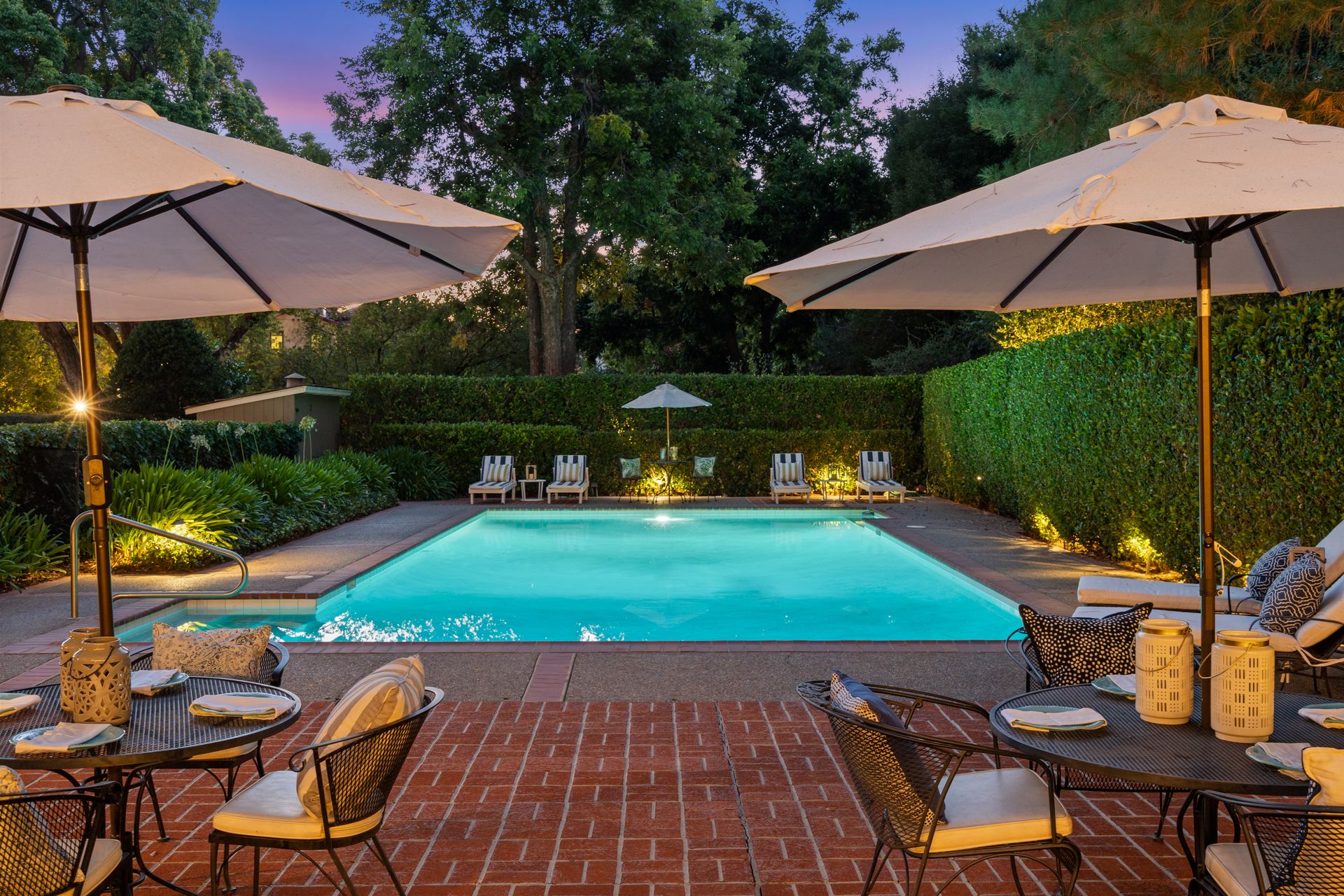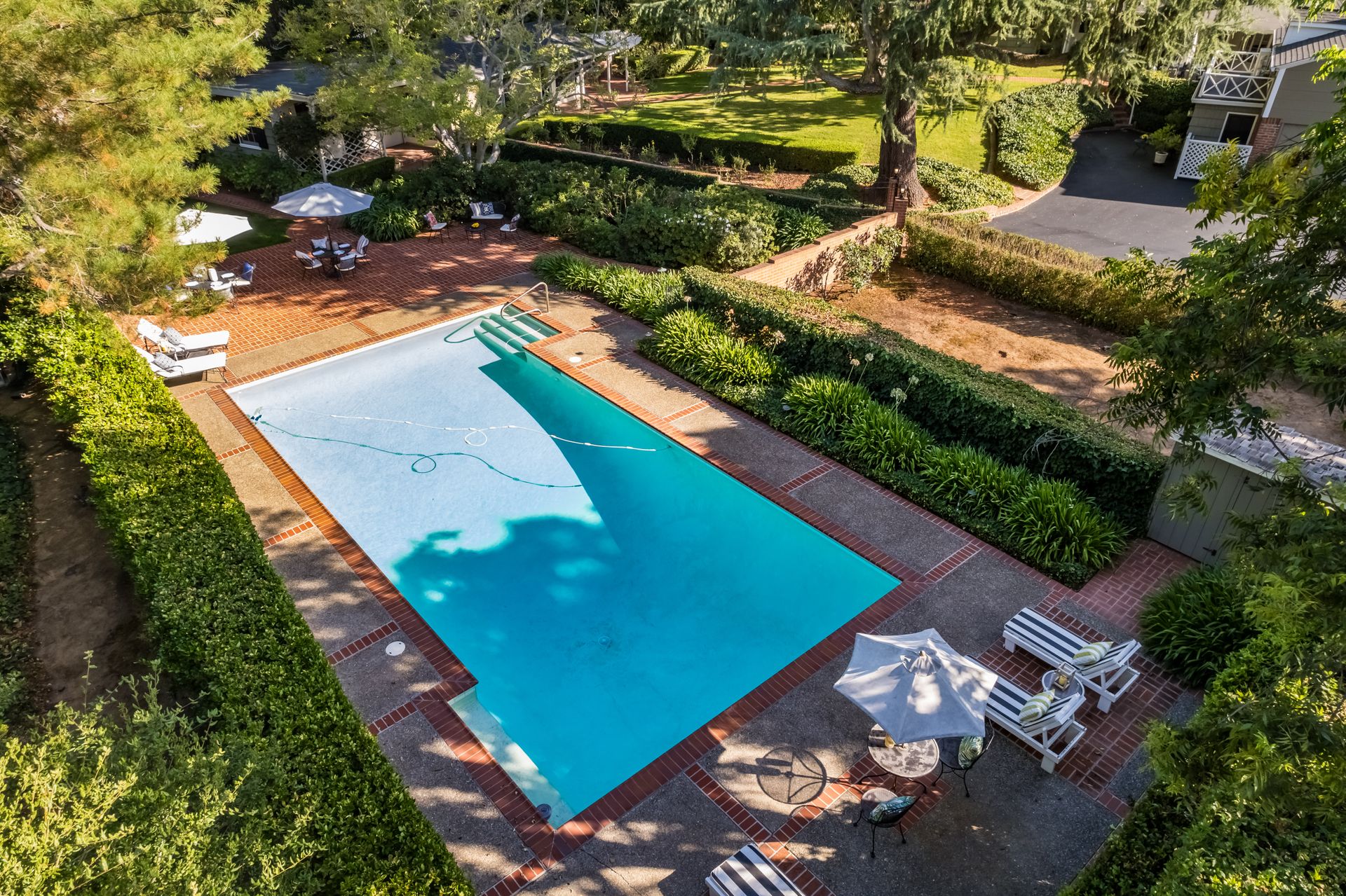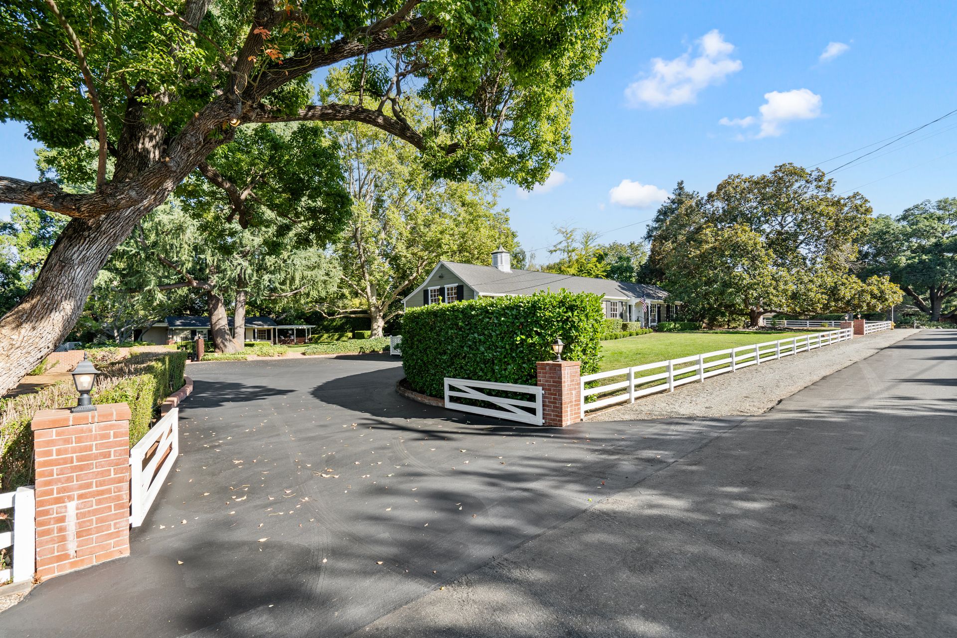 Beyond words! Must see! Extraordinary chic Carmel style ranch home in one of Saratoga's most premier neighborhoods on well over nearly flat acre of usable land. Entertainers' dream setting with soaring trees, orchards, ample space, and privacy, make this the most livable sanctuary. Stunning views of the lush Saratoga and Monte Sereno mountainside and surrounded by multi-million dollar estates offers endless opportunities for the next owner of this unique home. Within close proximity to award-winning Saratoga Schools, the Village of Saratoga and the Town of Los Gatos, and all one could possibly desire on the west side of Silicon Valley. Idyllic poolside setting makes one want to sit and stay a while and just relax. The Main House is approximately 2815 square feet and the Guest House is approximately 770 square feet. Build your dreams here, add on to existing, or add an ADU. Ideal setting for a combined living experience. We are excited for you to experience this extraordinary home.