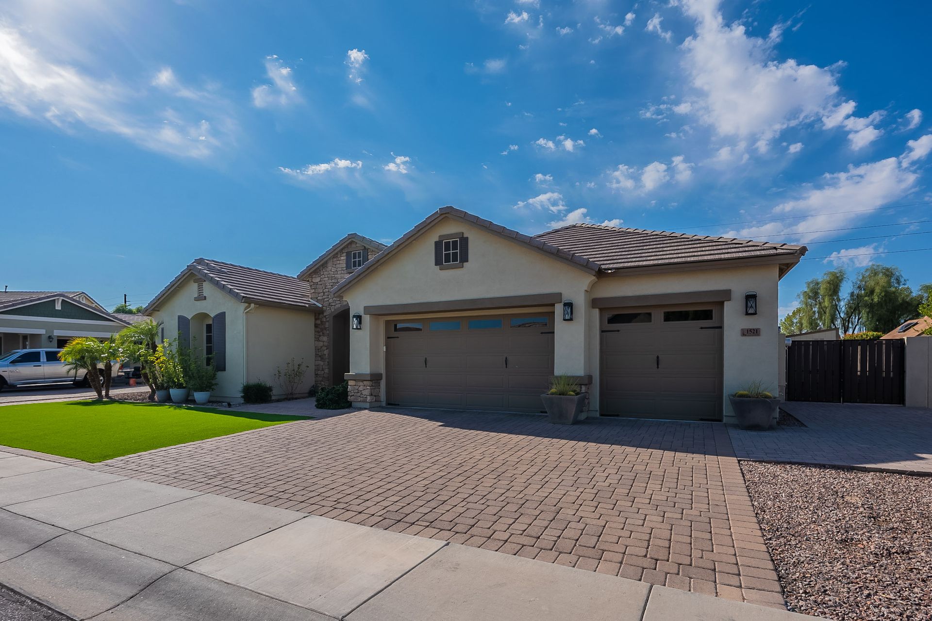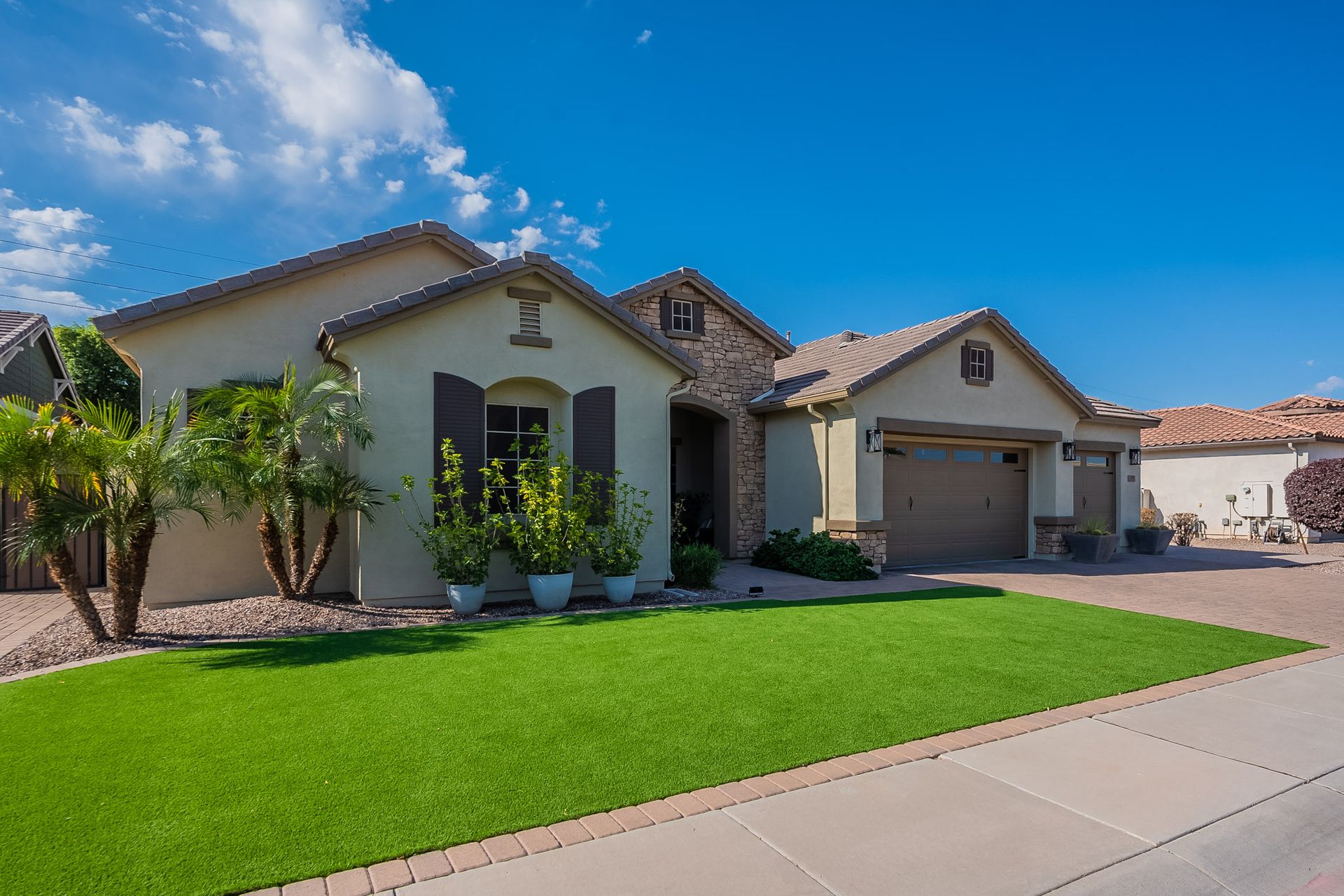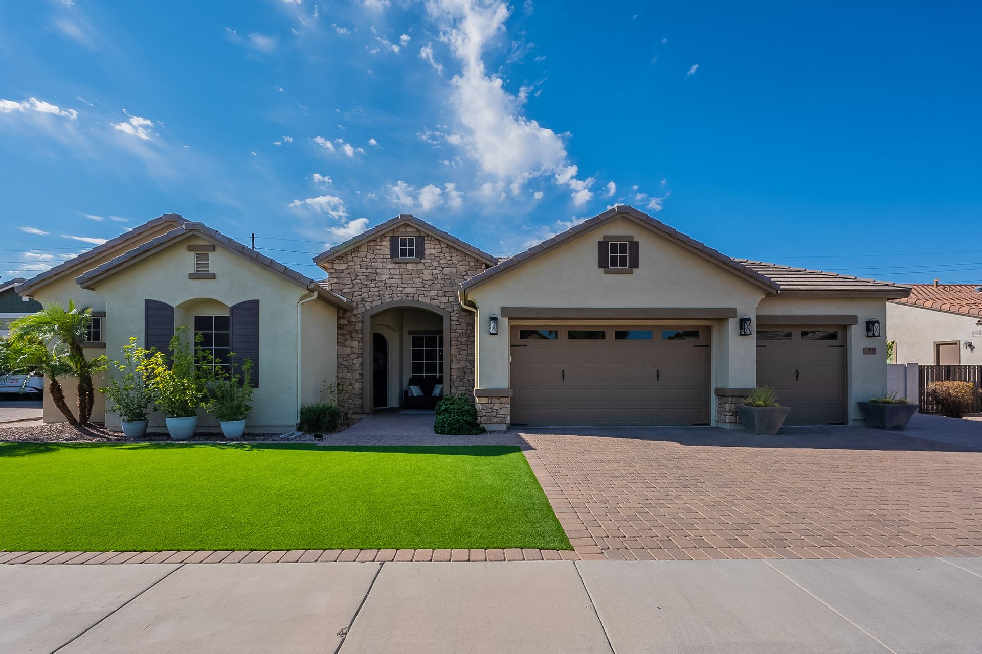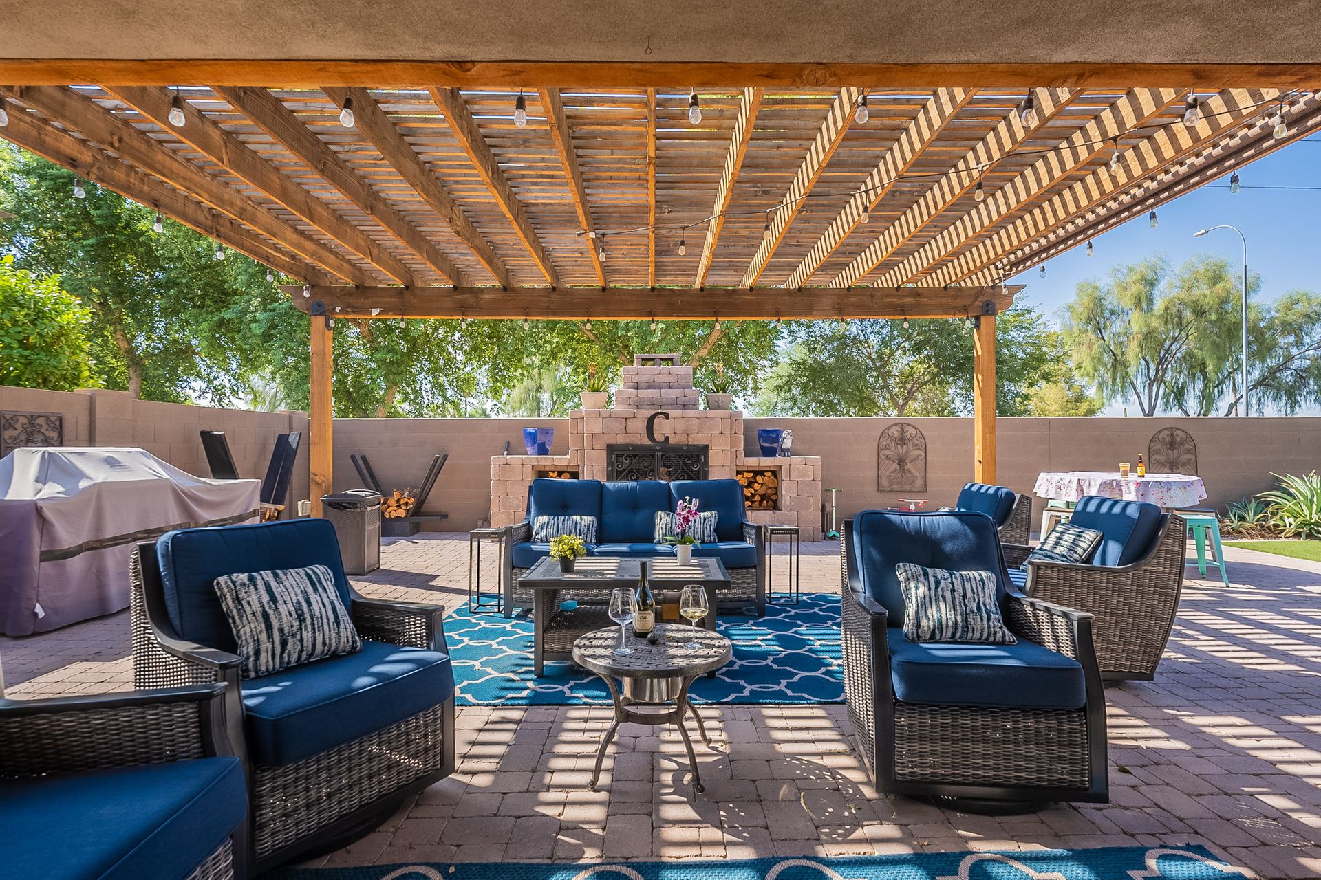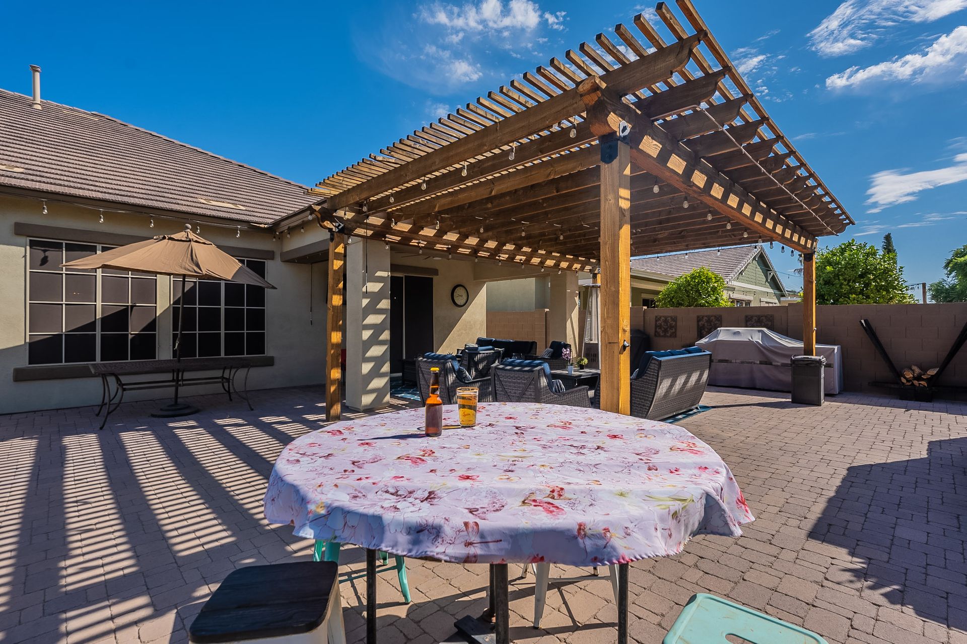 Step outside to your own private paradise. The synthetic grass front and back yard are not only low-maintenance but also eco-friendly. Enjoy the Arizona sunshine under the large pergola, complete with a professional mister system to keep you cool during the summer months.