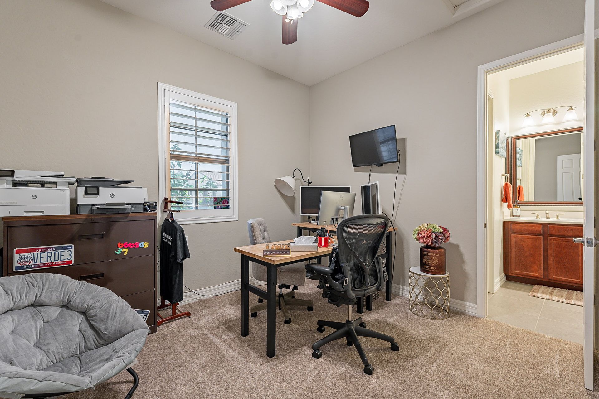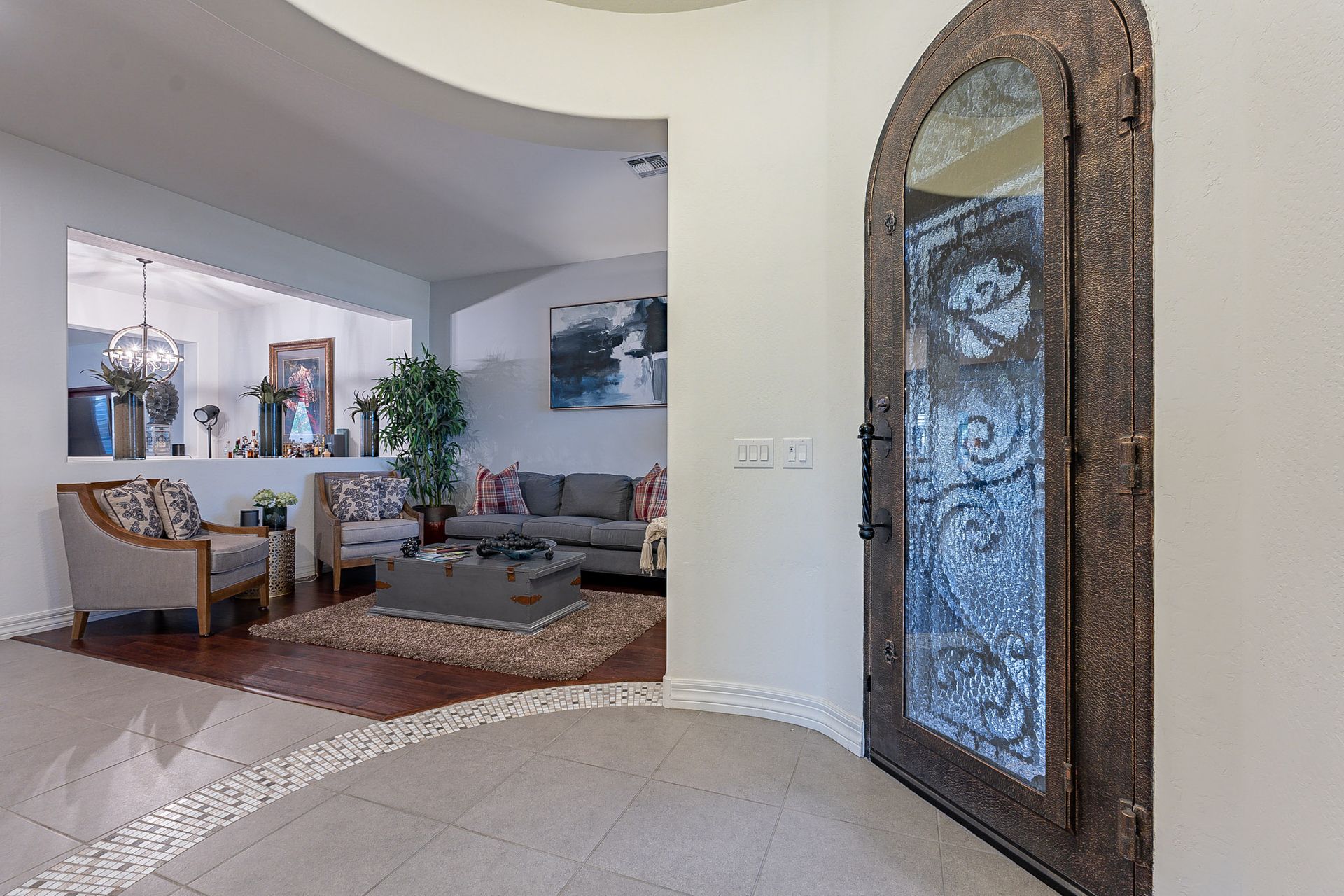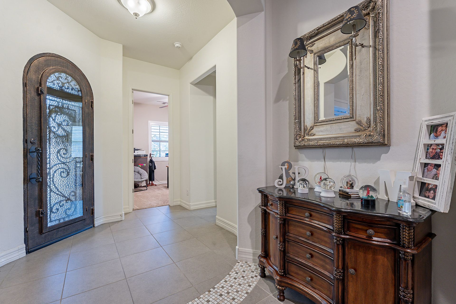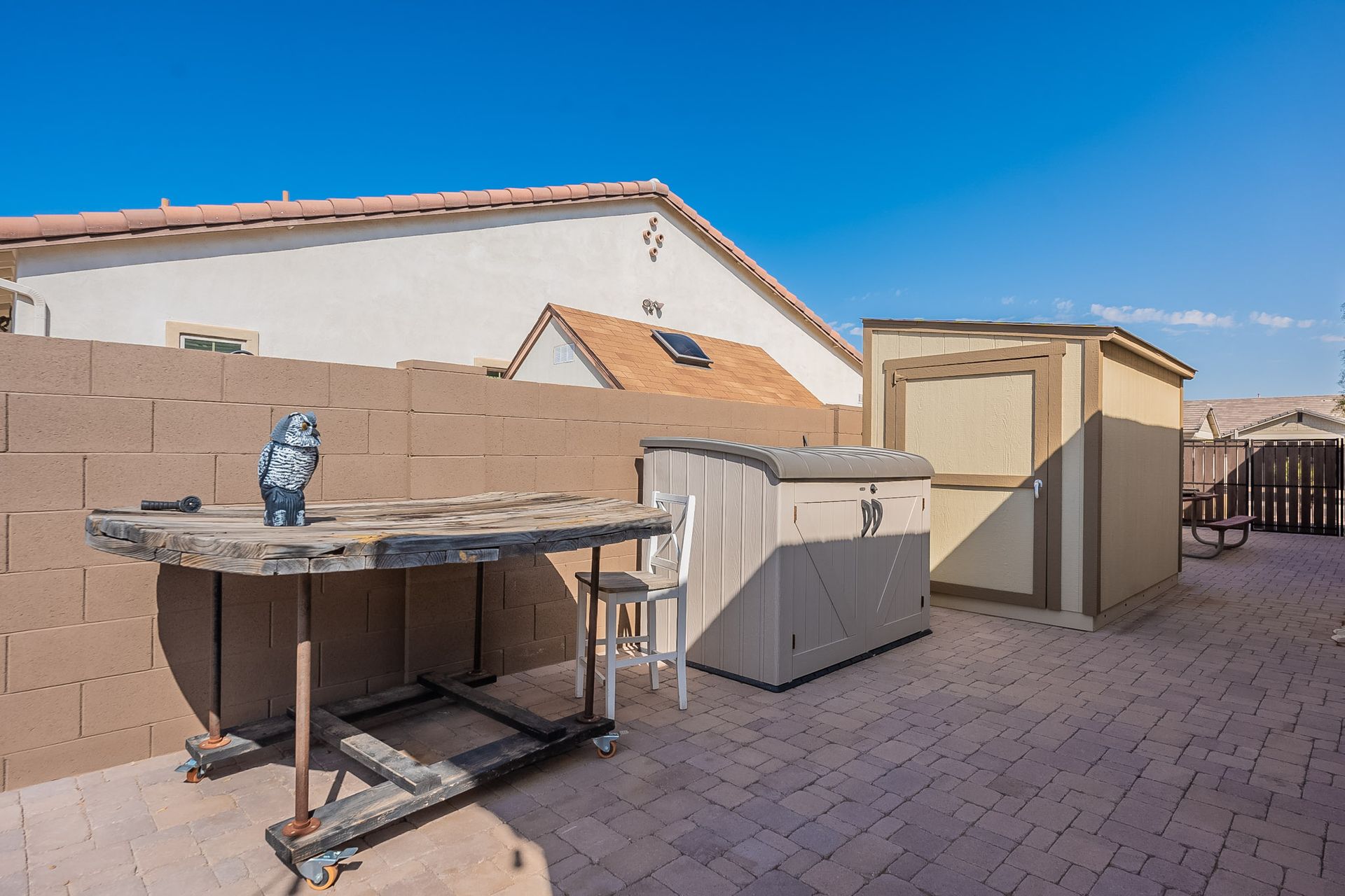 Step outside to your own private paradise. The synthetic grass front and back yard are not only low-maintenance but also eco-friendly. Enjoy the Arizona sunshine under the large pergola, complete with a professional mister system to keep you cool during the summer months.