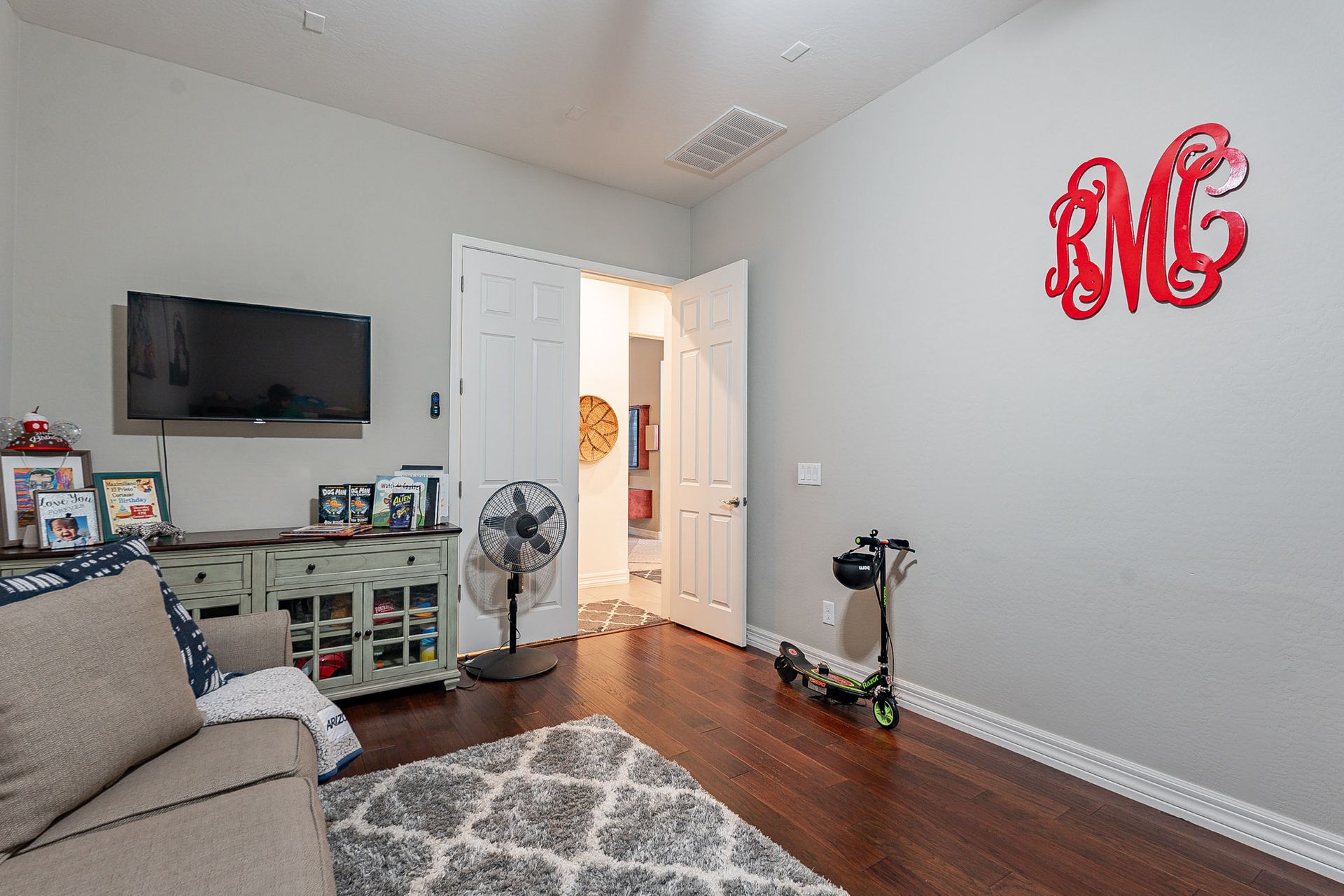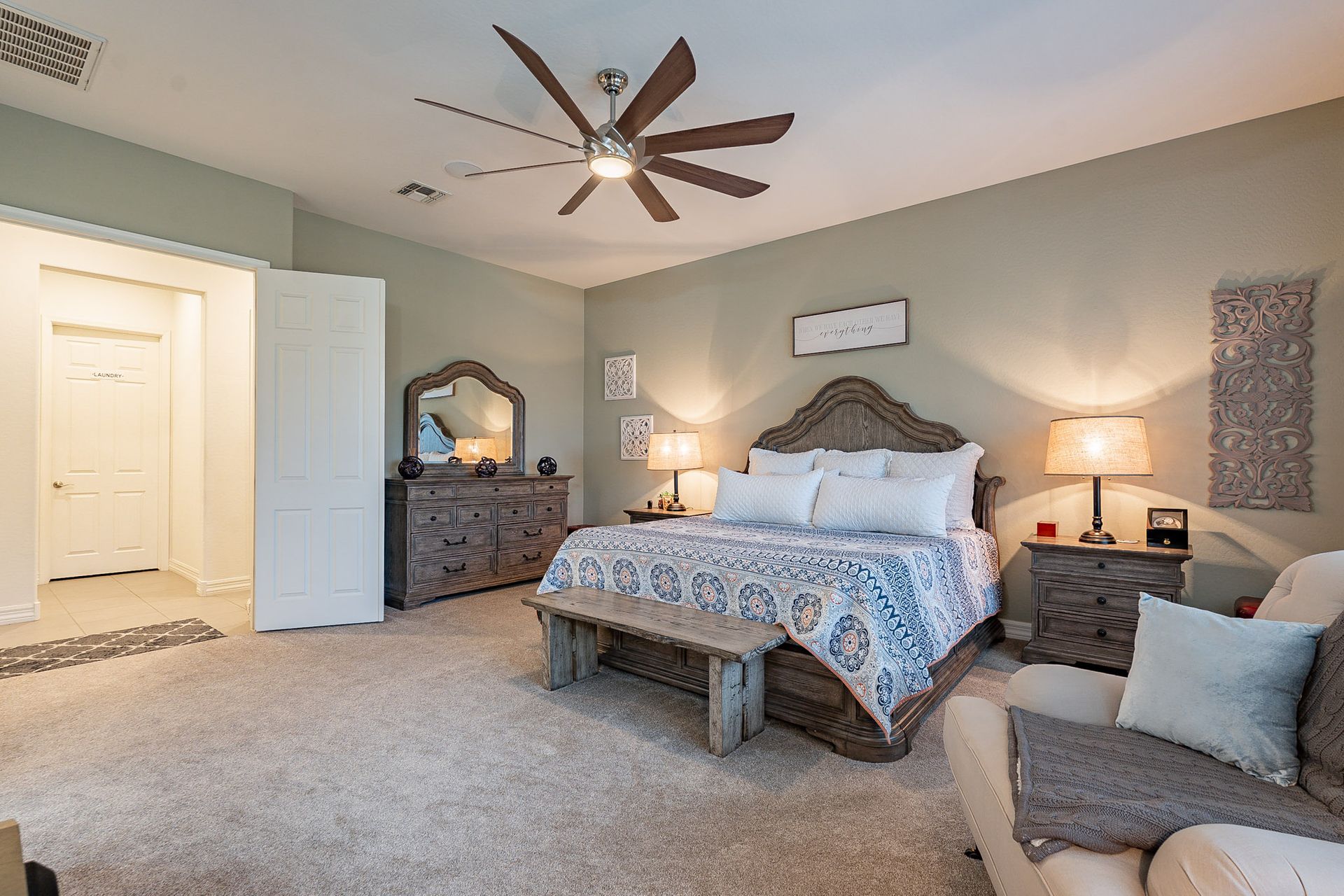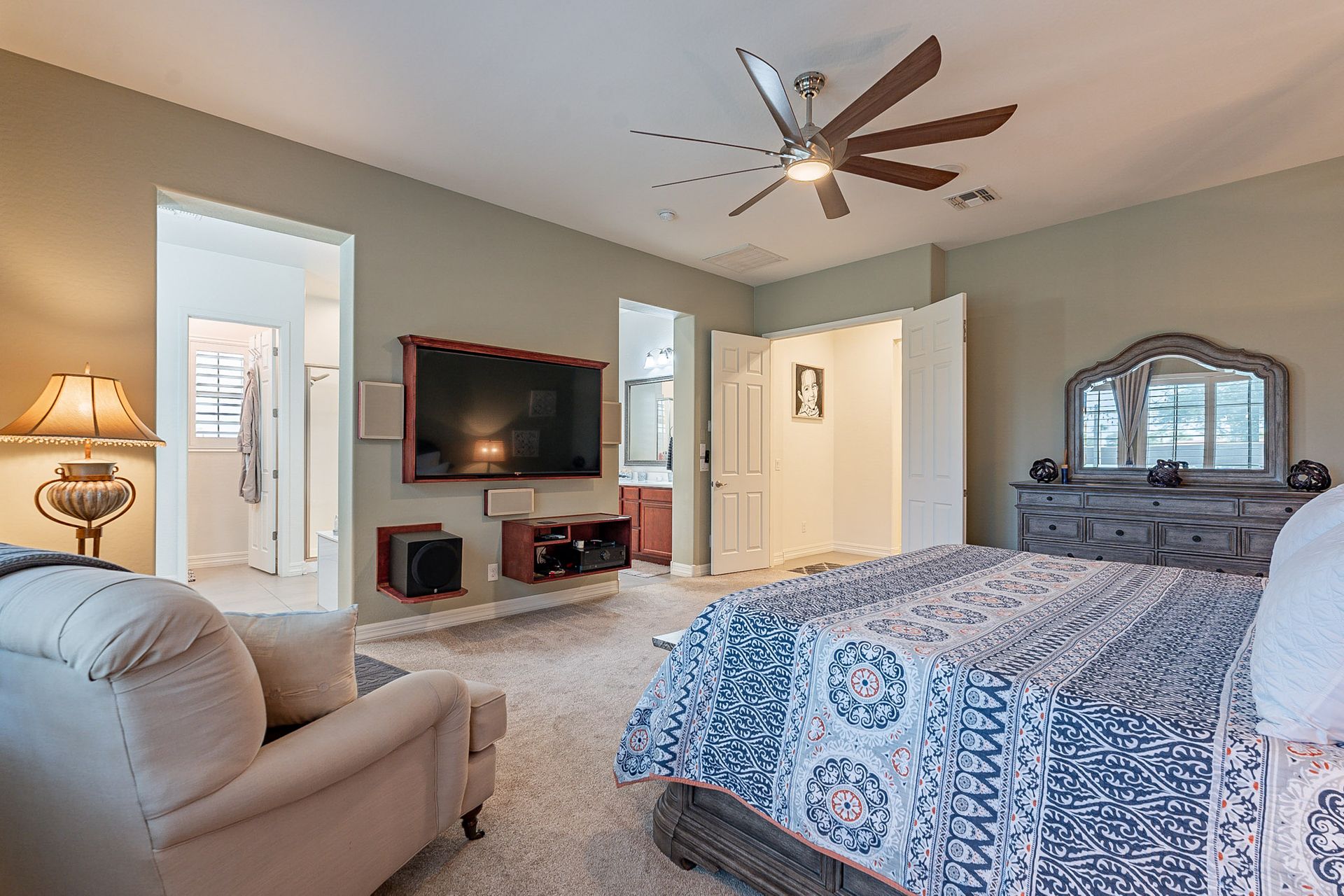 The master bedroom boasts a classy closet room, providing ample storage space for all your clothing and accessories.