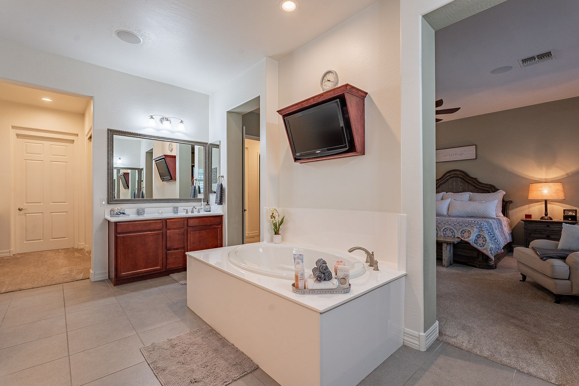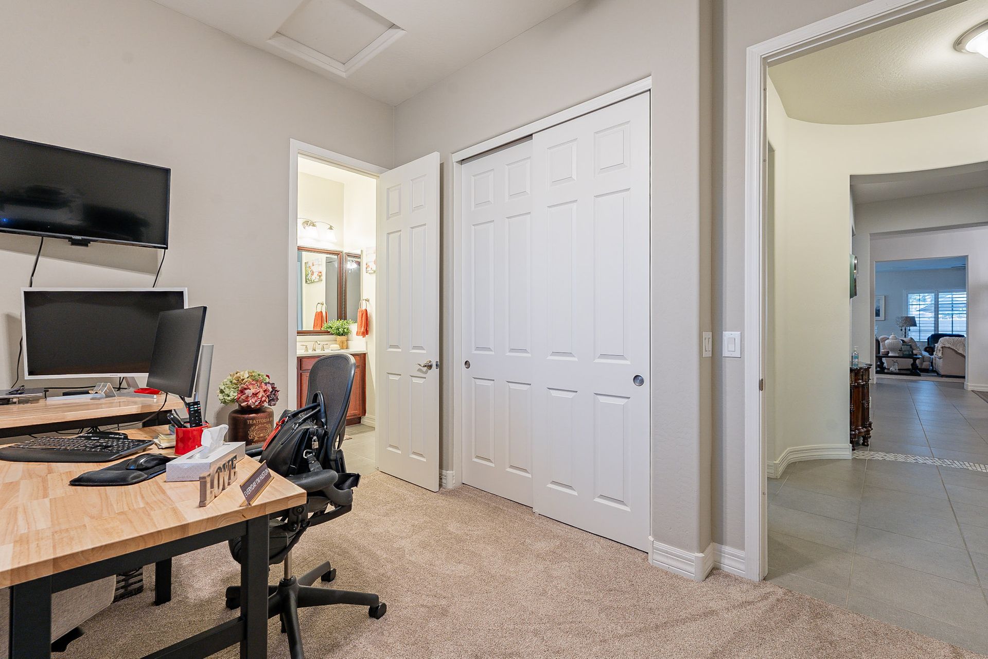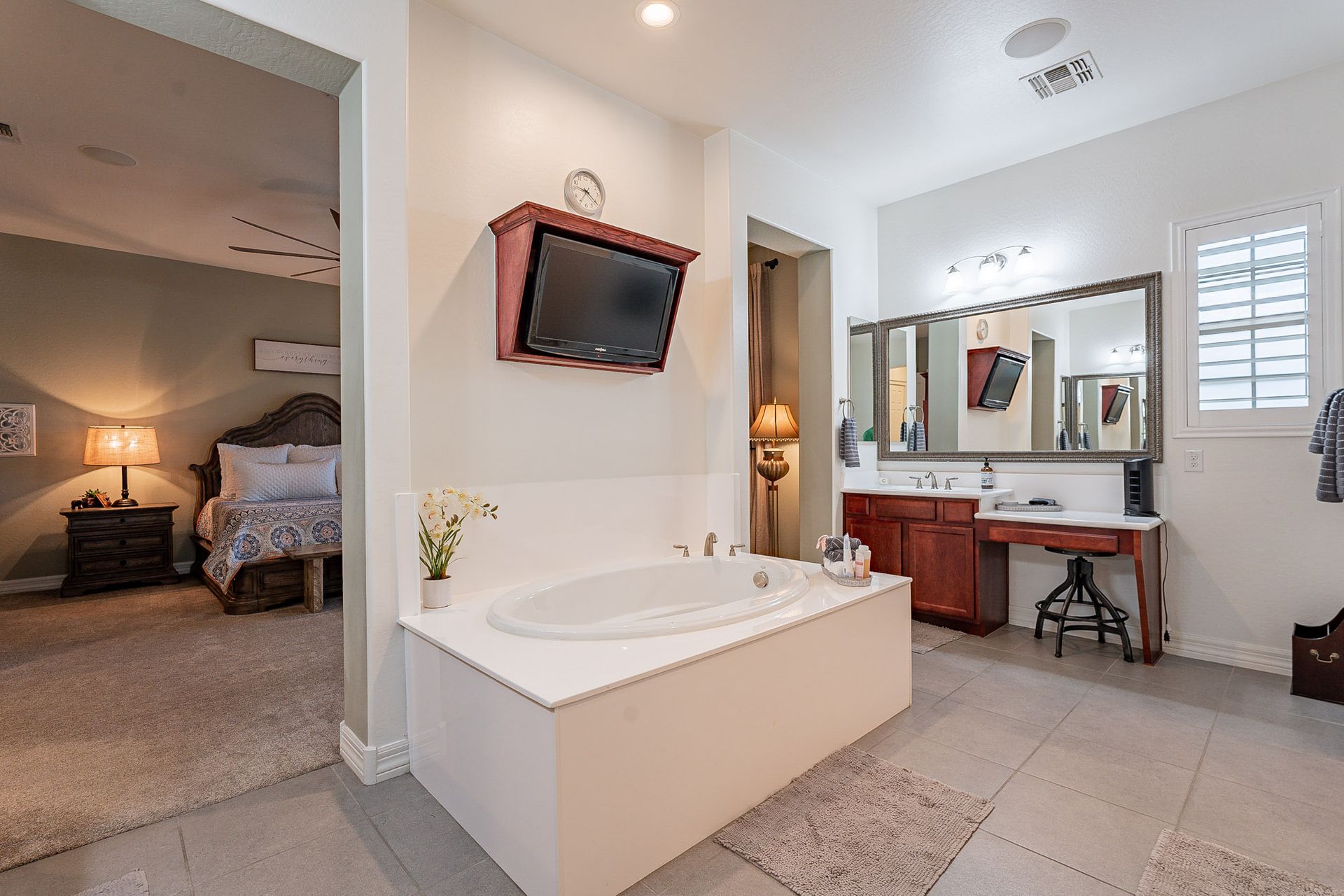 The master bedroom boasts a classy closet room, providing ample storage space for all your clothing and accessories.