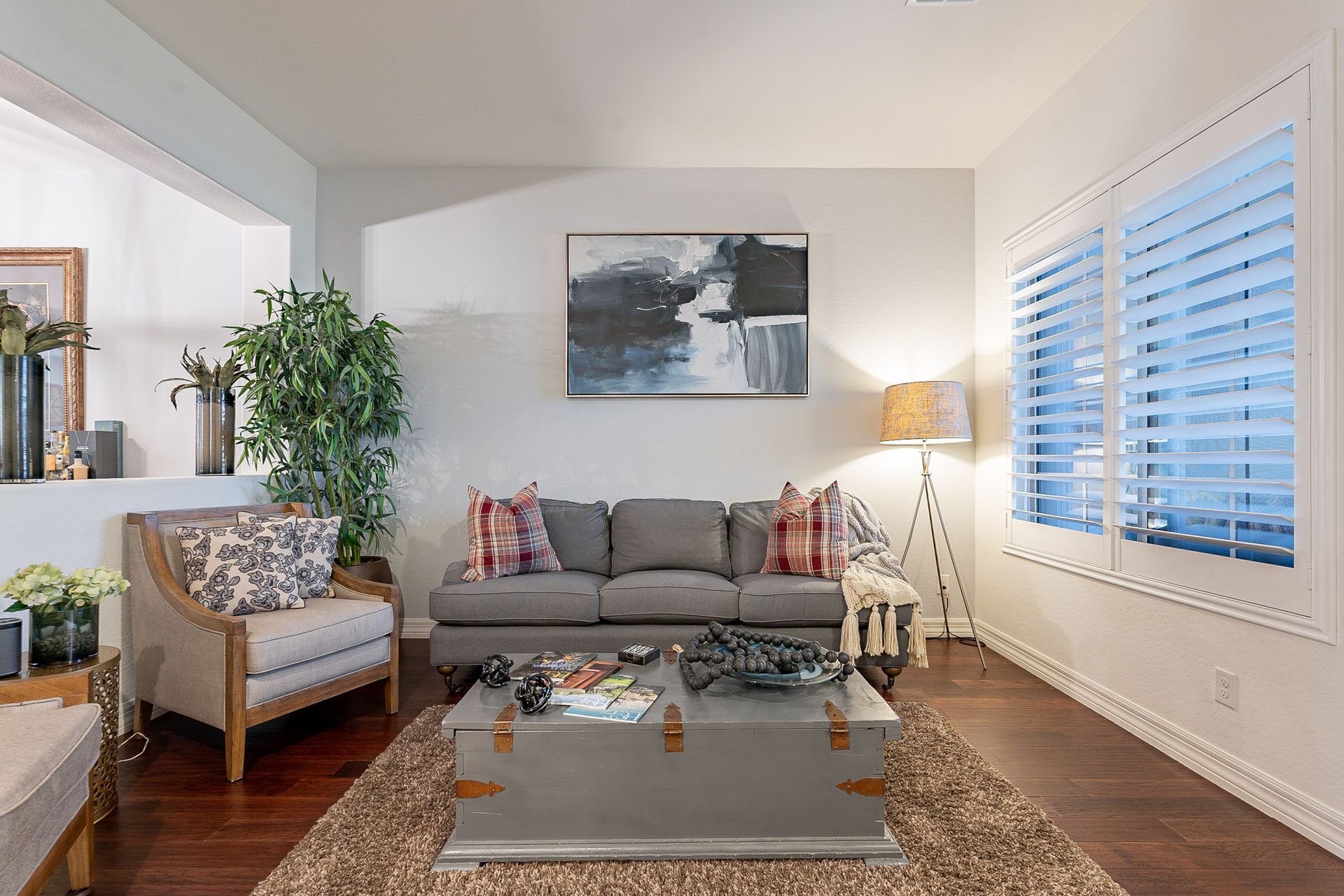 As you step inside, you'll be greeted by exquisite wood floors that lead you through the open and spacious living areas. The upgraded interior window shutters allow you to control the natural light and add a touch of elegance to every room.