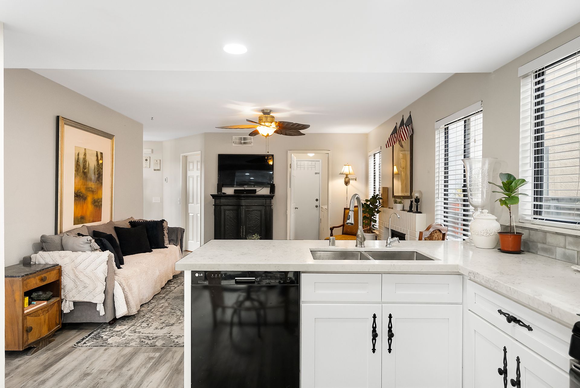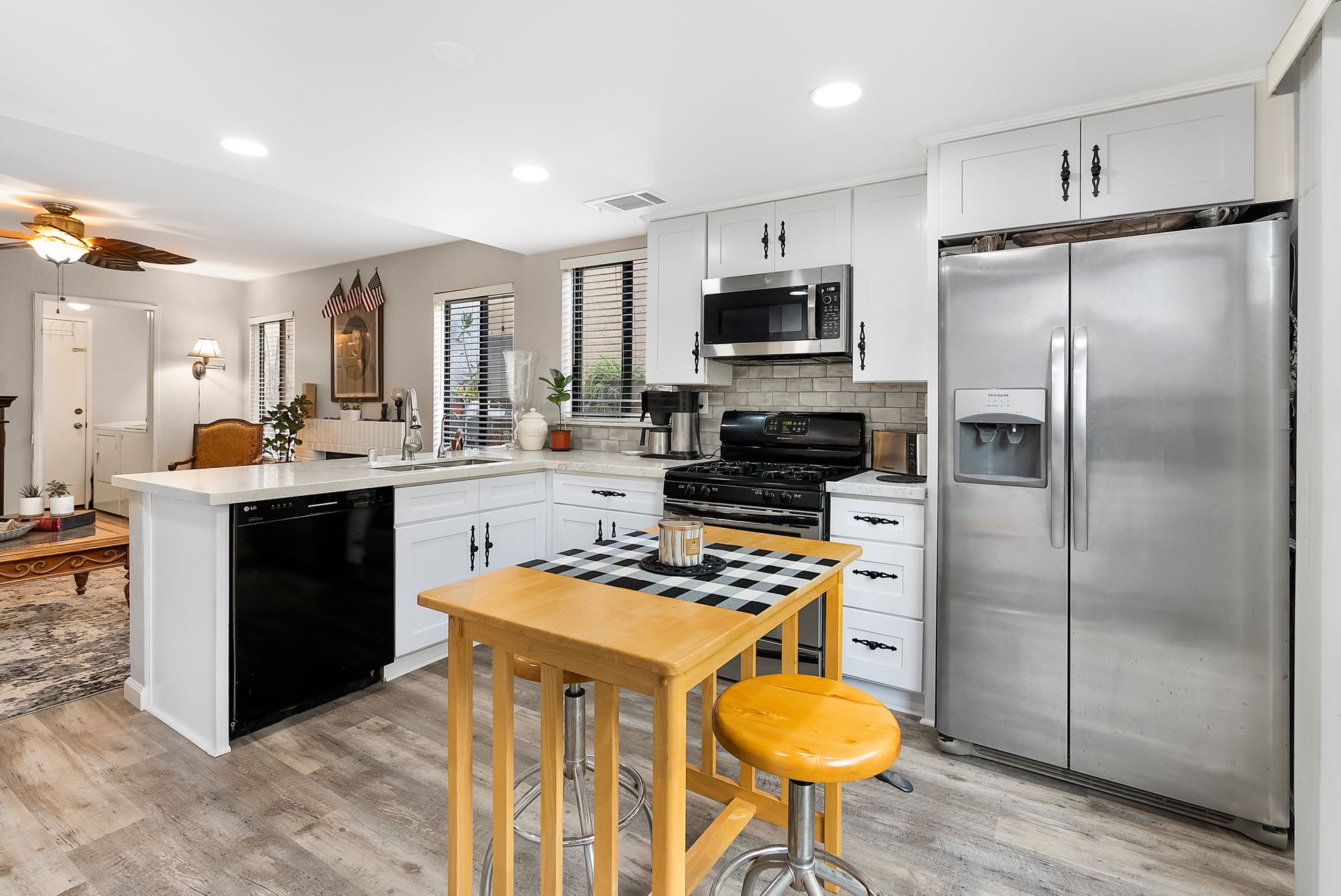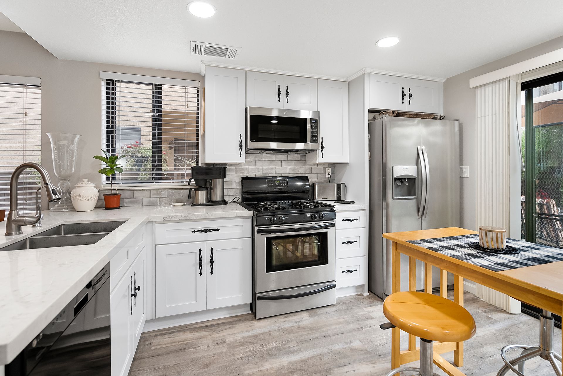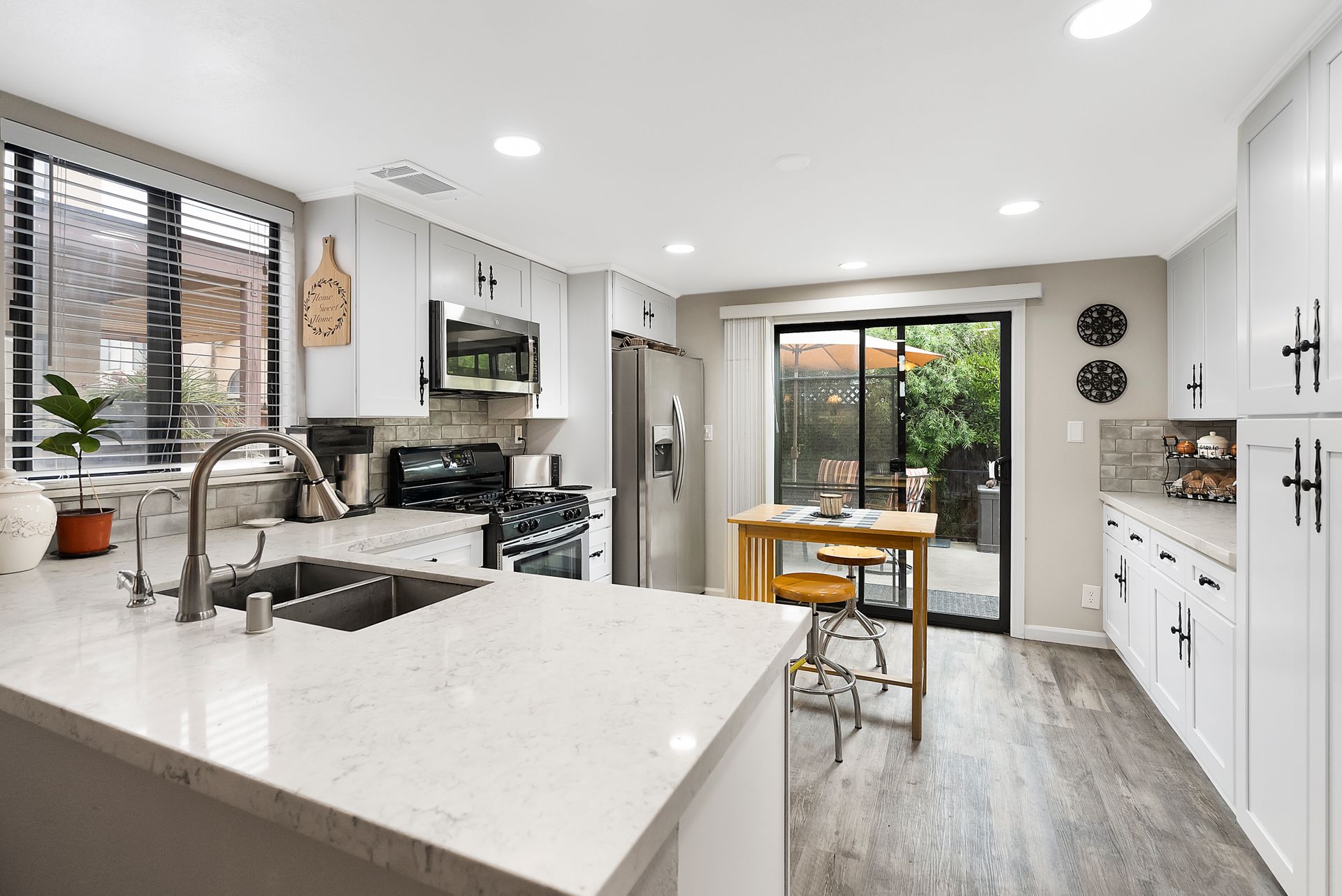 This four bedroom home has been recently updated inside and outside and shows pride of ownership. Upon entering, the abundance of natural light welcomes you into the formal living room and dining room. The luxury vinyl flooring runs throughout the first level, stairs and upstairs hallway. The family room with a fireplace is a great room to sit and relax and is open to the remodeled kitchen, which provides the open concept floorplan. The gorgeous kitchen has white cabinets, quartz counter tops and stainless steel appliances. Additional cabinets were included in the kitchen remodel and provide extra storage for all of those "cook's" gadgets and tools. There is a half bathroom on the first level along with a separate laundry room. Additional updates include the recessed lighting, fixtures, paint inside and outside, light fixtures and ceiling fans and so much more. Upstairs are the three good-sized additional bedrooms with recently installed carpet, a full bathroom and the primary suite. The primary suite is located at the rear of the home and has a good-sized closet, dual sink vanity and an updated tub/shower. Enjoy the back yard that is larger than average and includes a large, cemented side yard that is the ideal place to host those get-togethers and celebrations. The driveway and two-car garage offer plenty of parking space along with the corner lot location providing plenty of street parking for additional cars. The solar makes the affordability of this home better than most, you won’t have to worry about the cost of running the air conditioner on those hot days. You will be pleased with this home's curb appeal upon arrival and the upgrades throughout will make you want to call it home. Enjoy being located near shopping, schools, restaurants and easy freeway access.