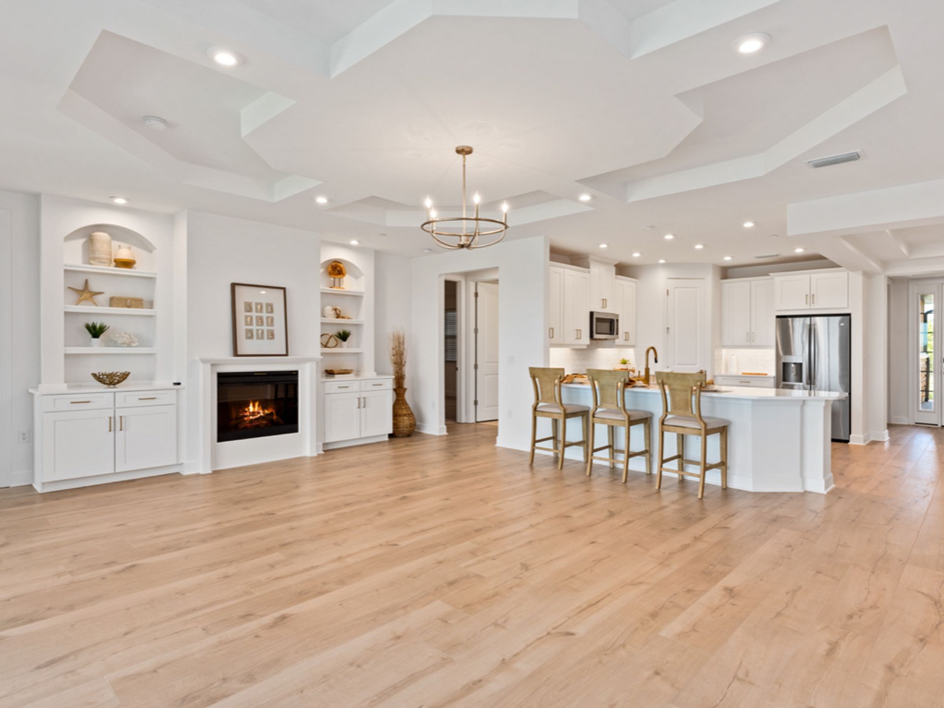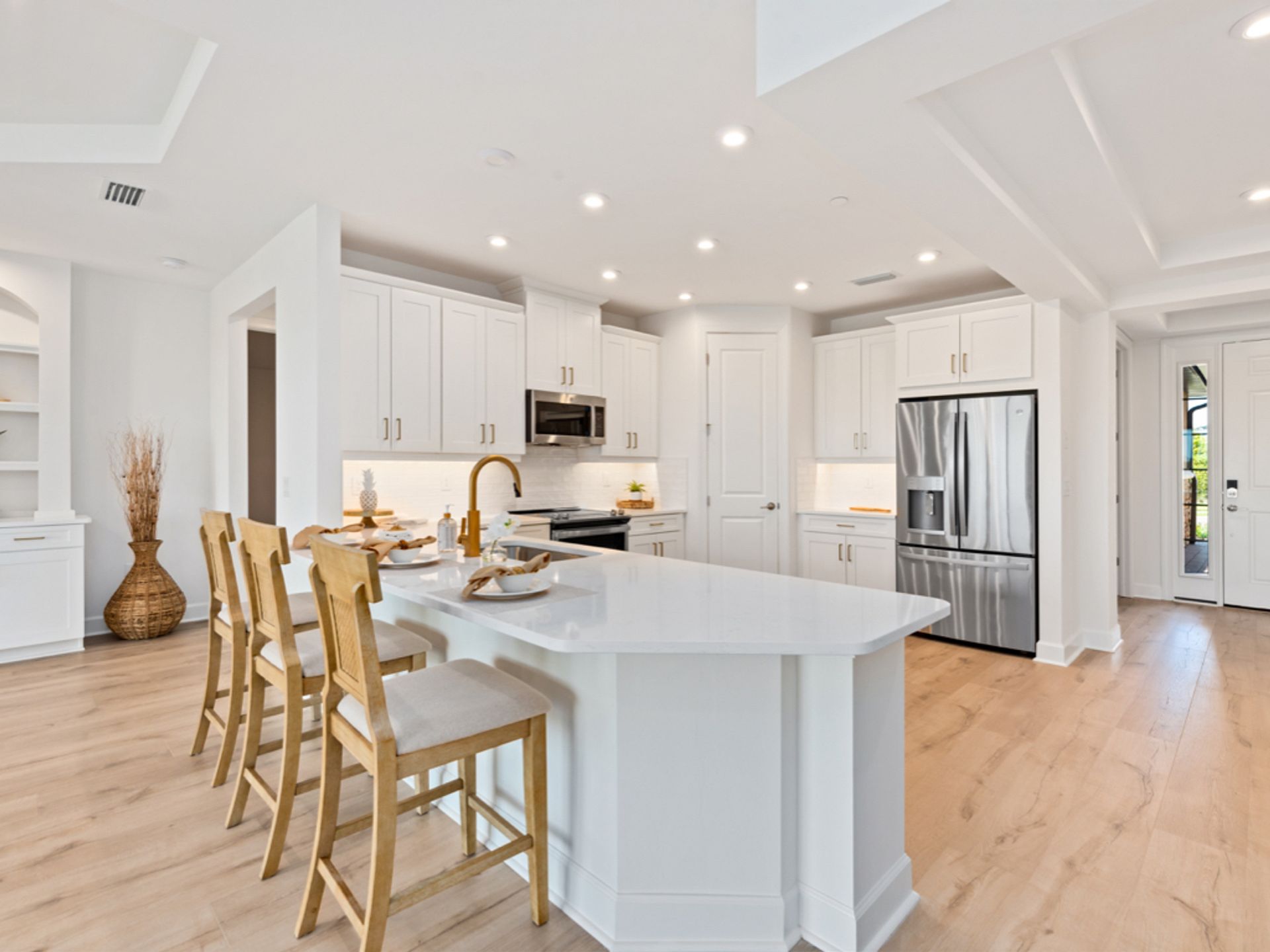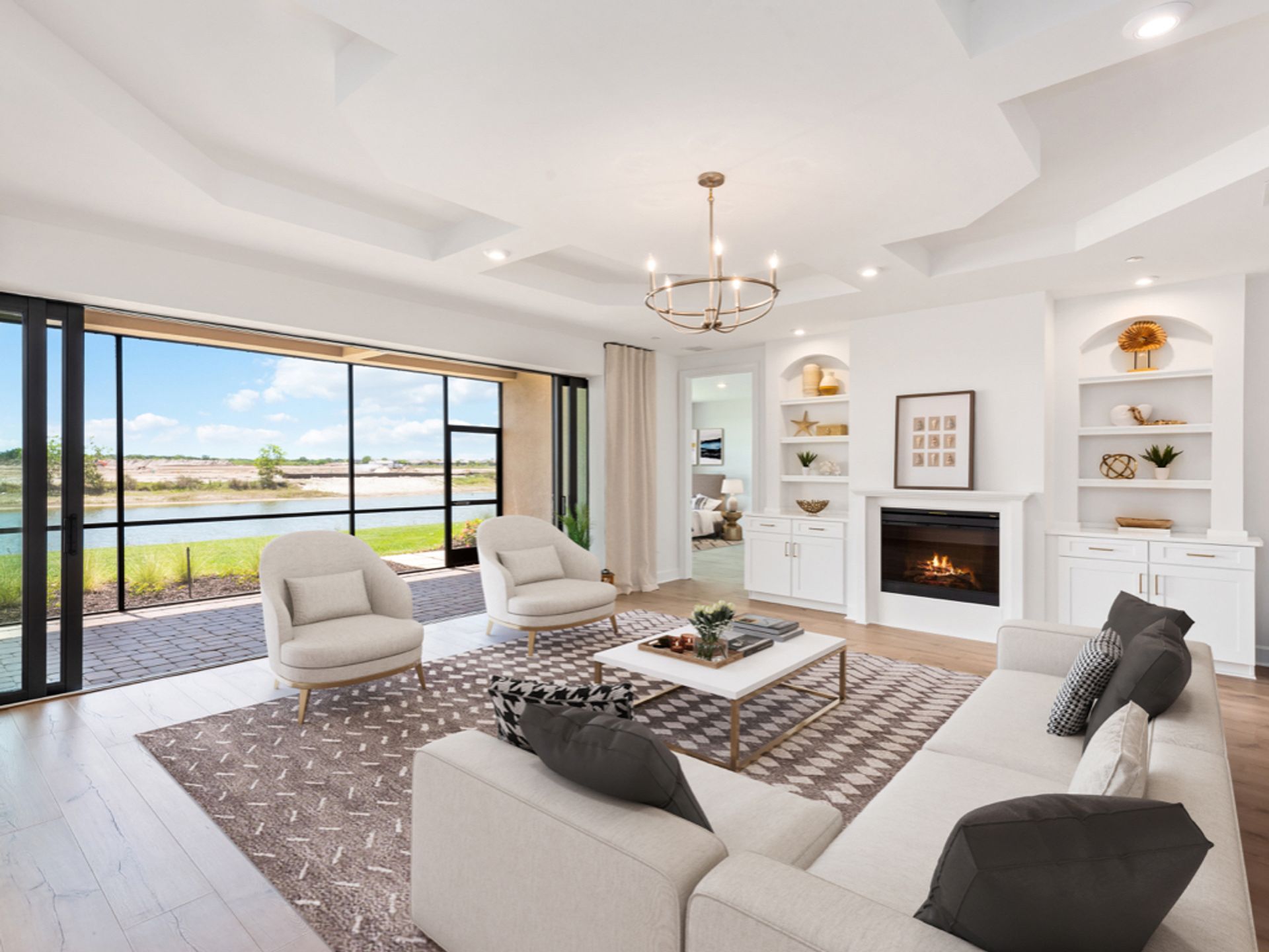 Experience luxury living in the brand-new community of Esplanade by the Islands. This stunning resale condo boasts perfect south-facing lake views and has never been lived in. Two bedrooms, two bathrooms, and an attached one-car garage all located across the street from the community pool. The home boasts impact glass, wood-look flooring, quartz counters, larger kitchen cabinets, a fireplace, built-ins, stainless appliances, tray ceilings, frameless glass shower, high end faucets and fixtures and so much more. A true must see. The community center will have world class amenities including tennis, pickle ball, fitness, spa, Bahama Bar and grill and more. The developer doesn't currently have any inventory for sale, and this is a terrific move-in-ready home now. Please note that some listing photos used virtual staging.