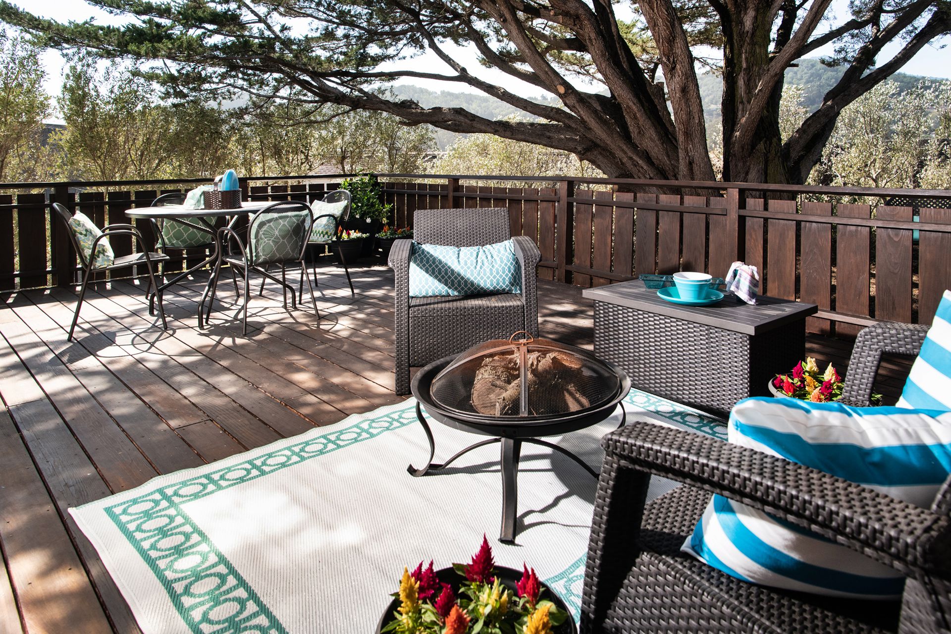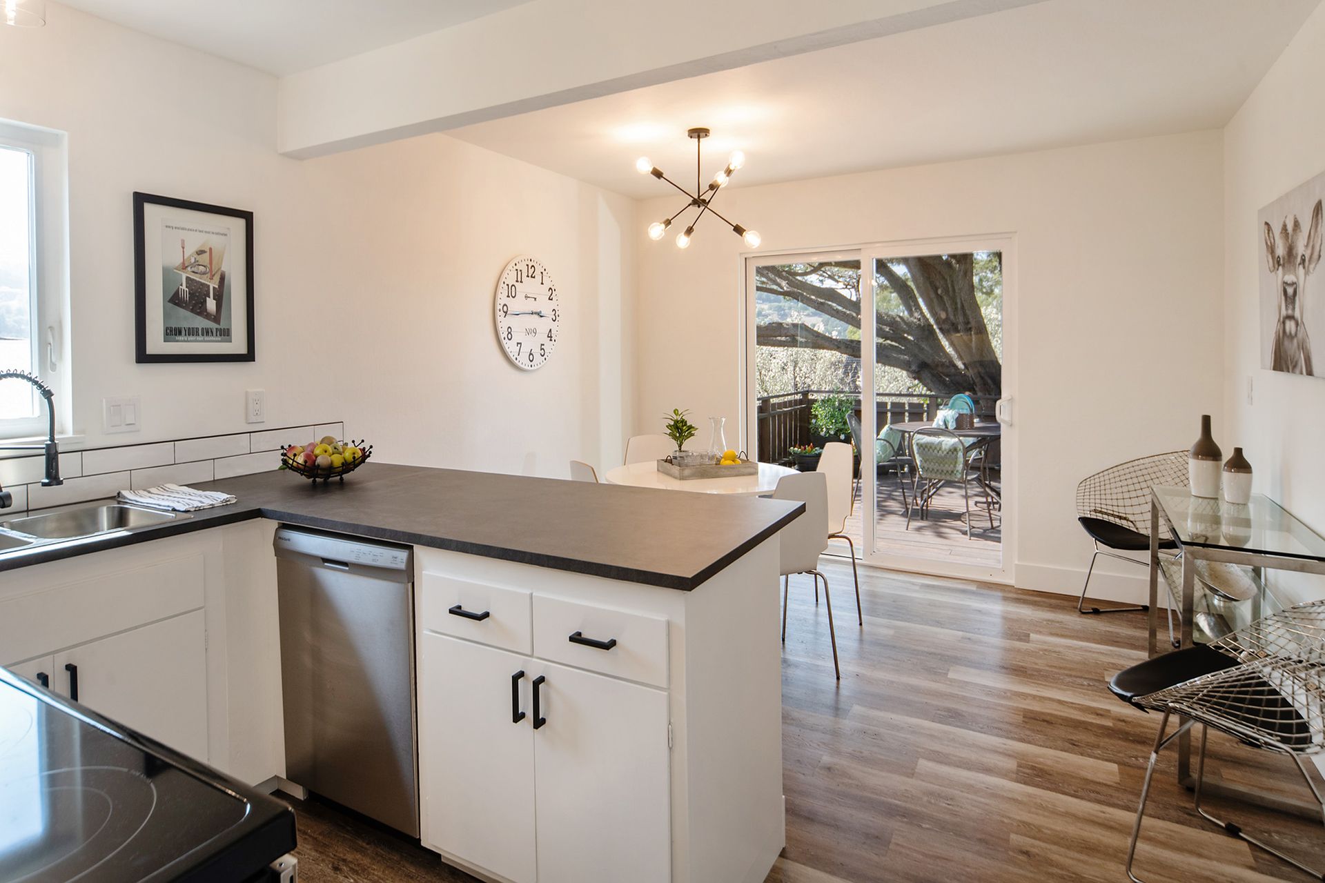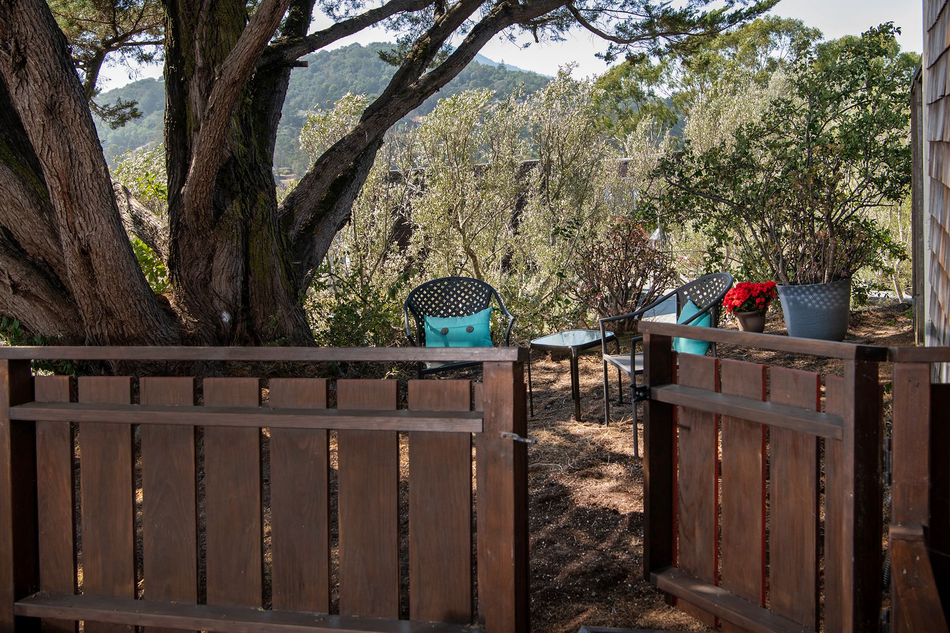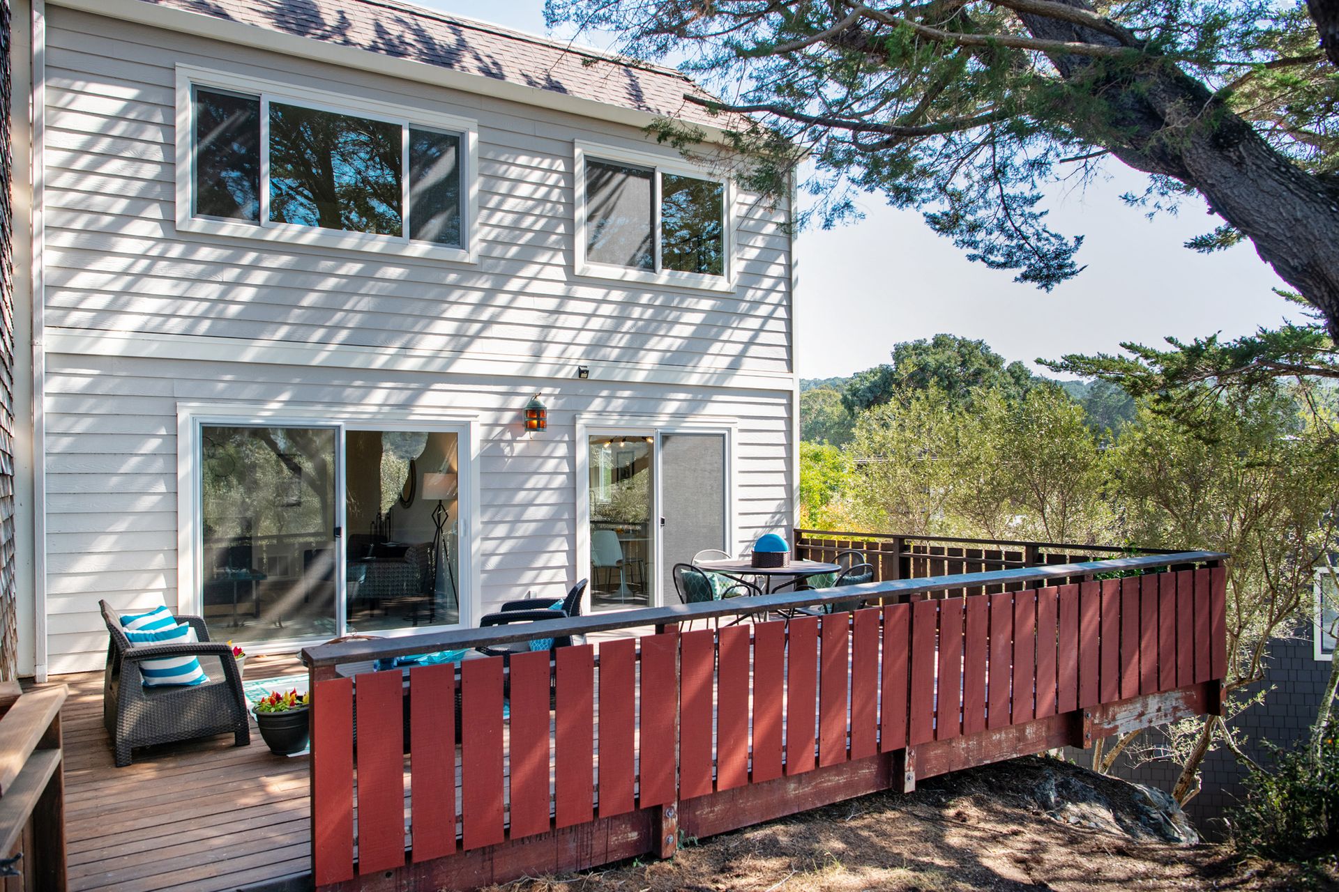 The living room, kitchen and dining area flow to the spacious deck, facing Mt. Tam and framed by a marvelous Monterey cypress tree. This private and serene setting is ideal for entertaining guests or a tranquil afternoon with a good book.