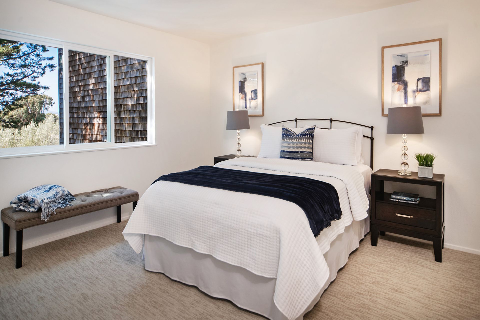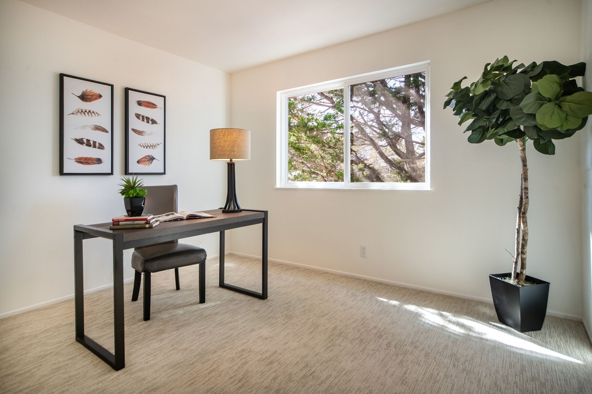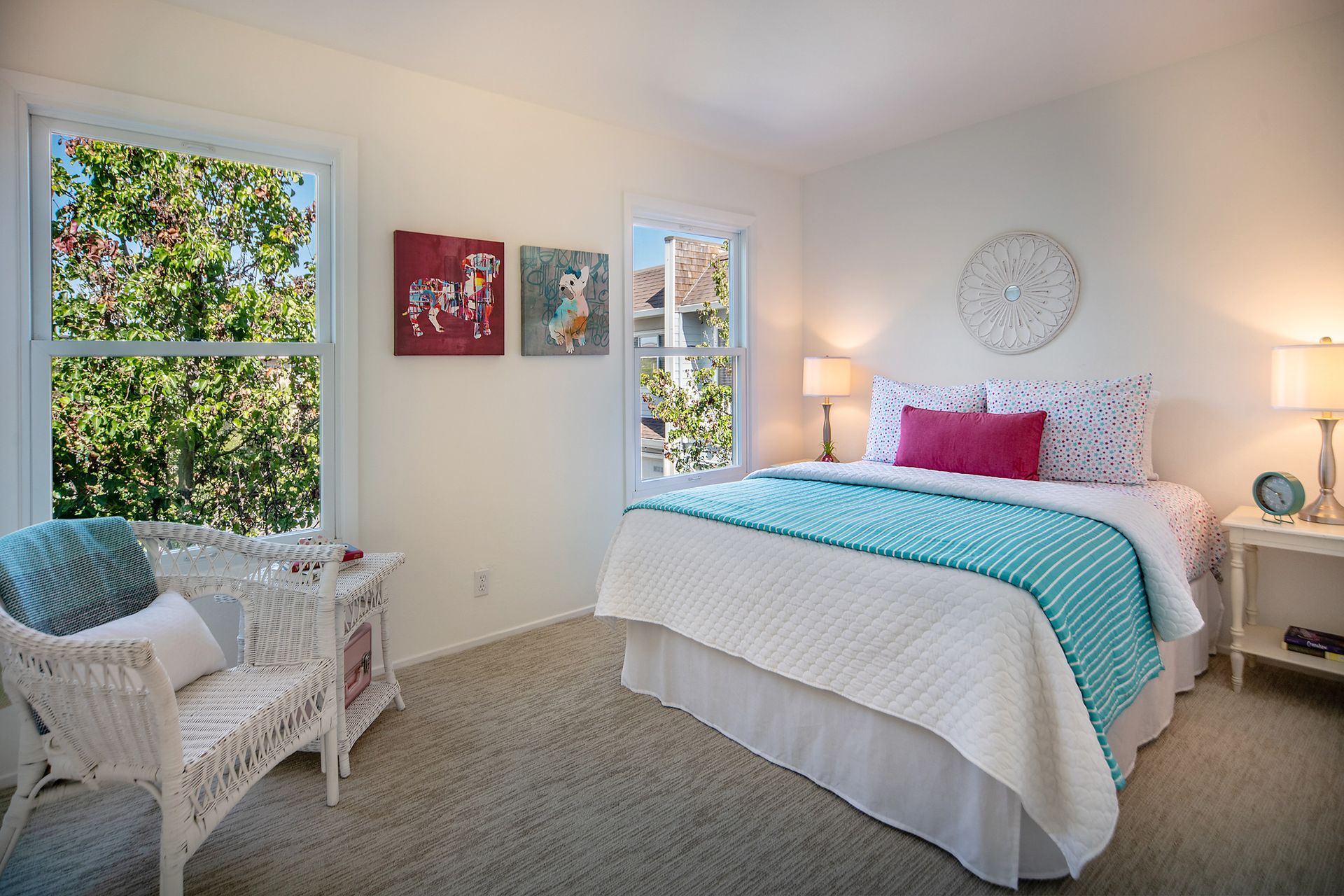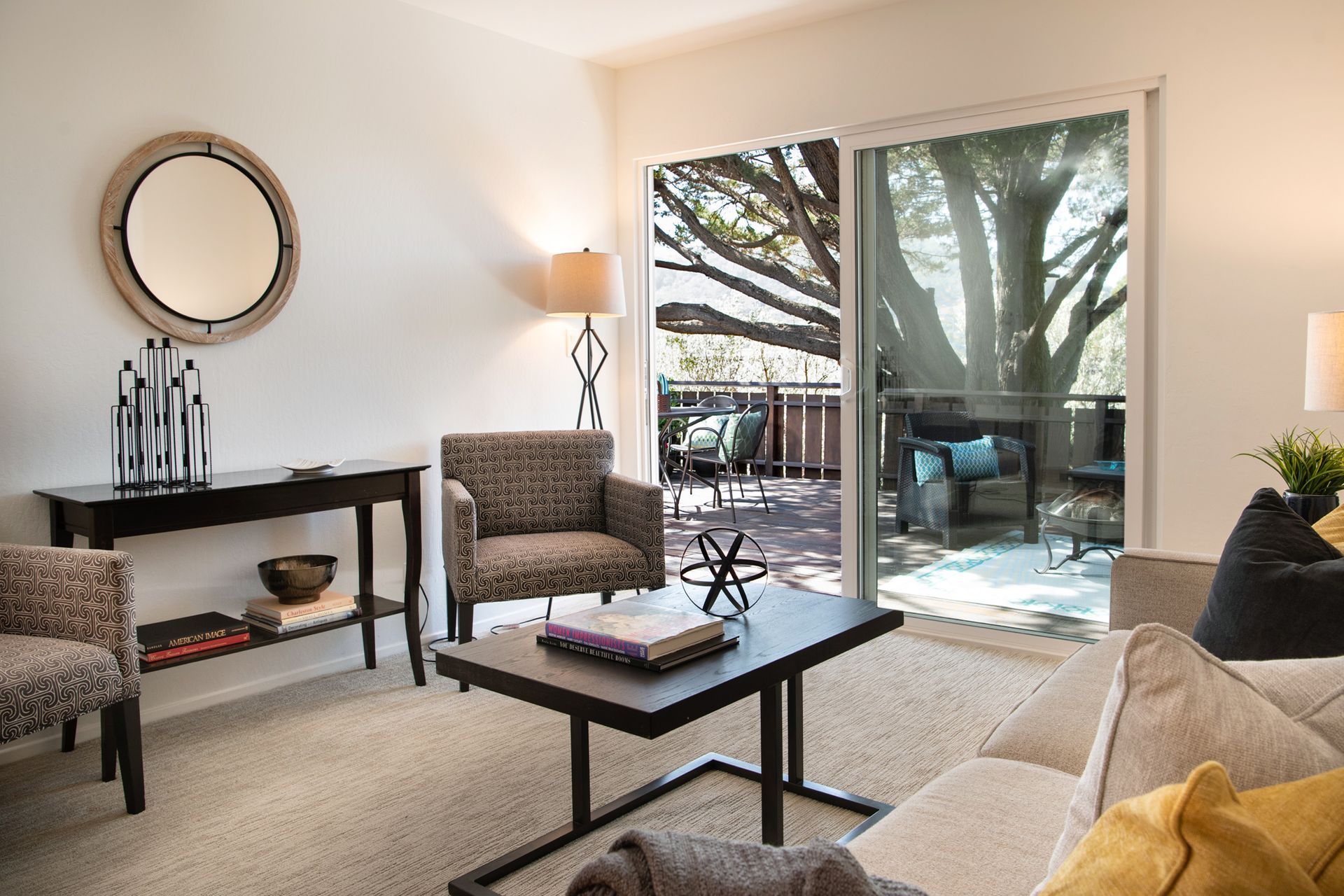 The living room, kitchen and dining area flow to the spacious deck, facing Mt. Tam and framed by a marvelous Monterey cypress tree. This private and serene setting is ideal for entertaining guests or a tranquil afternoon with a good book.