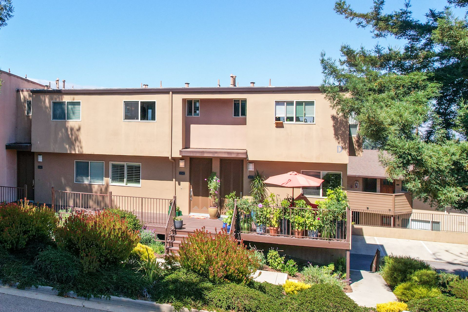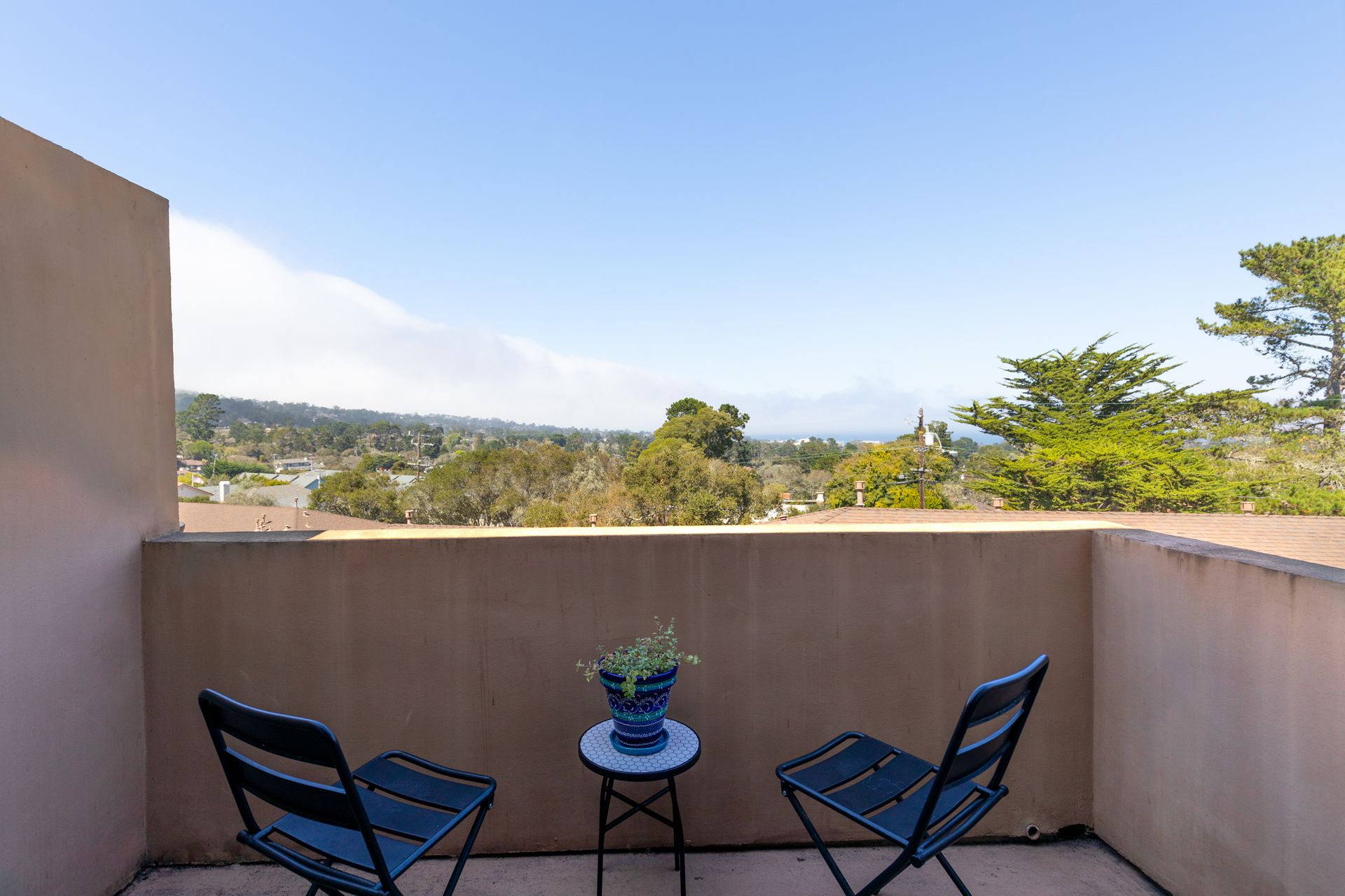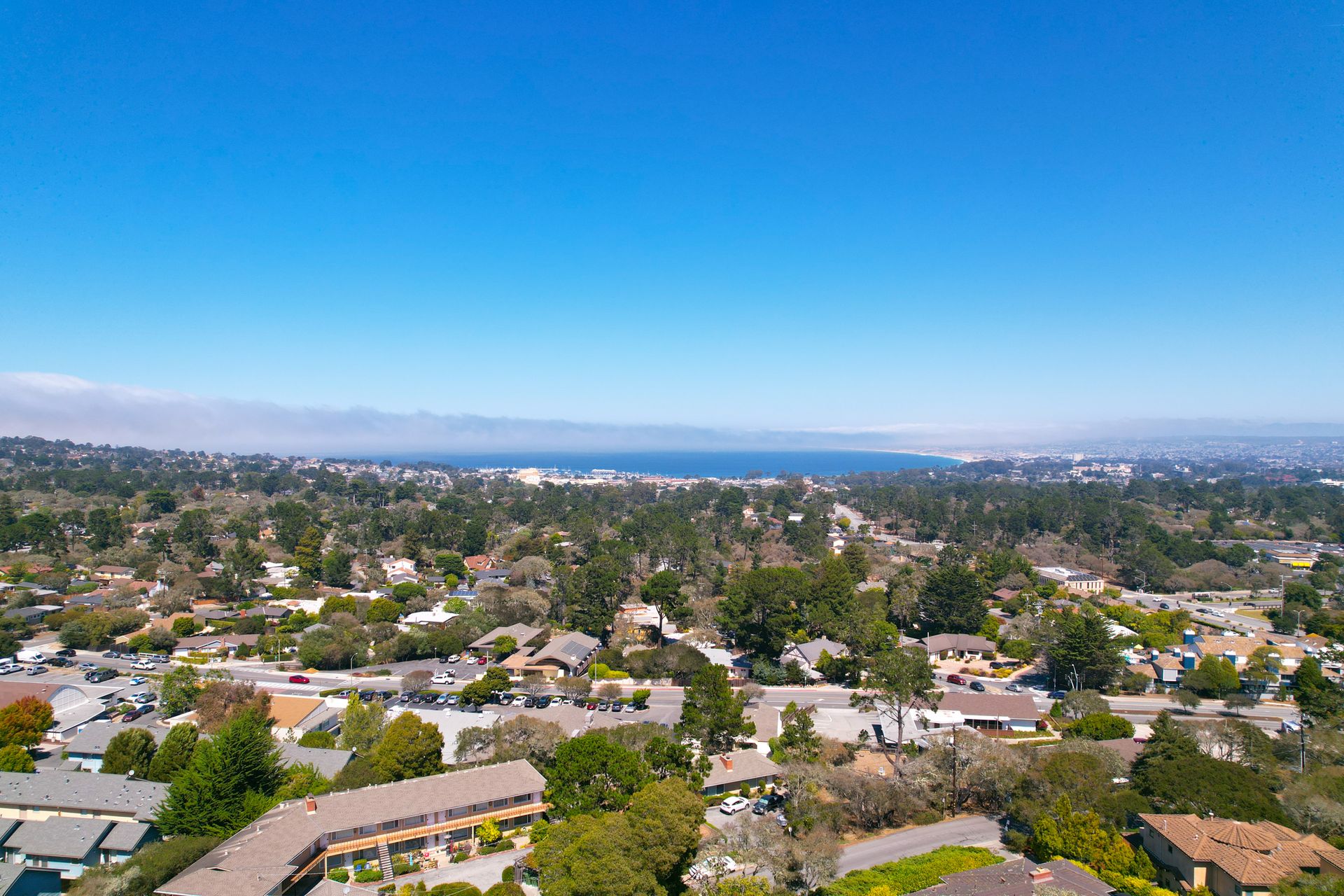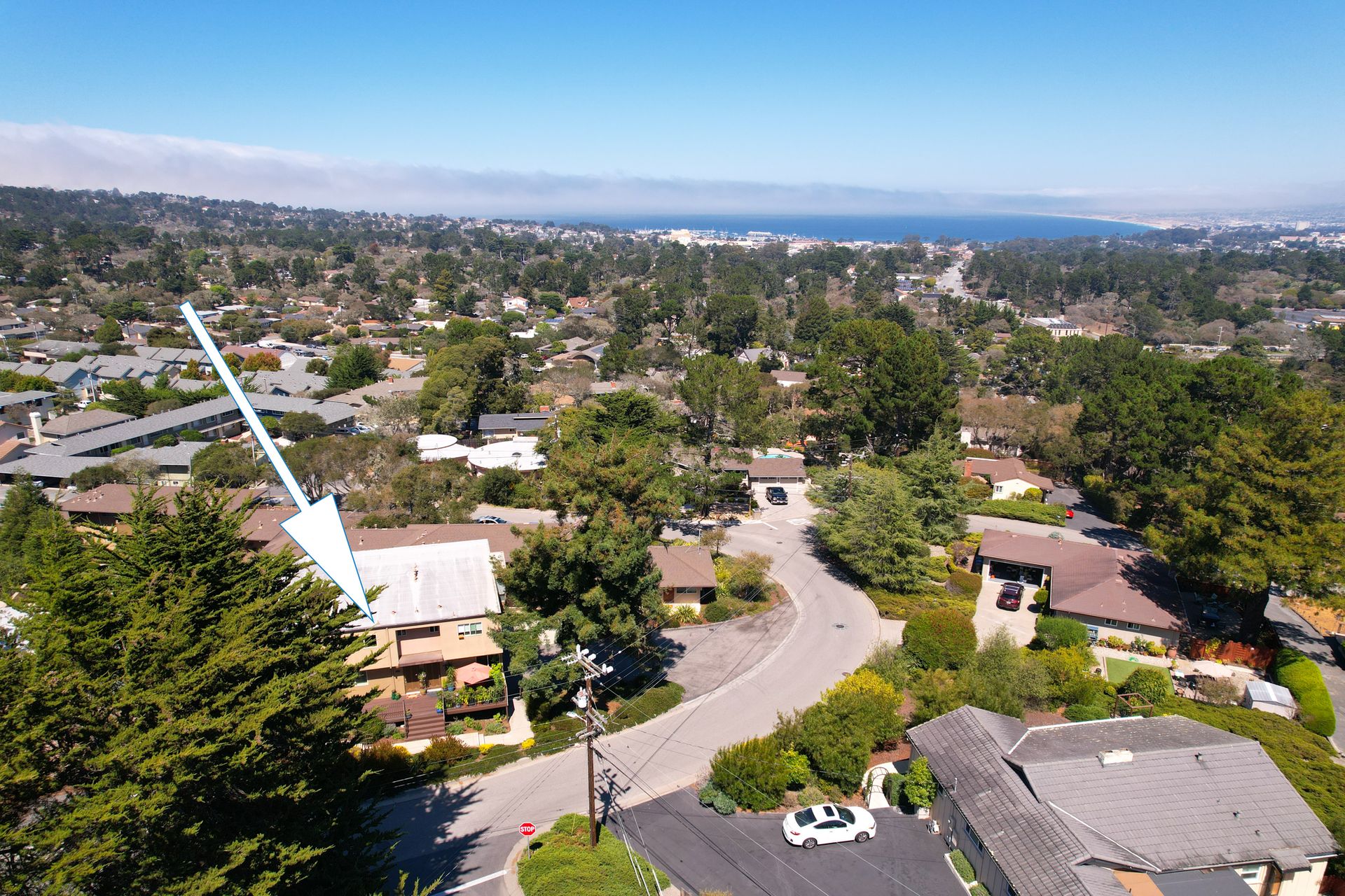 VIEWS, VIEWS, & more VIEWS! This bright 2 bed 1.5 bath Monterey condo offers the laid-back coastal living you deserve. As you step inside the two-level layout, crisp white tones tastefully contrast the new dark engineered hardwood flooring on the main level. Upstairs, a stunning display of exposed wood-beamed ceilings spans your seamlessly connected entertainment areas, anchored by a wall of large glass sliders and windows that usher in brilliant sunlight and panoramic ocean & forest views. Enjoy cocktails on the balcony before sharing meals in the chandelier-lit dining area. Steps away, a well-sized kitchen equips you with SS appliances, tons of cabinetry, and a multi-seater breakfast bar. Retire to the comforts of your private bedrooms on the main level, one with an exclusive deck that commands scenic city light views. Additional perks are a stackable washer/dryer, storage room, tankless water heater, and 2 covered parking spaces. Just a short walk to Del Monte Shopping Center!