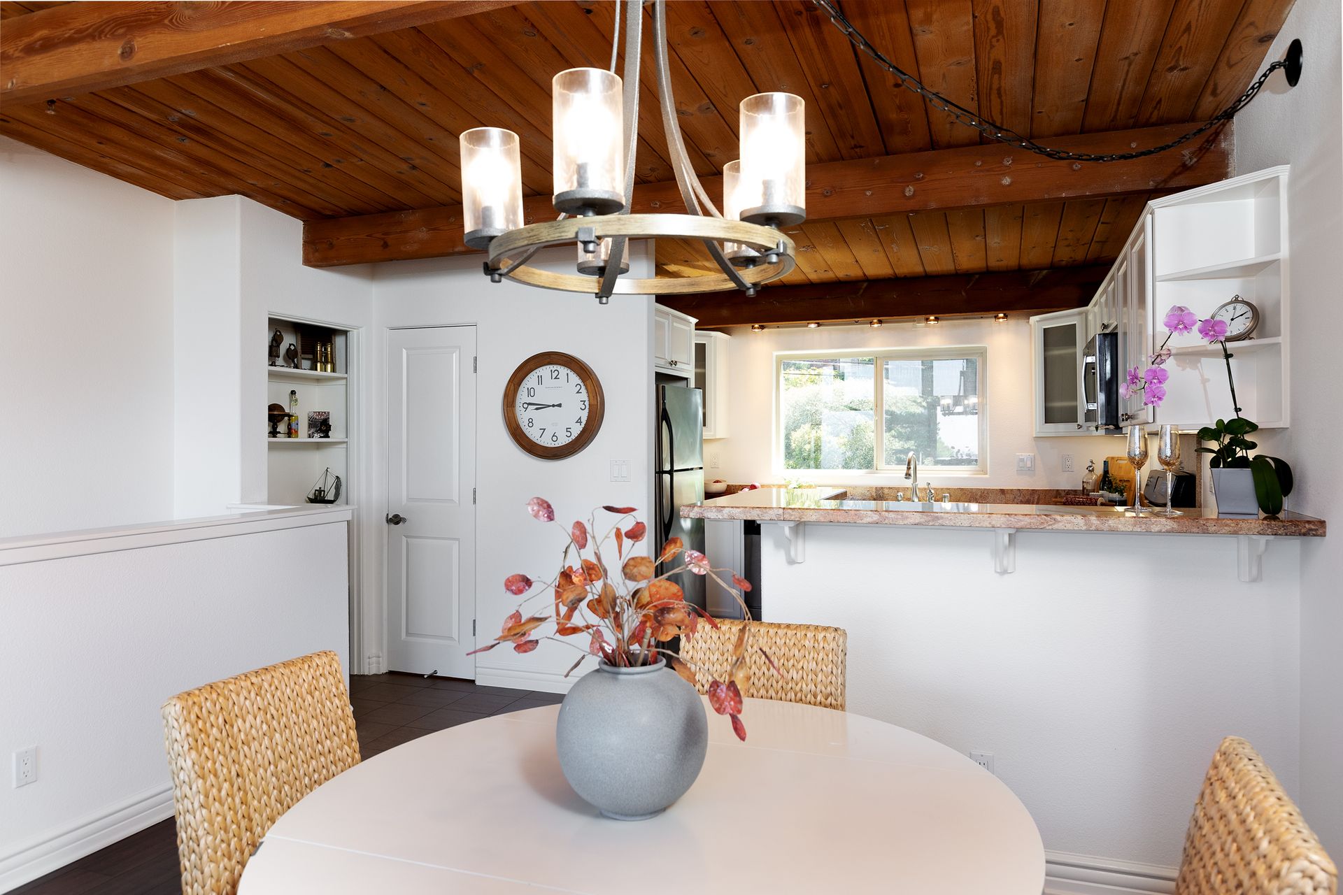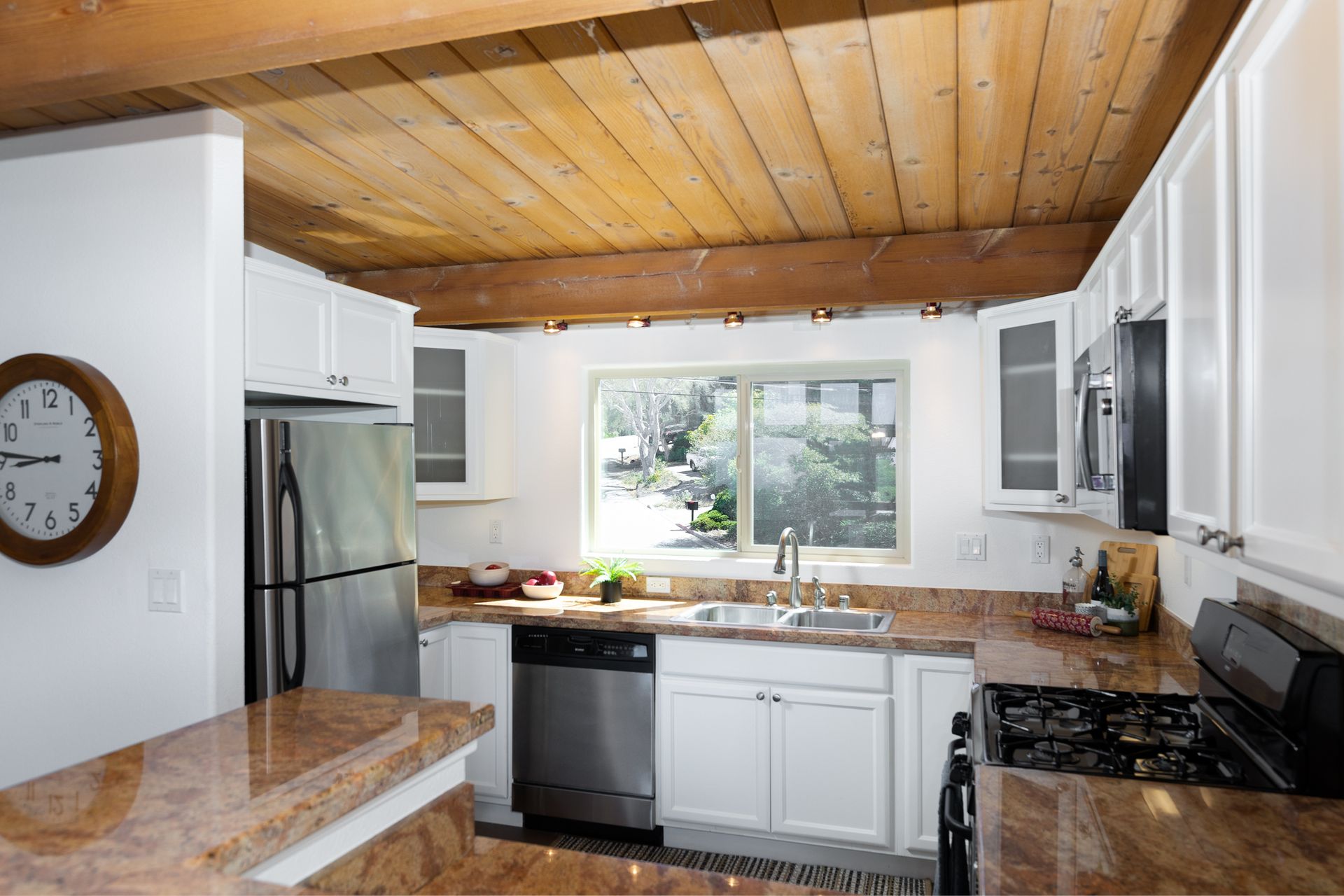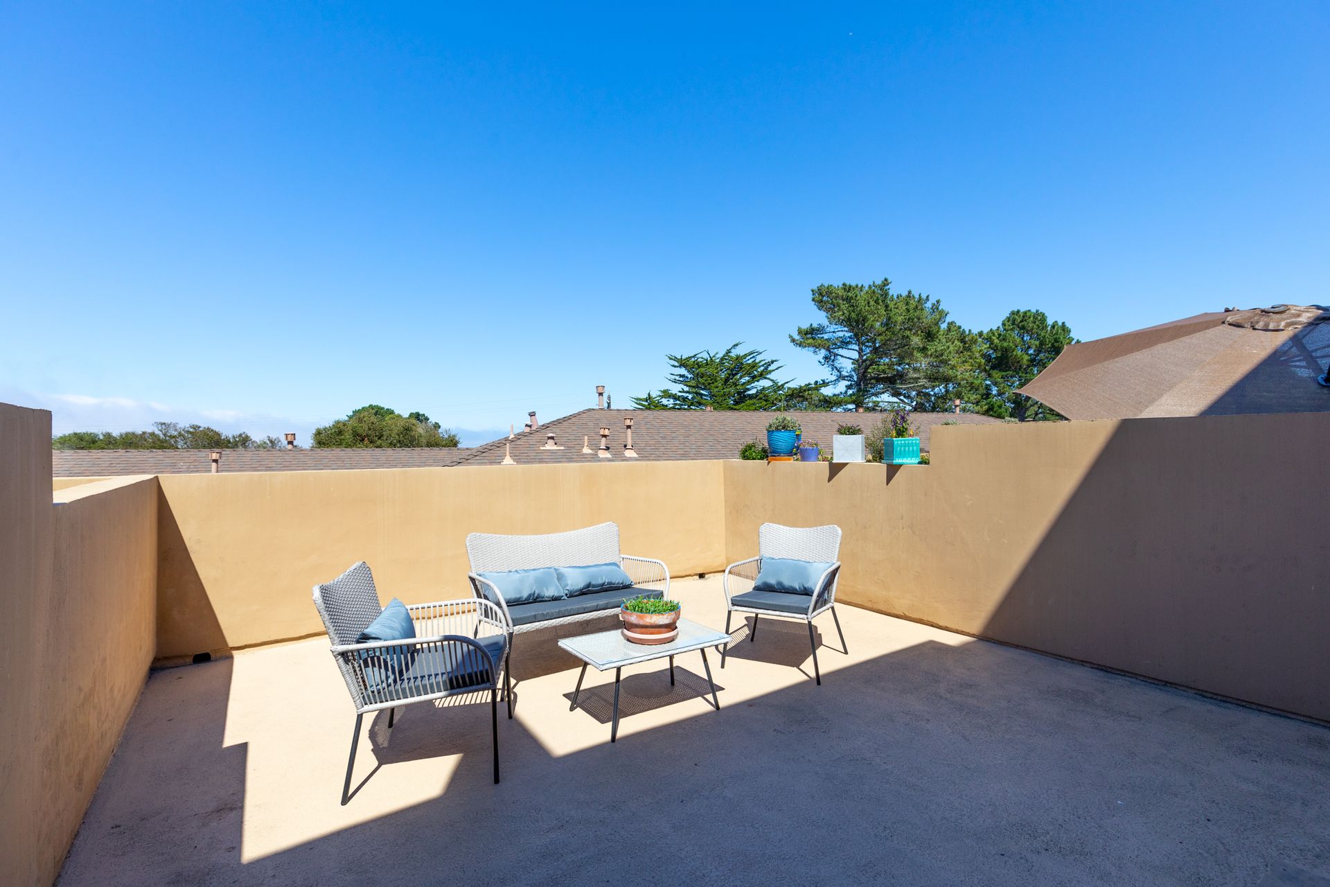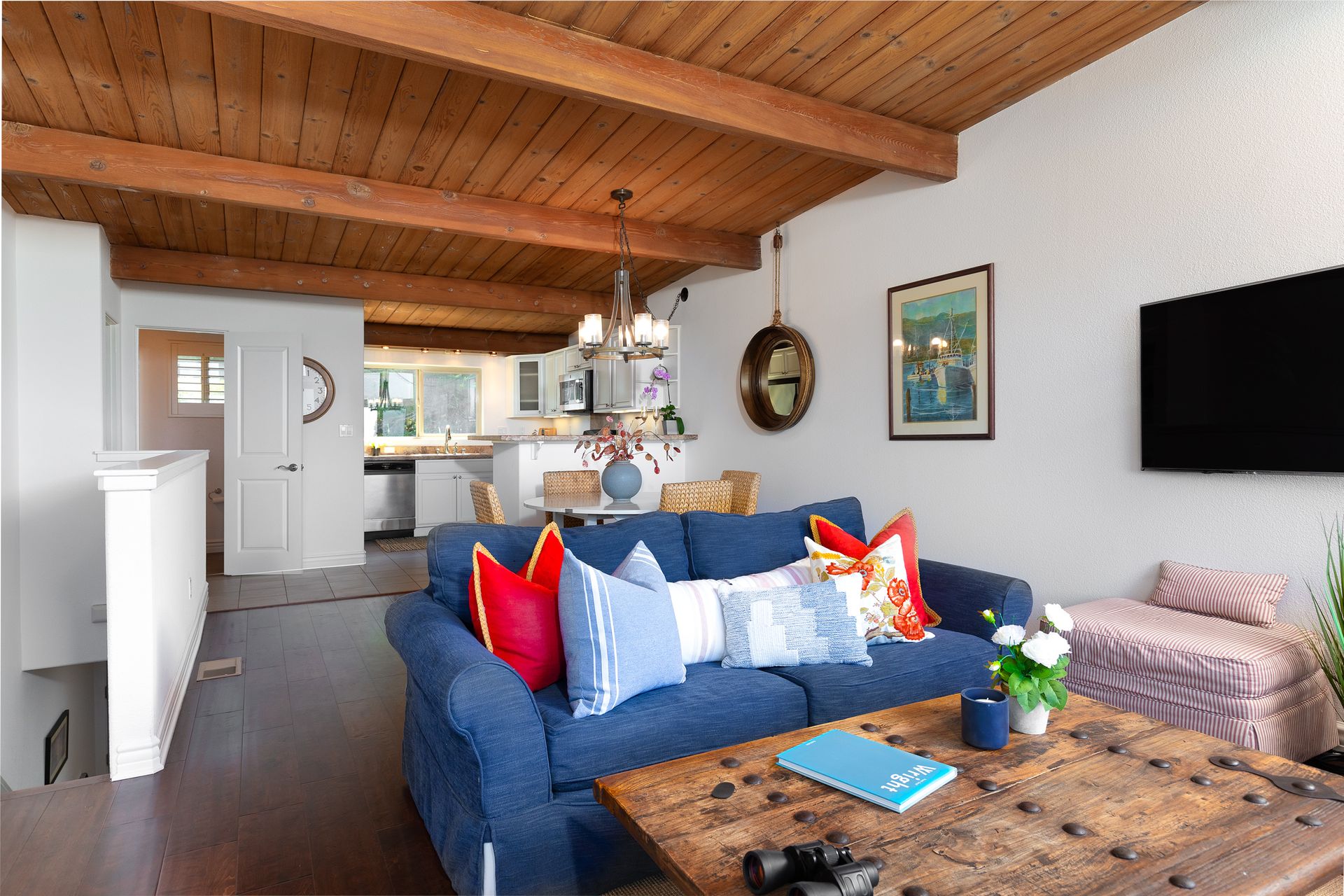 VIEWS, VIEWS, & more VIEWS! This bright 2 bed 1.5 bath Monterey condo offers the laid-back coastal living you deserve. As you step inside the two-level layout, crisp white tones tastefully contrast the new dark engineered hardwood flooring on the main level. Upstairs, a stunning display of exposed wood-beamed ceilings spans your seamlessly connected entertainment areas, anchored by a wall of large glass sliders and windows that usher in brilliant sunlight and panoramic ocean & forest views. Enjoy cocktails on the balcony before sharing meals in the chandelier-lit dining area. Steps away, a well-sized kitchen equips you with SS appliances, tons of cabinetry, and a multi-seater breakfast bar. Retire to the comforts of your private bedrooms on the main level, one with an exclusive deck that commands scenic city light views. Additional perks are a stackable washer/dryer, storage room, tankless water heater, and 2 covered parking spaces. Just a short walk to Del Monte Shopping Center!
