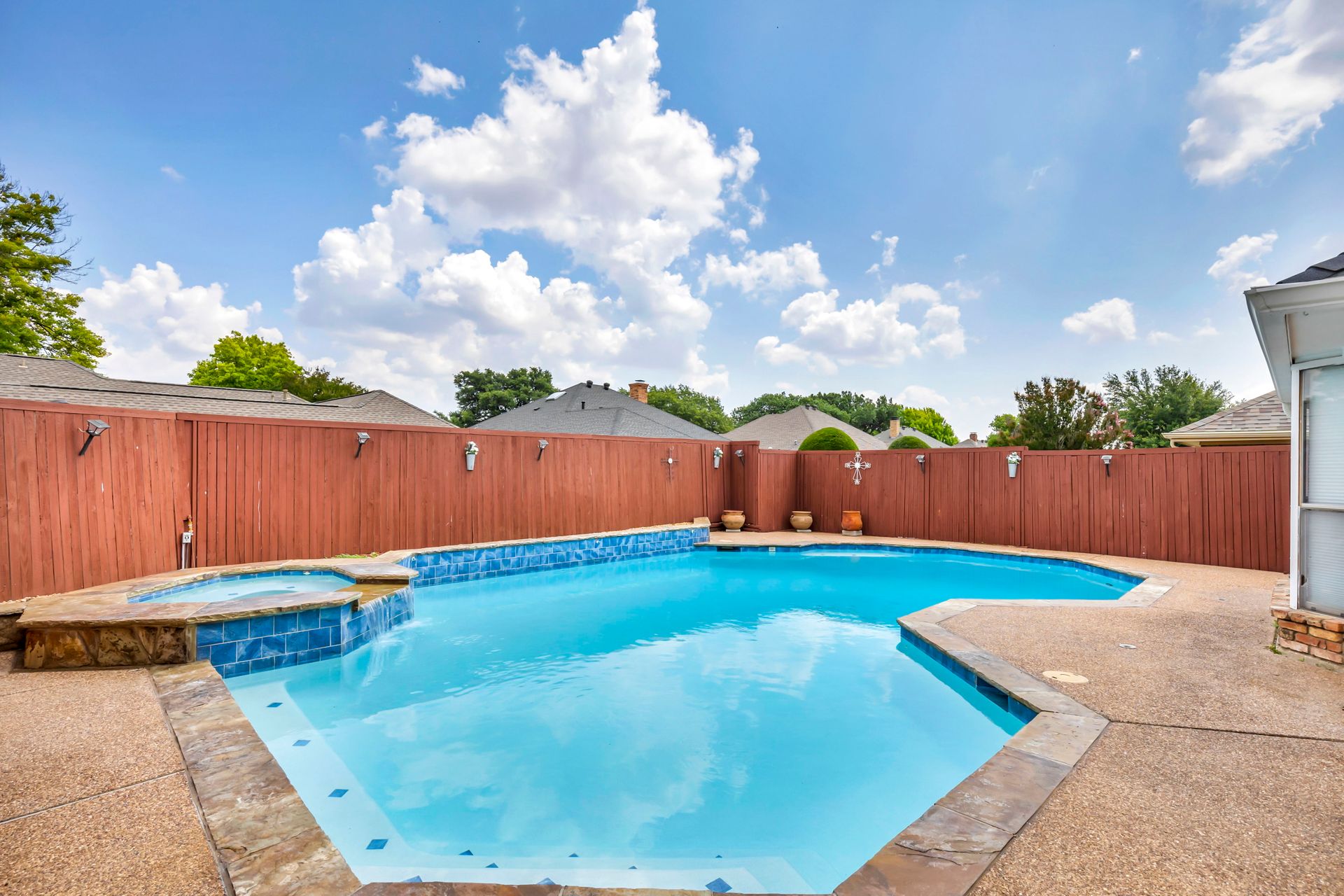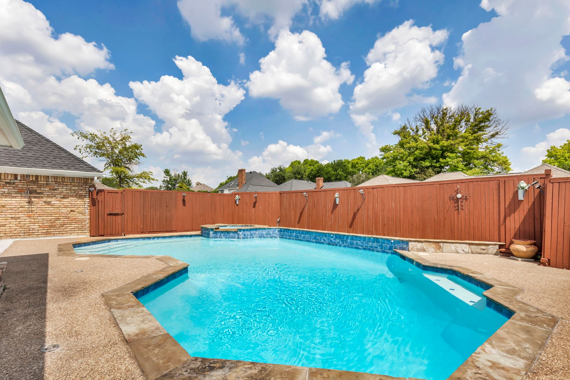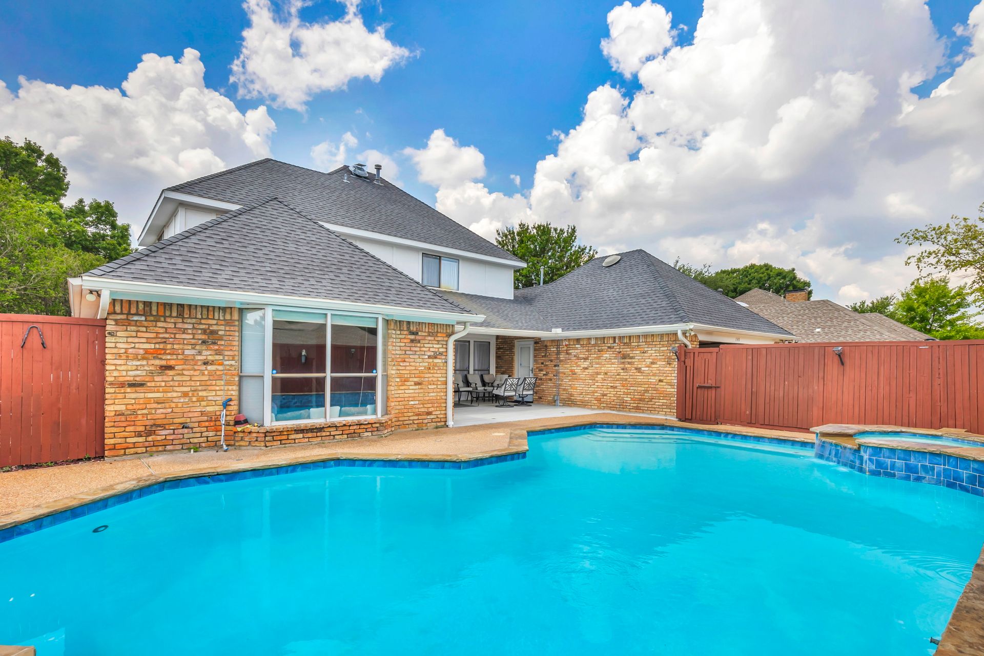 Premier location at the heart of Plano & NO HOA! With over 3100 sqft, 4 beds, 4 total baths, & pool this beauty is a rare find at this location for the price! Step inside to discover a beautifully designed interior that extends seamlessly to the pool & patio areas. Spacious primary suite offers breathtaking views of your sparkling pool. Upstairs has 2 beds sharing a full bath & another en-suite. Fully weatherproofed for maximum comfort & efficiency with significant attention to detail to its updates. Kitchen boasts quartz-countertops, island, & ceramic tile. 2-car garage with epoxy flooring. Attached roofed storage shed on West side of the home. Indulge in the beautiful outdoors with the pristine pool, expansive tiled entertainment area, & covered patio. Offers easy access to all major highways as well as everyday conveniences & amenities. Additional improvements since 2020 include: New HVAC, storm doors, replastered pool & new equipment, AquaProof laminate, new fence, & much more.