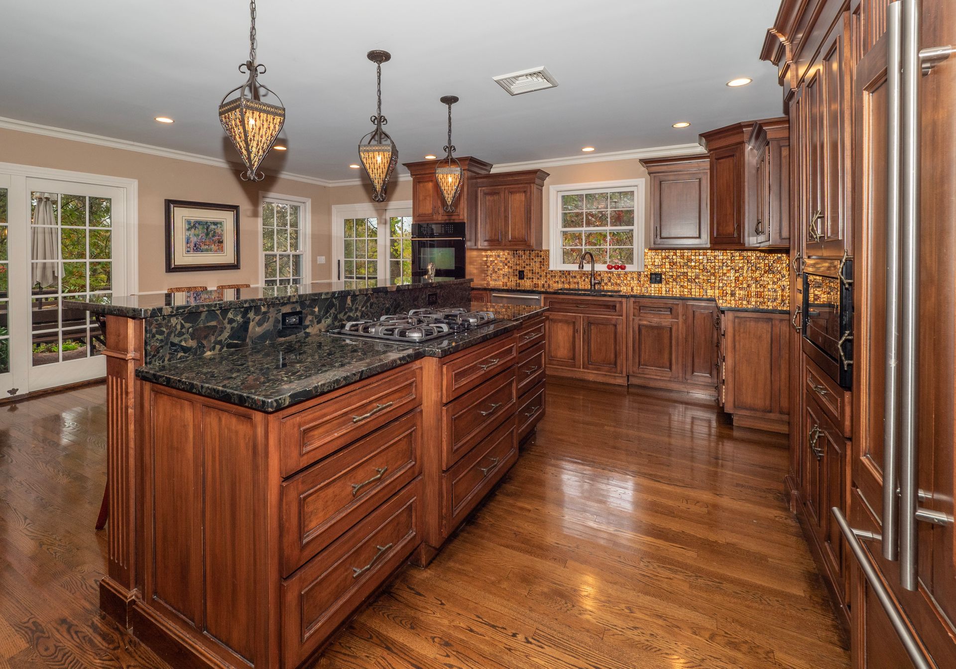 Nestled at the end of a quiet cul-de-sac, this lovely colonial home features an impressive floor to ceiling entrance w curved stairway, refinished hardwood floors and is meticulously maintained inside and out. With a wonderful floor plan for entertaining, the gourmet eat in Kitchen w custom cabinetry, double ovens, HUGE granite center island w striking chandelier like pendants complementing murano glass backsplash & copper sink has a cozy FPLC sitting area and 2 sets of sliding doors opening to the expansive deck. Spacious Family Rm w FPLC and built ins also has sliders to the deck. & is adjacent to a 1st floor Office or Guest Rm w access to full bath, Formal Dining Rm w bay window & front to back Living Rm w FPLC complete the 1st floor. 2nd flr features a generously sized Master Bedroom & fabulous spa like bath w oversized shower, stylish claw foot soaking tub, tile floor, custom granite double sink vanity, walk-in closet + 3 add’l bedrooms w spacious closets. Finished walkout Basement w wonderful light to allow for 2nd Family Rm, Game Rm, Gym/Home Office. 3 car garage. Redding CT boasts an excellent school system and is a town that values safety & preservation of open space. Enjoy hiking trails, private golf course, biking, kayaking...a perfect retreat from city life.