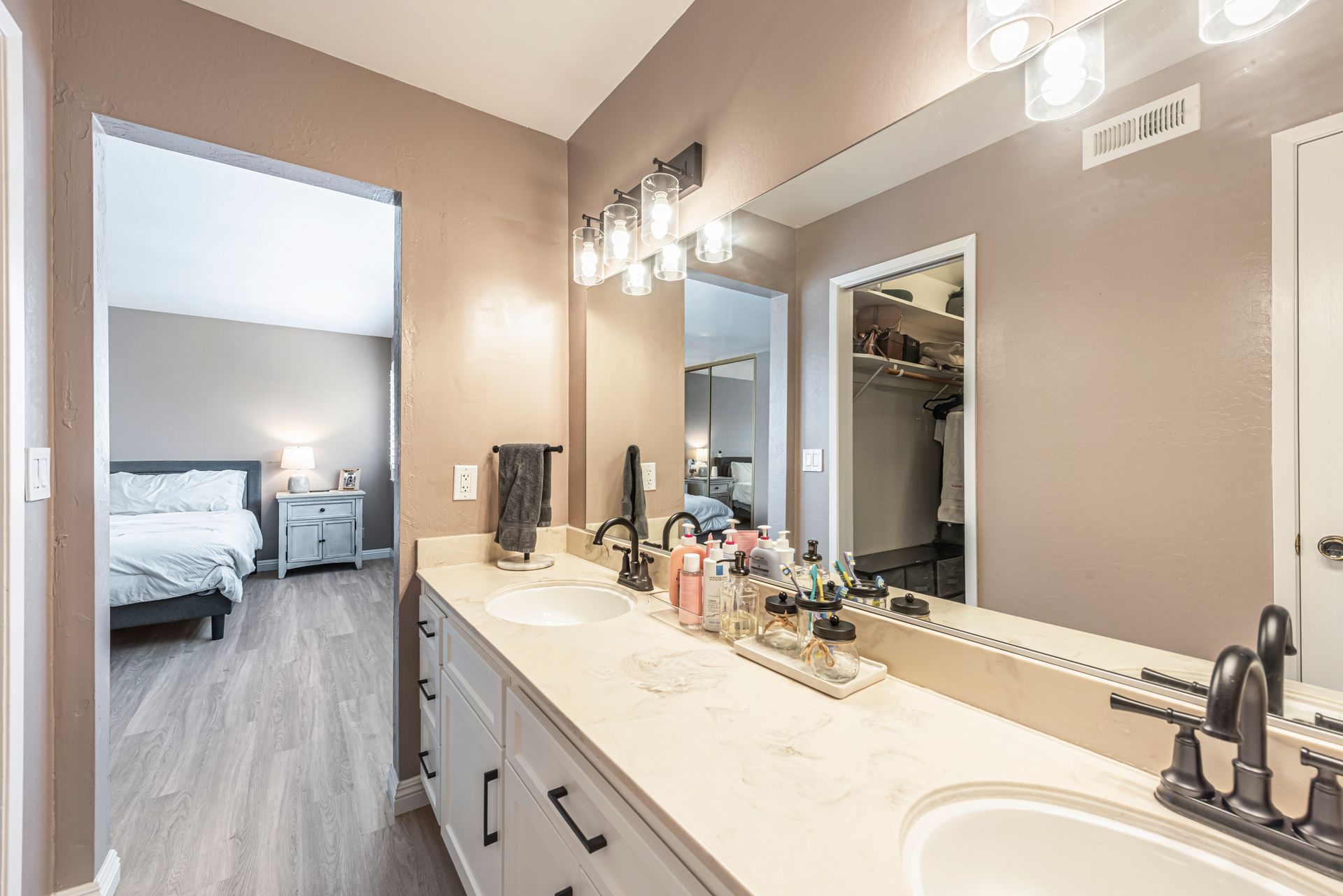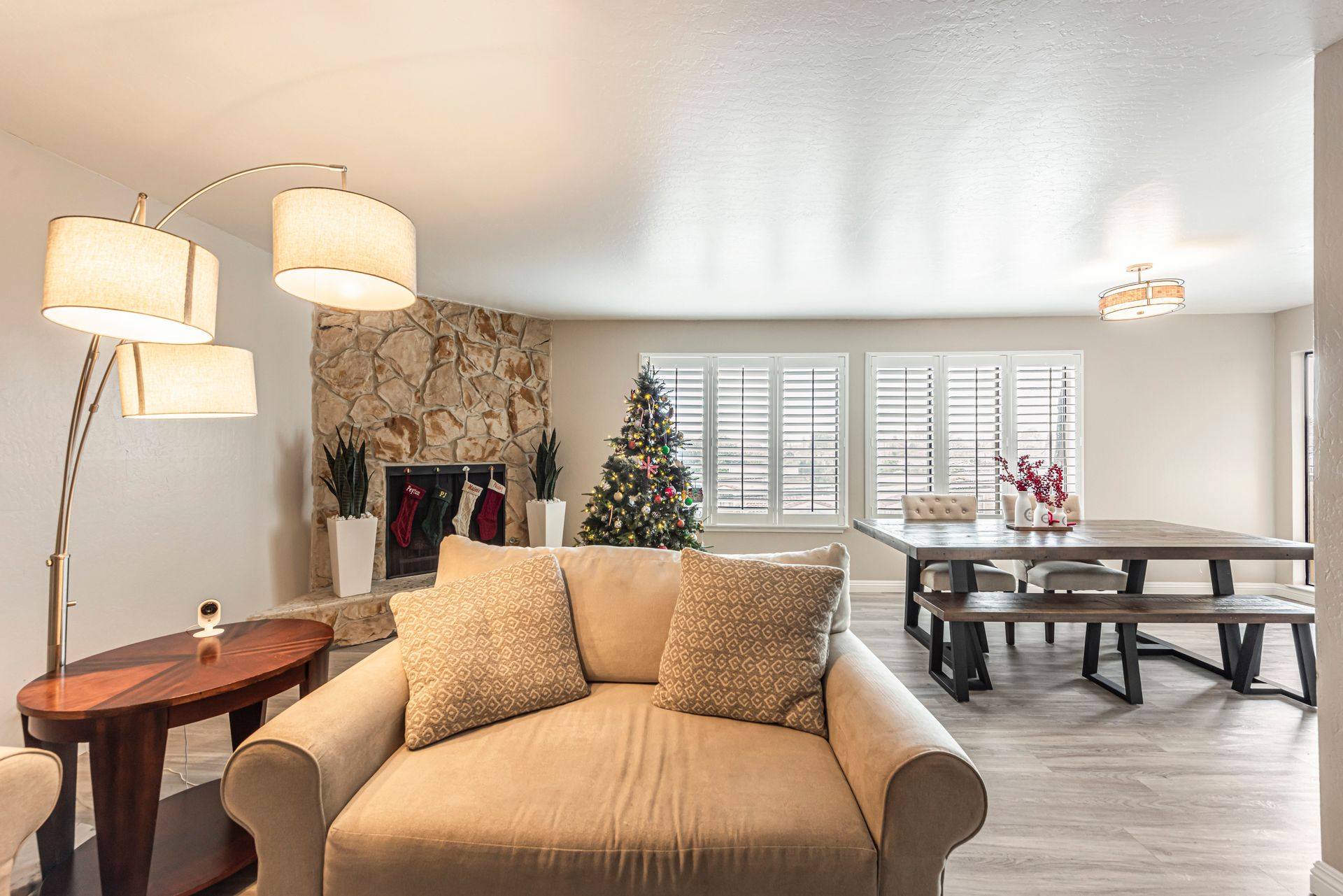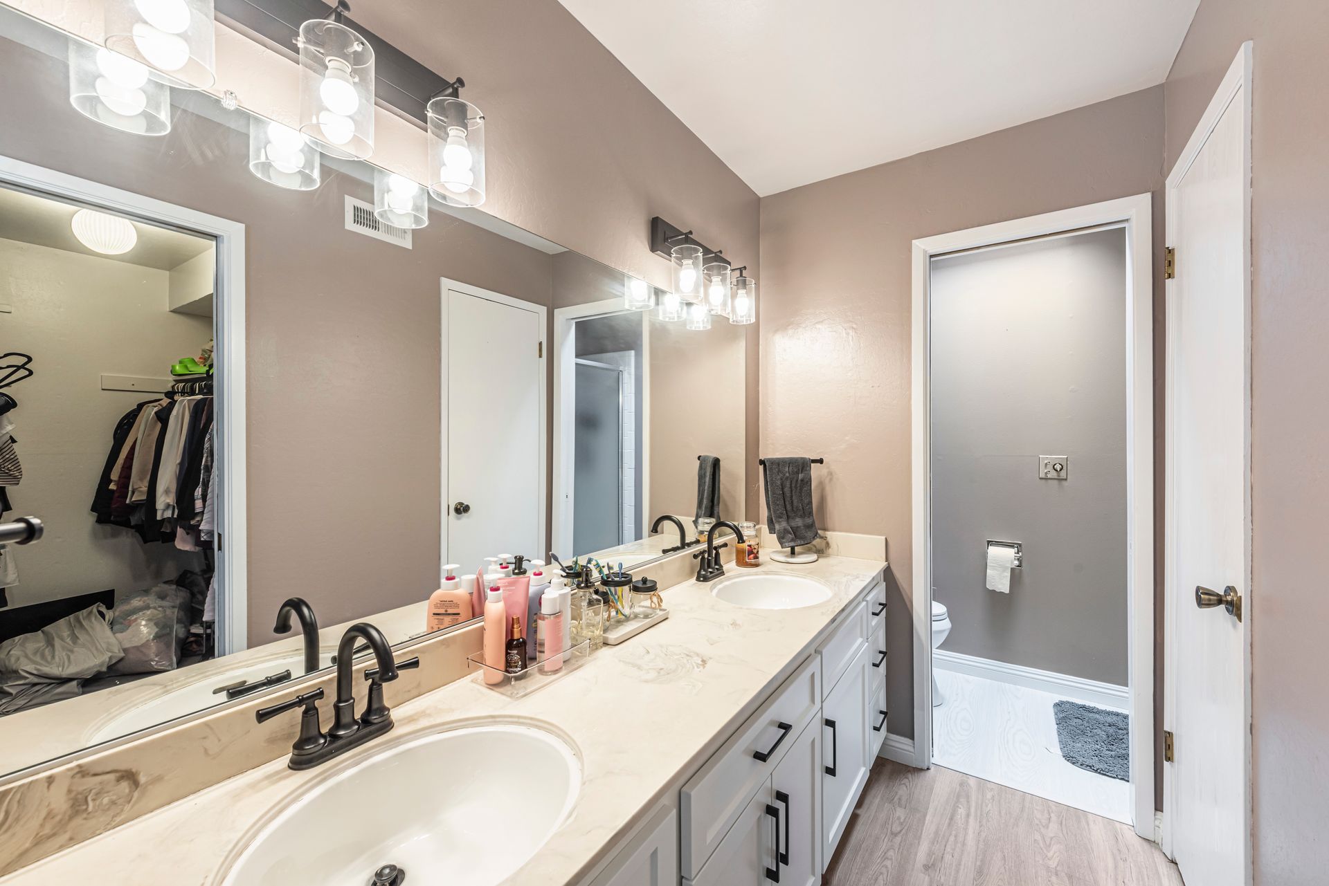 The upgraded kitchen boasts newer cabinets, luxury vinyl flooring and stainless steel appliances, including an upgraded refrigerator, stove and dishwasher. The expansive primary suite includes a walk-in closet and an en-suite bath.