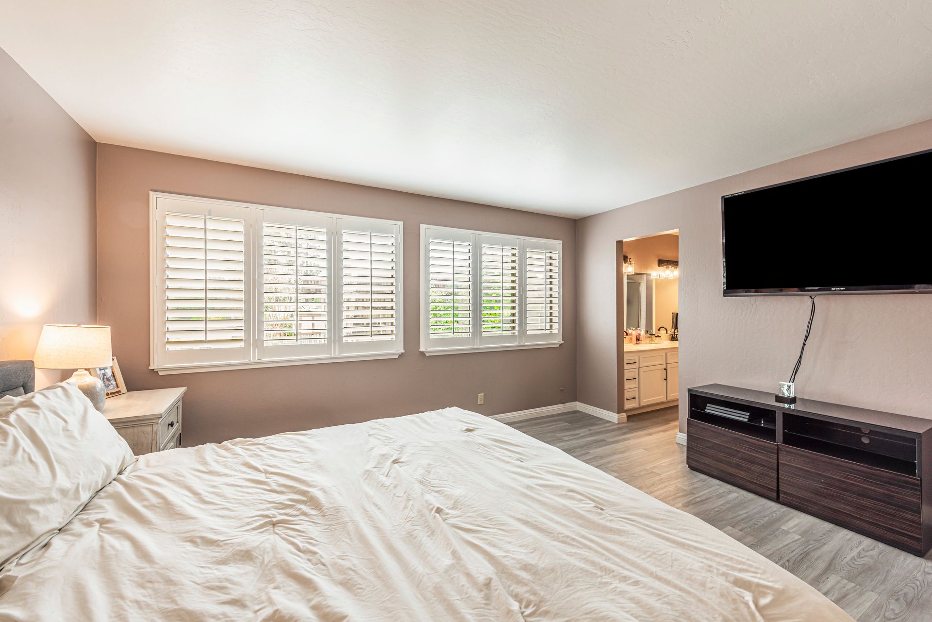 Thoughtful upgrades include plantation shutters, stylish light fixtures and plenty of storage throughout. The convenience of an in-unit laundry room with a washer, dryer and additional storage closet adds to the appeal.
