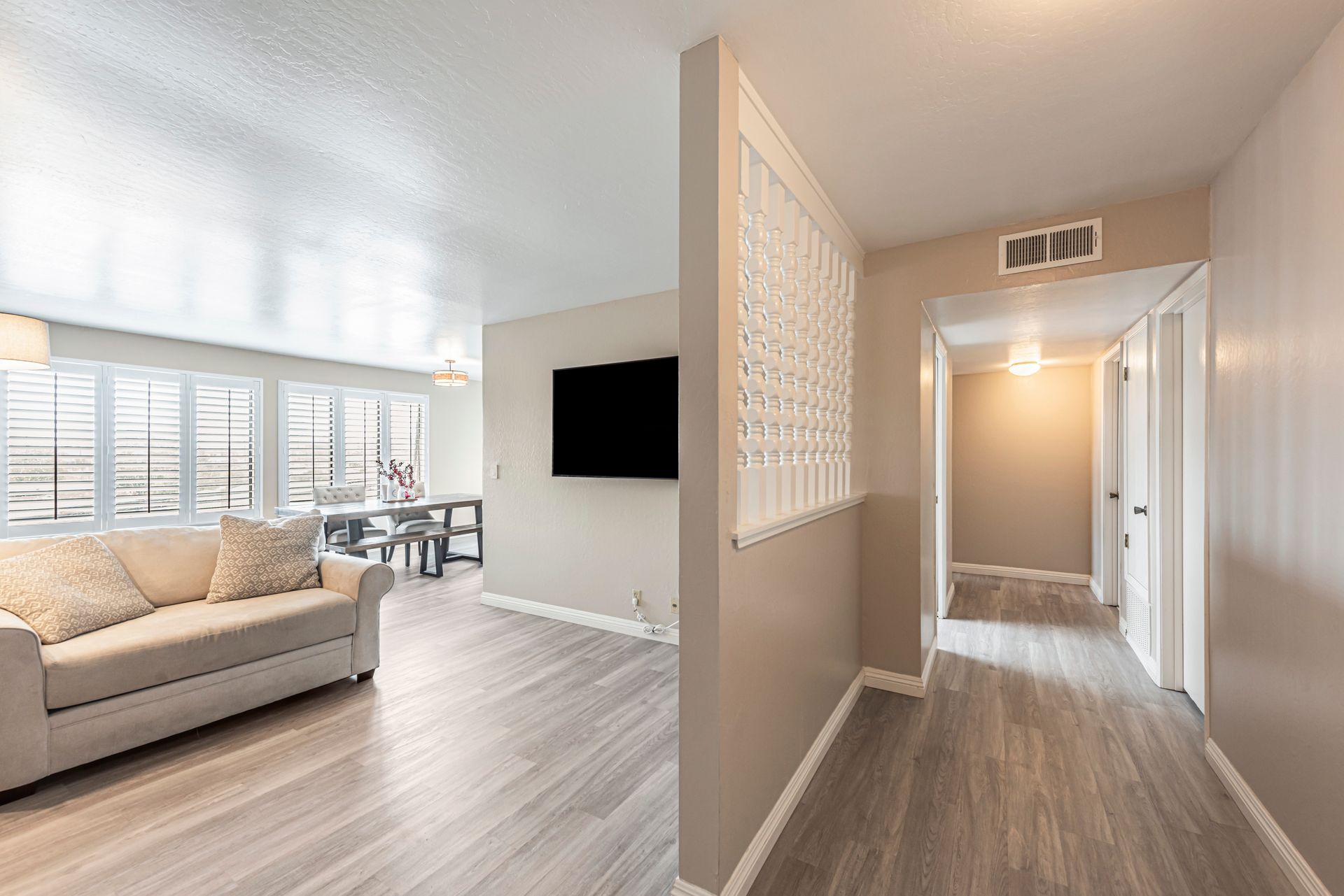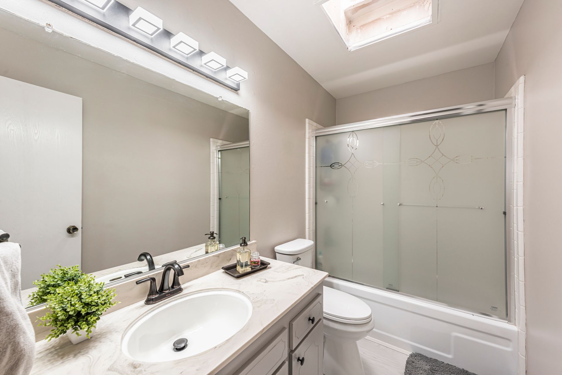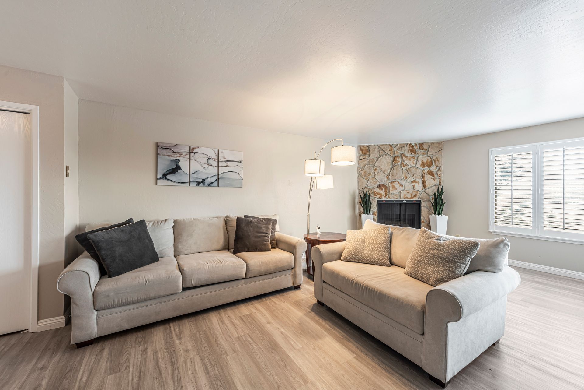Welcome to this beautifully updated single-level condo offering nearly 1,700 square feet of livable space in San Leandro's sought-after Assumption Parish area. This home features three generously sized bedrooms, two full bathrooms and multiple versatile livable spaces, including a spacious living room, a formal dining area and a bonus family room/den. The open layout is enhanced by large windows and a skylight, flooding the interior with natural light.
