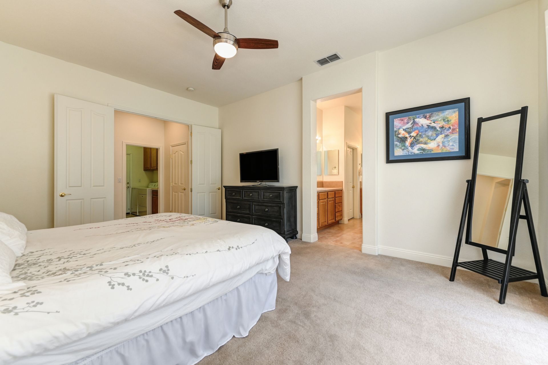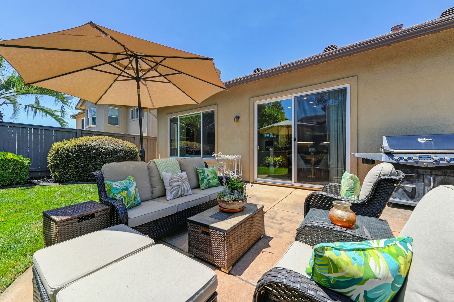 Welcome home! This beautiful single-story home offers roughly 2,296 square feet of space with four bedrooms and two bathrooms, nicely situated on an approximately .1675 -acre lot in a prestigious gated Roseville community. The open floorplan design with large windows fills the home with natural light, creating a bright and welcoming atmosphere. The formal dining and living rooms offer lots of space for entertainment and gatherings. The spacious kitchen is a chef’s delight, featuring an abundance of counter space and cabinetry. Whether you’re preparing everyday meals or hosting special occasions, this kitchen is designed to meet all your culinary needs. The primary suite is a private oasis with outdoor access, a soaking tub, dual vanities, a stall shower, and a large walk-in closet making it a wonderful retreat to relax and unwind after a long day. Enjoy the meticulously maintained landscaping that surrounds the home, providing a serene and picturesque setting. The covered front porch provides a charming spot to enjoy your morning cup of coffee. The three-car tandem garage offers plenty of space for parking and storage. The laundry room, complete with storage and a sink, adds convenience to your daily routines. This home combines modern amenities with a classic elegance for comfortable living. Love Where You Live!
