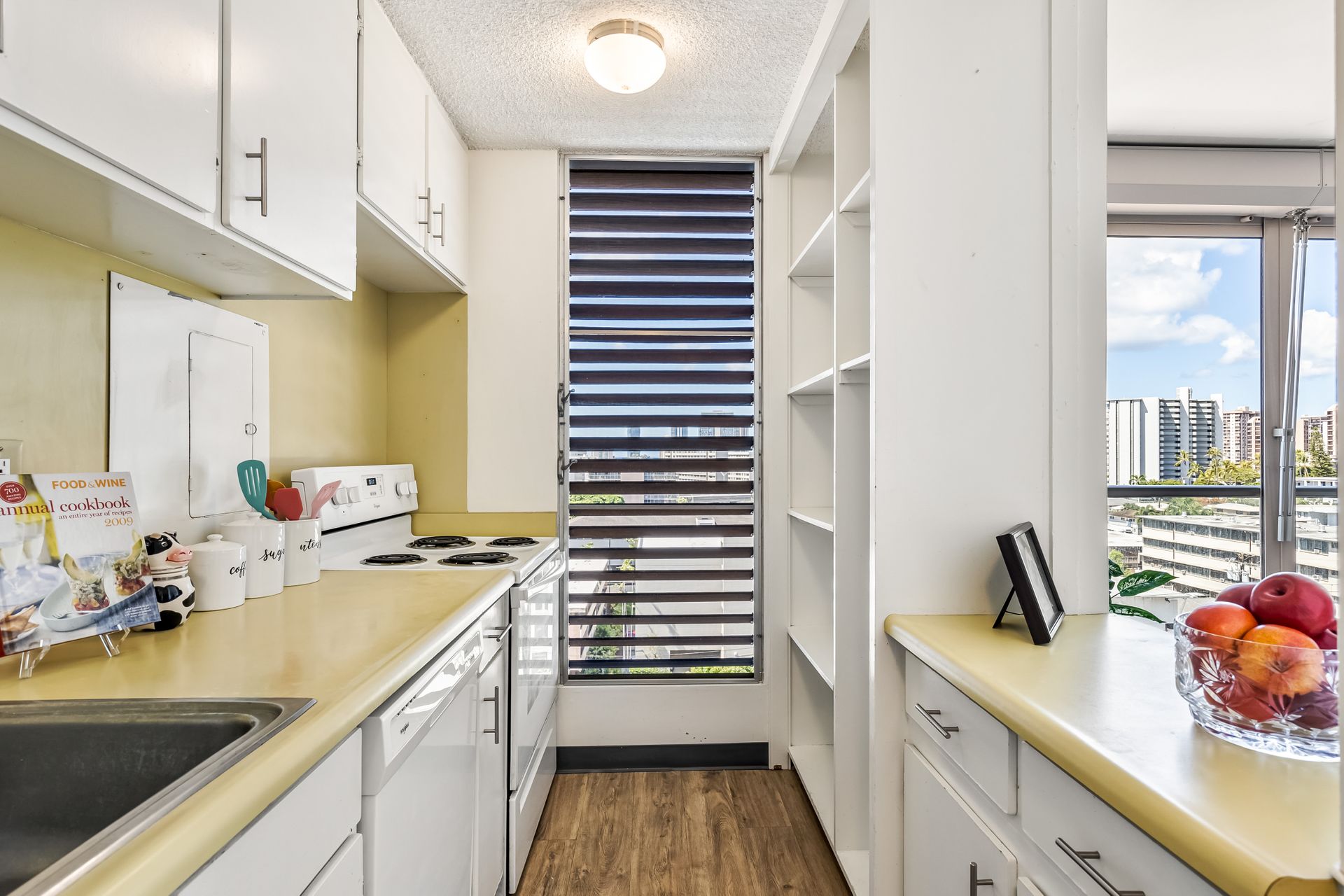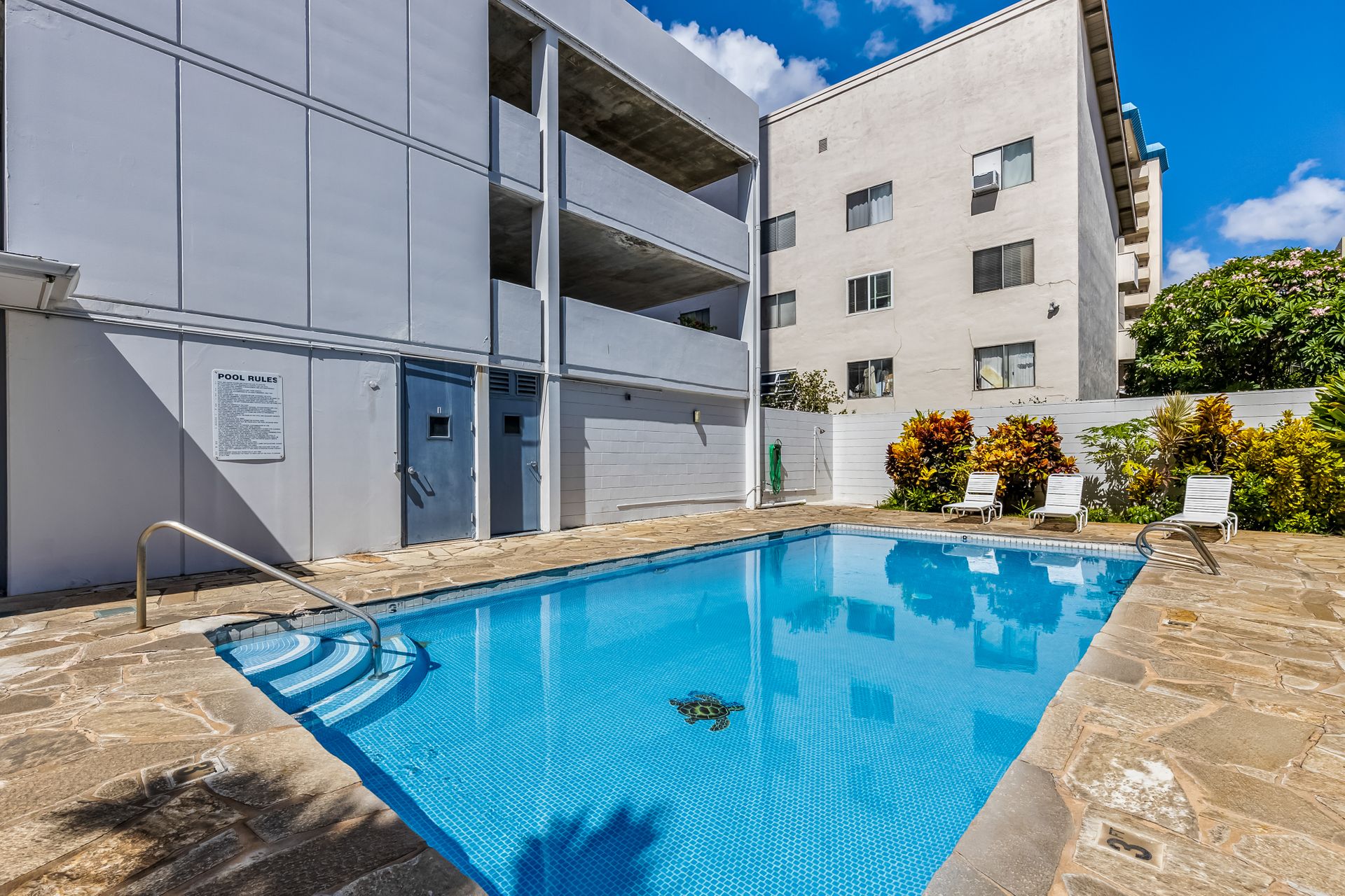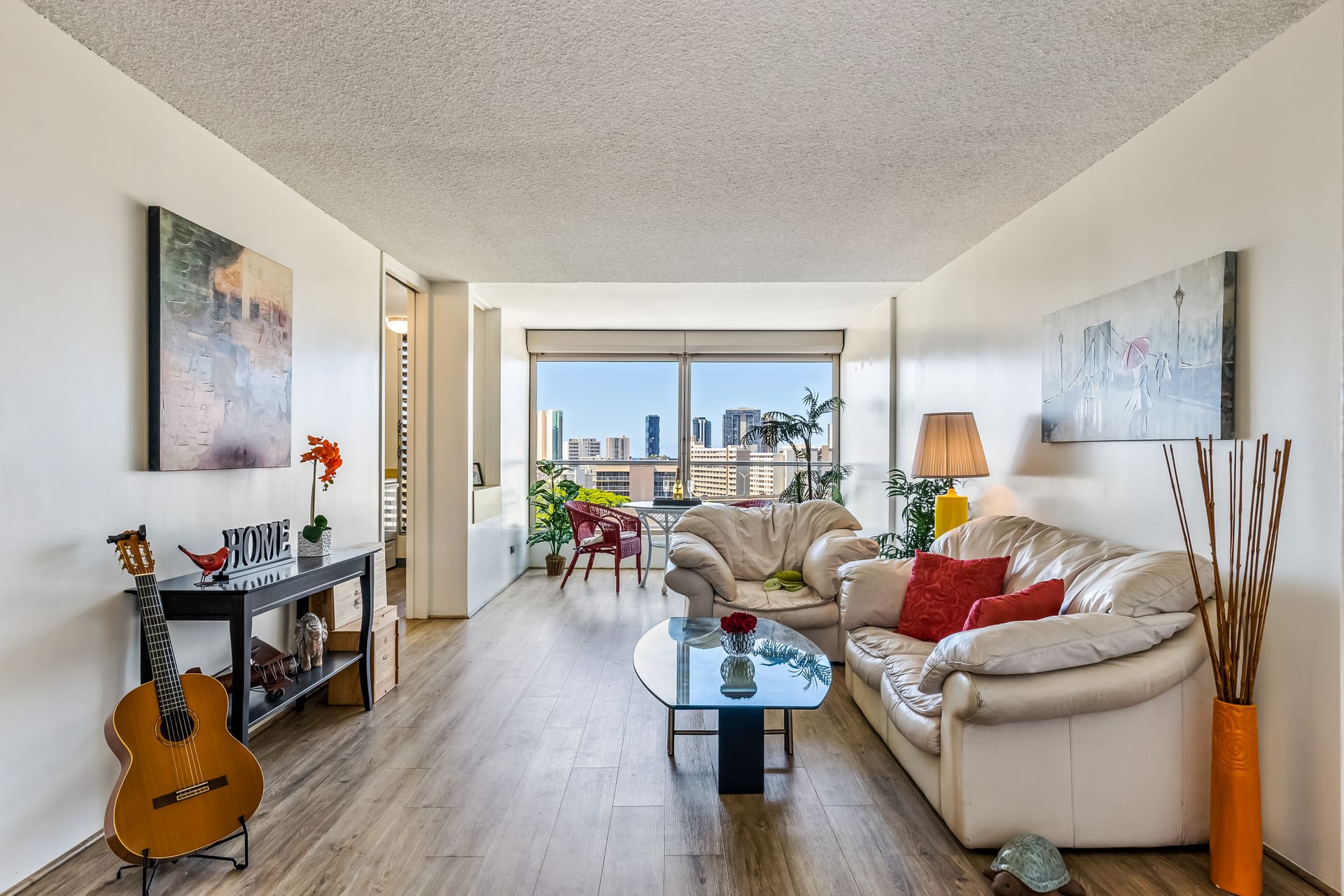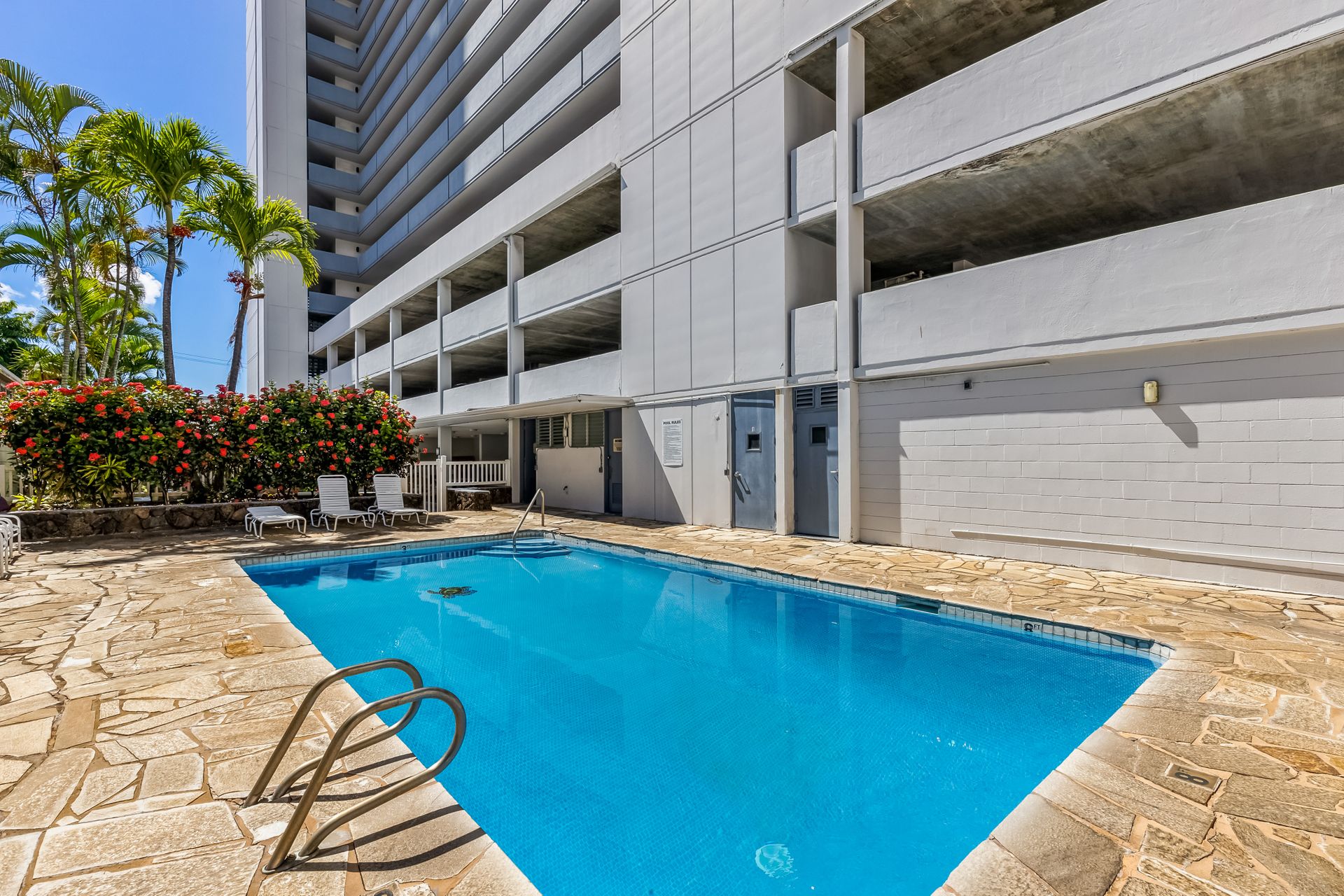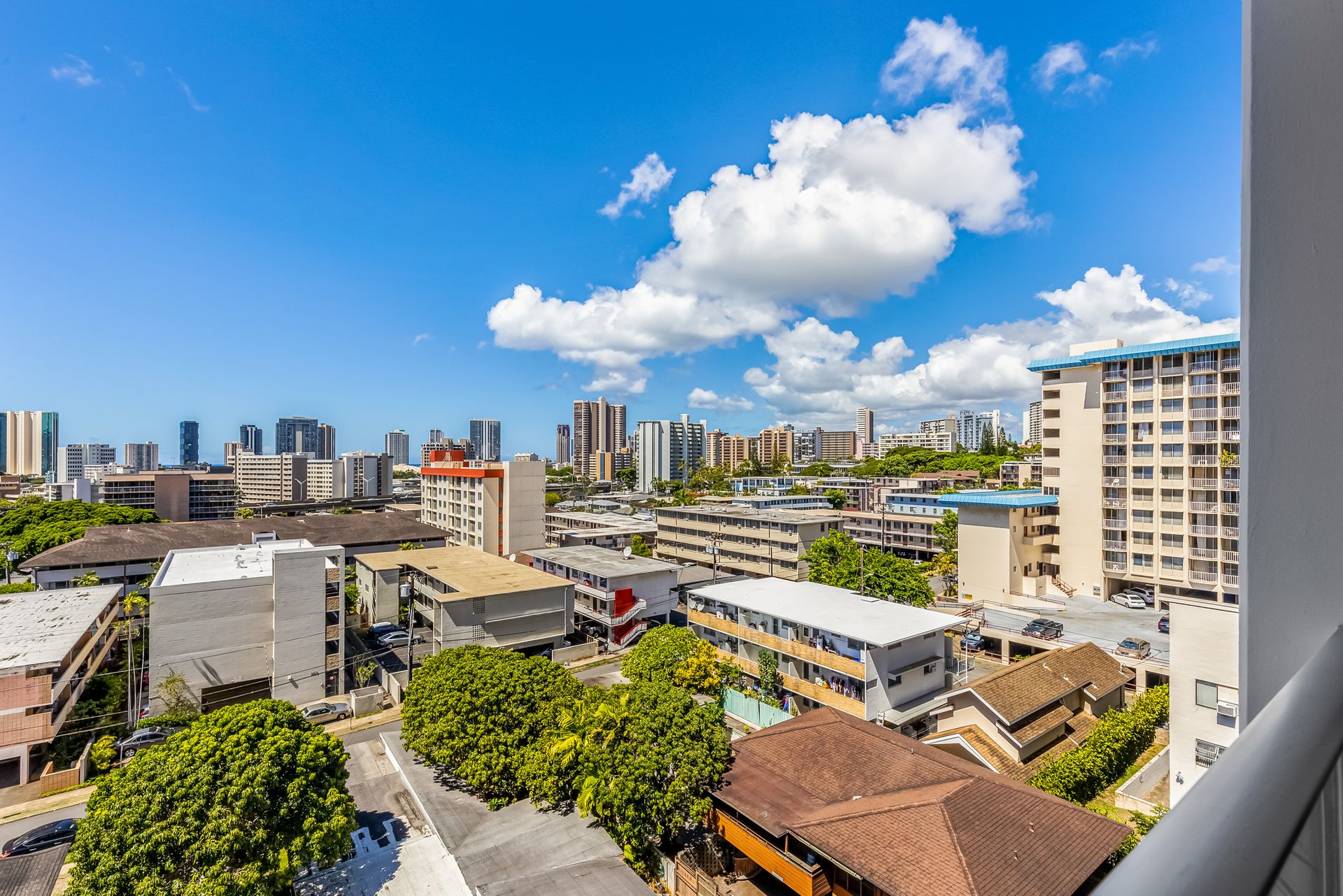 Located in the heart of Honolulu. Piikoi Tower is an excellently maintained, boutique building in Makiki with great cross breeze, a salt water swimming pool, sauna, covered BBQ area, and secured lobby and elevators. The open concept layout invites you to your enclosed lanai to enjoy sweeping city and sunset views. Escape the noise and light with retractable lanai shades for added privacy. Just minutes to Ala Moana, Kakaako, Downtown, University of Hawaii, bus routes, bike paths and freeway access, Makiki living is as convenient as it gets. As a bonus, the maintenance fee includes electricity, cable and internet, PLUS pet owners will love the cute dog run/path. A must see!