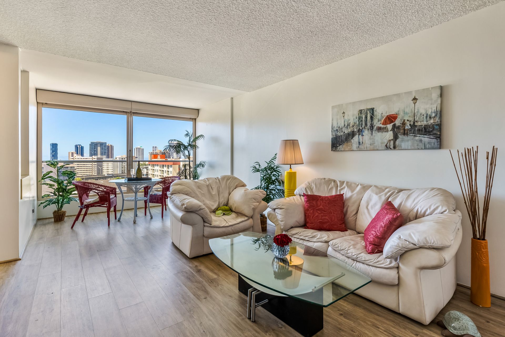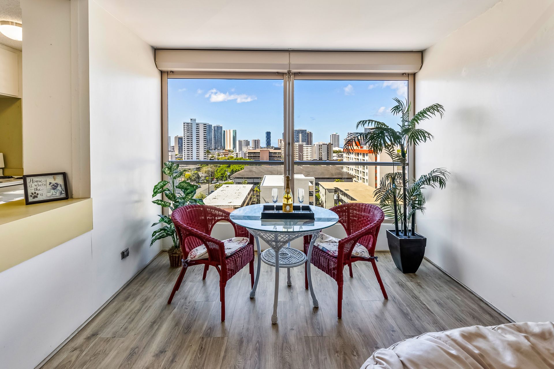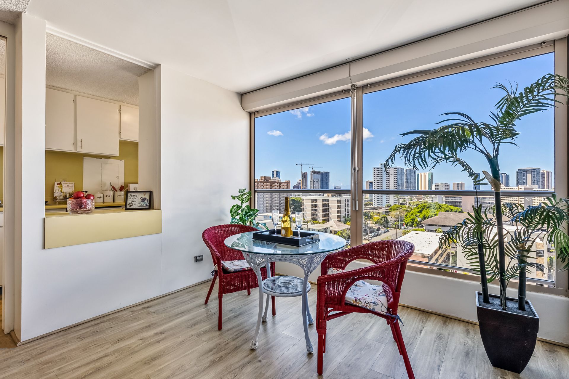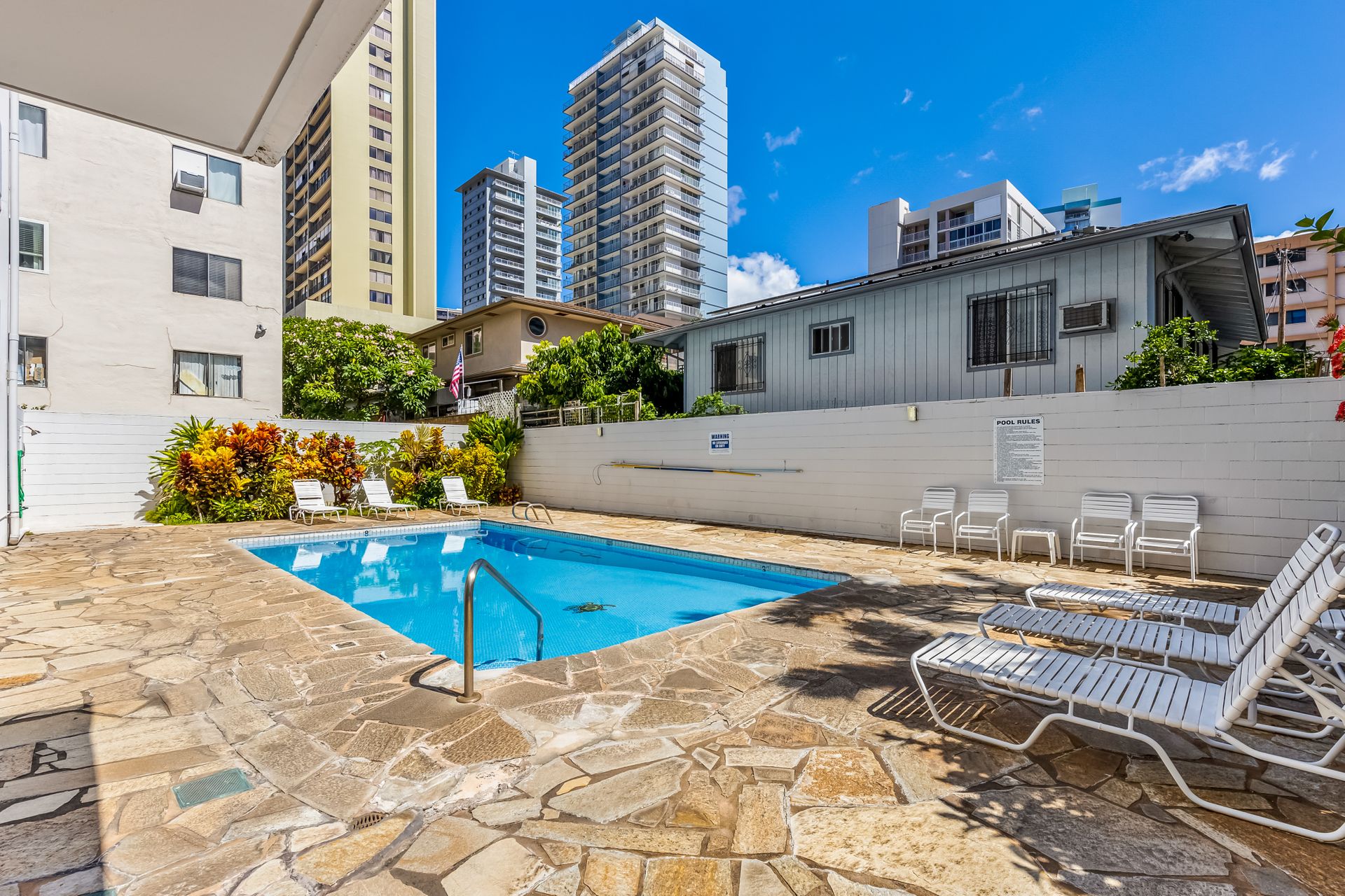 Located in the heart of Honolulu. Piikoi Tower is an excellently maintained, boutique building in Makiki with great cross breeze, a salt water swimming pool, sauna, covered BBQ area, and secured lobby and elevators. The open concept layout invites you to your enclosed lanai to enjoy sweeping city and sunset views. Escape the noise and light with retractable lanai shades for added privacy. Just minutes to Ala Moana, Kakaako, Downtown, University of Hawaii, bus routes, bike paths and freeway access, Makiki living is as convenient as it gets. As a bonus, the maintenance fee includes electricity, cable and internet, PLUS pet owners will love the cute dog run/path. A must see!