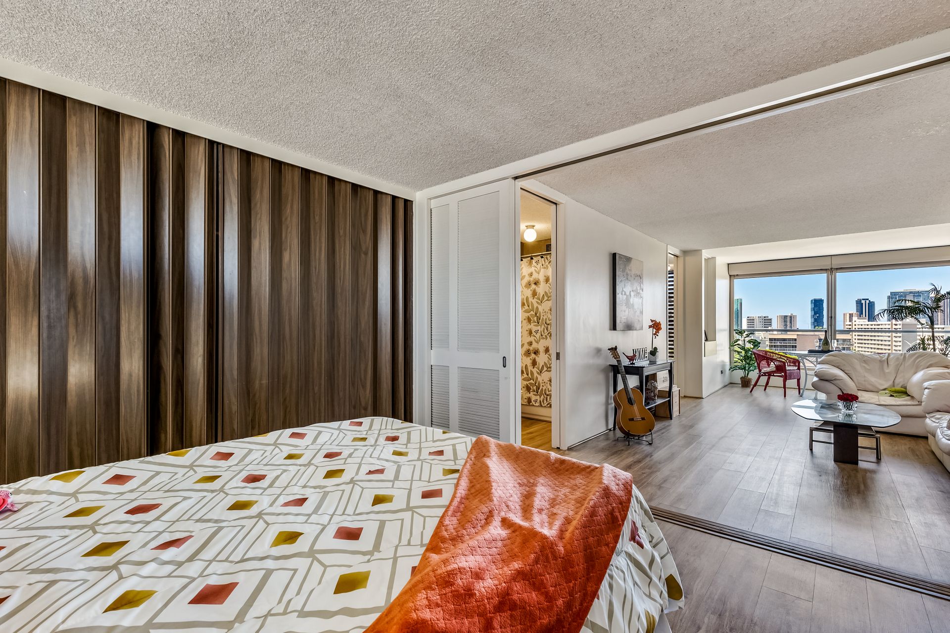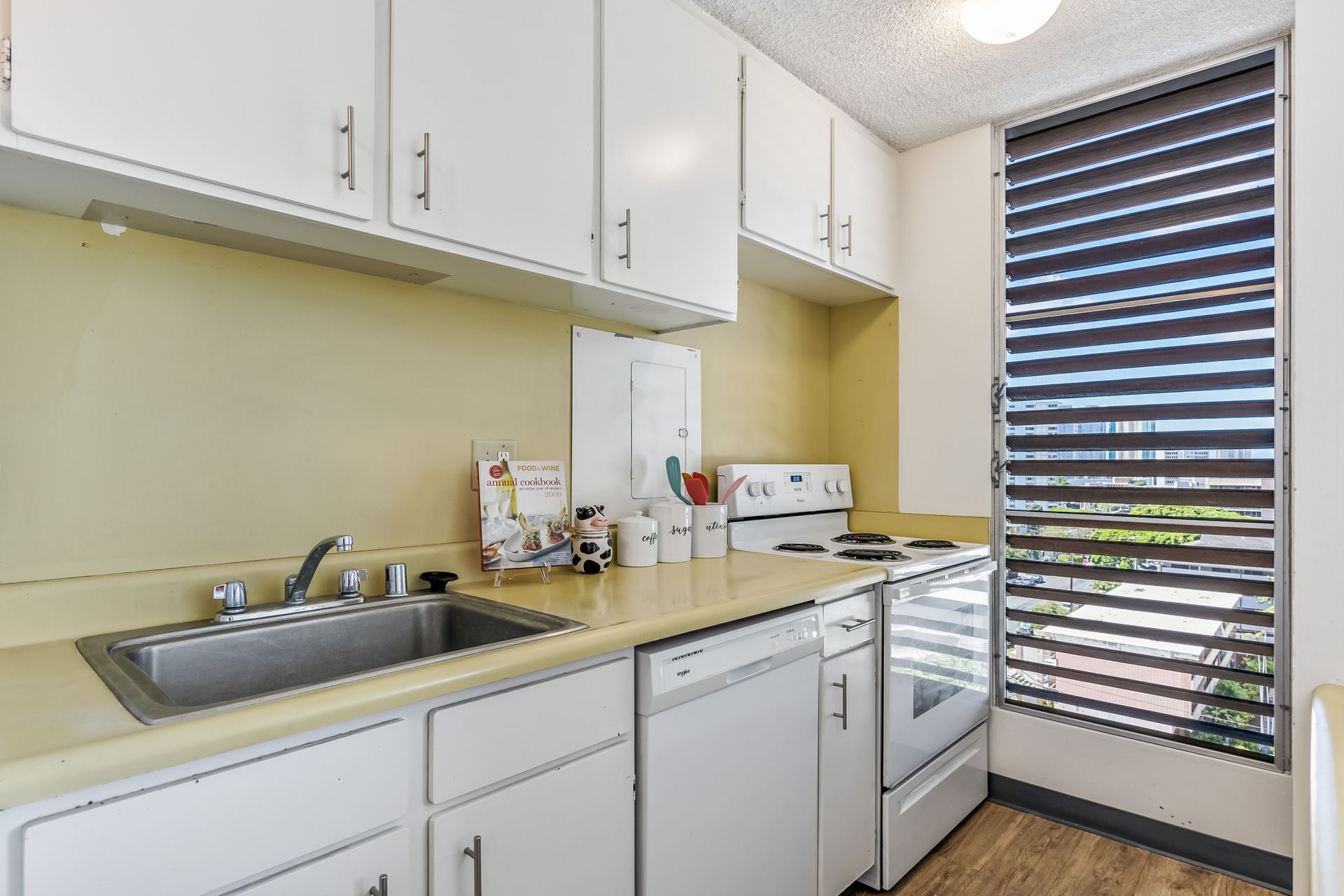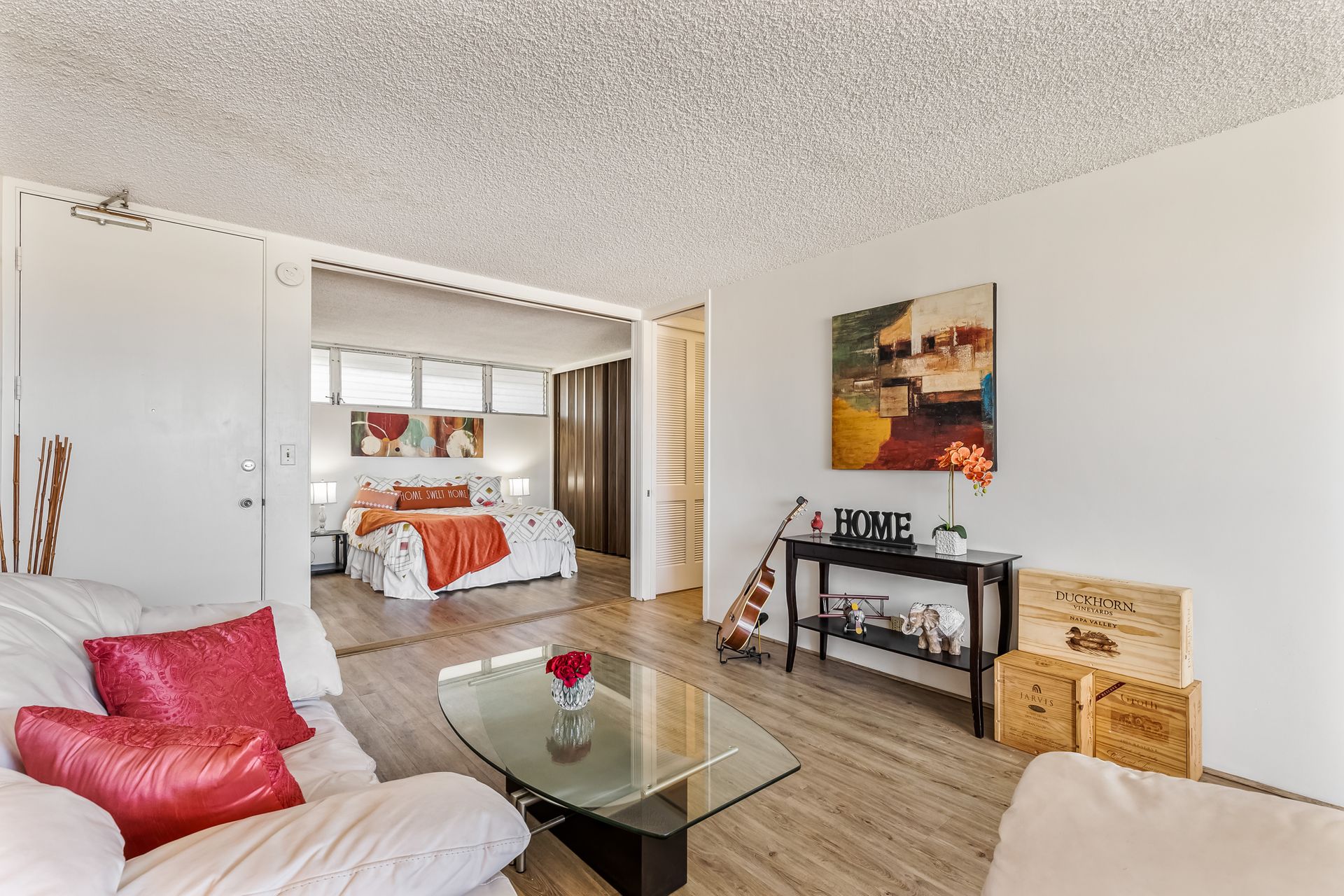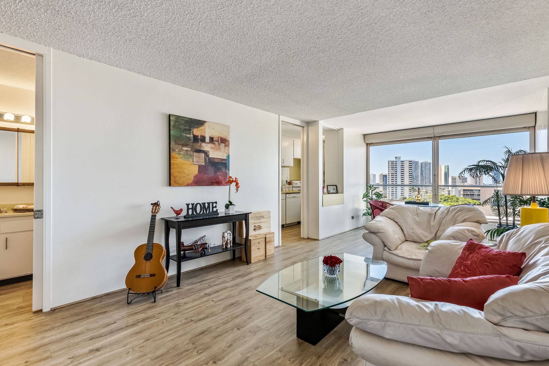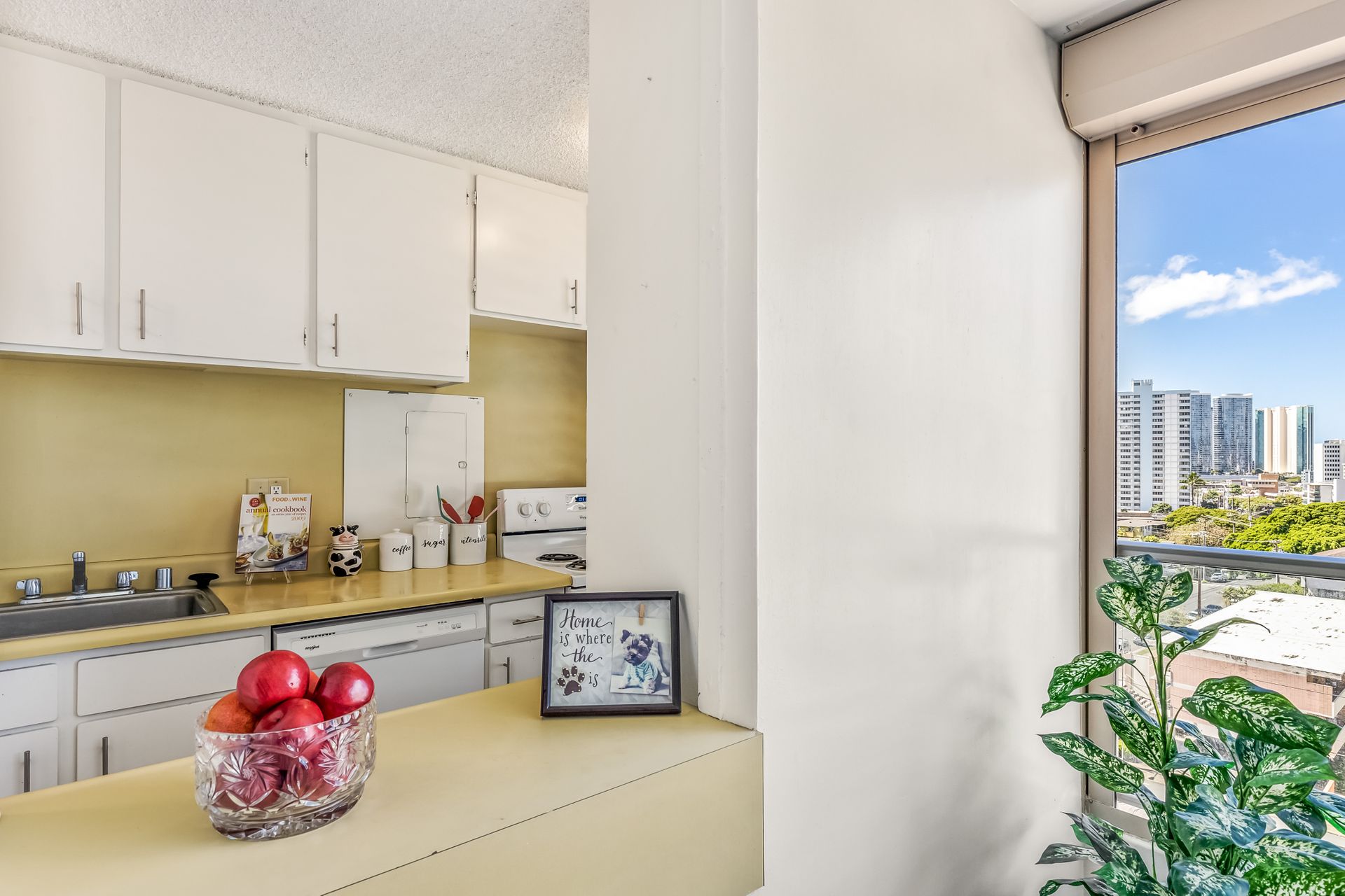 Located in the heart of Honolulu. Piikoi Tower is an excellently maintained, boutique building in Makiki with great cross breeze, a salt water swimming pool, sauna, covered BBQ area, and secured lobby and elevators. The open concept layout invites you to your enclosed lanai to enjoy sweeping city and sunset views. Escape the noise and light with retractable lanai shades for added privacy. Just minutes to Ala Moana, Kakaako, Downtown, University of Hawaii, bus routes, bike paths and freeway access, Makiki living is as convenient as it gets. As a bonus, the maintenance fee includes electricity, cable and internet, PLUS pet owners will love the cute dog run/path. A must see!