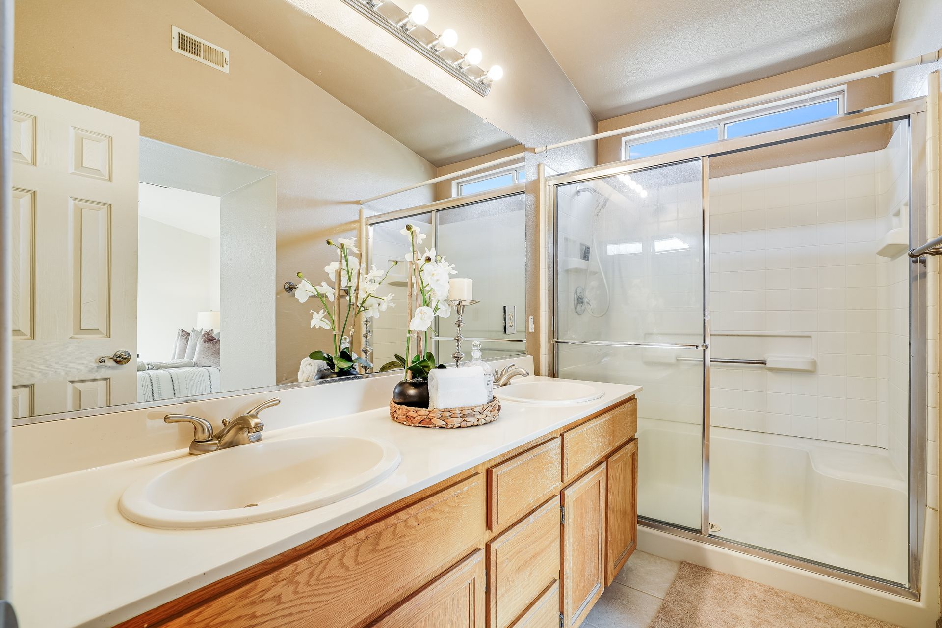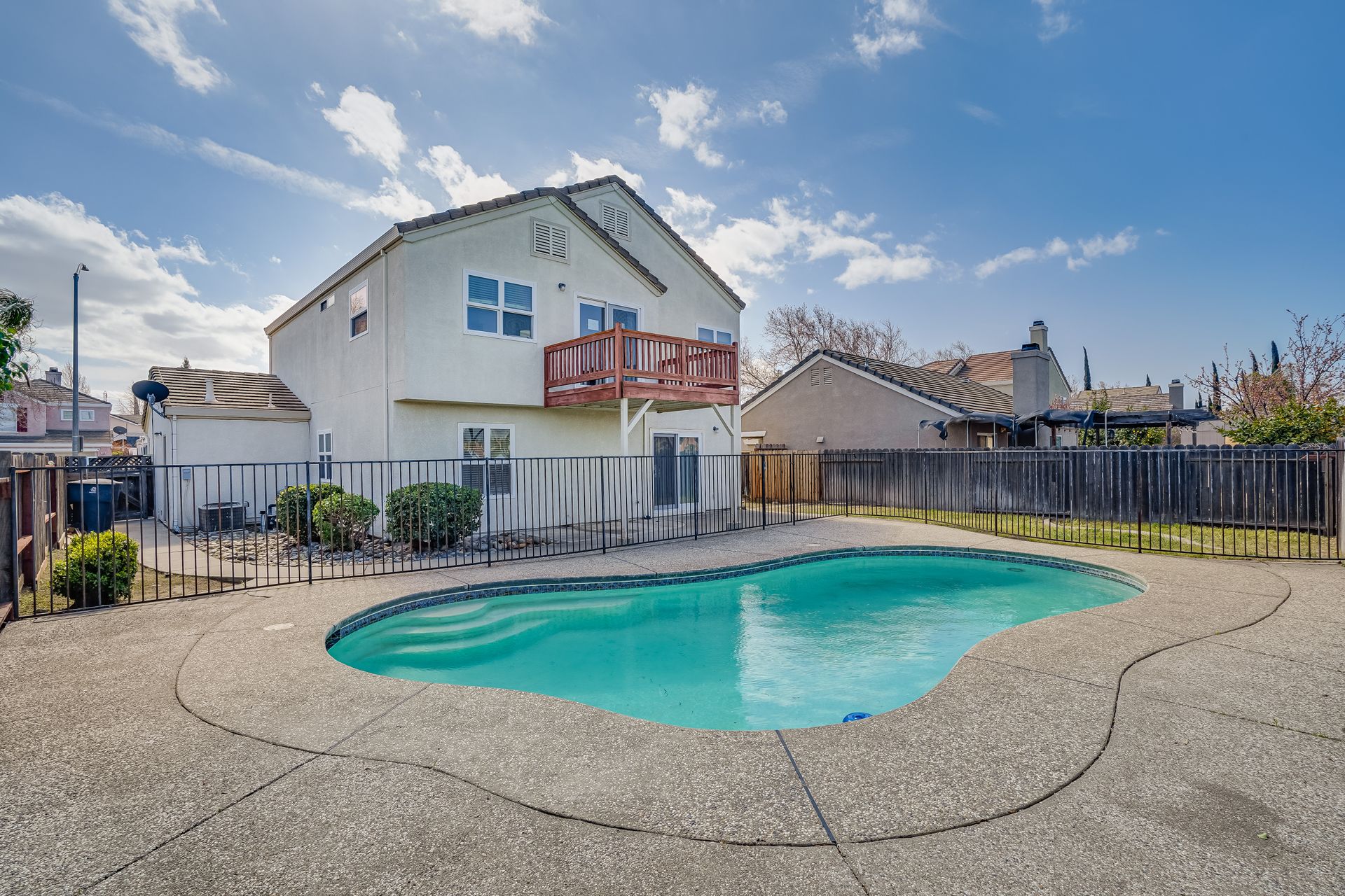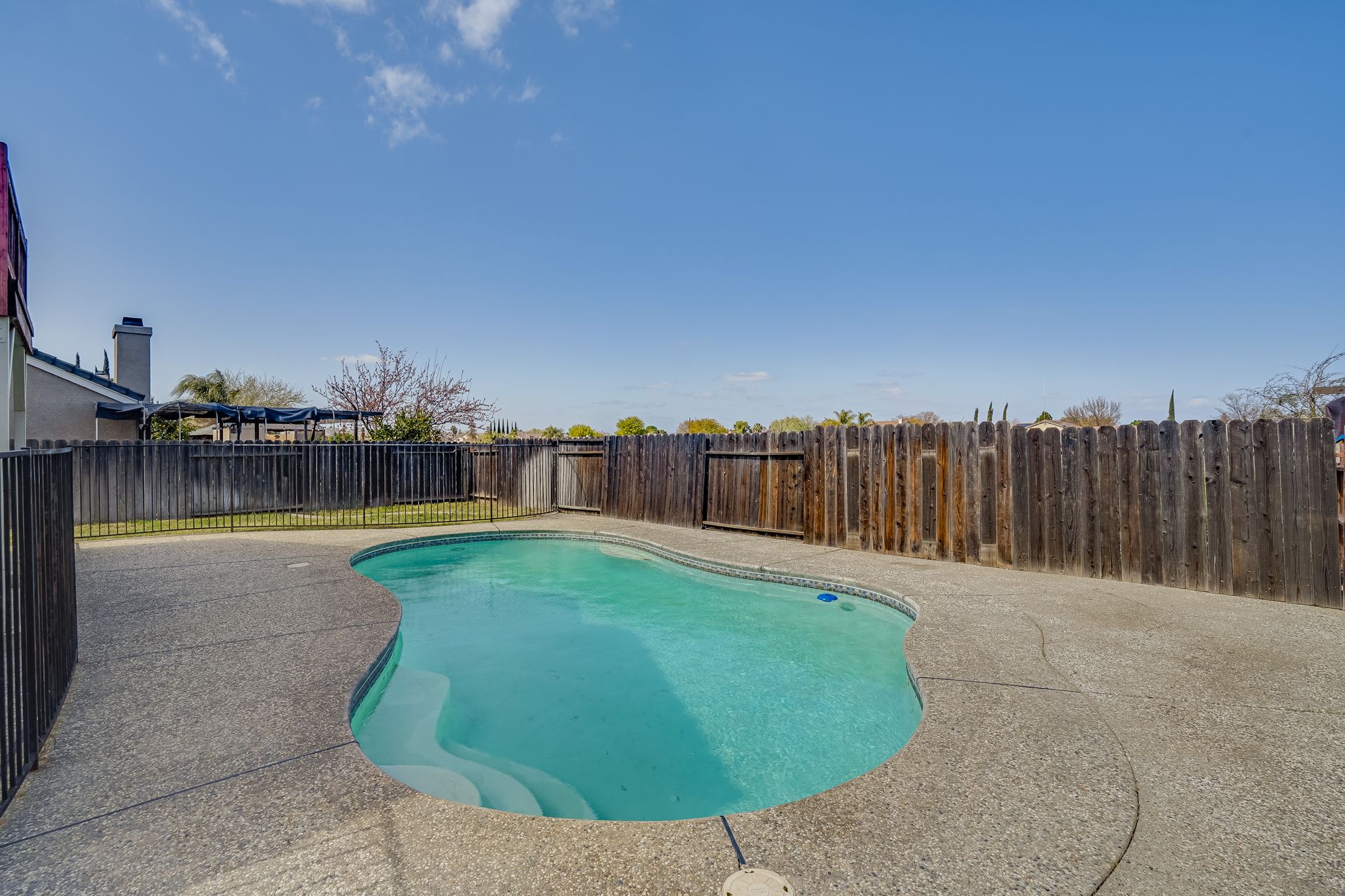 Located in a serene neighborhood in Tracy, this wonderful tri-level, move-in ready home offers upgraded Milgard windows/doors, a beautiful front yard and a two-car attached side-by-side garage. The main level features a nice entry foyer with a half bath. The upper level is highlighted by dramatic vaulted ceilings within the living room, nice light fixtures, a wood-burning fireplace, Corian countertops within the kitchen and an open floor plan for the dining area. Sliding glass doors in the dining area open to a rear deck, a large master bedroom and an en suite bath with two closets and ceiling fans. The first-floor features two bedrooms and one full bath with a lovely family room. Sliding glass doors in the family room open to a low maintenance patio, garden and swimming pool, ideal for entertaining. A fenced built-in swimming pool surrounded by granite has been drained and cleaned recently. Additional features include updated carpeting throughout and hardwood flooring. This lovely home is centrally located, within a short distance from Sienna parks, shopping centers, schools, downtown and the Ace Train Station. This is a home you must see!
