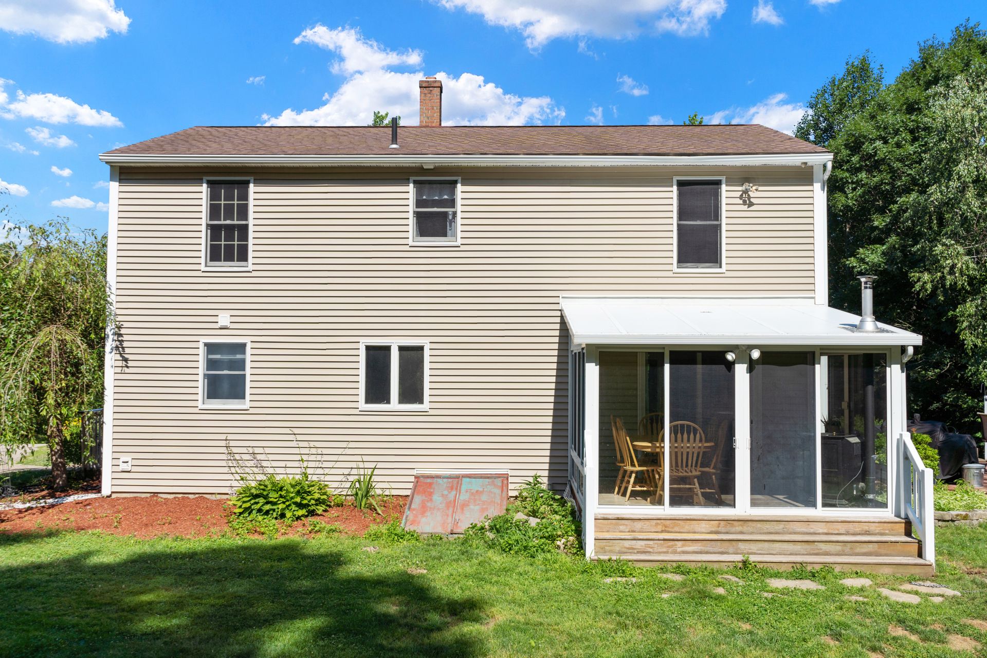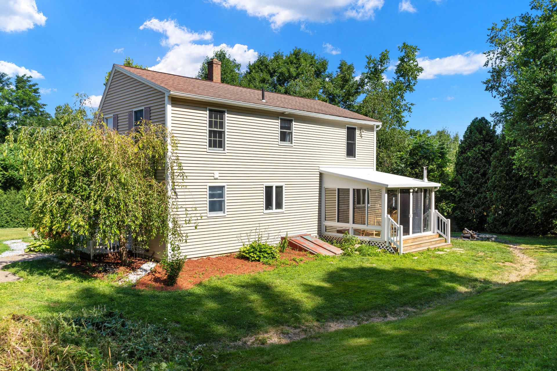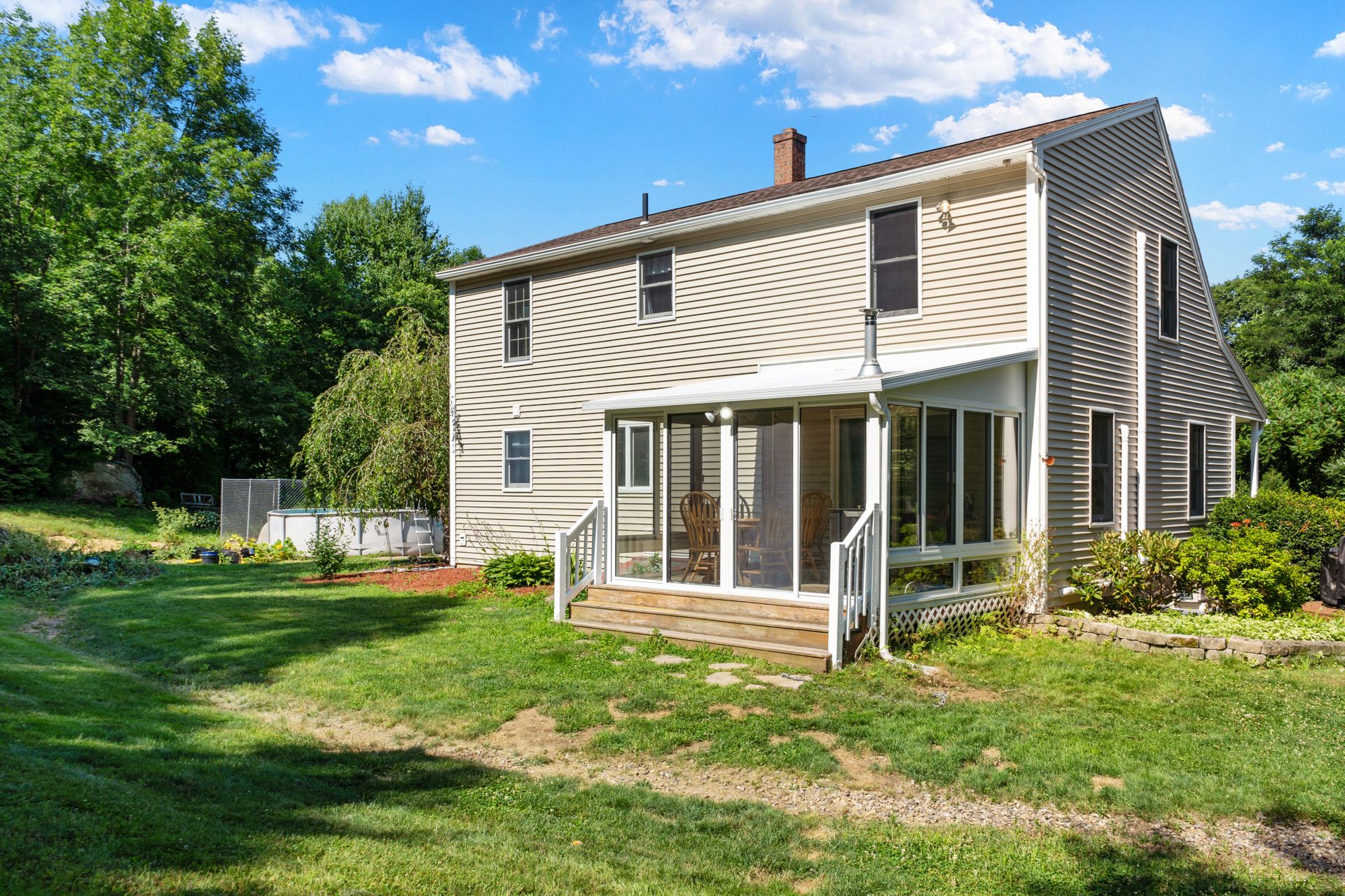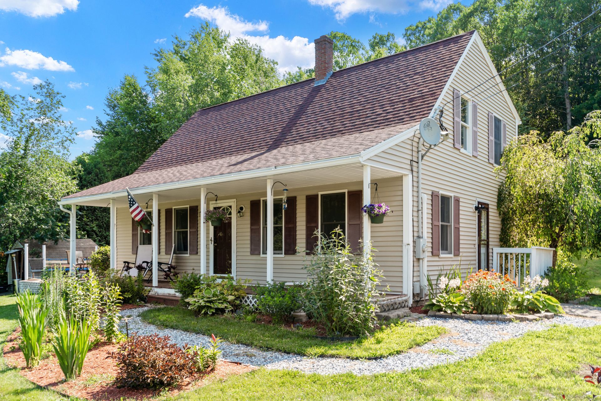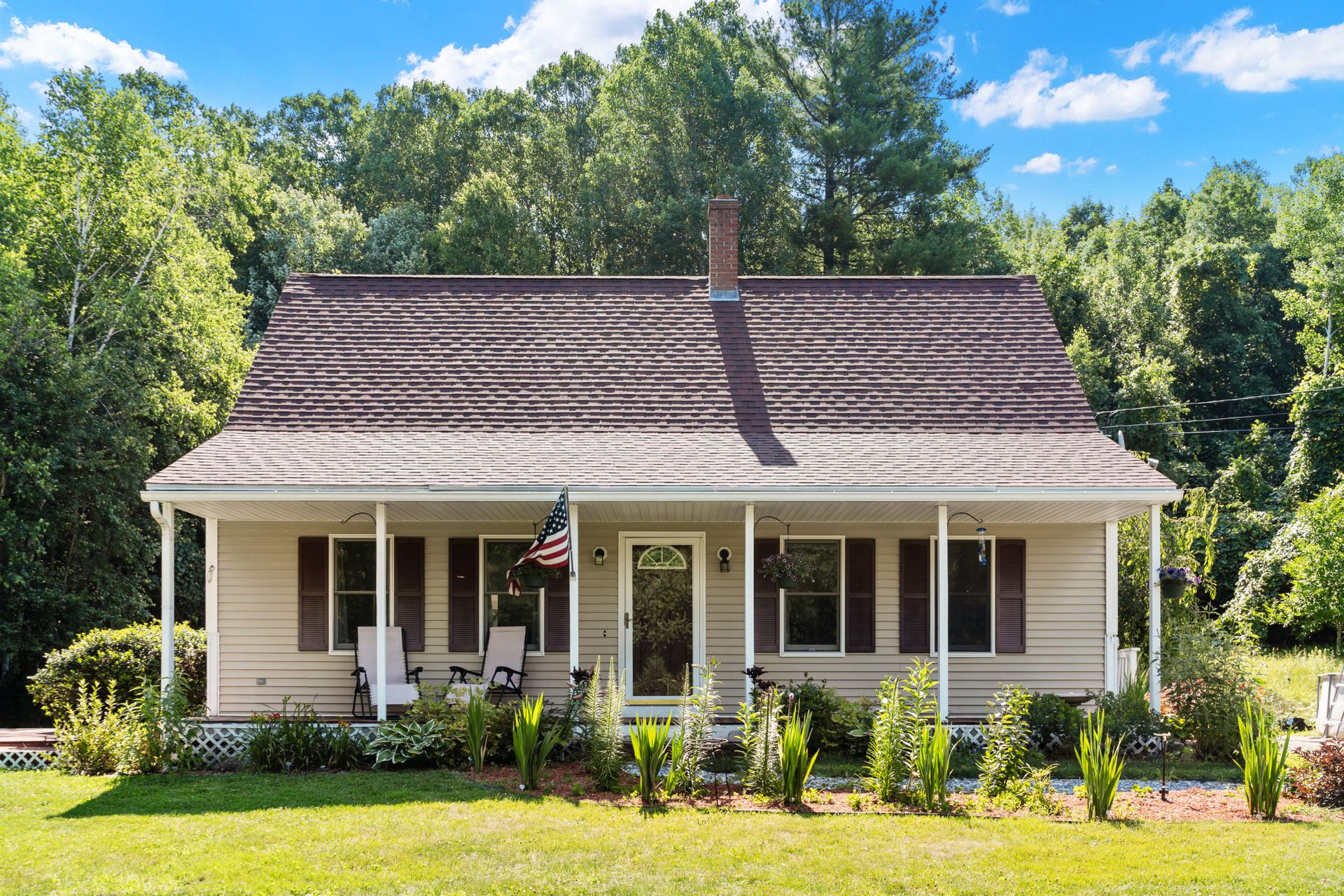 Fresh air and peace and quiet...so relaxing!! This fantastic three bedroom, one and one-half bath, Cape style home offers many updates. The front farmers porch is just where you want to be on a warm night. It connects to a huge patio and outdoor grilling area and has an enormous yard for fun activities. There is a large open kitchen with newer appliances, loads of cabinets, counter space with counter seating and open eating area. Off the eating area is an enclosed porch with pellet stove. There is a living room and family room, one of which could offer a first floor bedroom. The main bedroom is incredibly large with lots of closet space and sitting/office area. There are two additional bedrooms and full bath. The basement has very high ceilings if someone wants to finish it. Enjoy Breezeland Orchards, Ragged Hill Cider Company and close proximity to Old Sturbridge Village and Main Street restaurants.
