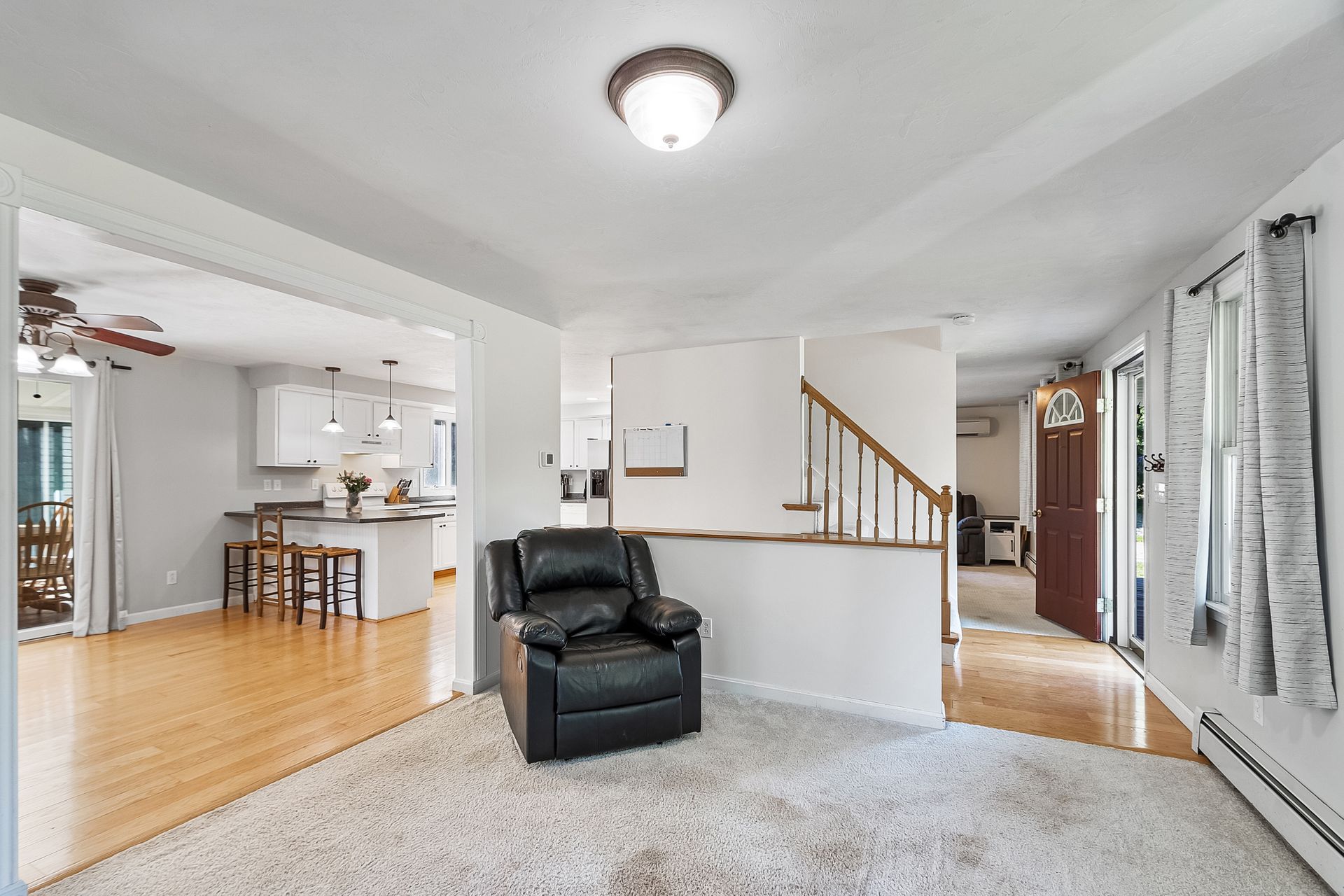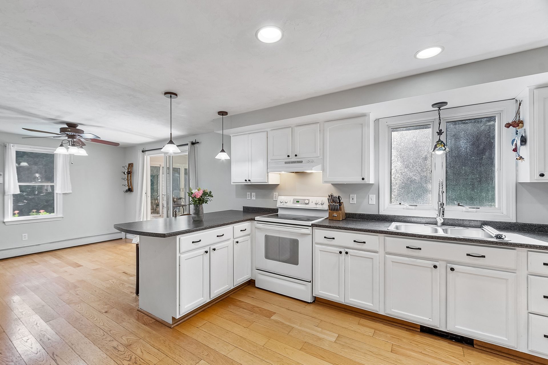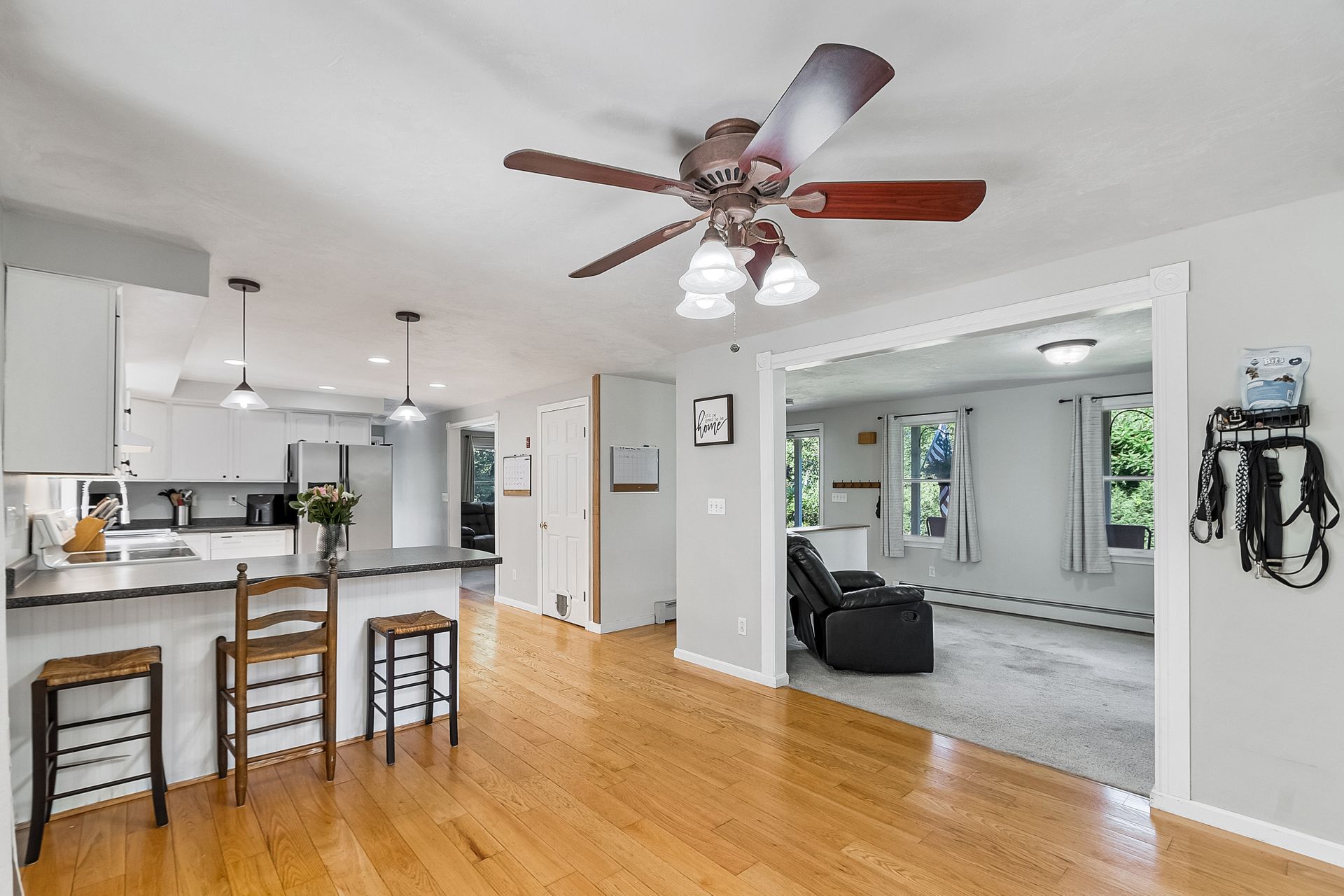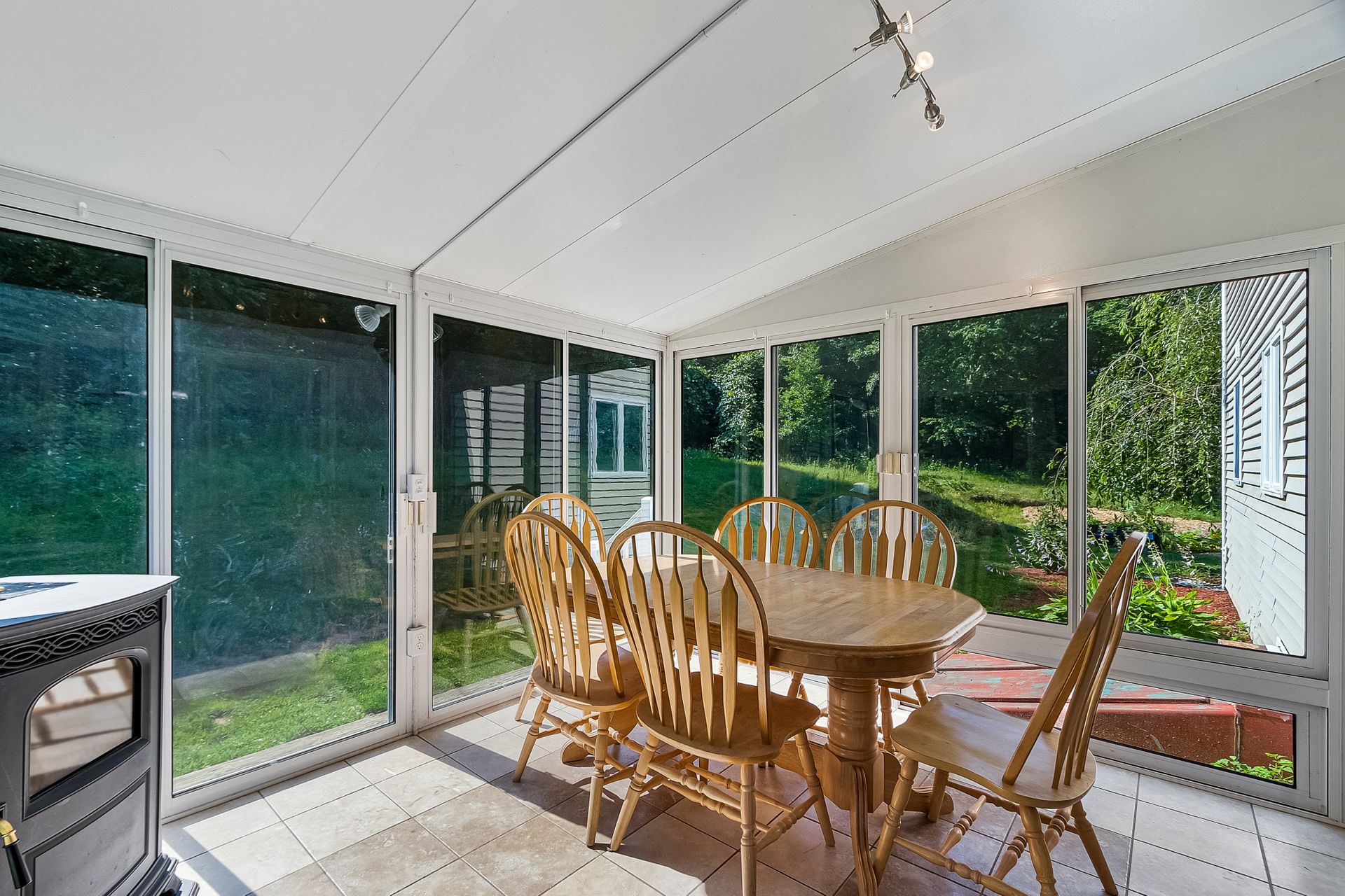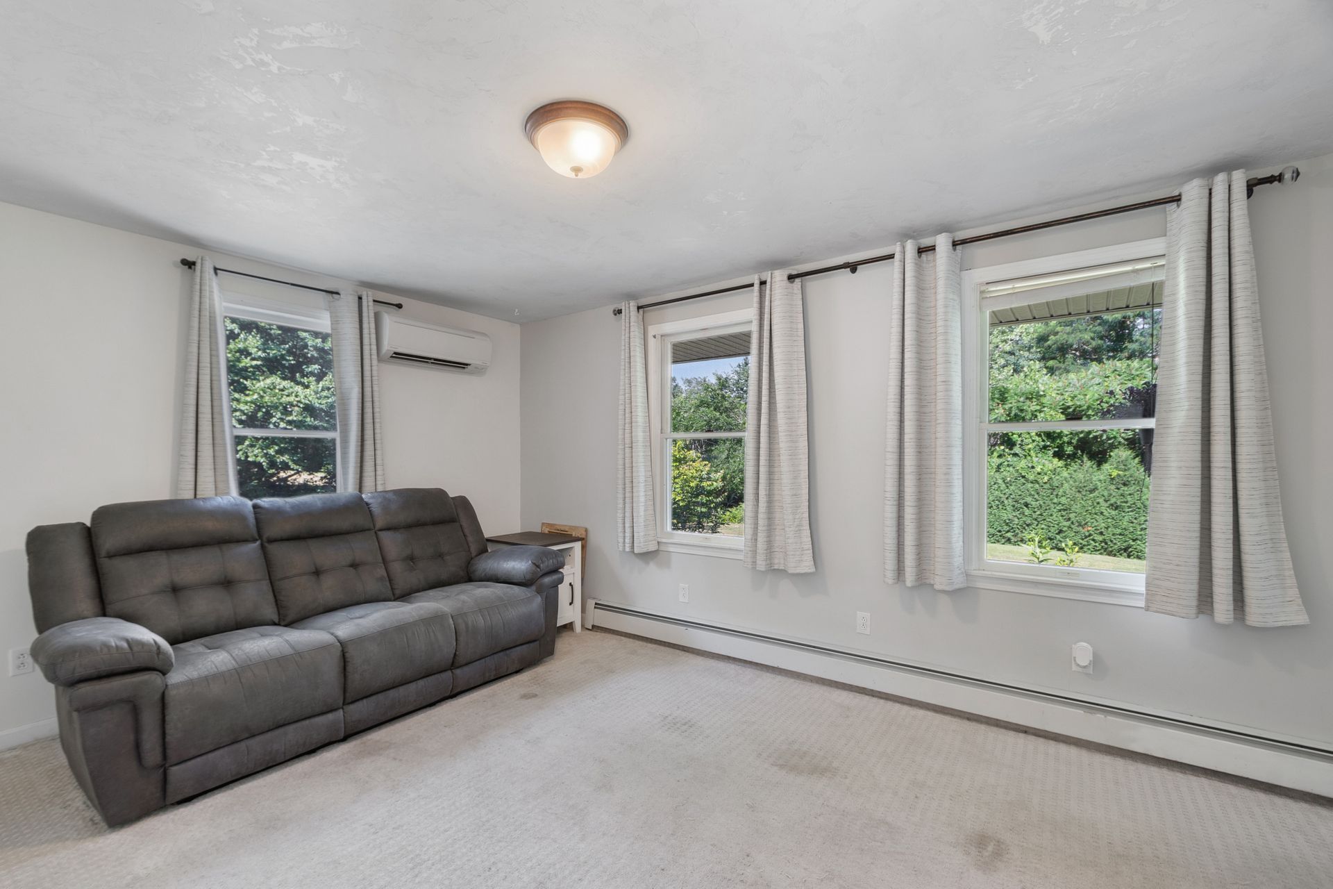 Fresh air and peace and quiet...so relaxing!! This fantastic three bedroom, one and one-half bath, Cape style home offers many updates. The front farmers porch is just where you want to be on a warm night. It connects to a huge patio and outdoor grilling area and has an enormous yard for fun activities. There is a large open kitchen with newer appliances, loads of cabinets, counter space with counter seating and open eating area. Off the eating area is an enclosed porch with pellet stove. There is a living room and family room, one of which could offer a first floor bedroom. The main bedroom is incredibly large with lots of closet space and sitting/office area. There are two additional bedrooms and full bath. The basement has very high ceilings if someone wants to finish it. Enjoy Breezeland Orchards, Ragged Hill Cider Company and close proximity to Old Sturbridge Village and Main Street restaurants.
