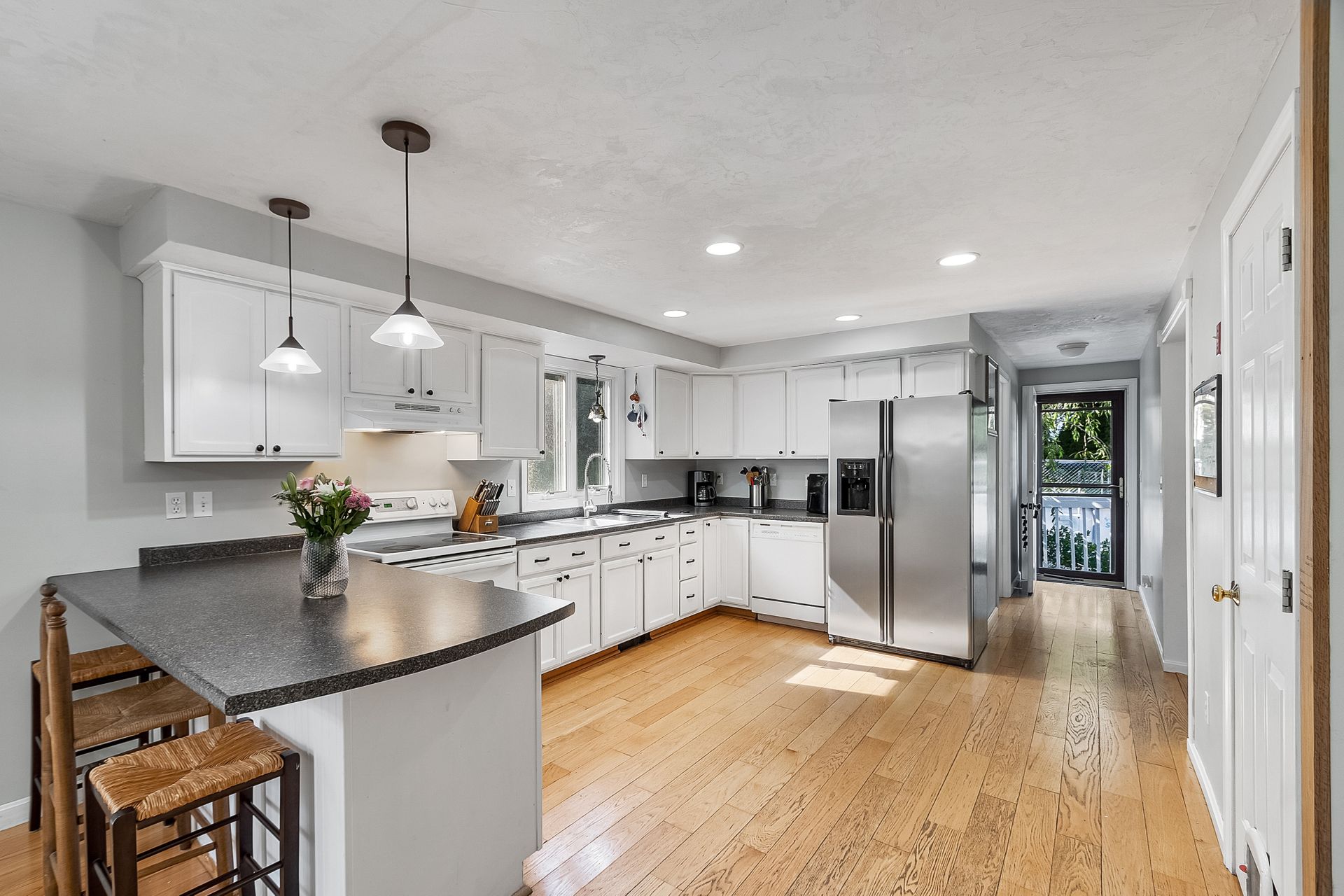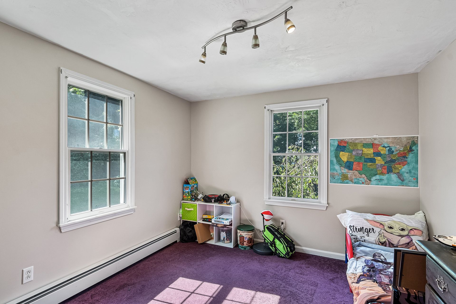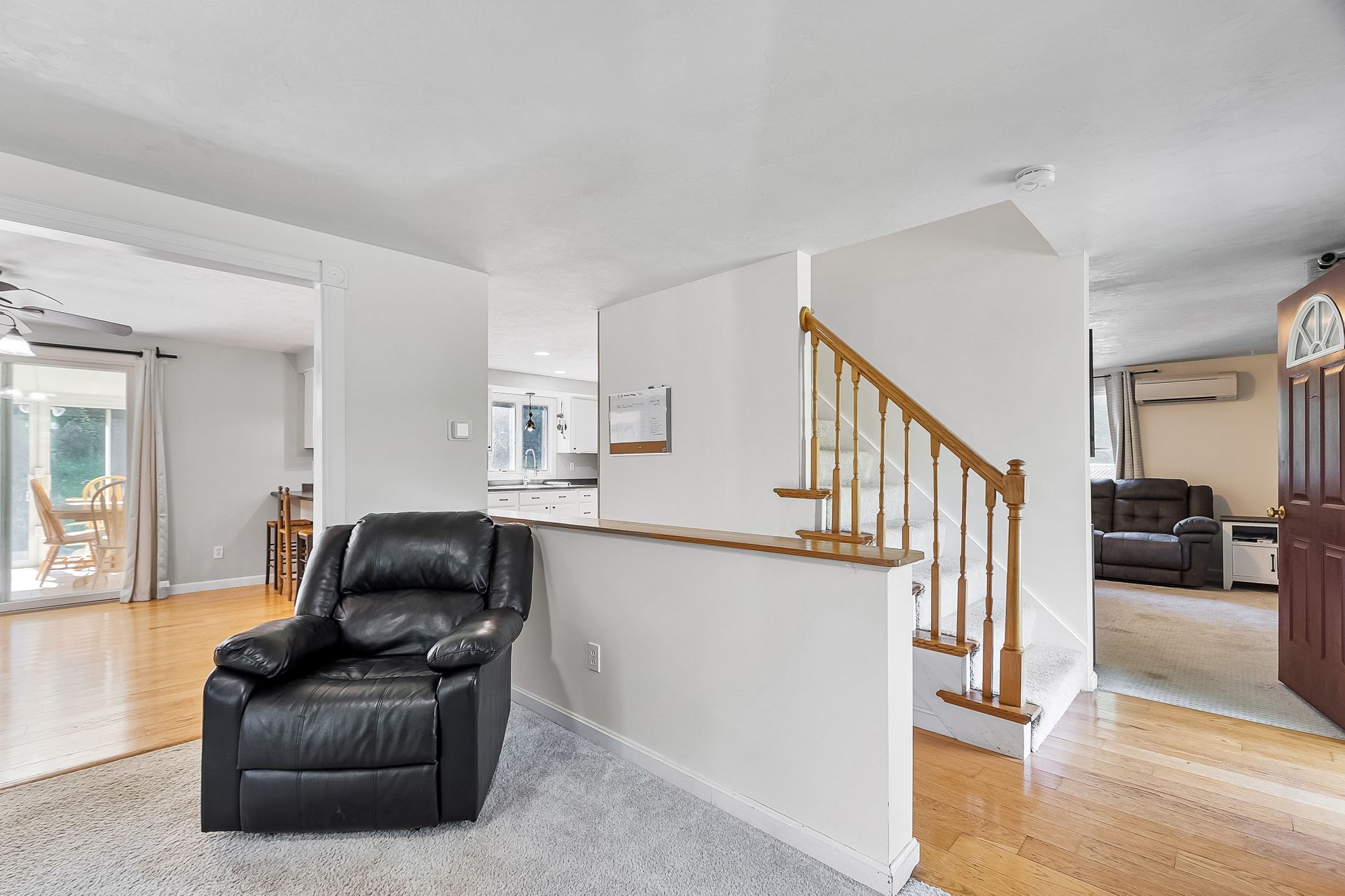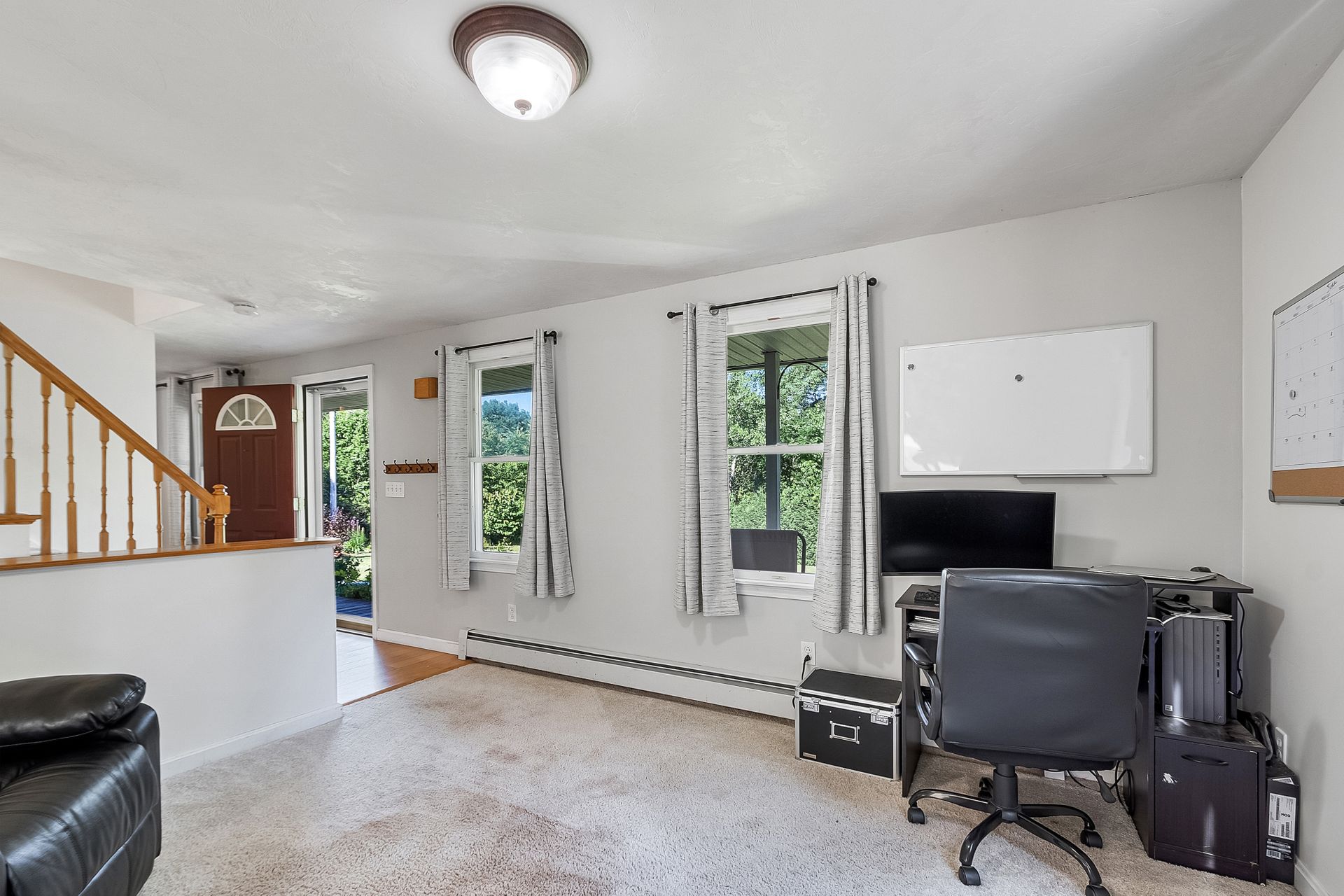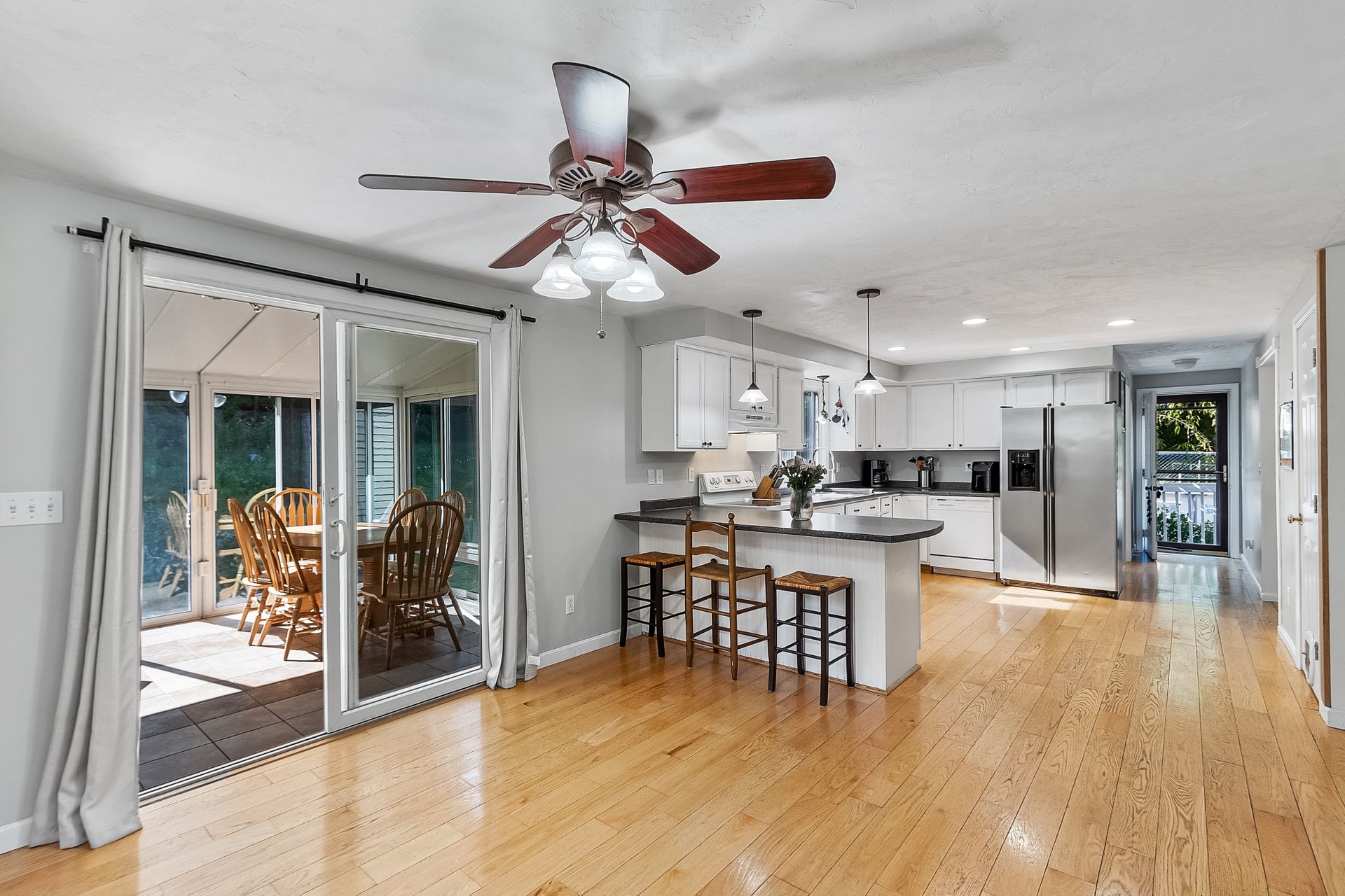 Fresh air and peace and quiet...so relaxing!! This fantastic three bedroom, one and one-half bath, Cape style home offers many updates. The front farmers porch is just where you want to be on a warm night. It connects to a huge patio and outdoor grilling area and has an enormous yard for fun activities. There is a large open kitchen with newer appliances, loads of cabinets, counter space with counter seating and open eating area. Off the eating area is an enclosed porch with pellet stove. There is a living room and family room, one of which could offer a first floor bedroom. The main bedroom is incredibly large with lots of closet space and sitting/office area. There are two additional bedrooms and full bath. The basement has very high ceilings if someone wants to finish it. Enjoy Breezeland Orchards, Ragged Hill Cider Company and close proximity to Old Sturbridge Village and Main Street restaurants.