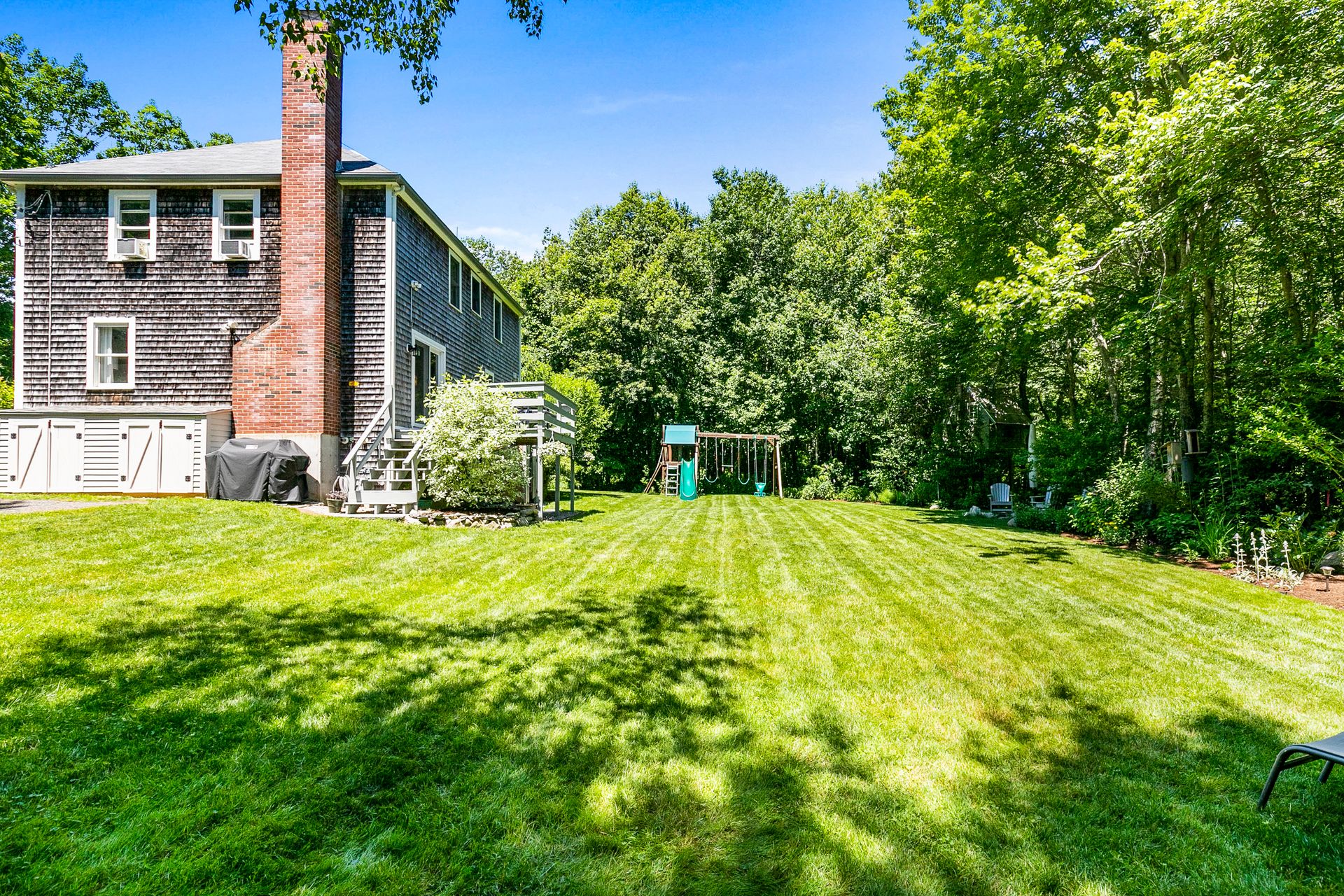 Nestled down a long private drive, you'll find this pristine four bedroom hip-roof colonial. A brick pathway invites you inside the spacious, open floorplan. Sun-drenched living room, formal dining and fireplaced family room, all with finished hardwood floors. Pretty white and stainless-steel kitchen, laundry and bath complete the main level. Upstairs hosts, a primary suite, three generous bedrooms and full bath. Privacy abounds the lush-landscaped grounds, featuring a backyard oasis, exterior deck, outdoor shower, a firepit, newer sheds, gorgeous gardens, a play area and terrific tree house! The impeccably maintained home shows pride of ownership with recent improvements including newer Energy Star boiler, hot water heater and a recently finished walk-out basement boasting a desirable home office, playroom or exercise room and built-in closets. To top it all off, this ideal Green Harbor location is close to Route-3, schools, beaches, restaurants and shopping! ‘Love where you live in Marshfield!’