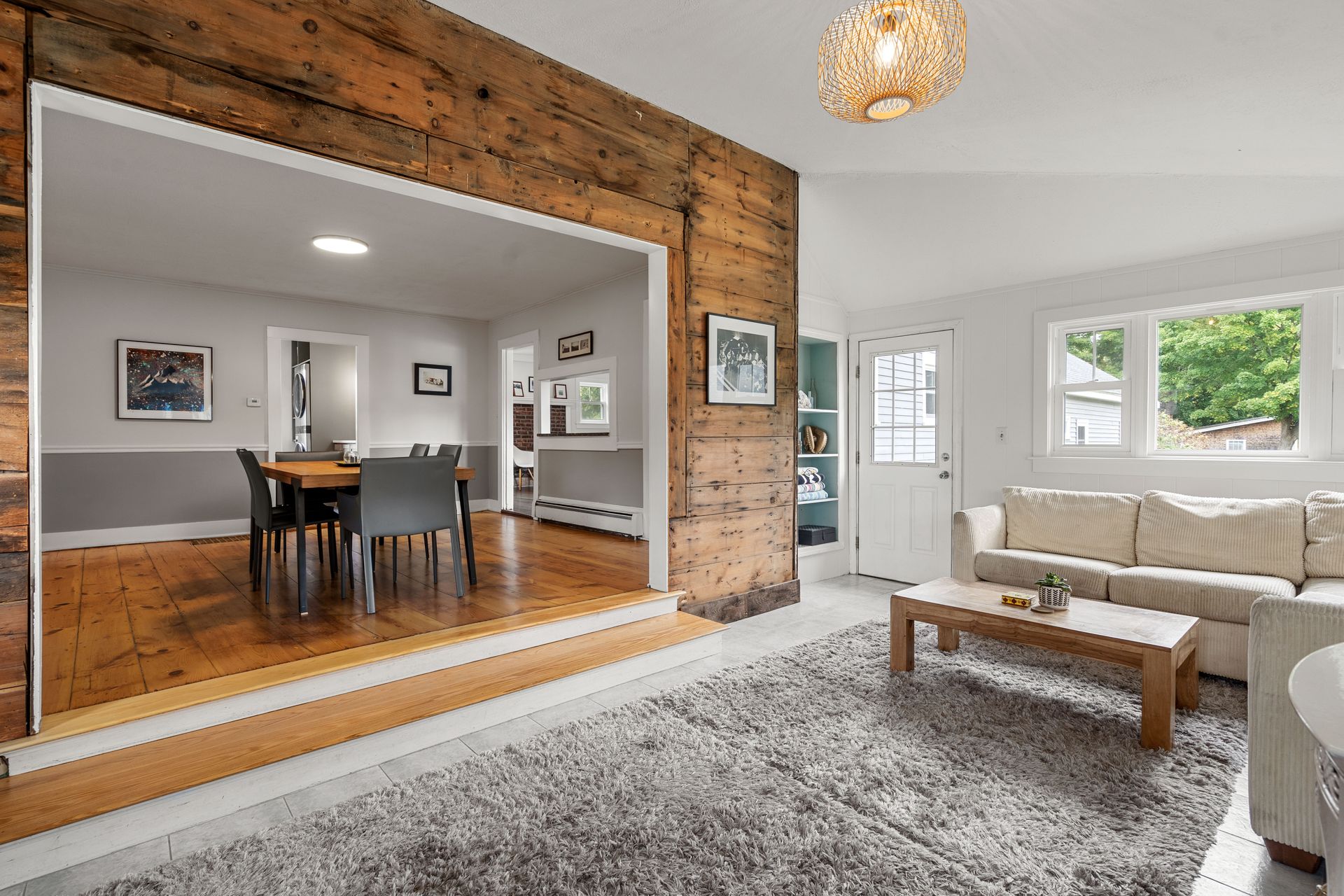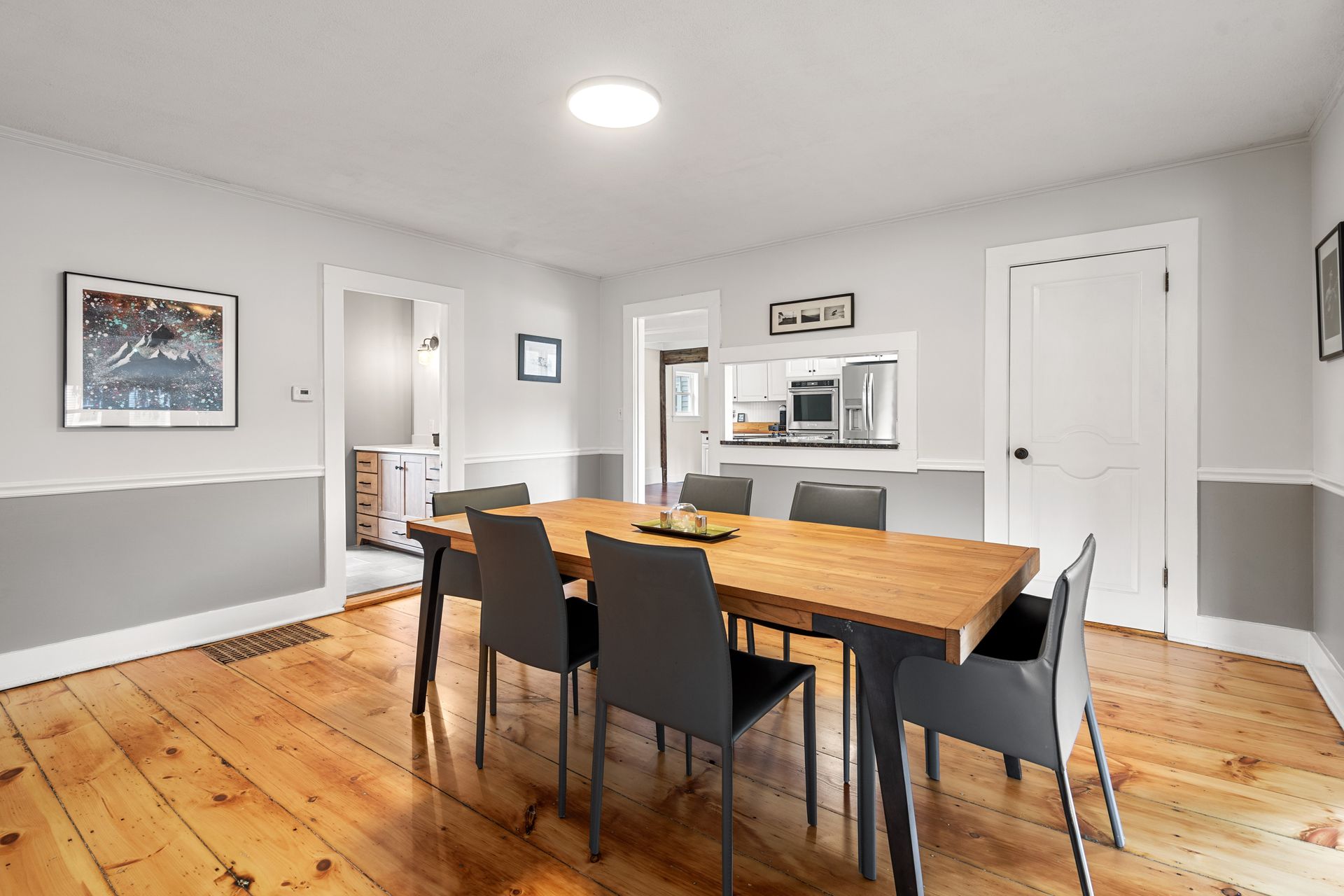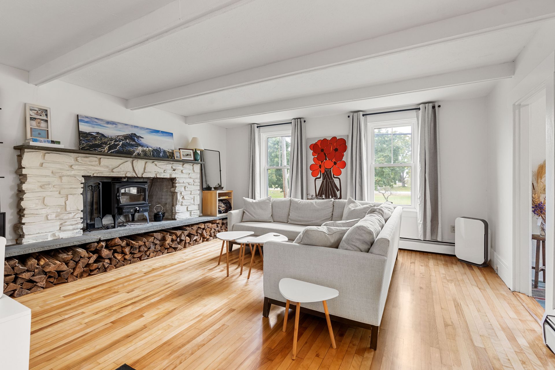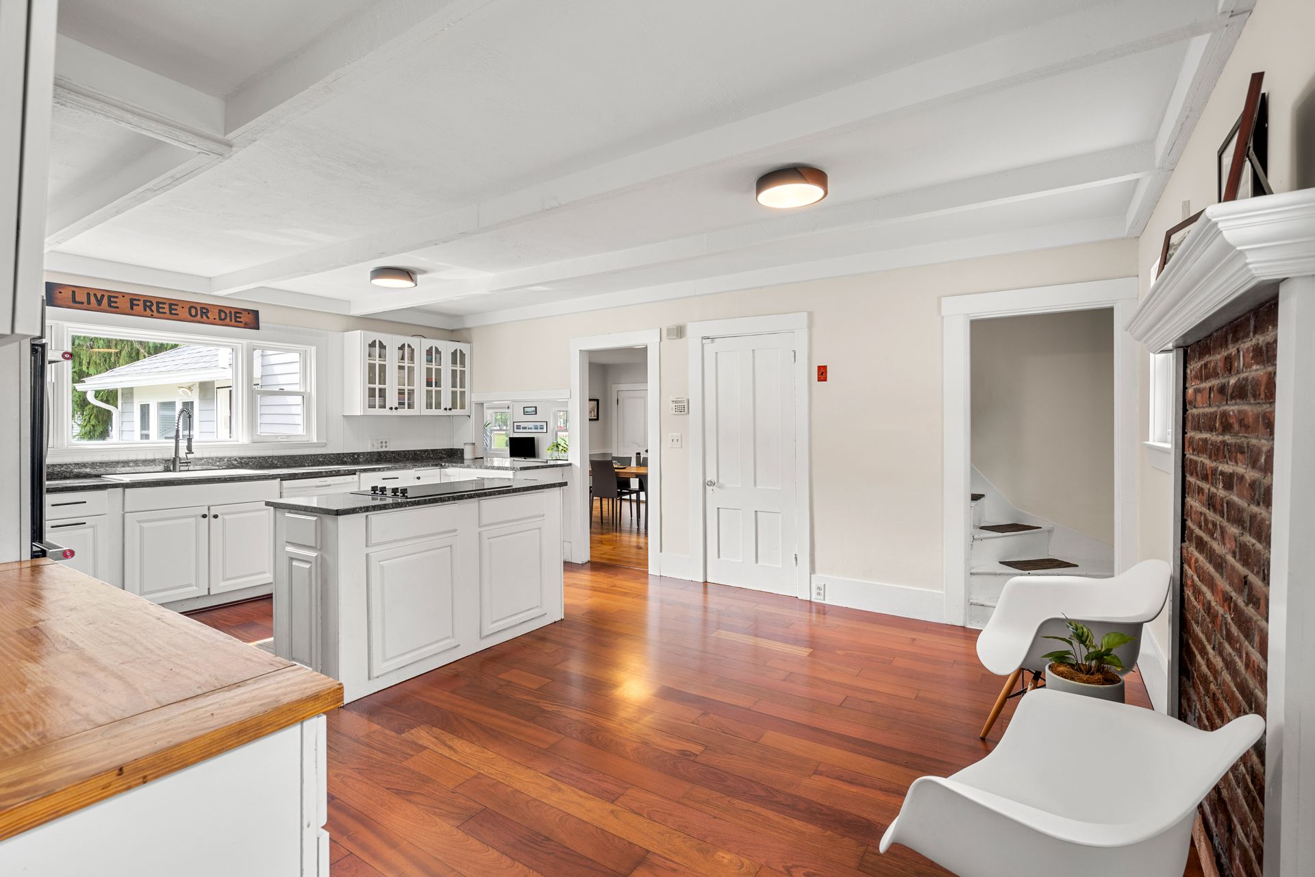 Located on half an acre on the Kingston Plains, this picturesque New England home features about 2,947 finished square feet, three-bedrooms, two-baths, and many updates for modern convenience. The first floor has an oversized, eat-in kitchen with a center island, granite countertops, an abundance of cabinets and counter space, and recently refinished cherry hardwood flooring. An open-concept formal dining room with original wide-pine flooring and built-ins leads into the sunroom with exposed original shiplap. The front living room has a woodstove (chimney liner added in 2022) in the fieldstone fireplace. The first floor is rounded out with a primary bedroom tucked away from the main part of the house, a completely renovated full bathroom with laundry, a large mudroom, and a home gym. Upstairs includes two additional bedrooms, a front office, wide-pine flooring, and a spacious 3/4 bathroom. Pull down the attic ladder for ample storage or potential expansion. The attached expansive attached garage is completed with a large workshop area. Ideal for potential ADU conversion or in-home business with plenty of parking. Some major improvements include roof replacement this September 2024, heating system replacement in 2021, hot water heater replacement in 2022, and a septic line replacement in 2021. A more complete list of upgrades is included in the attachments. Conveniently located near shopping, schools, restaurants, Kingston State Park, and major routes 125 and 101.