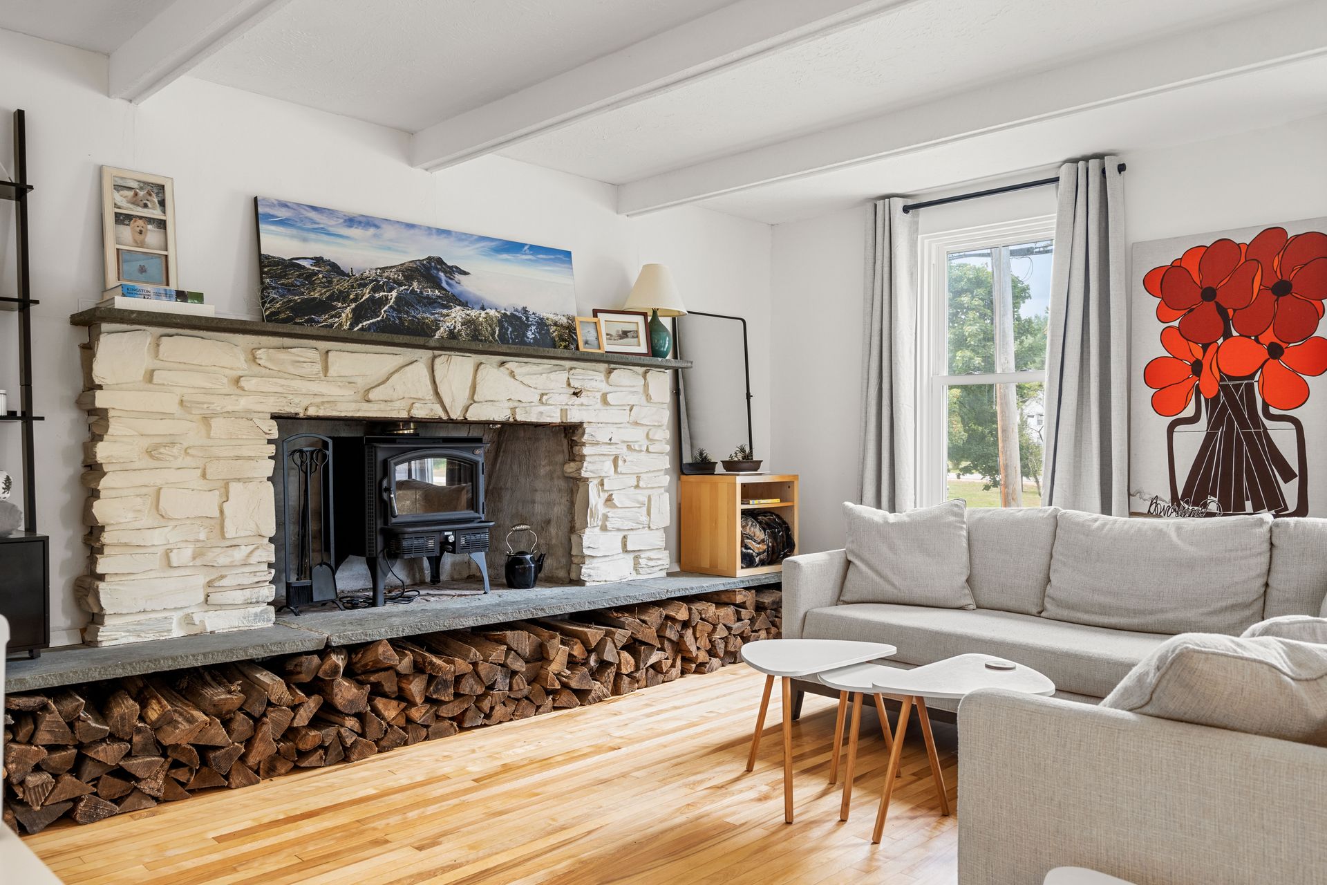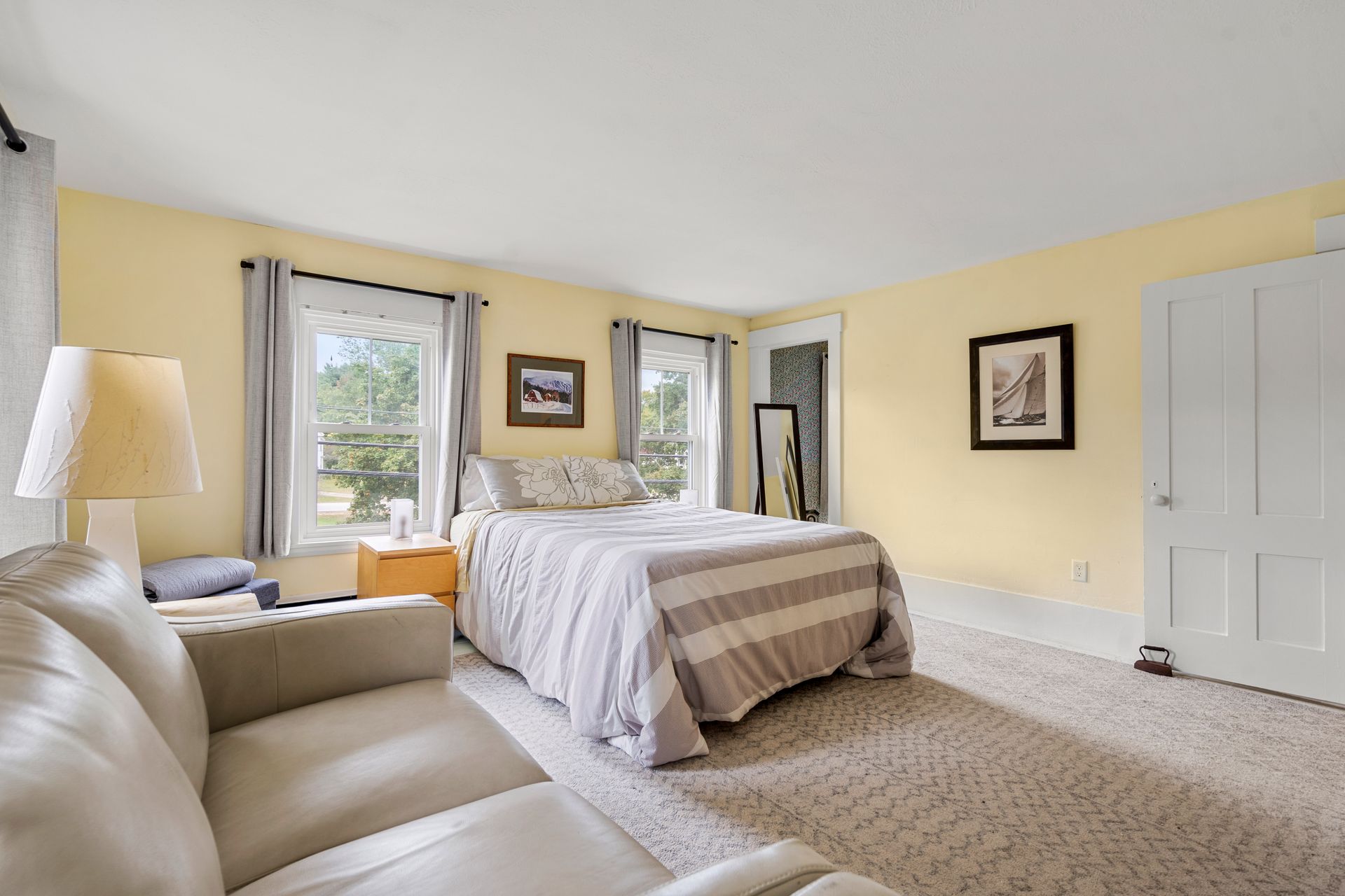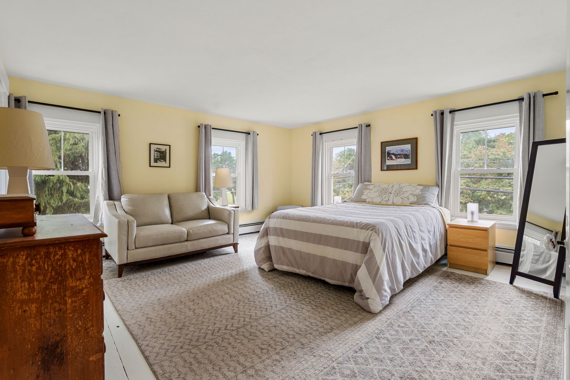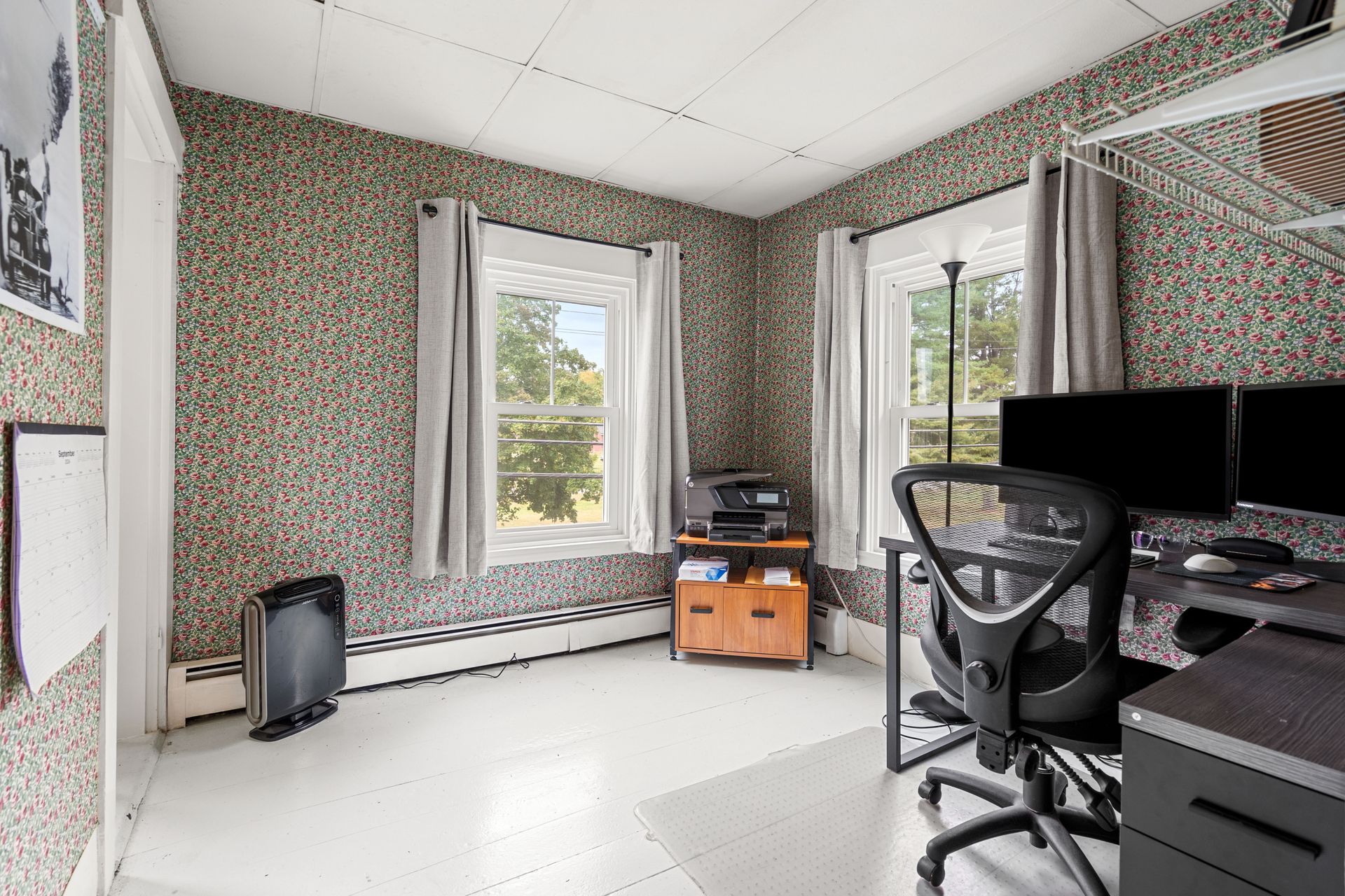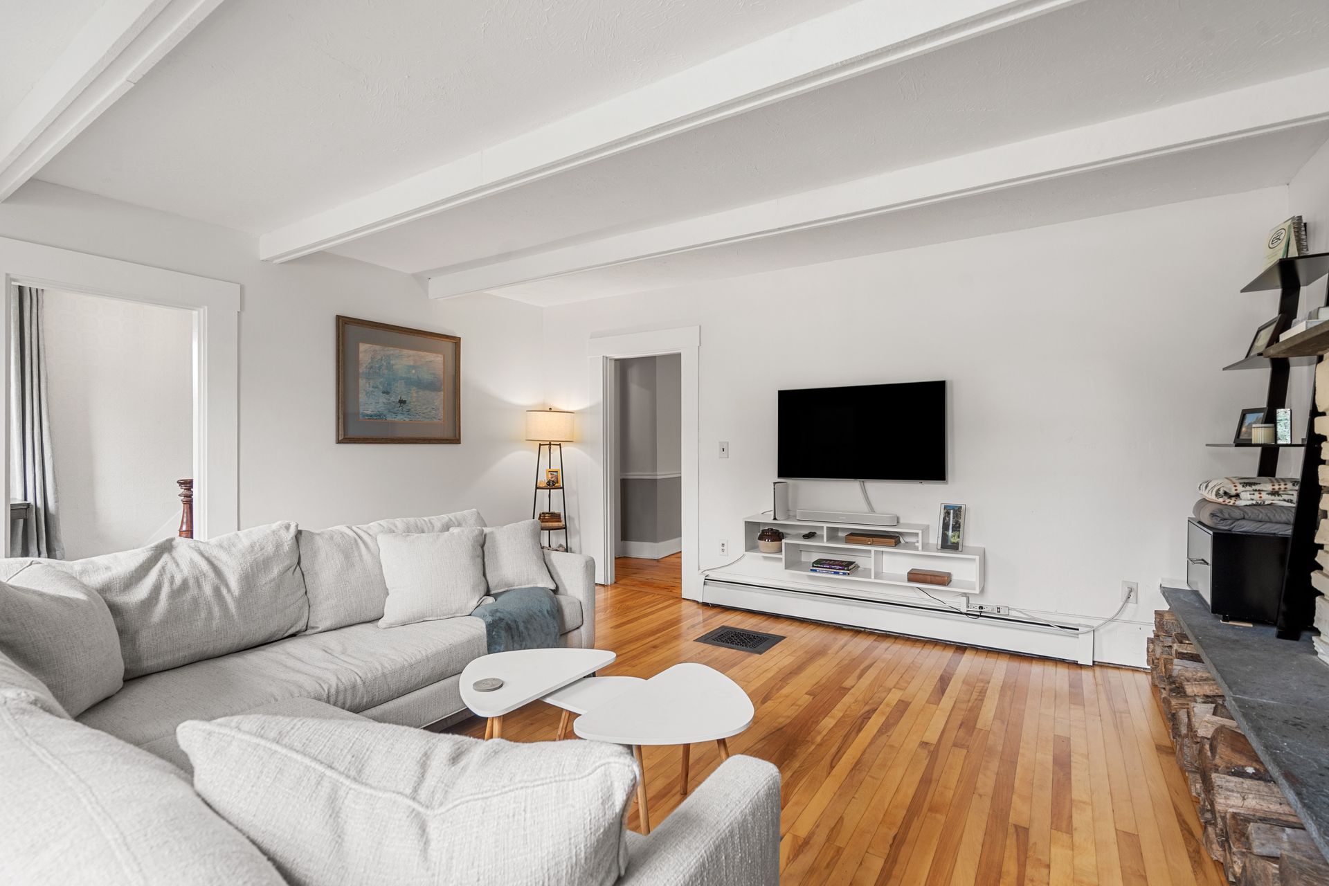 Located on half an acre on the Kingston Plains, this picturesque New England home features about 2,947 finished square feet, three-bedrooms, two-baths, and many updates for modern convenience. The first floor has an oversized, eat-in kitchen with a center island, granite countertops, an abundance of cabinets and counter space, and recently refinished cherry hardwood flooring. An open-concept formal dining room with original wide-pine flooring and built-ins leads into the sunroom with exposed original shiplap. The front living room has a woodstove (chimney liner added in 2022) in the fieldstone fireplace. The first floor is rounded out with a primary bedroom tucked away from the main part of the house, a completely renovated full bathroom with laundry, a large mudroom, and a home gym. Upstairs includes two additional bedrooms, a front office, wide-pine flooring, and a spacious 3/4 bathroom. Pull down the attic ladder for ample storage or potential expansion. The attached expansive attached garage is completed with a large workshop area. Ideal for potential ADU conversion or in-home business with plenty of parking. Some major improvements include roof replacement this September 2024, heating system replacement in 2021, hot water heater replacement in 2022, and a septic line replacement in 2021. A more complete list of upgrades is included in the attachments. Conveniently located near shopping, schools, restaurants, Kingston State Park, and major routes 125 and 101.