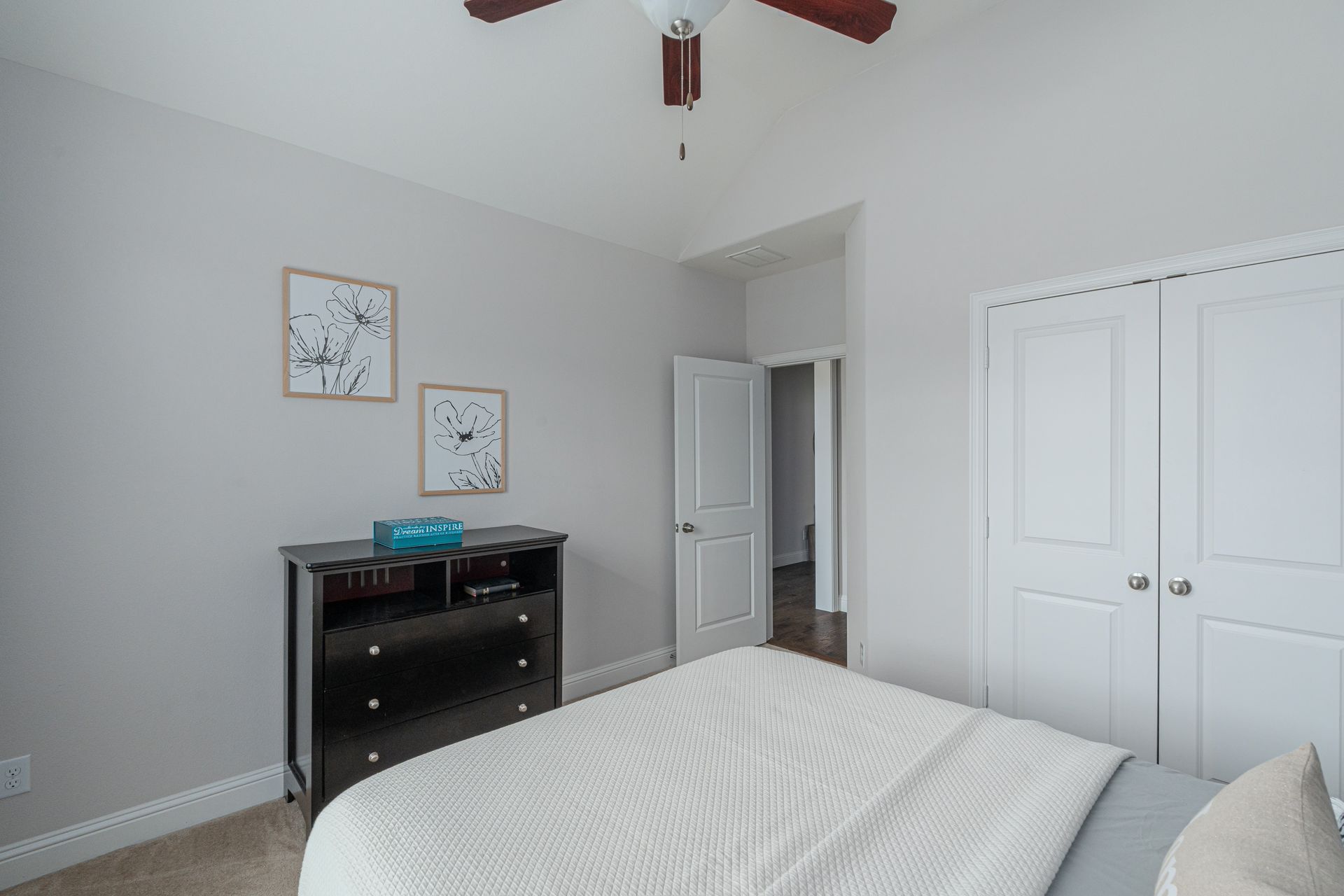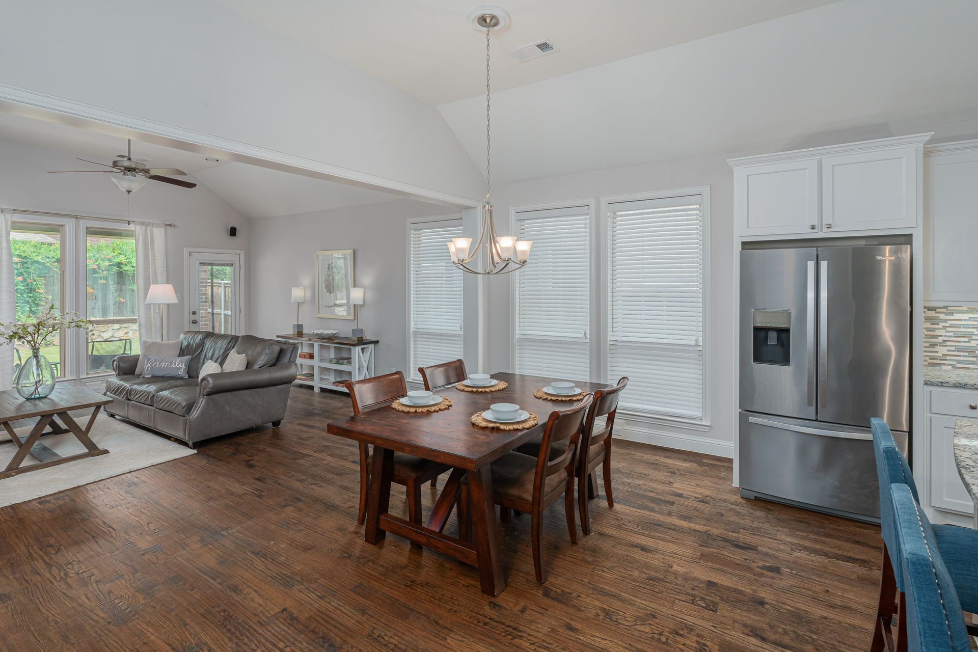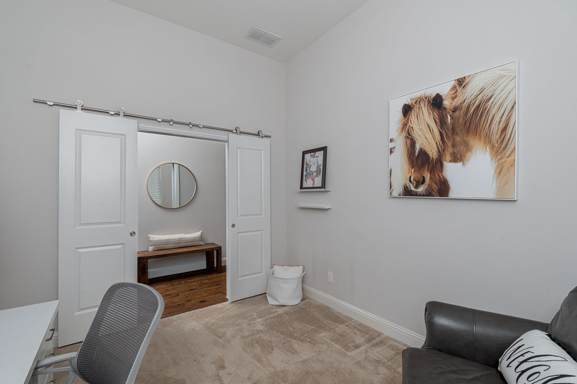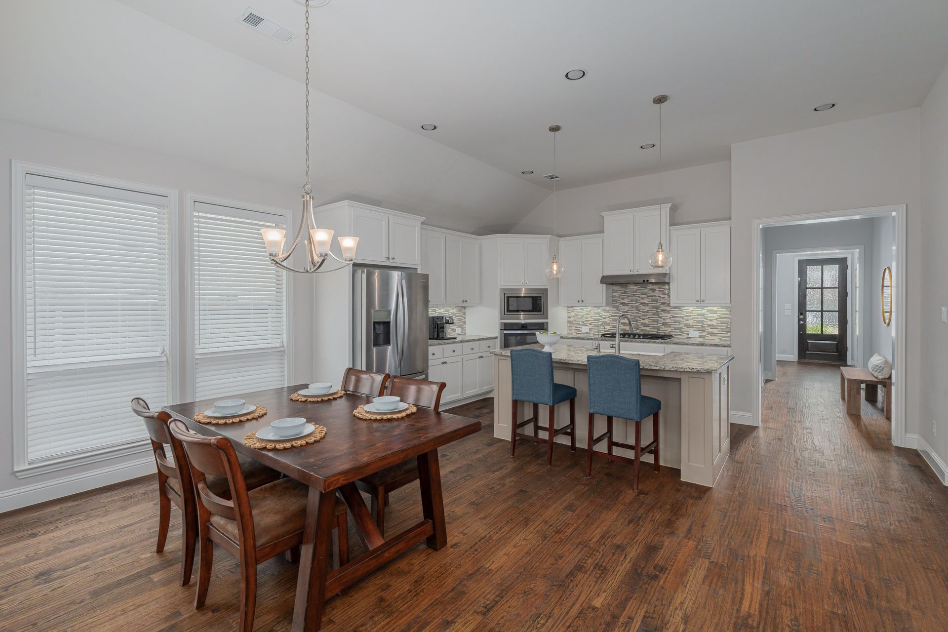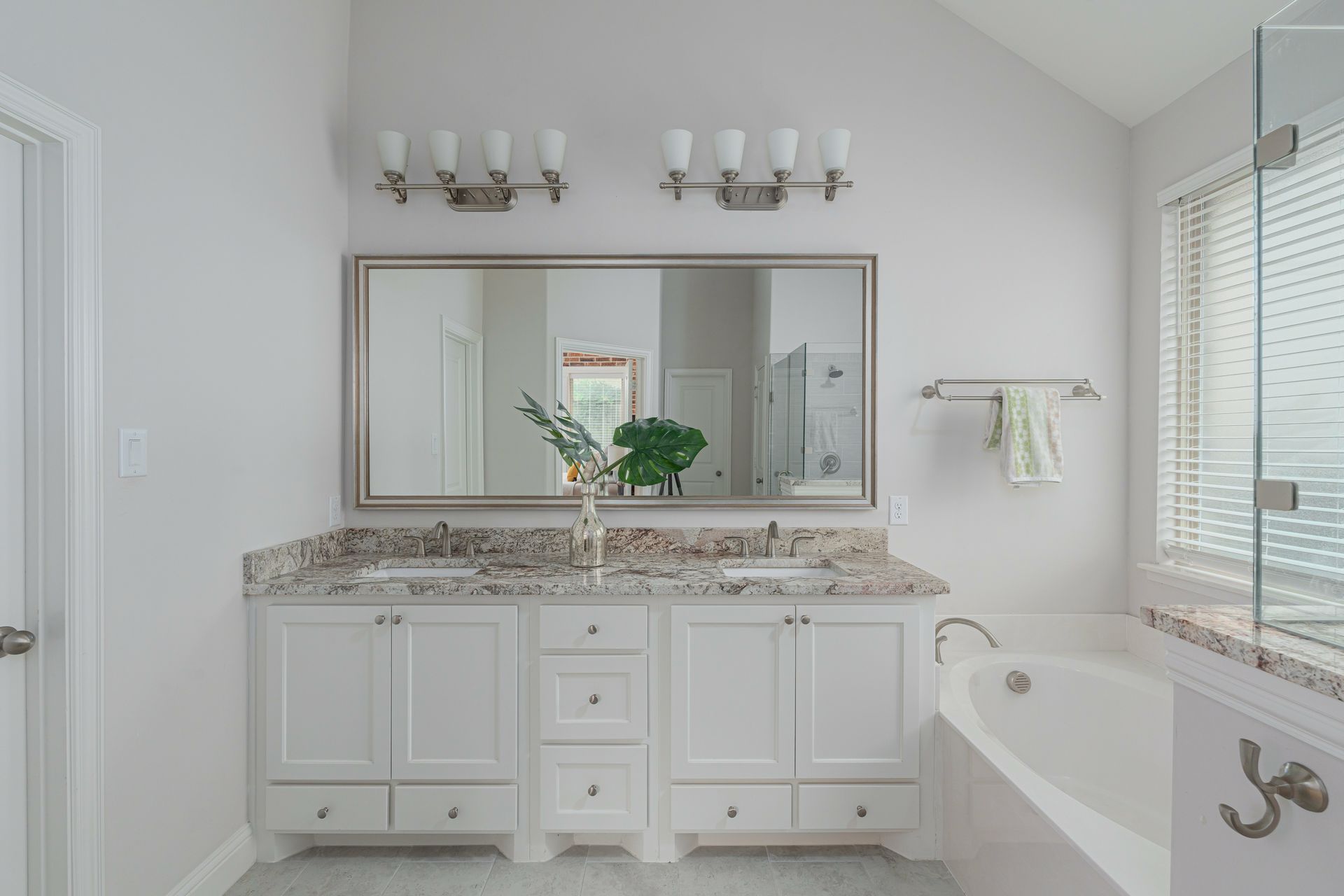 Truly custom and minutes from PGA, don't miss this Prosper beauty with upgrades galore. Enter through the glass front door to find hand scraped nail down hardwood flooring. Wood encased doorways and windows in addition to flat wall paint create a rich and unique interior. The master bedroom features a beautiful brick accent wall. The layout includes three bedrooms with each having their own bathroom. The office with barn doors could easily be converted to an extra bedroom. Kitchen opens to the dining and living area and is perfect for entertaining with granite counters, apron sink, water purifier, custom cabinetry, cabinet hardware, upgraded lighting, large oversized pantry and a built in bar area with a pet kennel underneath. A wood burning fireplace with cedar mantel warms the living room in the cold evenings. The master bathroom is spacious with his and her closets, granite, frameless shower and upgraded tile. The oversized garage is perfect for a golf cart and the utility room comes with sink. Prosper ISD.