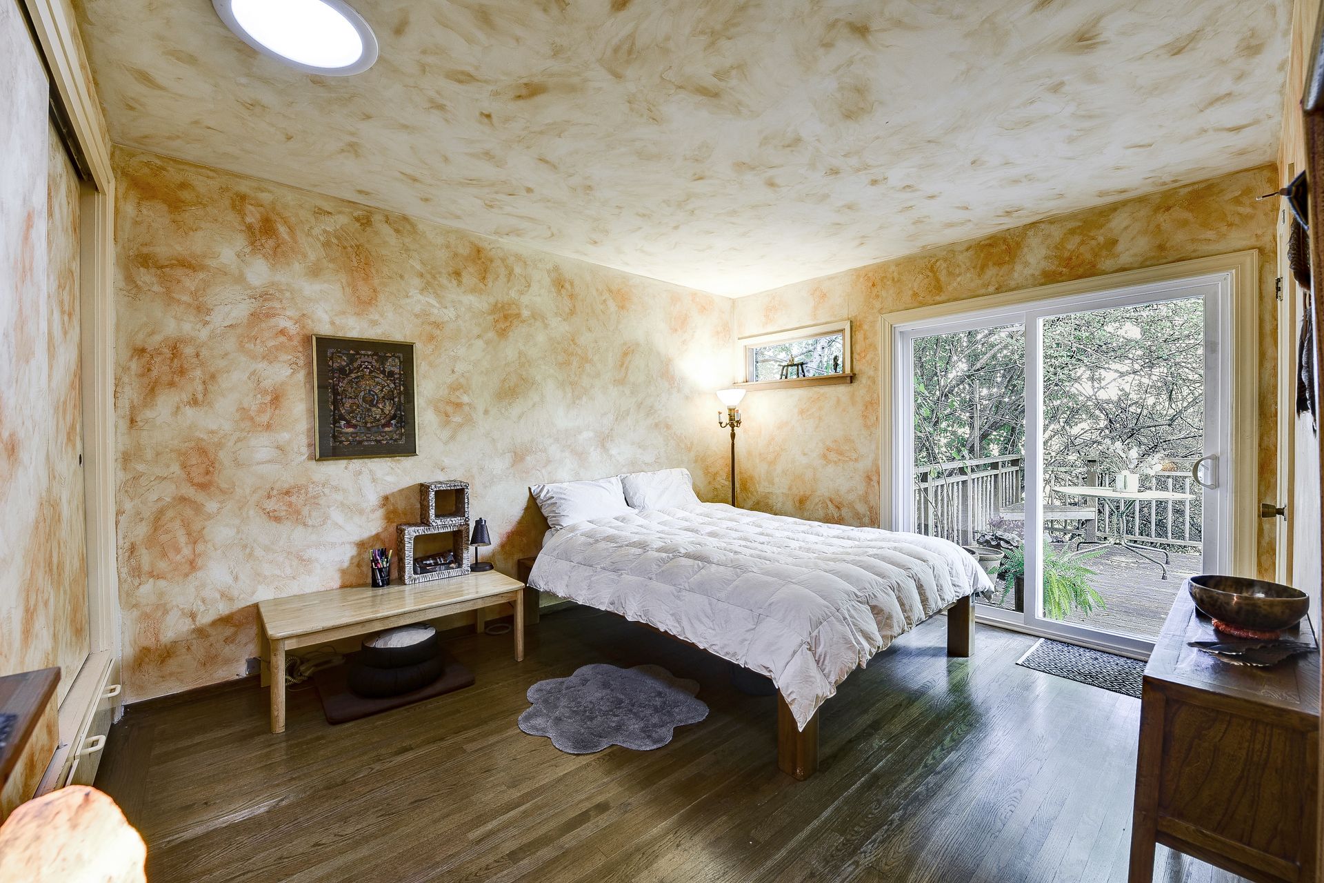 • Private master suite with en suite bath and heated river rock floors opening to decks and garden areas
