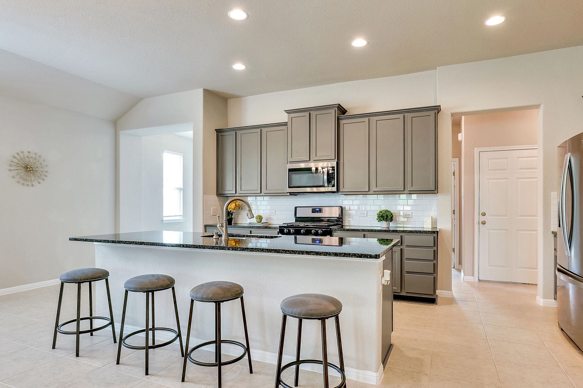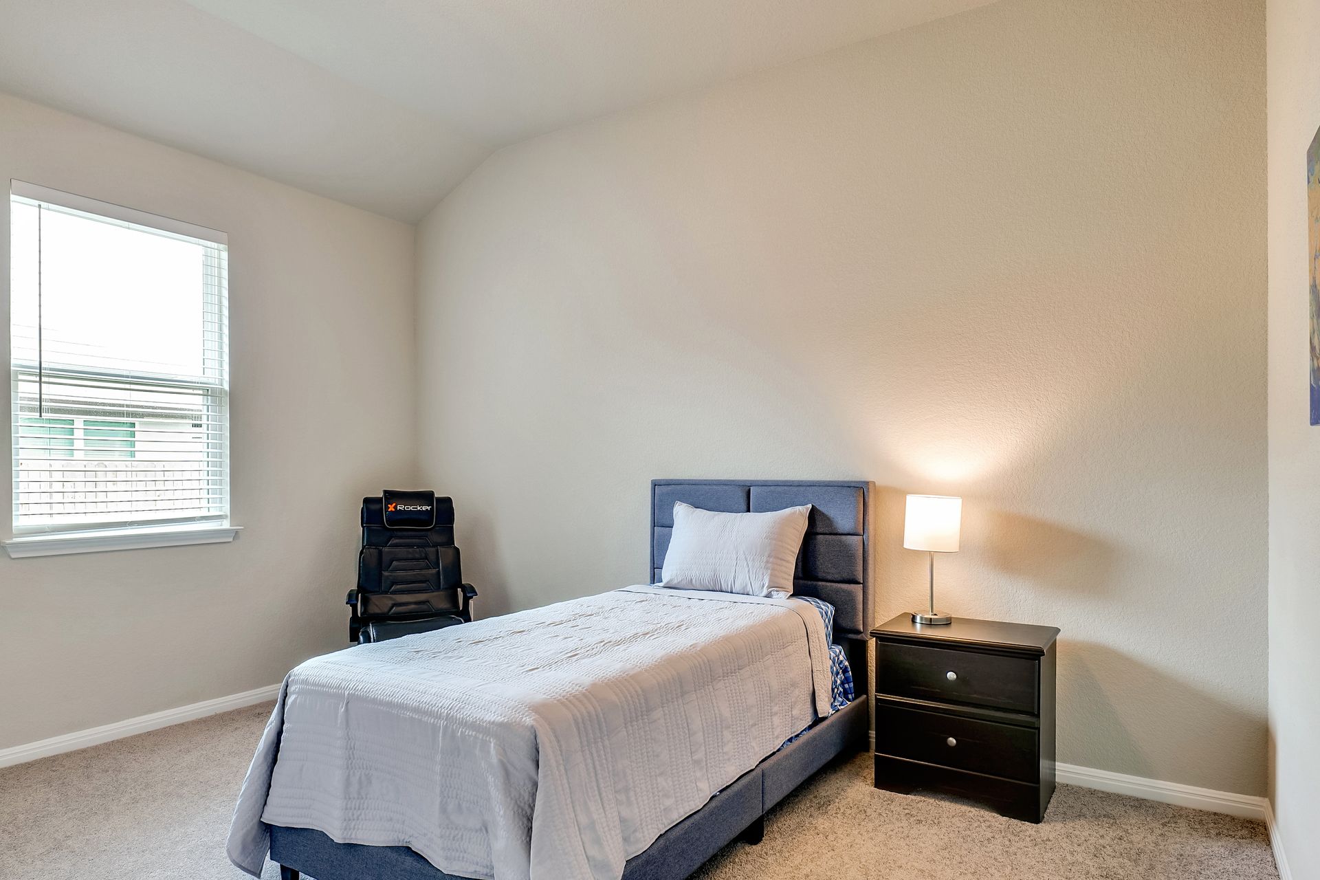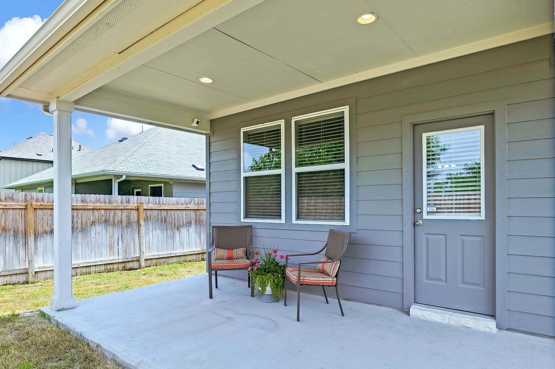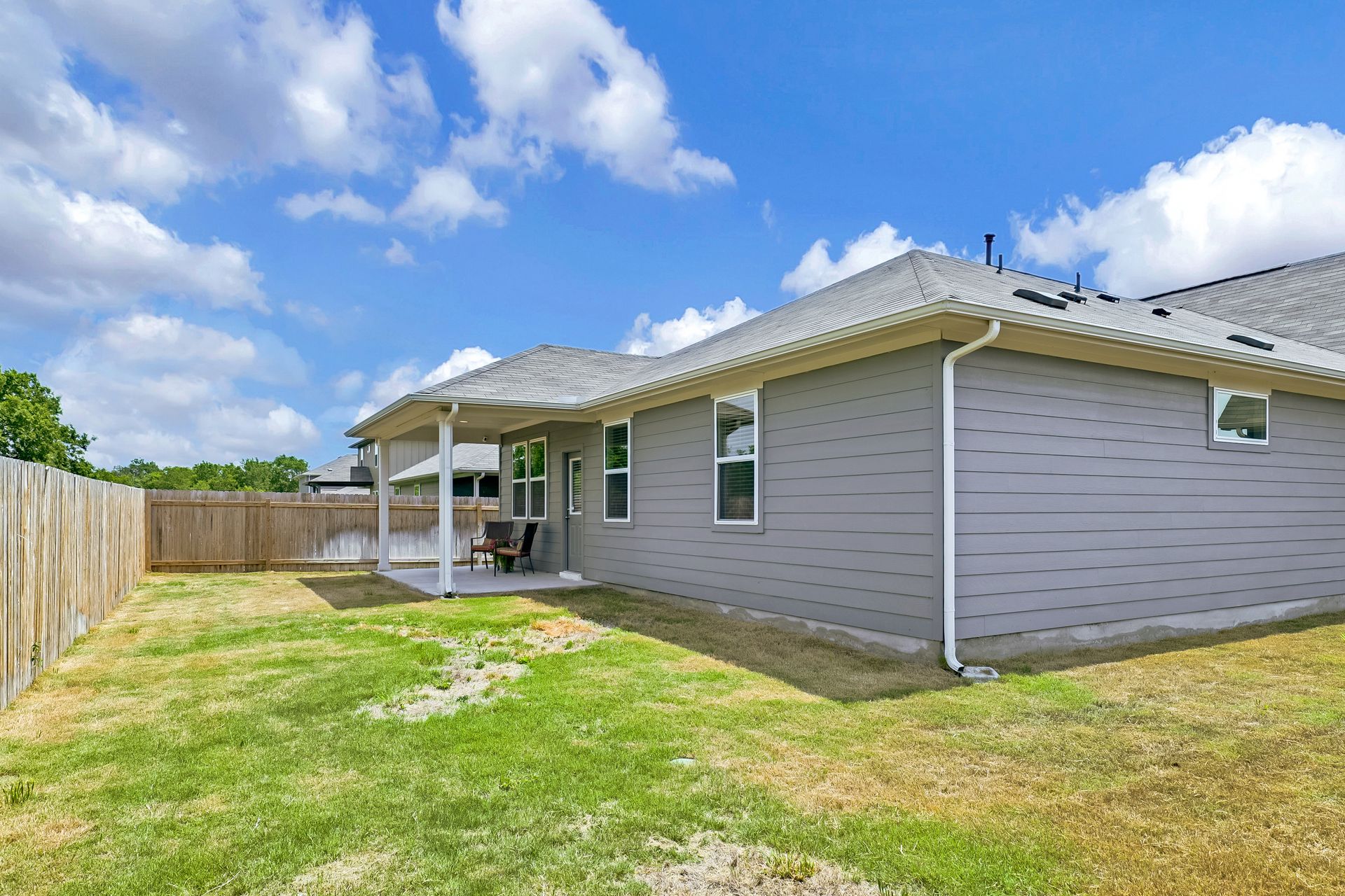 Barely lived in! This one-story, three bedroom, two and one-half bathroom home with a three-car garage is ready for move-in. This sun-filled home has an open floor plan, great for entertaining. It has 42-inch kitchen cabinets and an over-size kitchen island with plenty of counter space and storage. The primary bedroom is away from the secondary bedrooms for privacy. The primary bathroom has two walk-in closets and a walk-in shower. The backyard backs to the greenbelt and has a covered patio. It’s a short walk to the community pool as well as the trails. Close to restaurants, shops, grocery stores, hospitals and many other conveniences, with easy access to I-35 and State Highway 45.