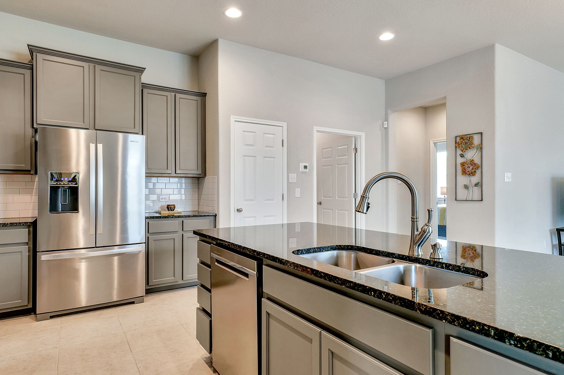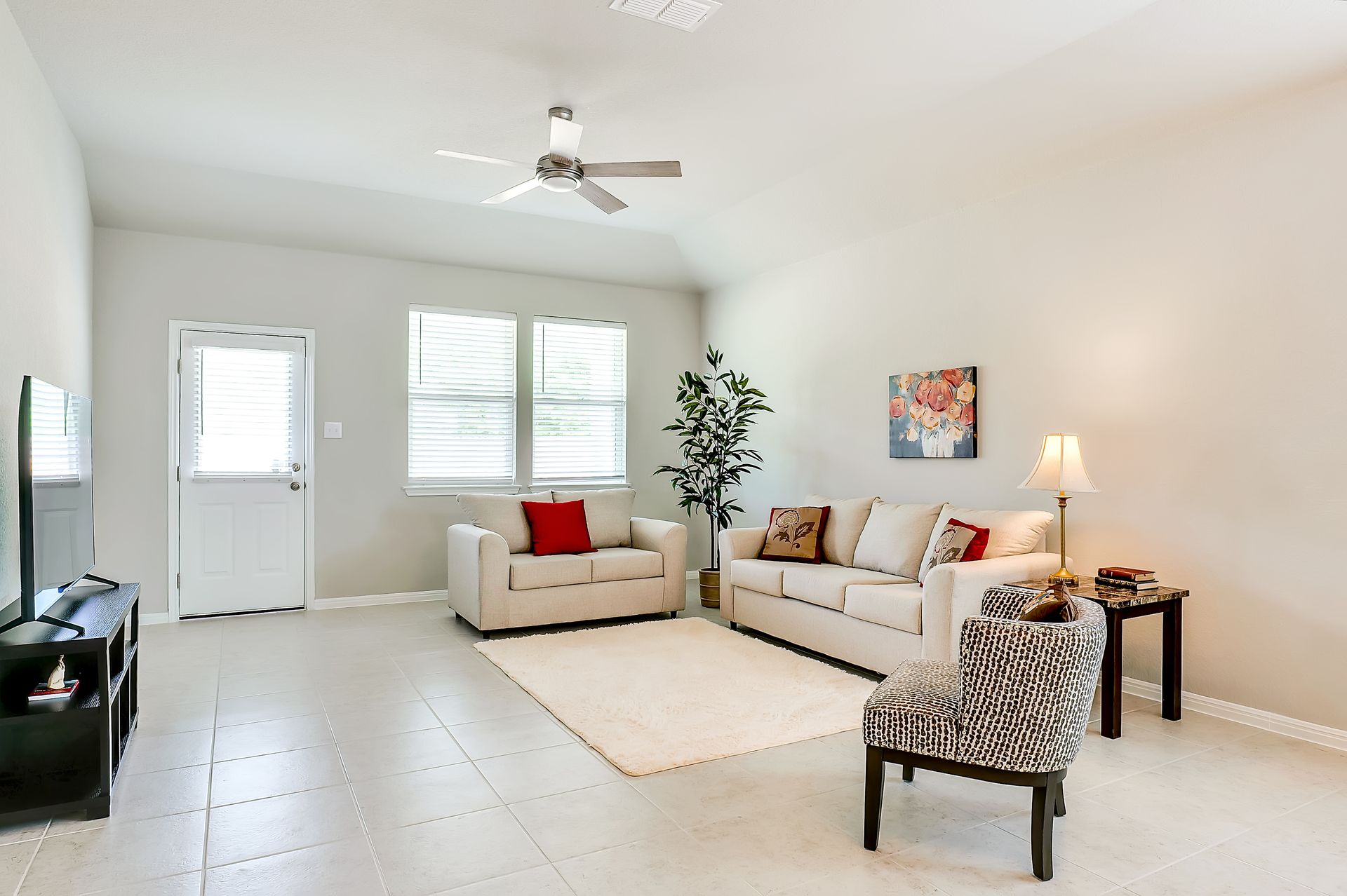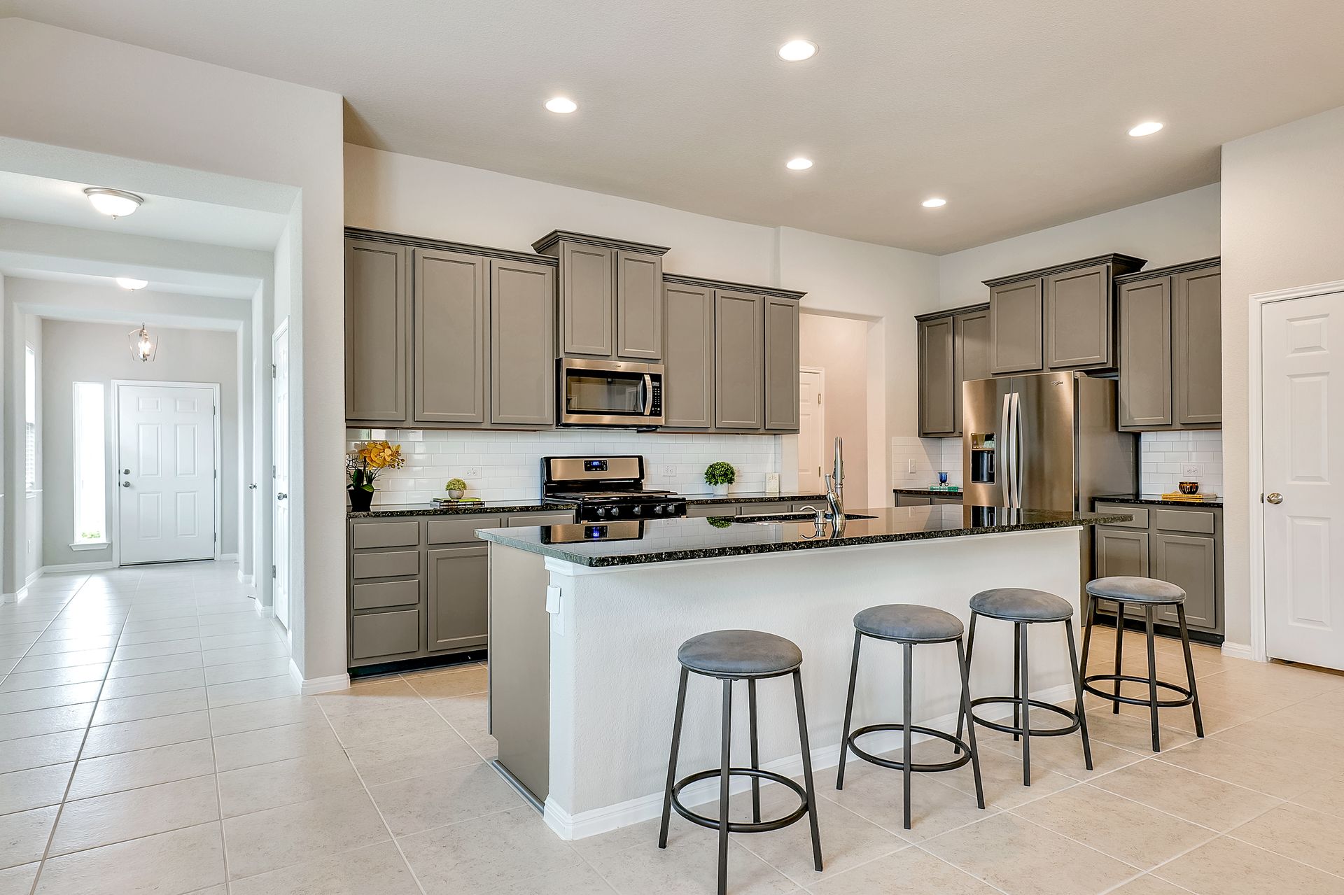 Barely lived in! This one-story, three bedroom, two and one-half bathroom home with a three-car garage is ready for move-in. This sun-filled home has an open floor plan, great for entertaining. It has 42-inch kitchen cabinets and an over-size kitchen island with plenty of counter space and storage. The primary bedroom is away from the secondary bedrooms for privacy. The primary bathroom has two walk-in closets and a walk-in shower. The backyard backs to the greenbelt and has a covered patio. It’s a short walk to the community pool as well as the trails. Close to restaurants, shops, grocery stores, hospitals and many other conveniences, with easy access to I-35 and State Highway 45.
