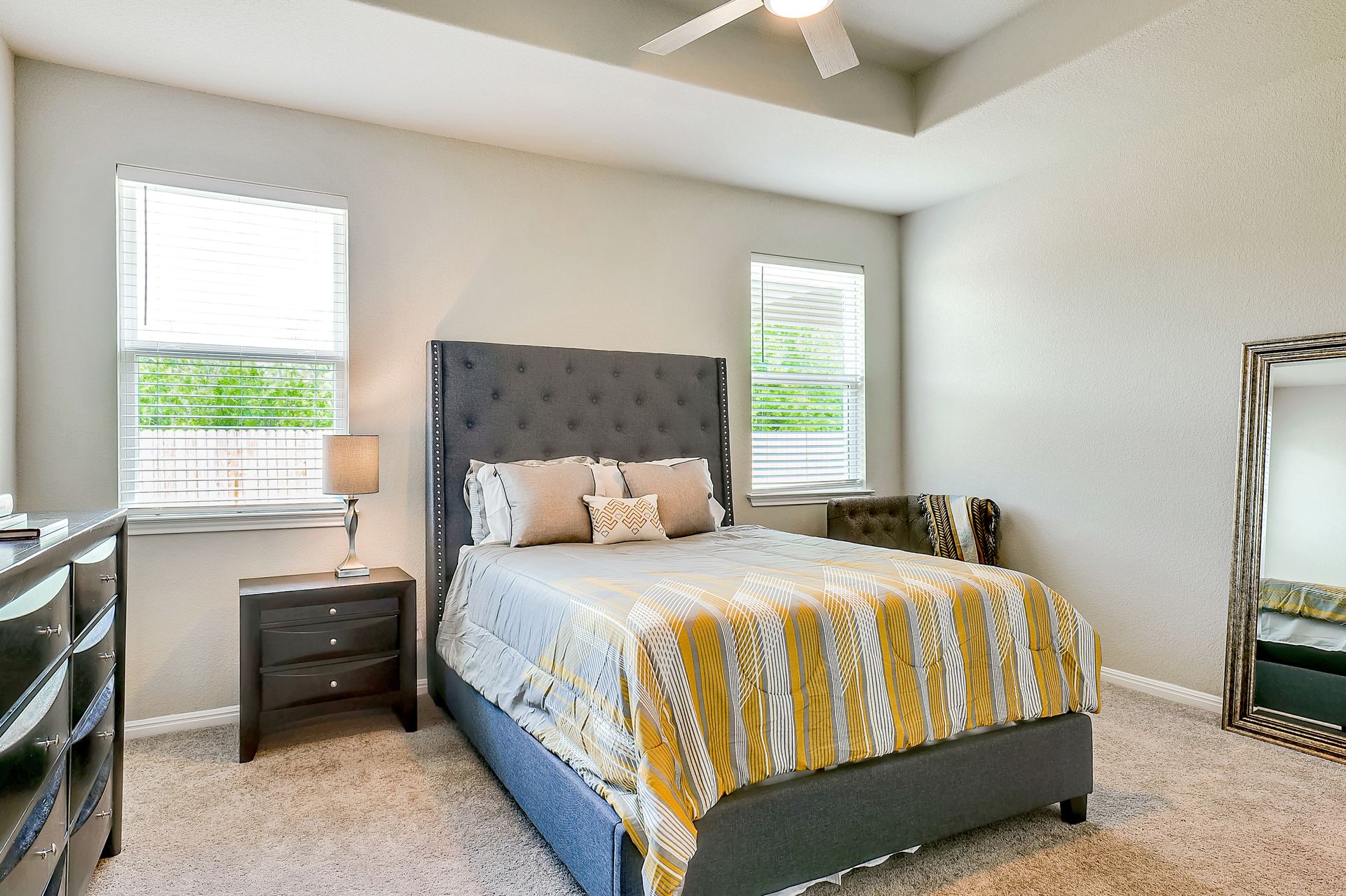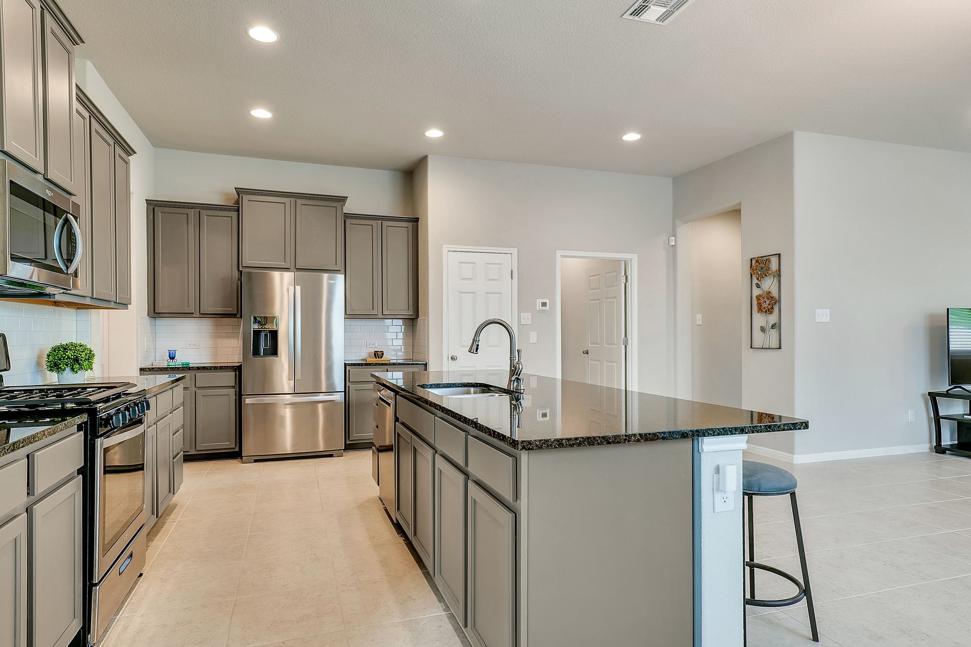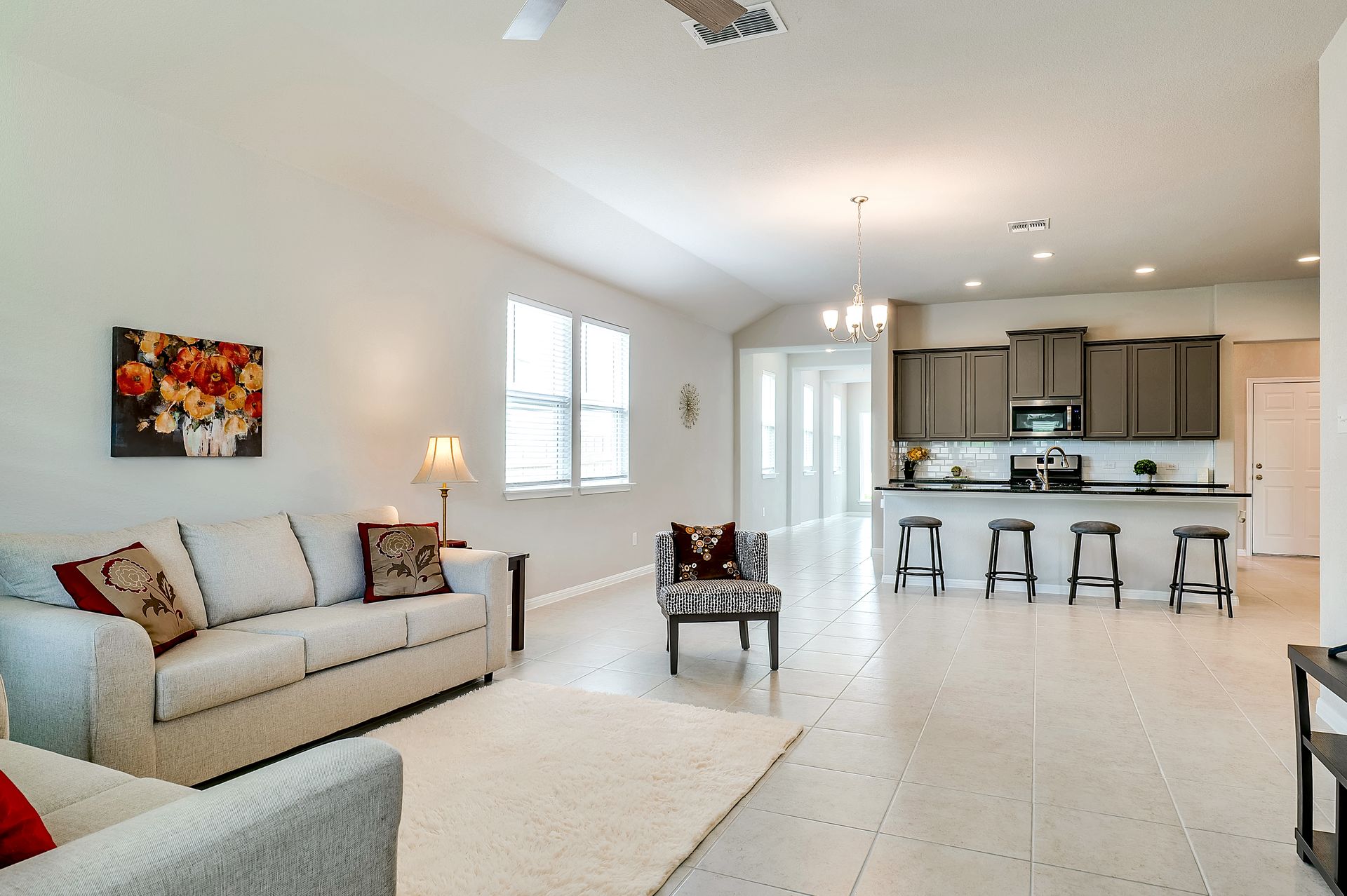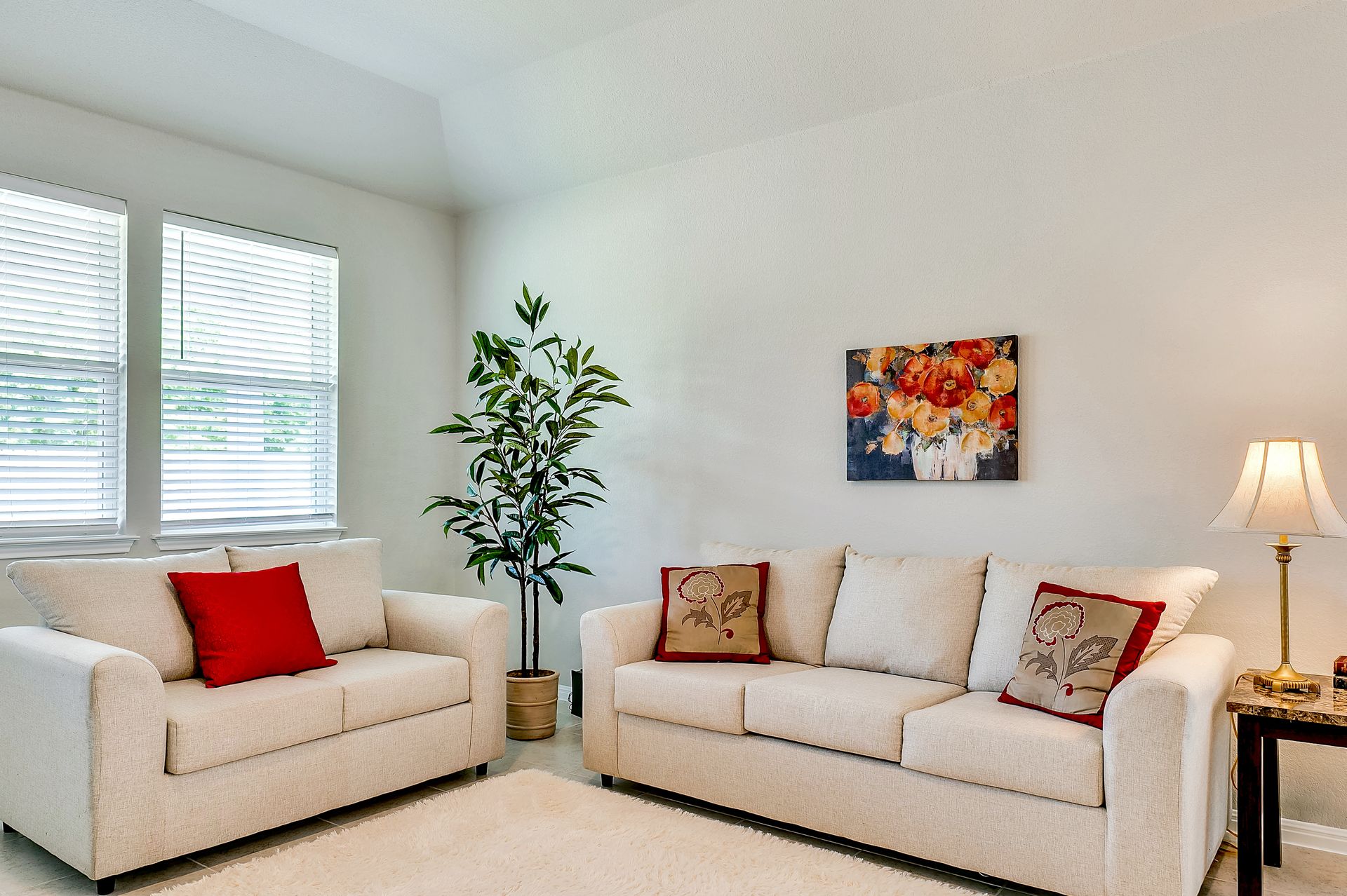Barely lived in! This one-story, three bedroom, two and one-half bathroom home with a three-car garage is ready for move-in. This sun-filled home has an open floor plan, great for entertaining. It has 42-inch kitchen cabinets and an over-size kitchen island with plenty of counter space and storage. The primary bedroom is away from the secondary bedrooms for privacy. The primary bathroom has two walk-in closets and a walk-in shower. The backyard backs to the greenbelt and has a covered patio. It’s a short walk to the community pool as well as the trails. Close to restaurants, shops, grocery stores, hospitals and many other conveniences, with easy access to I-35 and State Highway 45.