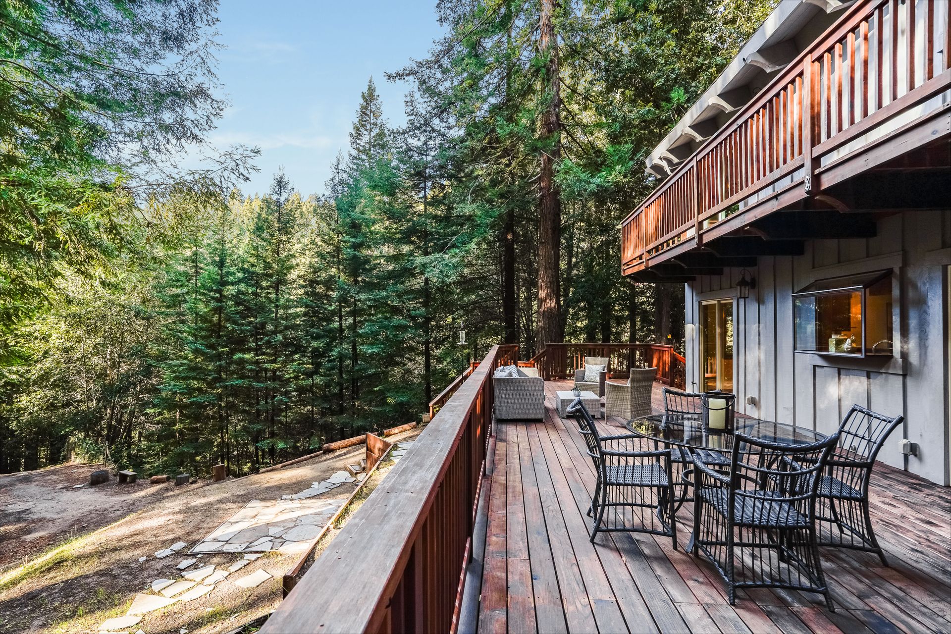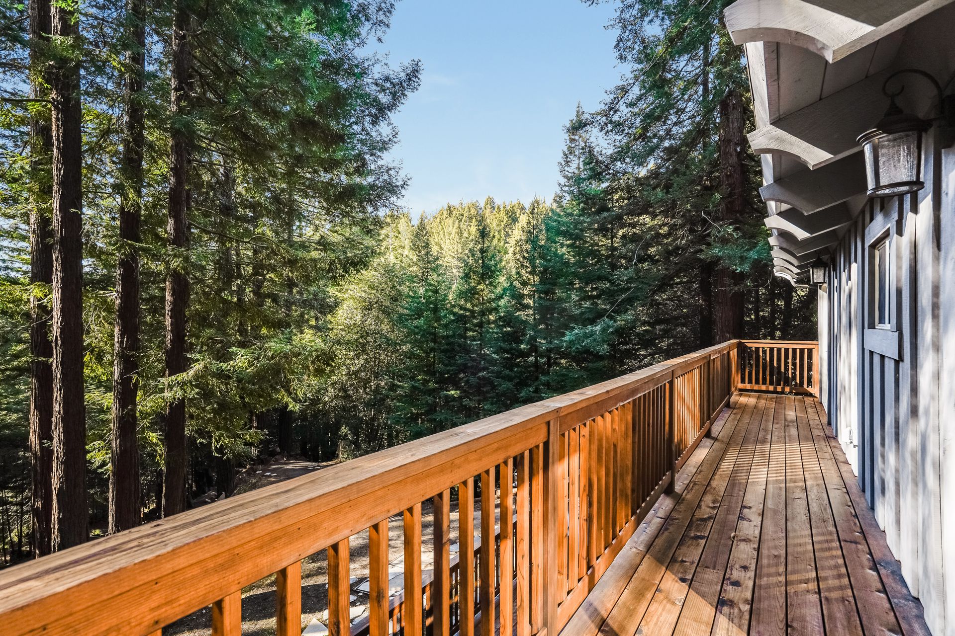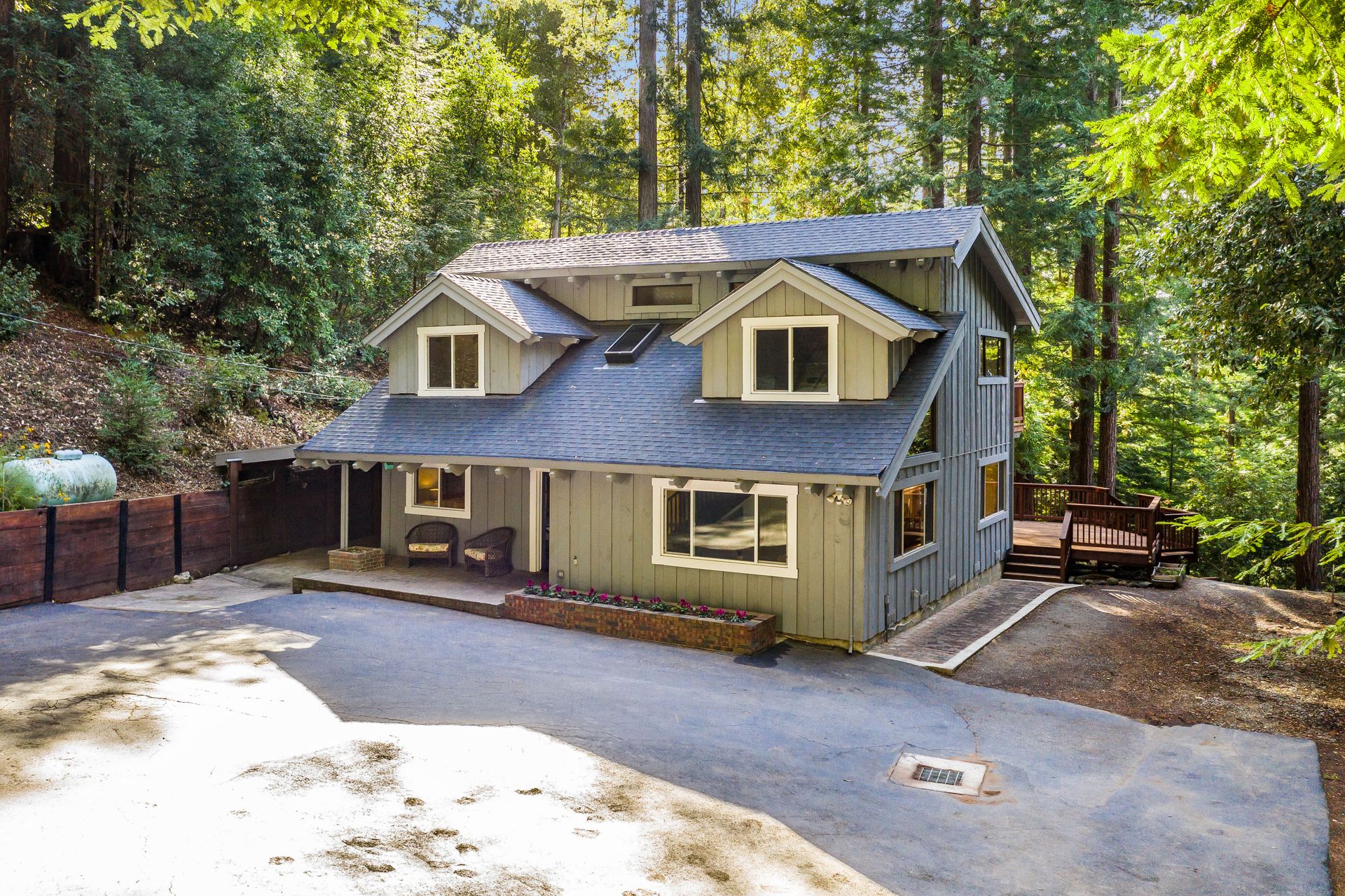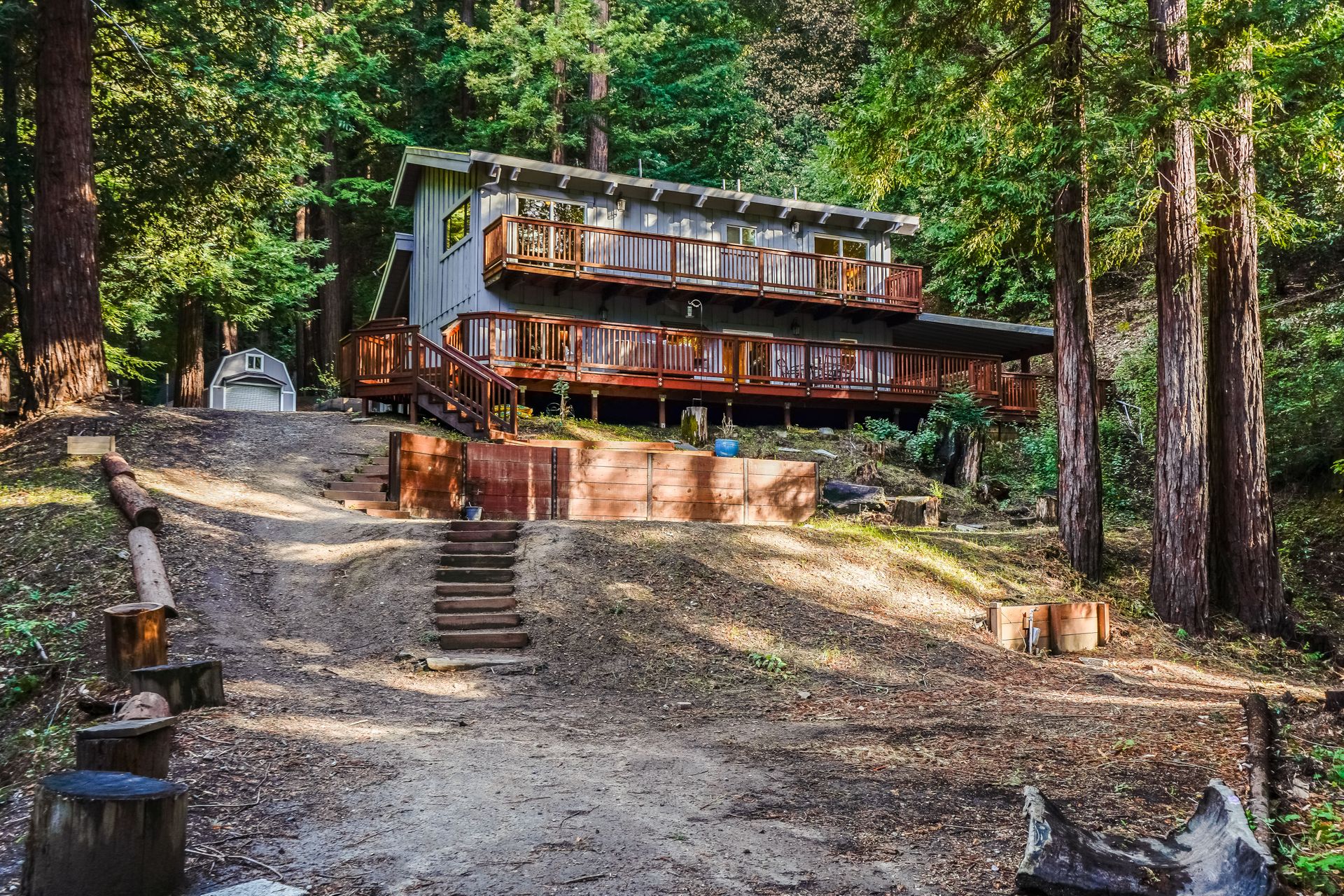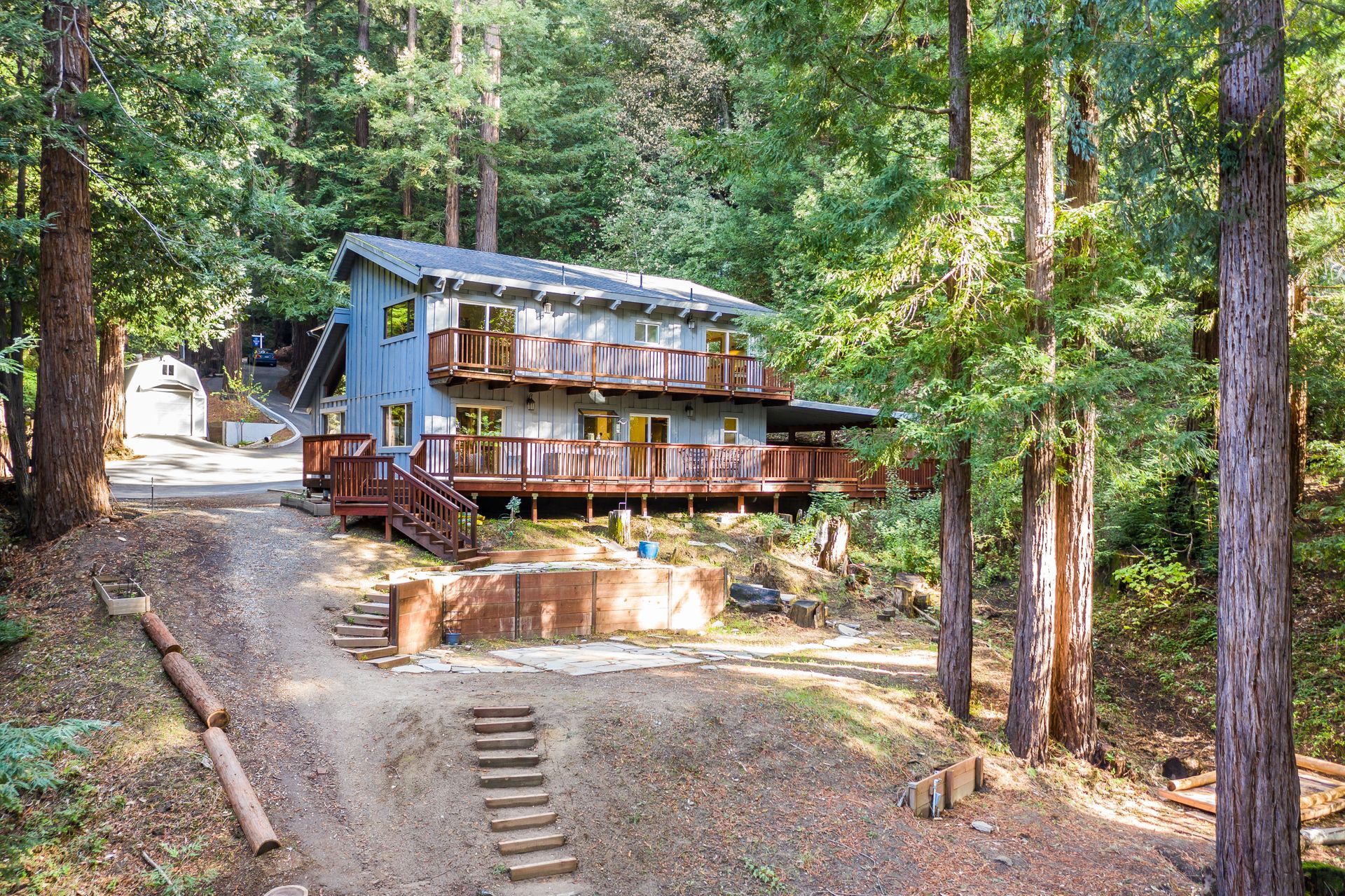 Classic mountain charm and serenity are the hallmarks of this custom home located at the end of a private drive in a highly desirable enclave in the Santa Cruz Mountains. High ceilings, custom millwork, and classic stylings blend for a timeless feel and stunning integration with the outdoor flora and towering Redwood trees. The updated interior features recently remodeled kitchen with custom cabinetry, granite countertops and stainless appliances. Updated baths with gorgeous blend of natural stone finishes combine with hardwood flooring and natural wood design elements throughout. Enjoy the splendor of the forest from two redwood decks or from the numerous outdoor patio areas. Meander down the footpath to your very own custom Yurt, complete with select creature comforts of power and internet. Served by Comcast and top-rated Los Gatos Schools, Loma Prieta, C.T. English and Los Gatos High. Located virtually equidistant between downtown Los Gatos and quaint coastal village of Capitola.