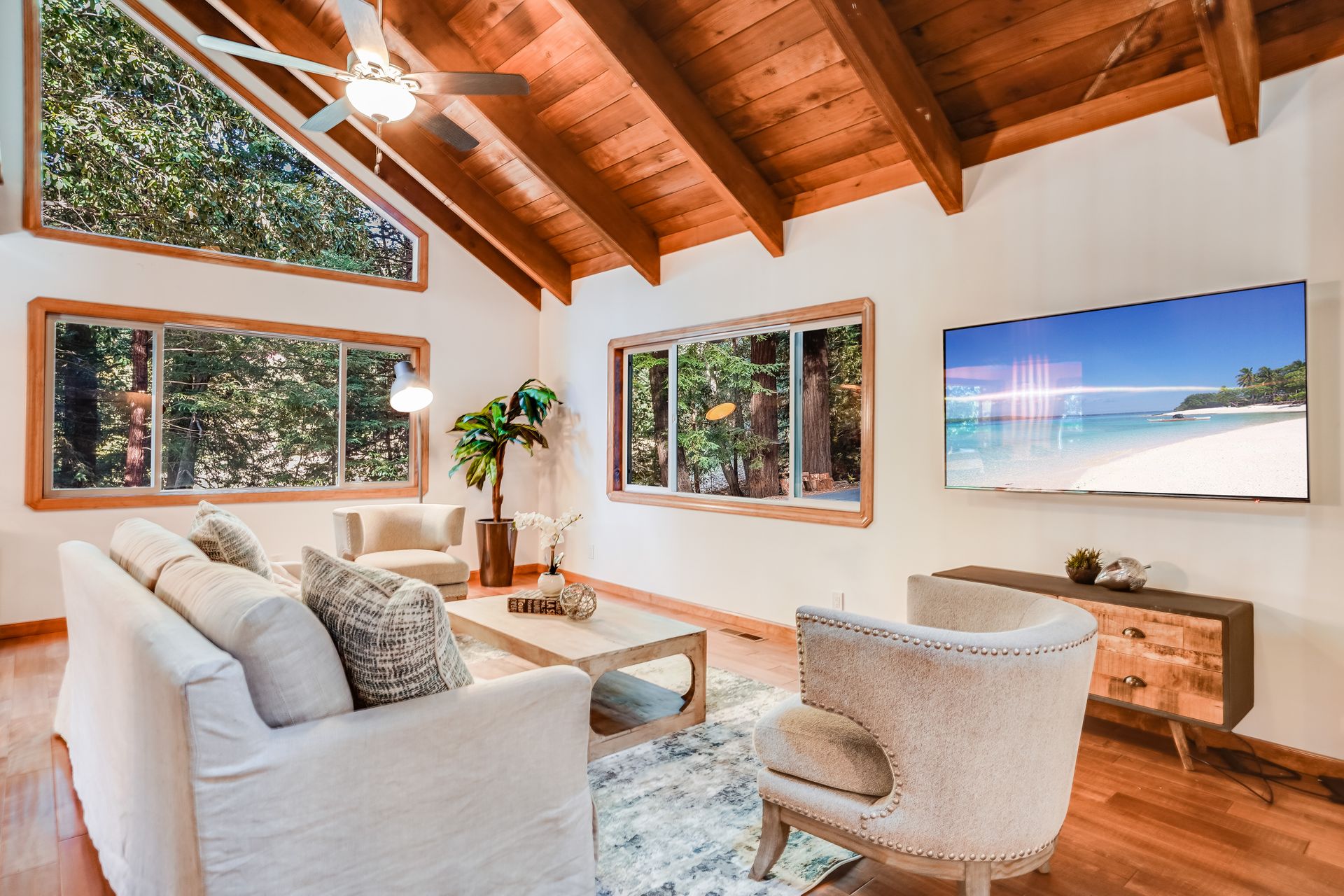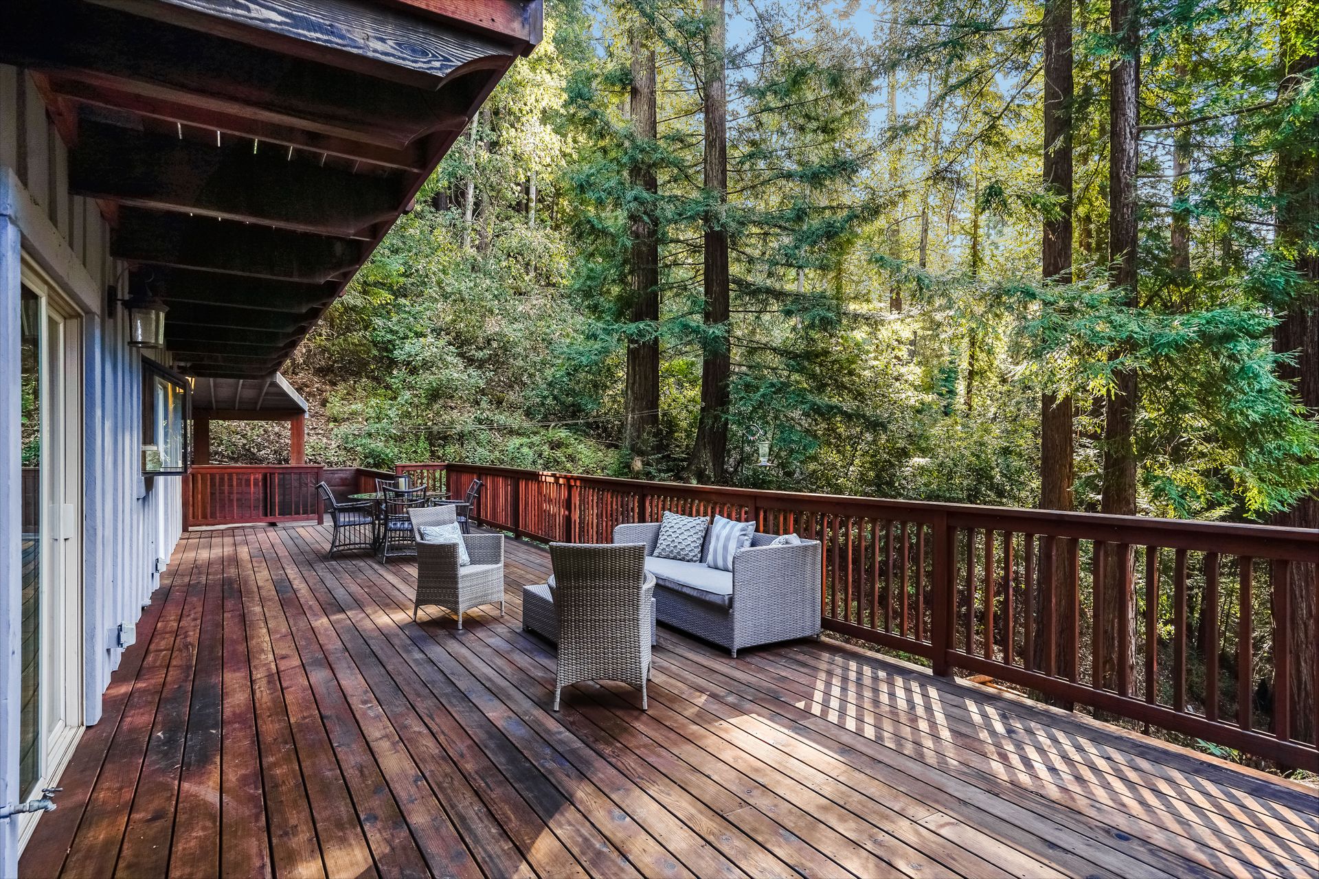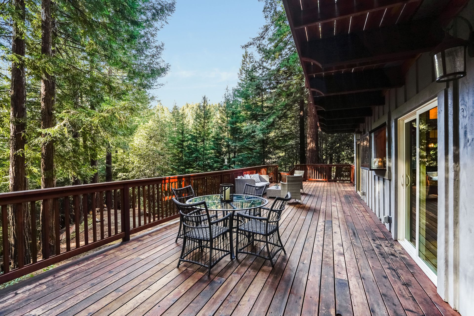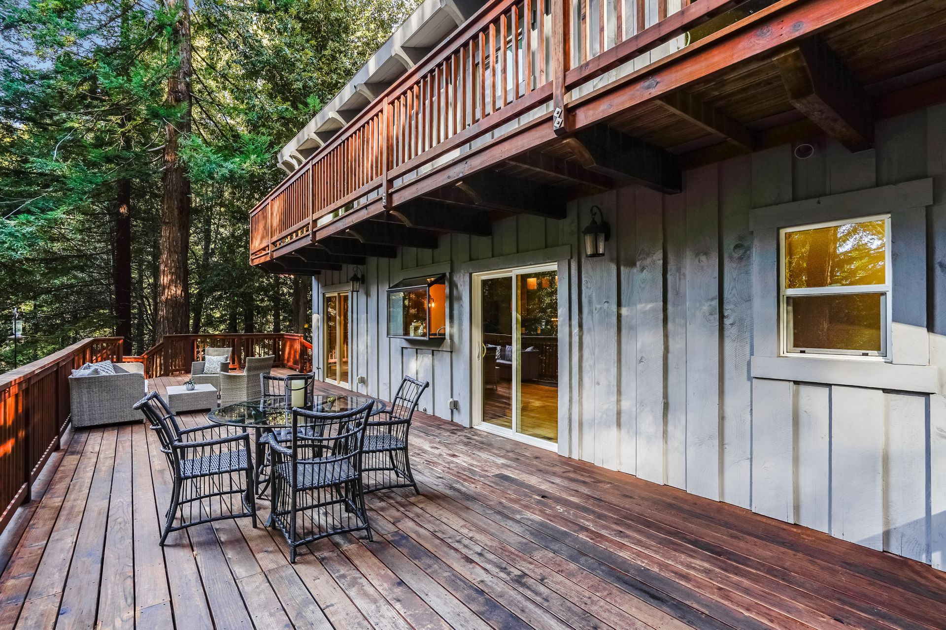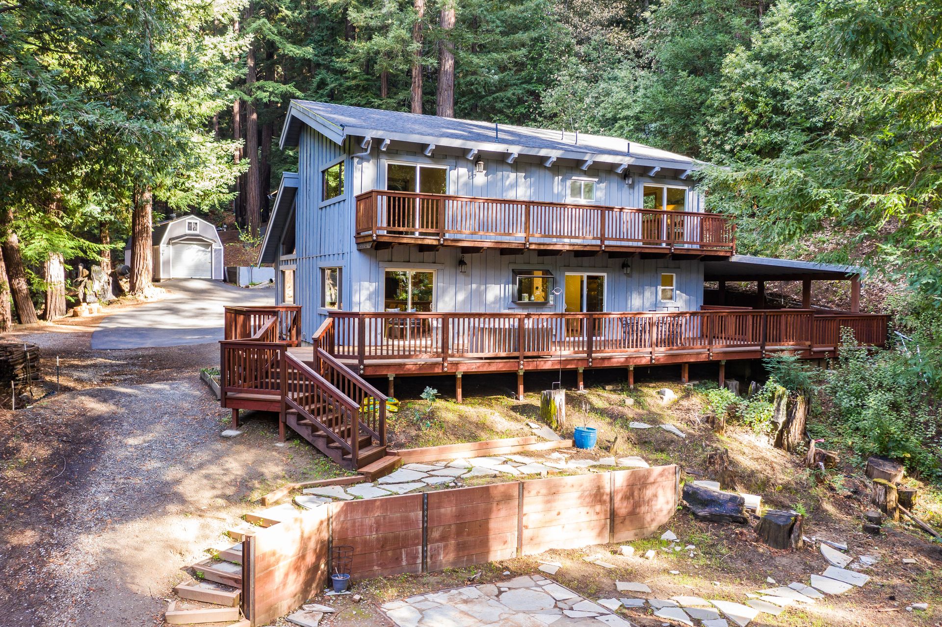 Classic mountain charm and serenity are the hallmarks of this custom home located at the end of a private drive in a highly desirable enclave in the Santa Cruz Mountains. High ceilings, custom millwork, and classic stylings blend for a timeless feel and stunning integration with the outdoor flora and towering Redwood trees. The updated interior features recently remodeled kitchen with custom cabinetry, granite countertops and stainless appliances. Updated baths with gorgeous blend of natural stone finishes combine with hardwood flooring and natural wood design elements throughout. Enjoy the splendor of the forest from two redwood decks or from the numerous outdoor patio areas. Meander down the footpath to your very own custom Yurt, complete with select creature comforts of power and internet. Served by Comcast and top-rated Los Gatos Schools, Loma Prieta, C.T. English and Los Gatos High. Located virtually equidistant between downtown Los Gatos and quaint coastal village of Capitola.