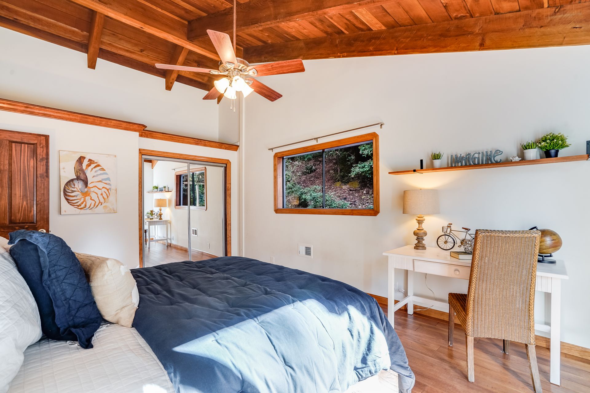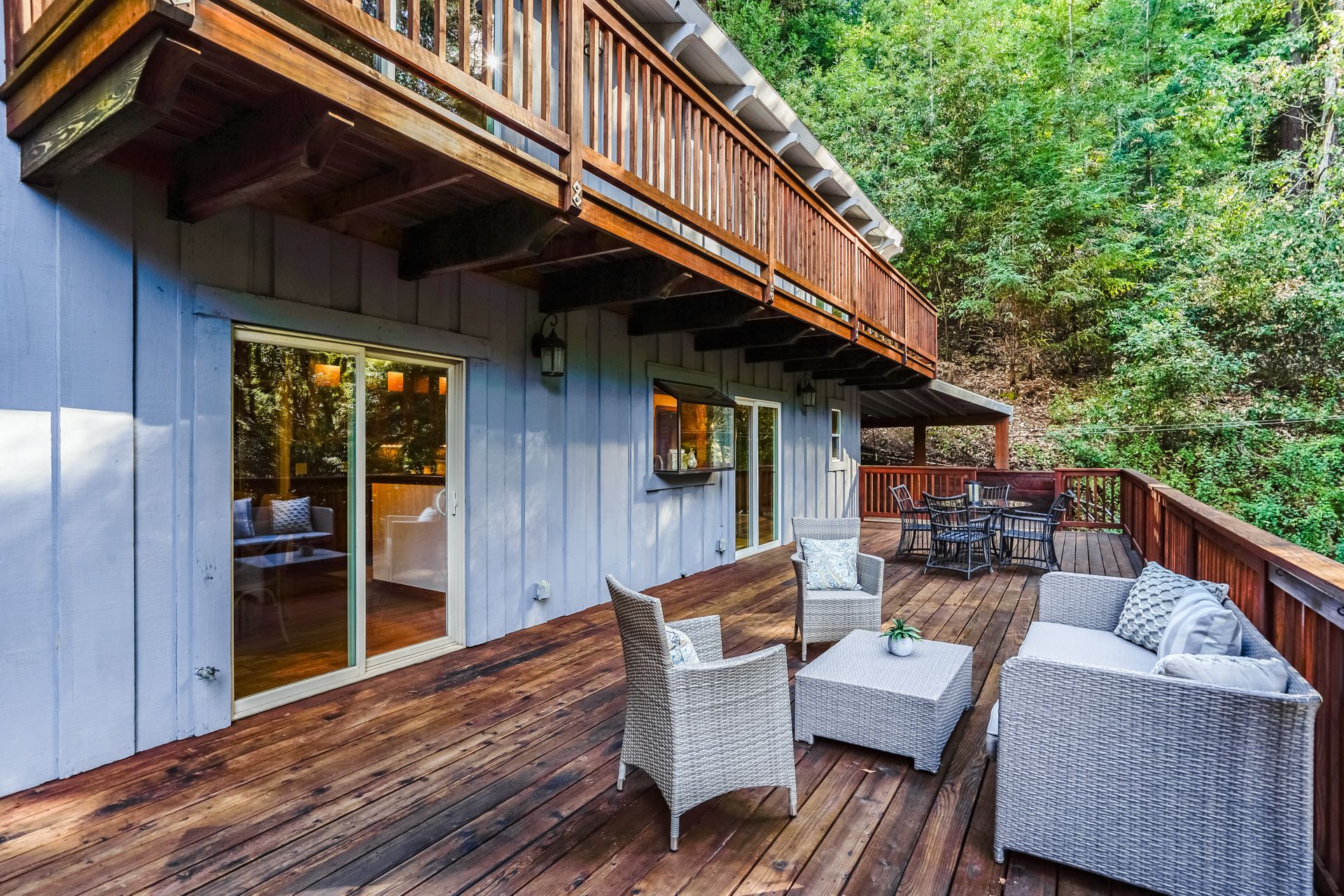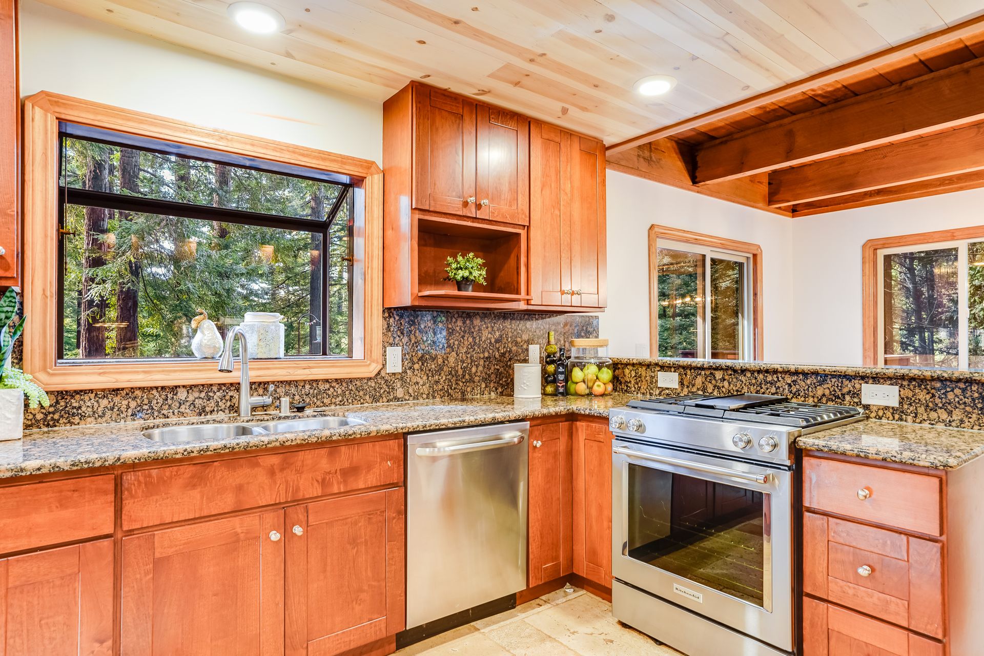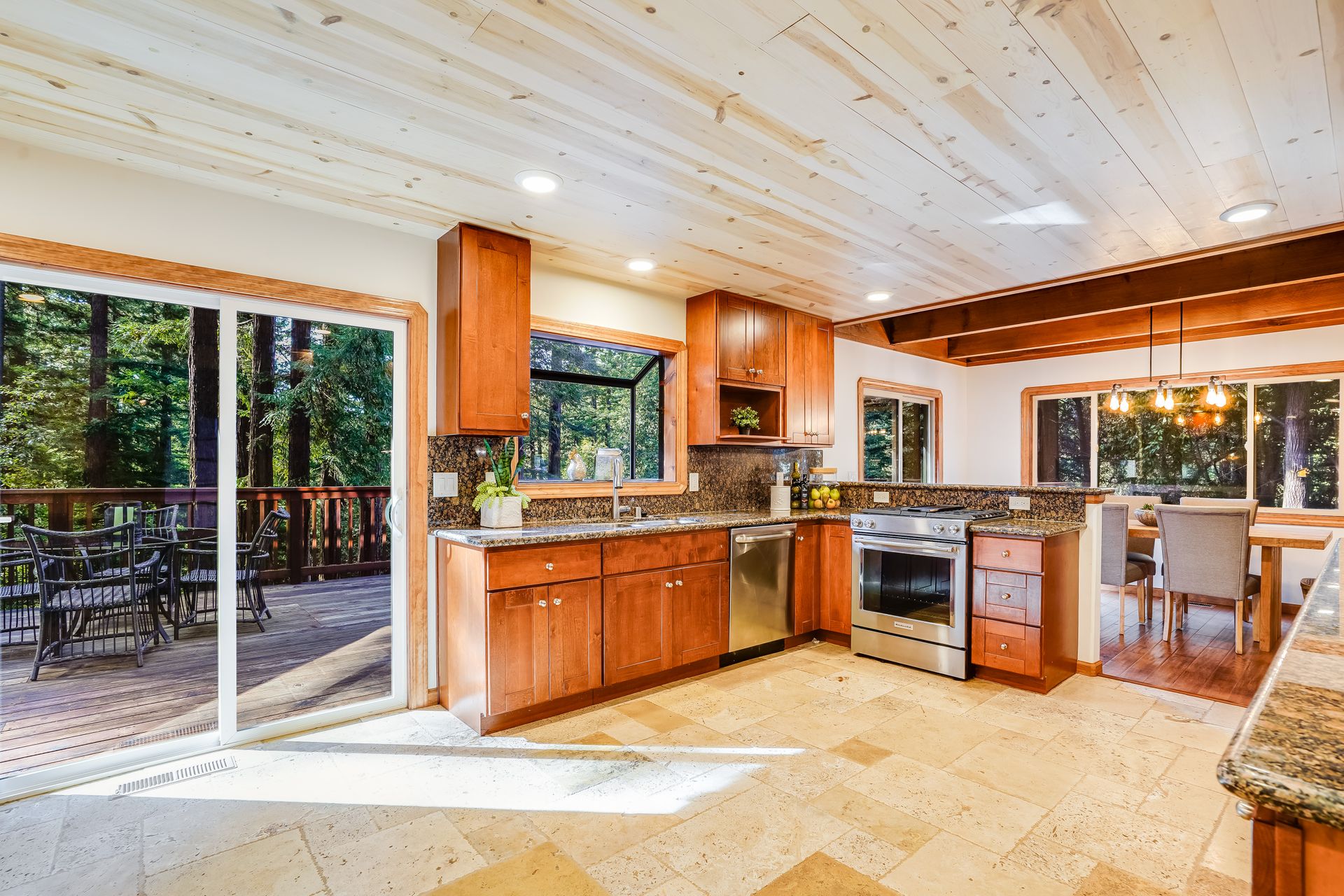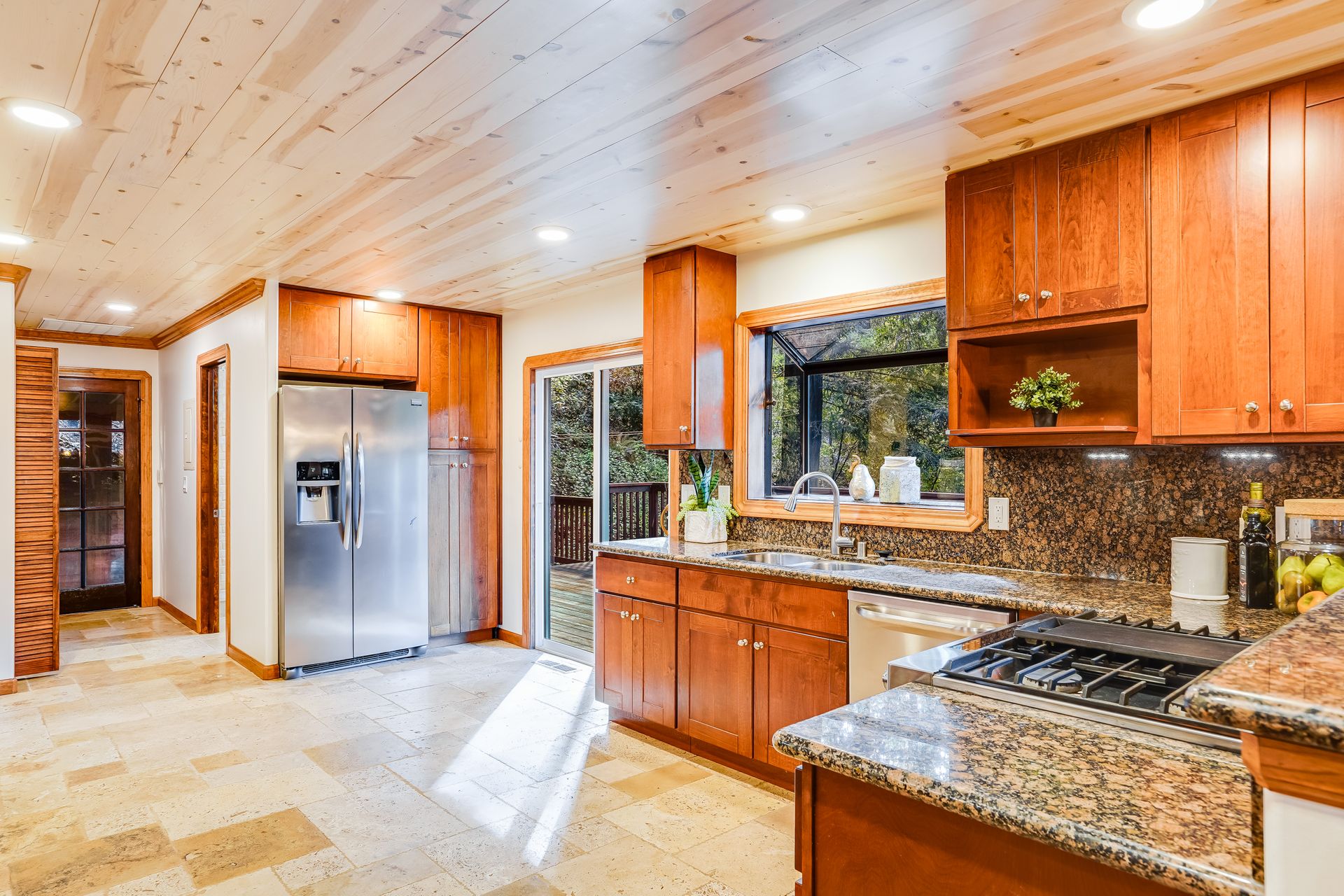 Classic mountain charm and serenity are the hallmarks of this custom home located at the end of a private drive in a highly desirable enclave in the Santa Cruz Mountains. High ceilings, custom millwork, and classic stylings blend for a timeless feel and stunning integration with the outdoor flora and towering Redwood trees. The updated interior features recently remodeled kitchen with custom cabinetry, granite countertops and stainless appliances. Updated baths with gorgeous blend of natural stone finishes combine with hardwood flooring and natural wood design elements throughout. Enjoy the splendor of the forest from two redwood decks or from the numerous outdoor patio areas. Meander down the footpath to your very own custom Yurt, complete with select creature comforts of power and internet. Served by Comcast and top-rated Los Gatos Schools, Loma Prieta, C.T. English and Los Gatos High. Located virtually equidistant between downtown Los Gatos and quaint coastal village of Capitola.
