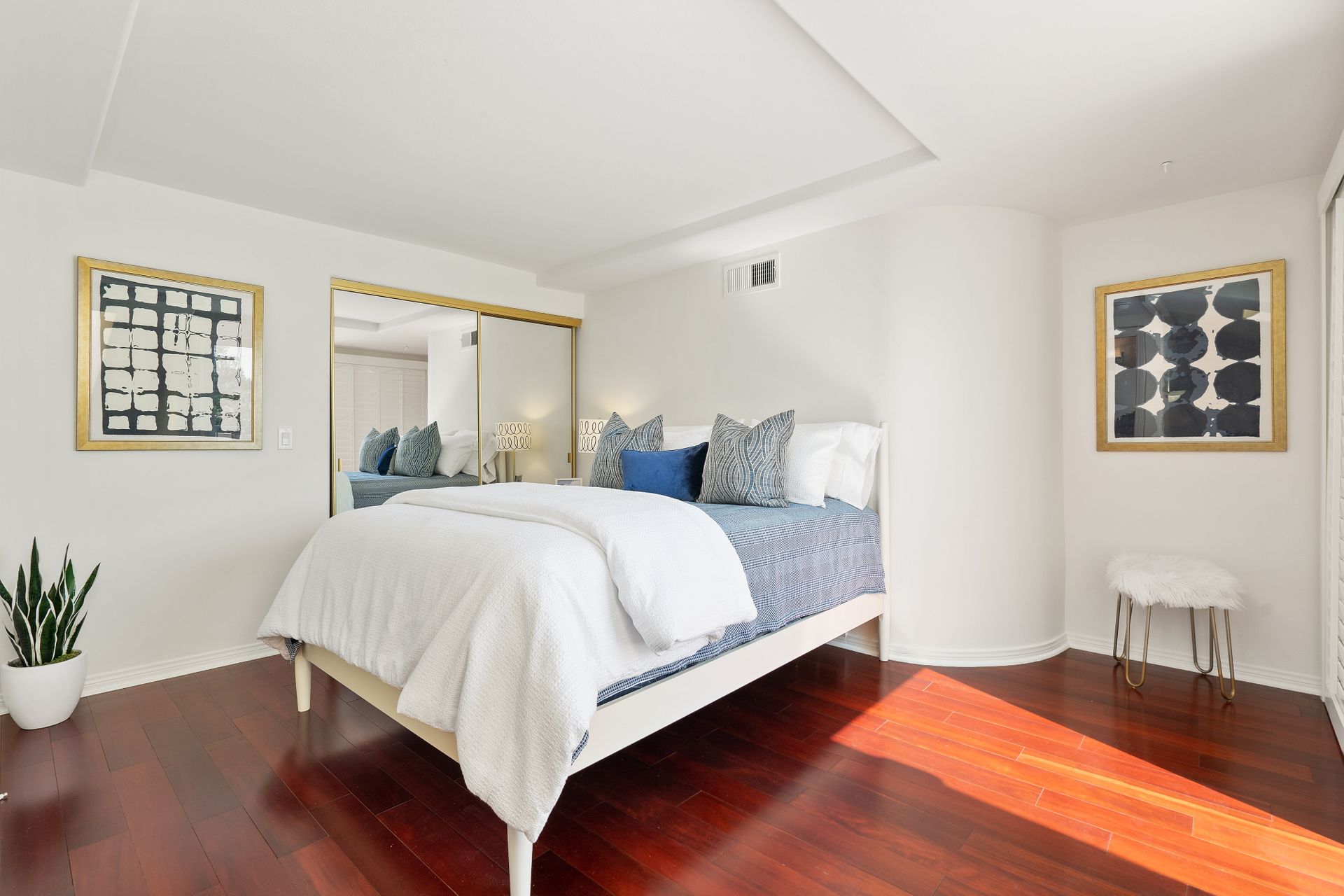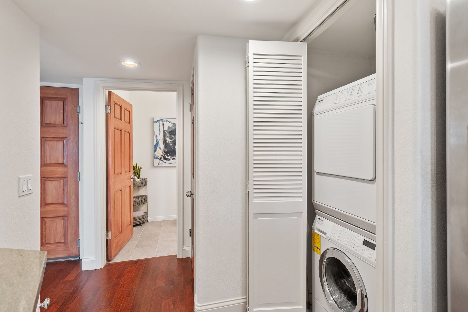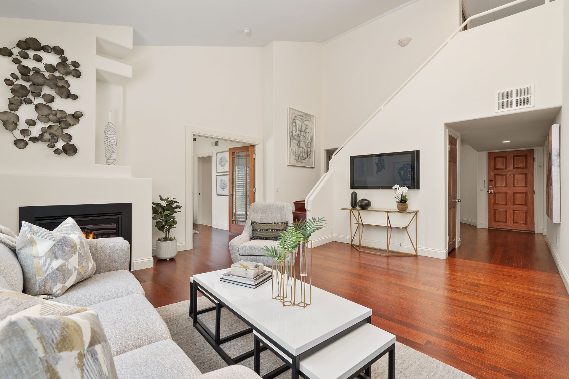 Here is a terrific opportunity to purchase this updated Penthouse located on the quiet side of the building with tree top view. The desirable and flexible floor plan boast 1,435 square feet. The living area has a fireplace and 2 story ceiling. There is a Dining Area that opens to a balcony. The kitchen has granite counter tops, stainless steel appliances, breakfast bar and pantry. There is a den/office. The master bedroom with high ceiling features a fireplace, balcony, storage, walk-in closet with closet organizer system and remodeled bathroom which includes Porcelanosa tiles. The upper level features a loft/2nd bedroom with closet with closet organizer, full bathroom and large private deck. The unit has just been painted. There are hardwood floors, plantation shutters, 2 skylights and new electric receptacles/switches and a lovely remodeled guest bathroom. Included with this property are a Miele washer and dryer located in the unit. Too much to tell! A must see!