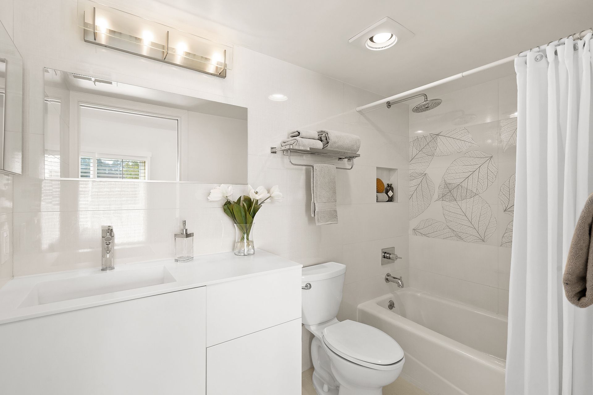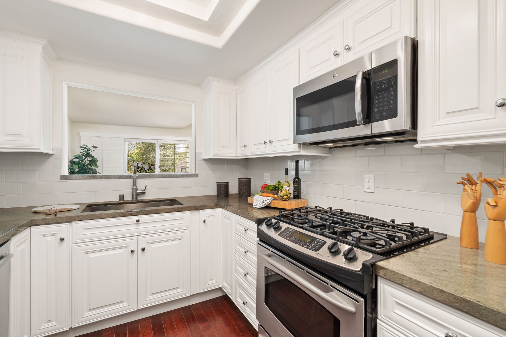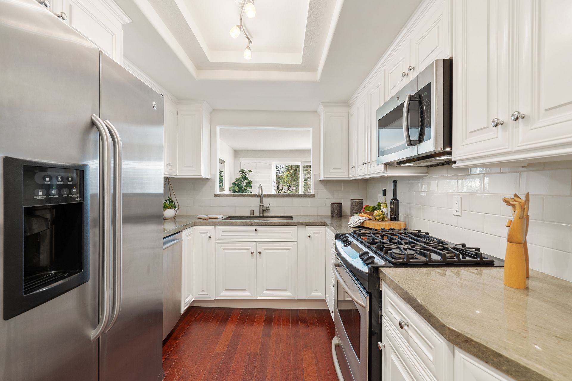 Here is a terrific opportunity to purchase this updated Penthouse located on the quiet side of the building with tree top view. The desirable and flexible floor plan boast 1,435 square feet. The living area has a fireplace and 2 story ceiling. There is a Dining Area that opens to a balcony. The kitchen has granite counter tops, stainless steel appliances, breakfast bar and pantry. There is a den/office. The master bedroom with high ceiling features a fireplace, balcony, storage, walk-in closet with closet organizer system and remodeled bathroom which includes Porcelanosa tiles. The upper level features a loft/2nd bedroom with closet with closet organizer, full bathroom and large private deck. The unit has just been painted. There are hardwood floors, plantation shutters, 2 skylights and new electric receptacles/switches and a lovely remodeled guest bathroom. Included with this property are a Miele washer and dryer located in the unit. Too much to tell! A must see!