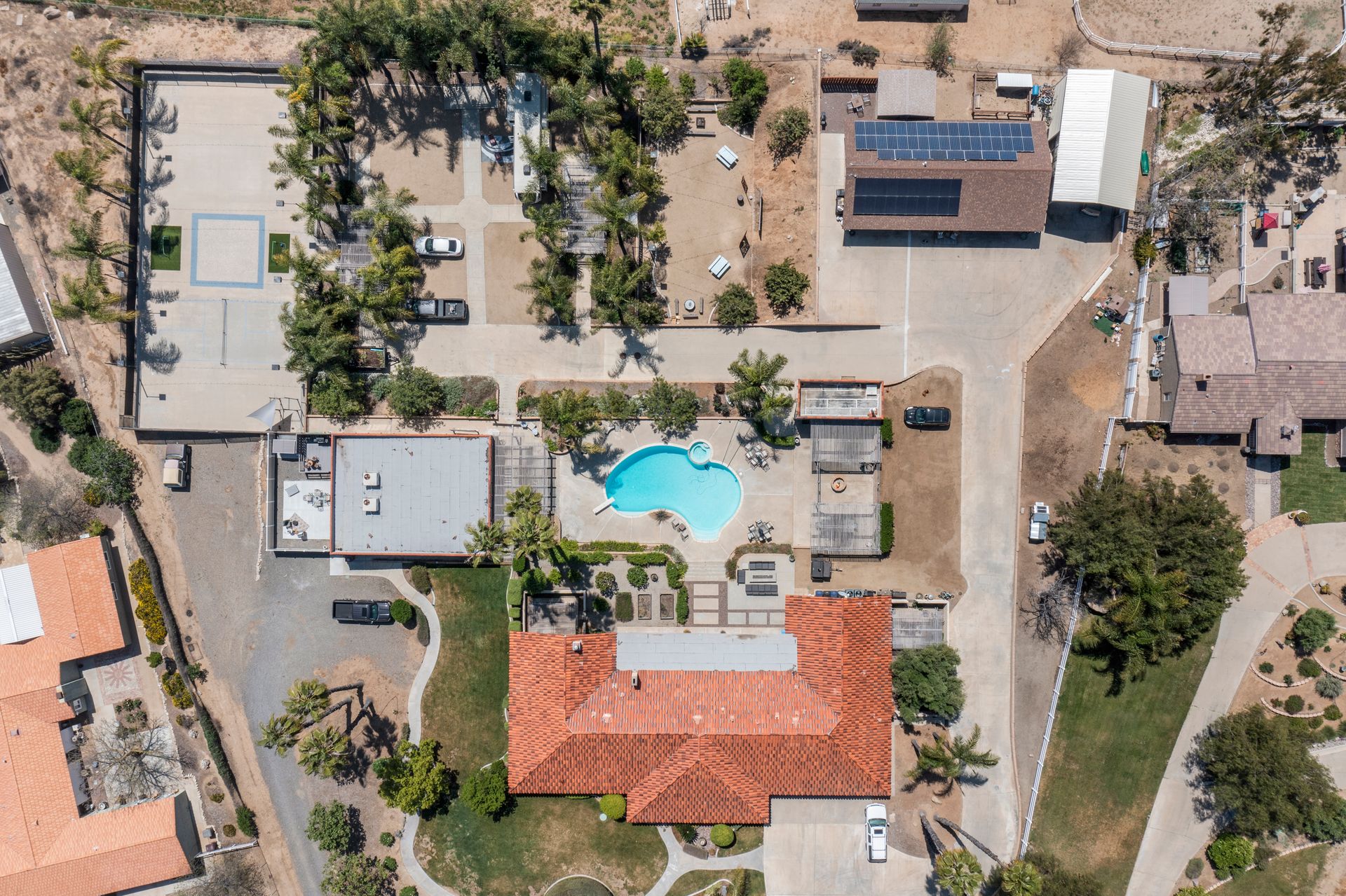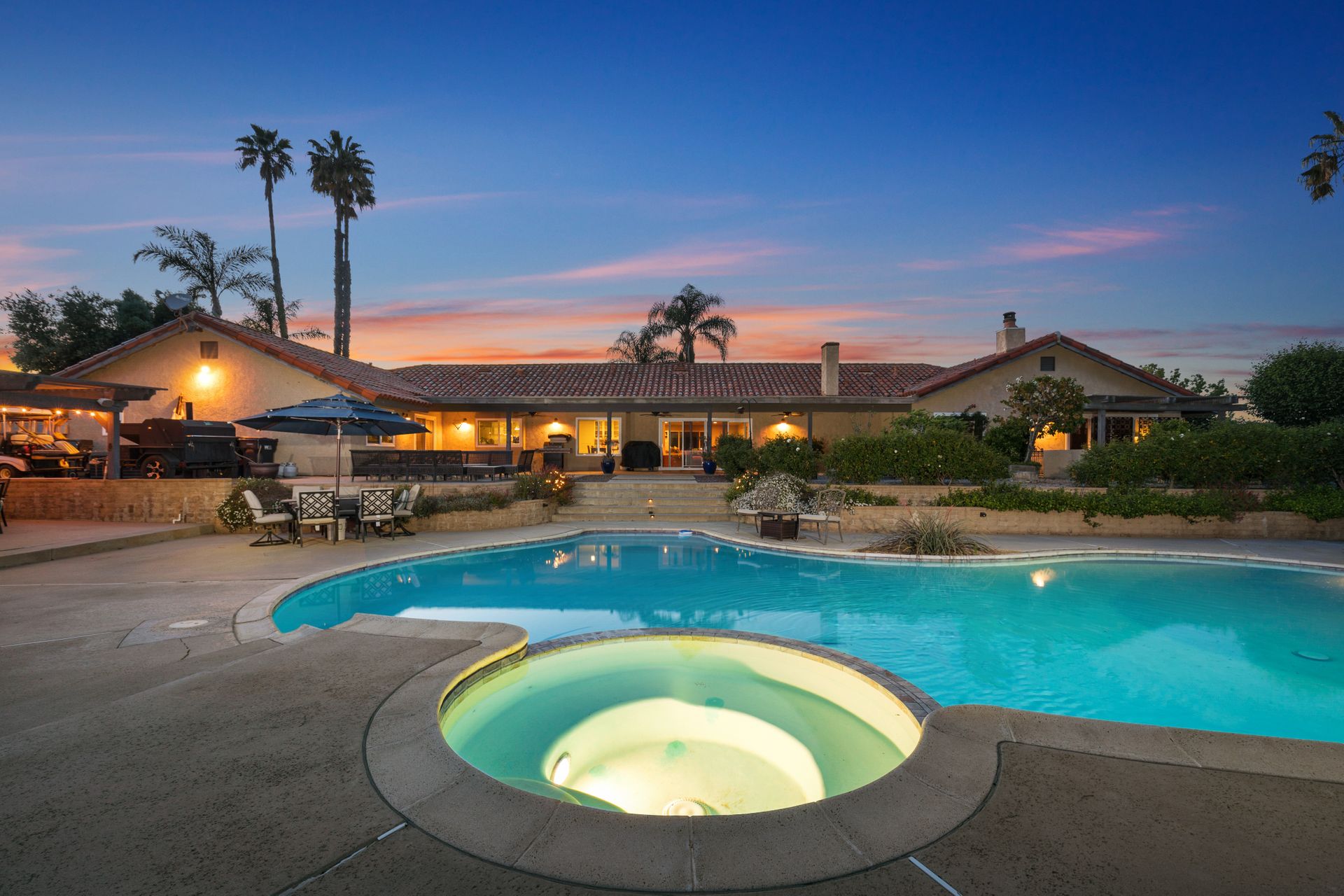 Stone Creek Estate - A rare opportunity to own a multigenerational compound located in the heart of Mockingbird Canyon. This serene, gated oasis sits on nearly three acres and showcases three separate structures, with endless possibilities. The main single-story home has an open floorplan with 4,209 square feet, offering five bedrooms and four bathrooms, which includes an attached one-bedroom, one-bath fully self-contained granny flat with a separate entrance and a small, fenced yard. The current owner completed an extensive remodel when they purchased the property. All of the bathrooms were updated, as well as the kitchen, which includes industrial-grade appliances, soft close cabinets, and marble and soapstone counters. Other interior features include concrete flooring, updated windows throughout, crown molding, and beamed ceilings. There are 62 leased solar panels to help offset the utility bill. The property has accommodated 200 guests and 75 cars at past events, with numerous outdoor entertaining locations. Other exterior amenities include a sparkling pool and spa, tennis court (could be used for pickleball or a sports court), covered RV parking, 50 amp hookups, multiple covered patios and lanais, outdoor restrooms, a raised bed garden, and small orchard as well as a fully fenced yard. The property is zoned for horses, and there is plenty of space to add a barn. Why go on vacation when you can own a resort-like property? The amenities that this property offers are virtually impossible to duplicate.