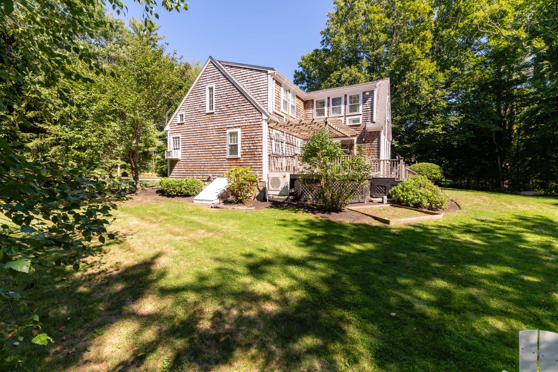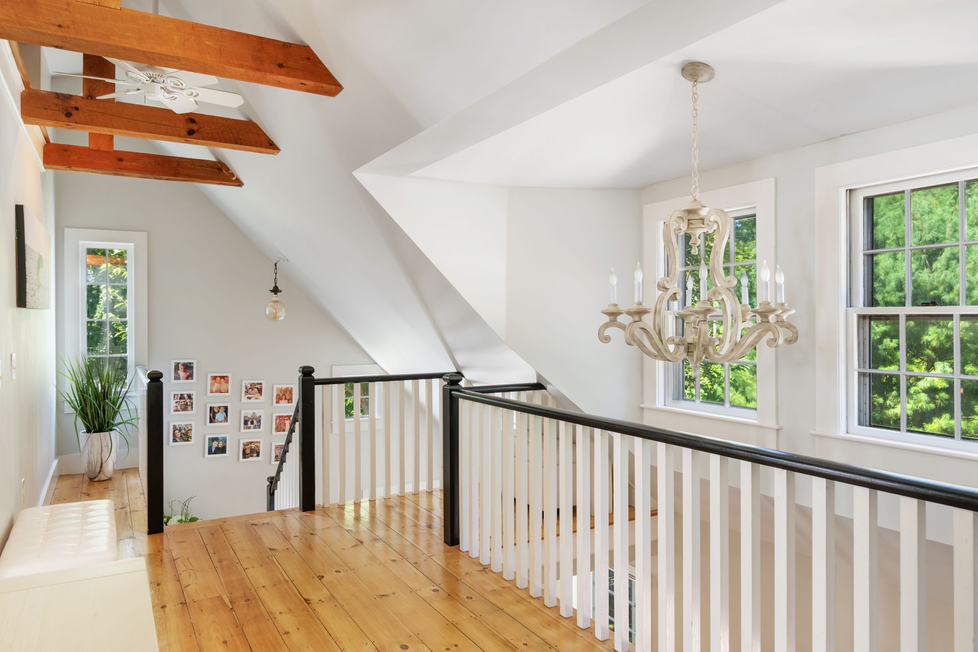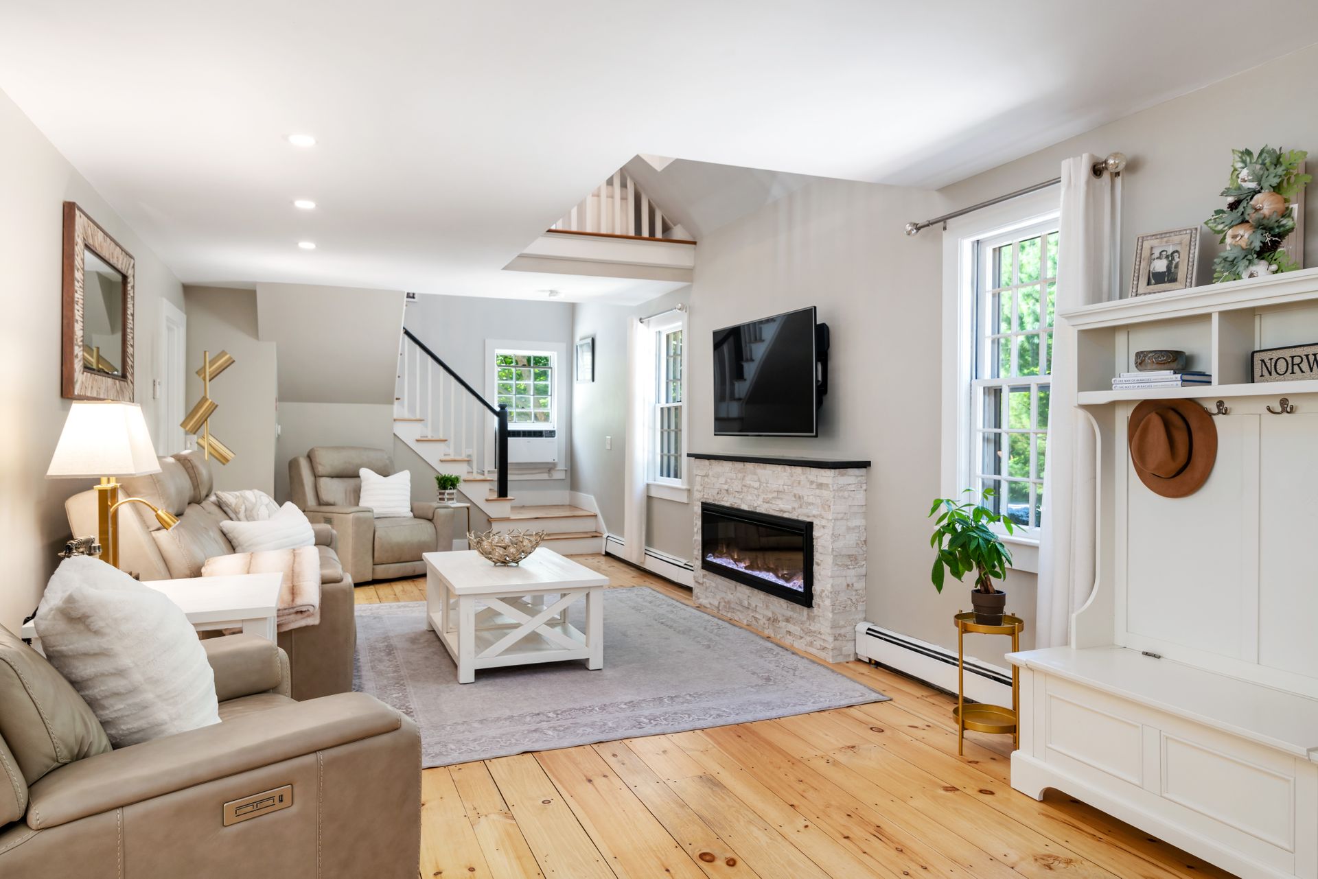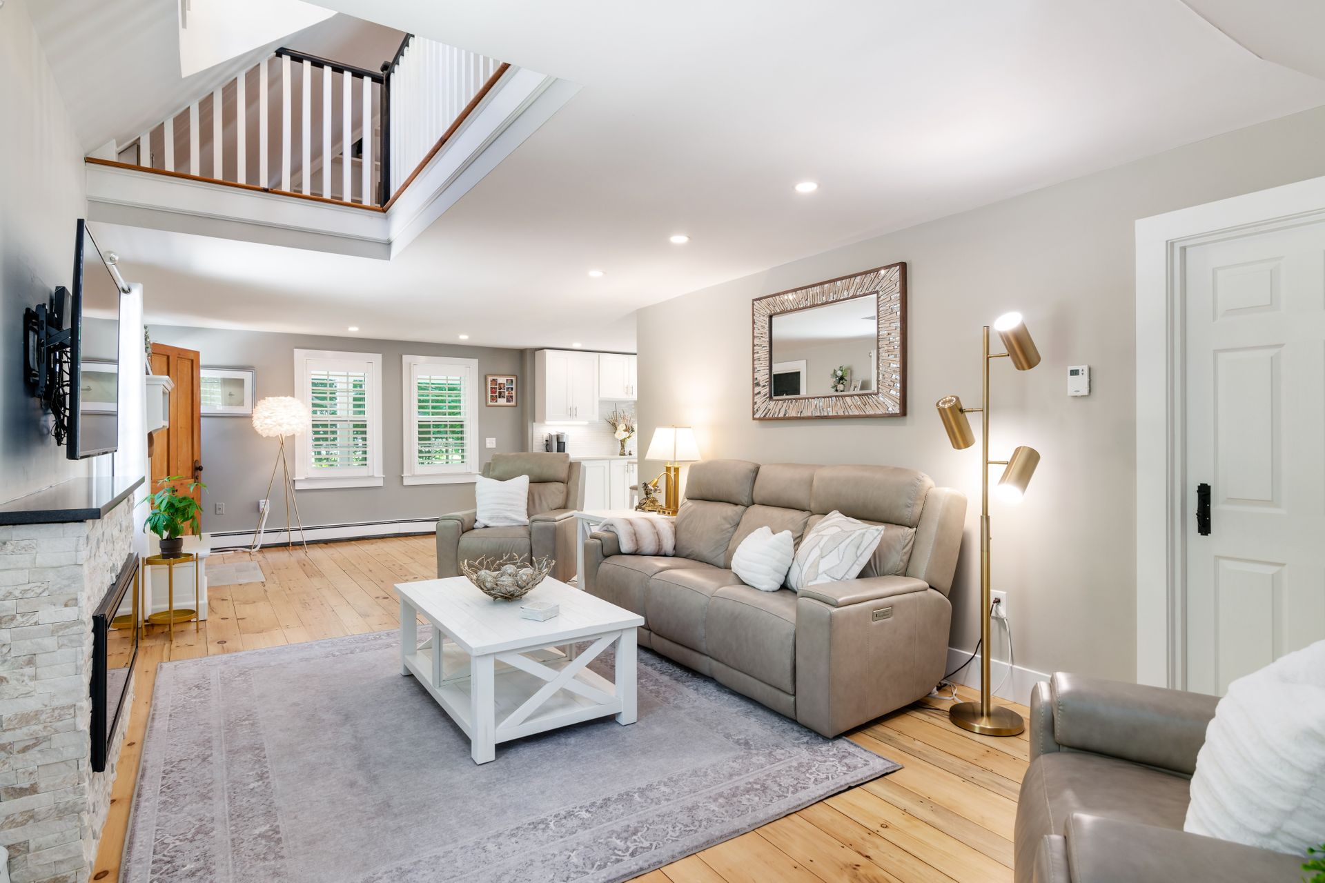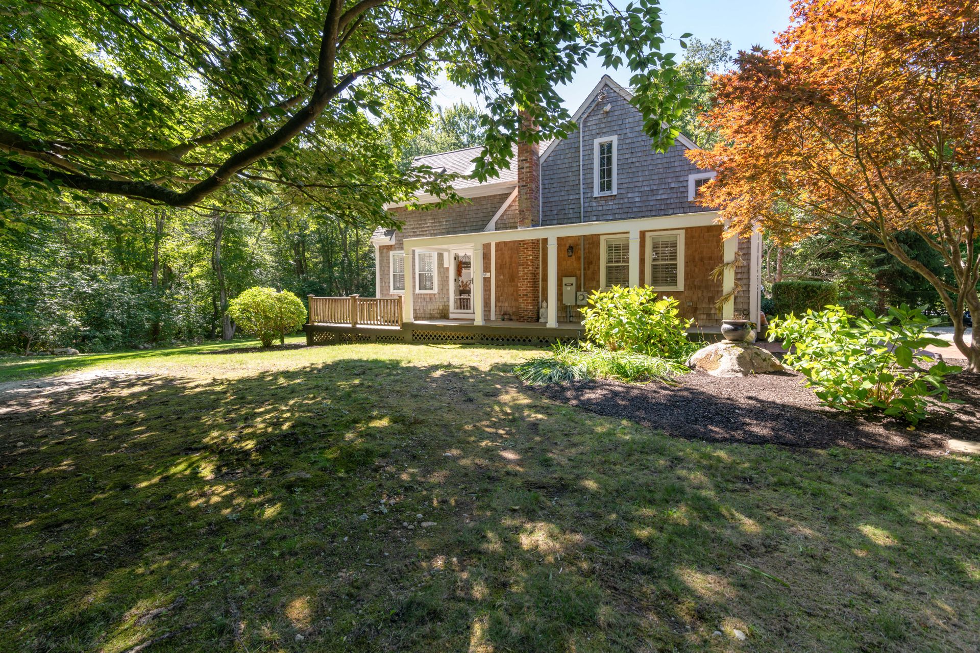 This gorgeous home features so many modern updates, you're going to fall in love the minute you walk through the door. Charming architectural features abound, including custom built-ins, wide plank pine floors, exposed wood beams, vaulted ceilings, skylights and a statement chandelier. The open and airy main living area is perfectly appointed for entertaining family and friends. Outside, the wraparound side and rear deck lead to manicured grounds abutting conservation land, making the lot extremely private. With a gas fireplace to keep you cozy and a 22kw whole house generator to add peace of mind, this special home is just waiting for you to move in and enjoy!