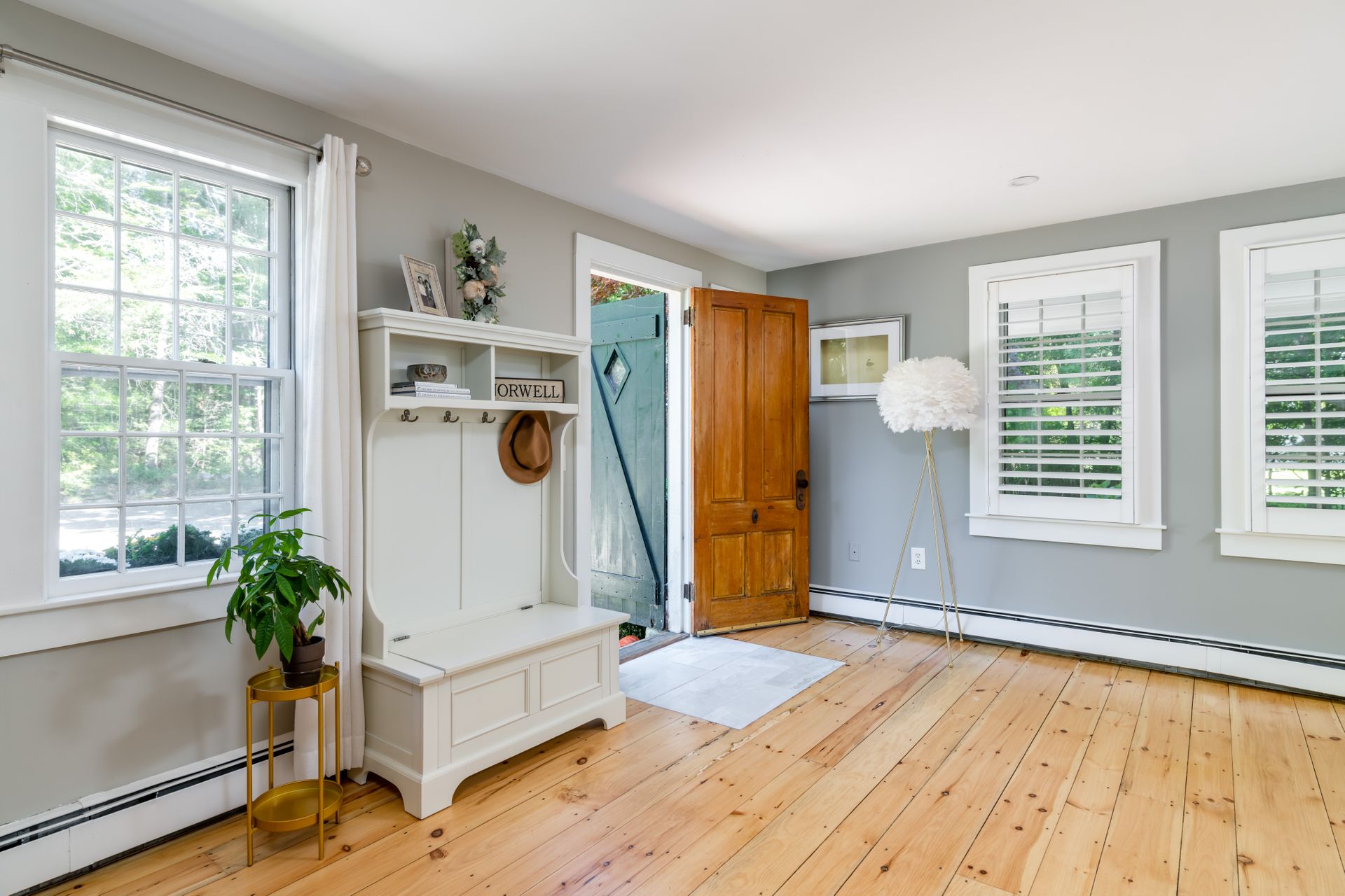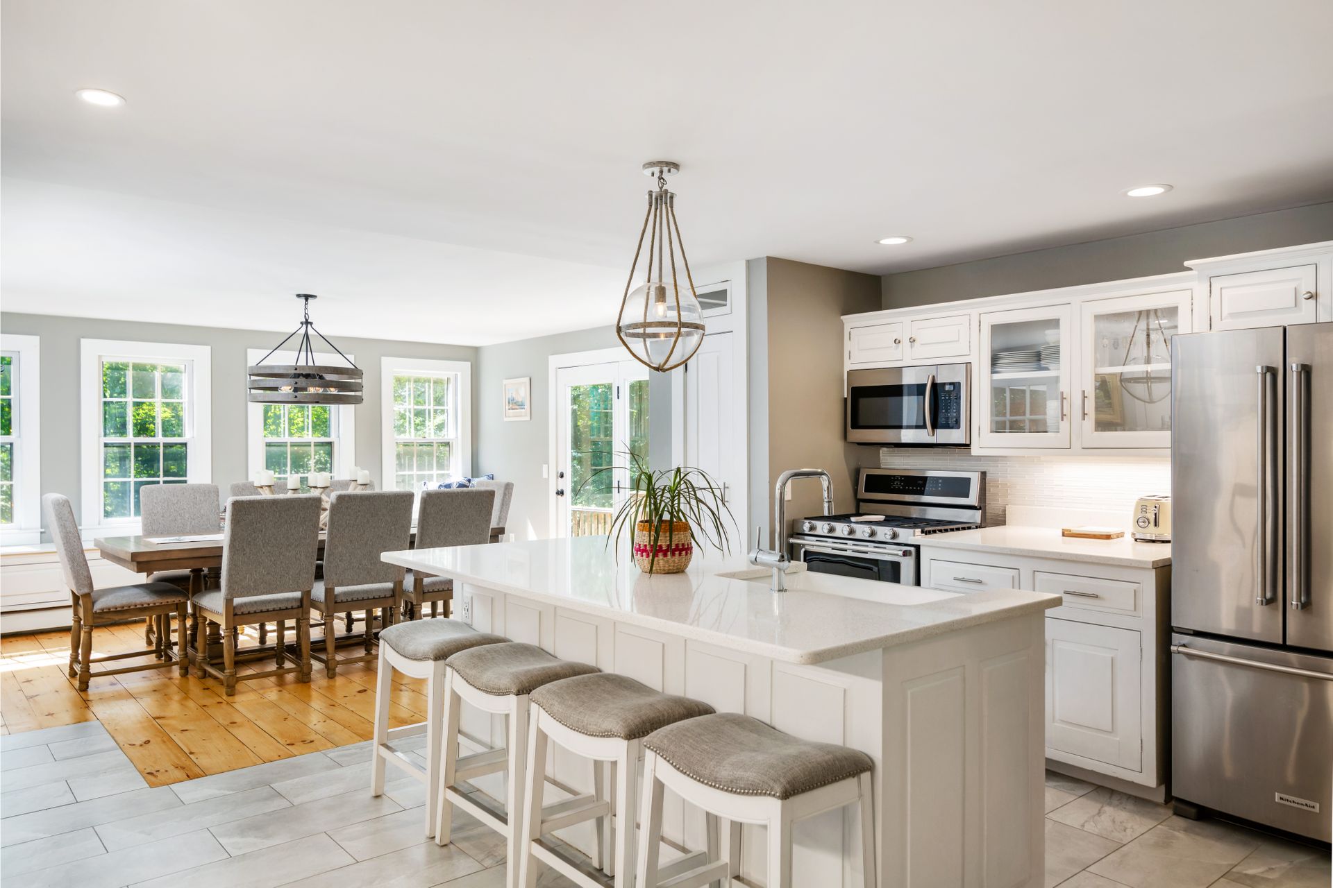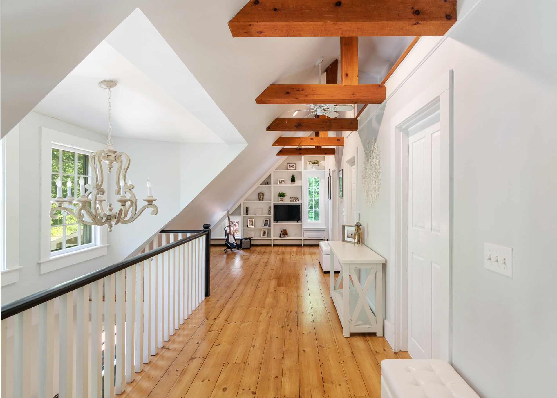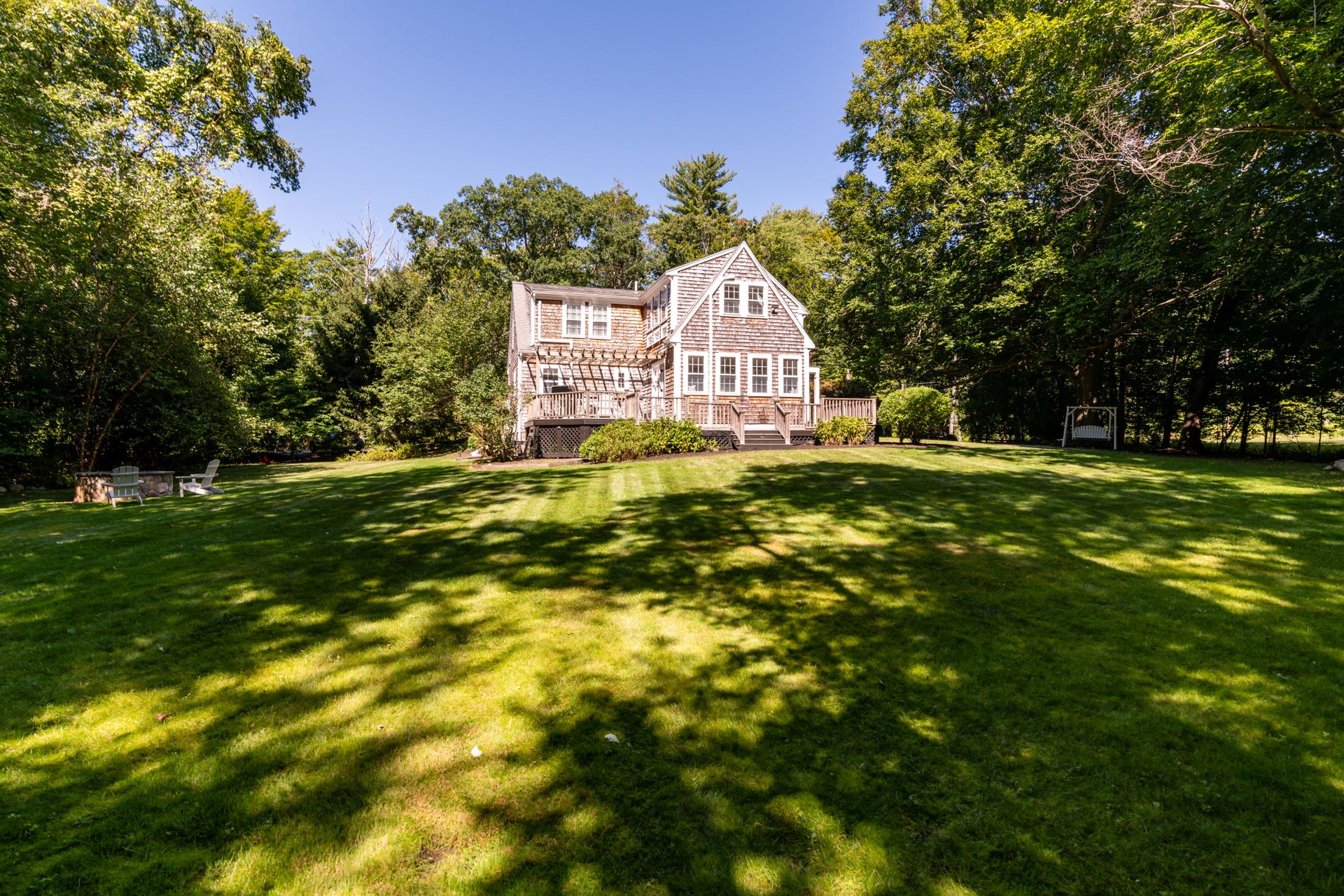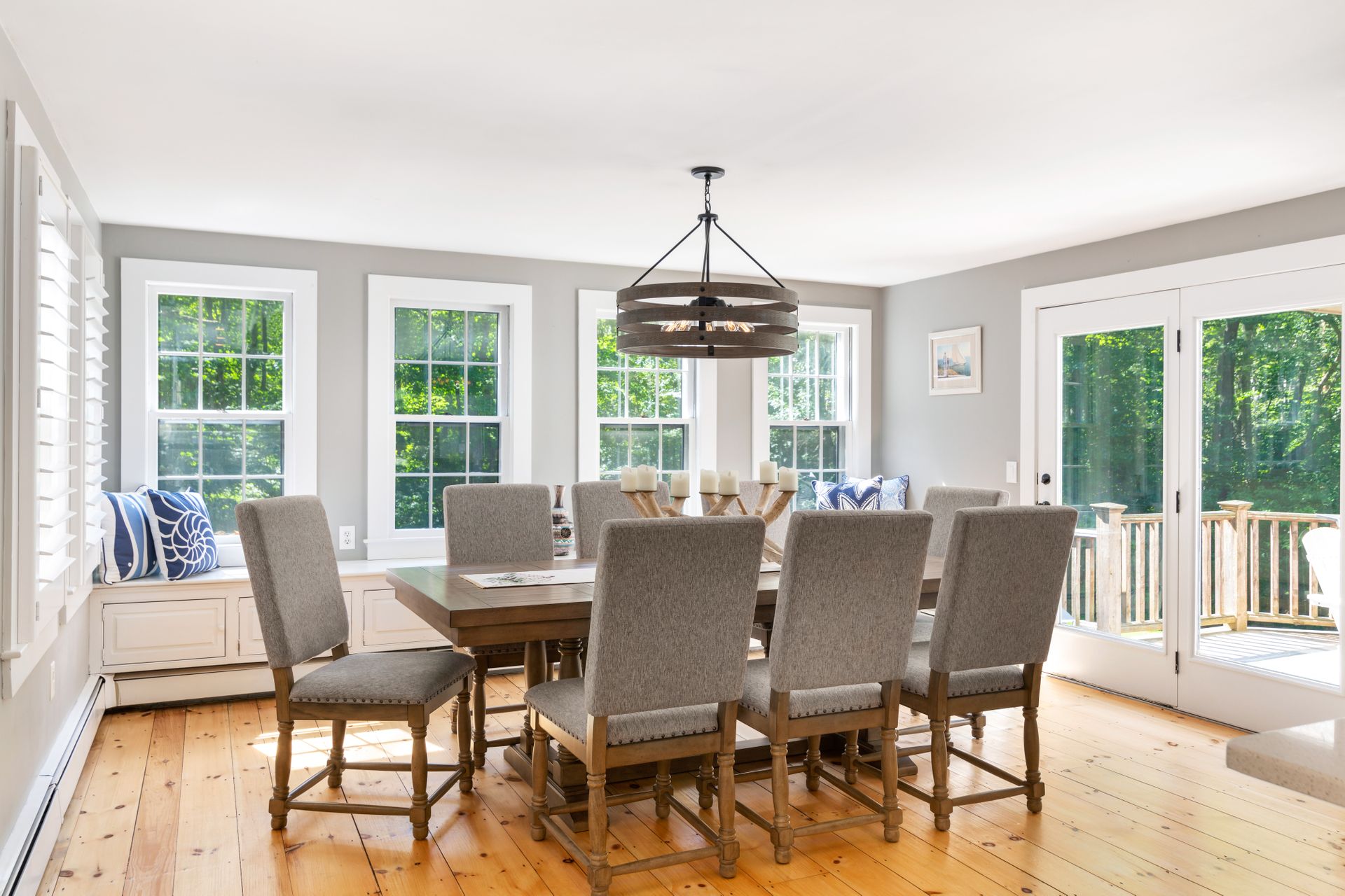 This gorgeous home features so many modern updates, you're going to fall in love the minute you walk through the door. Charming architectural features abound, including custom built-ins, wide plank pine floors, exposed wood beams, vaulted ceilings, skylights and a statement chandelier. The open and airy main living area is perfectly appointed for entertaining family and friends. Outside, the wraparound side and rear deck lead to manicured grounds abutting conservation land, making the lot extremely private. With a gas fireplace to keep you cozy and a 22kw whole house generator to add peace of mind, this special home is just waiting for you to move in and enjoy!
