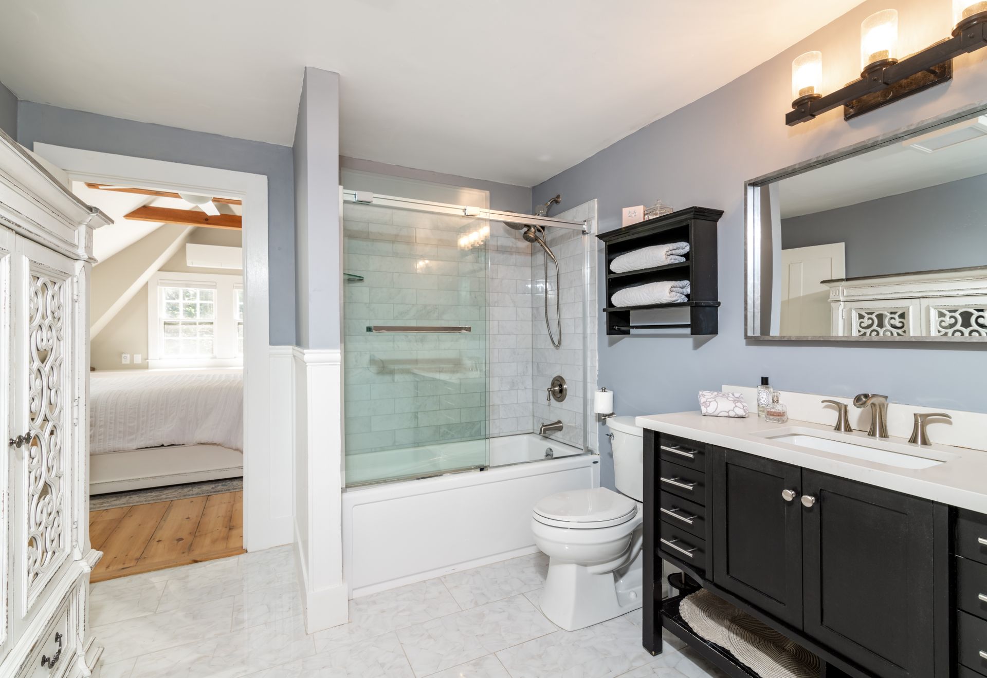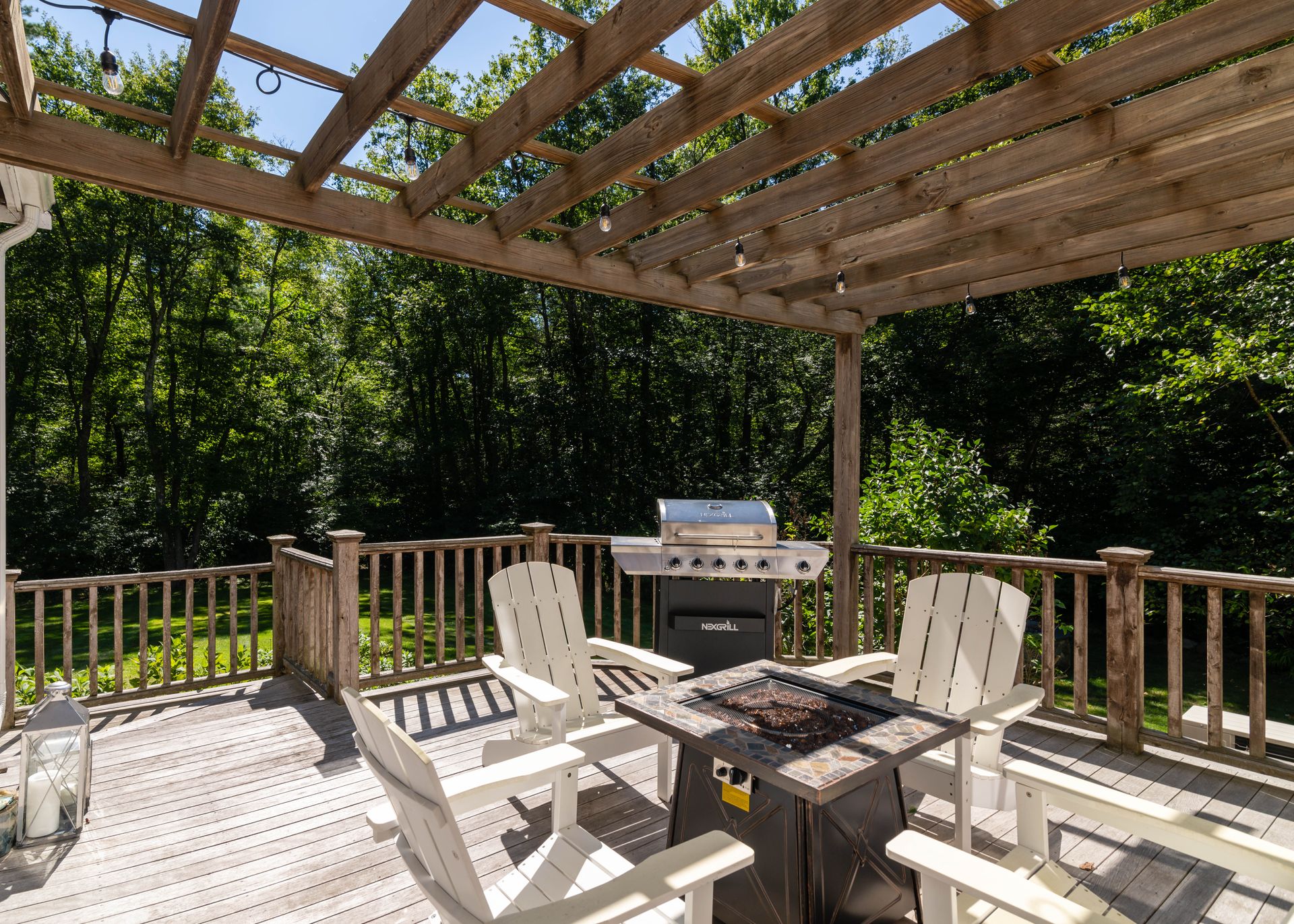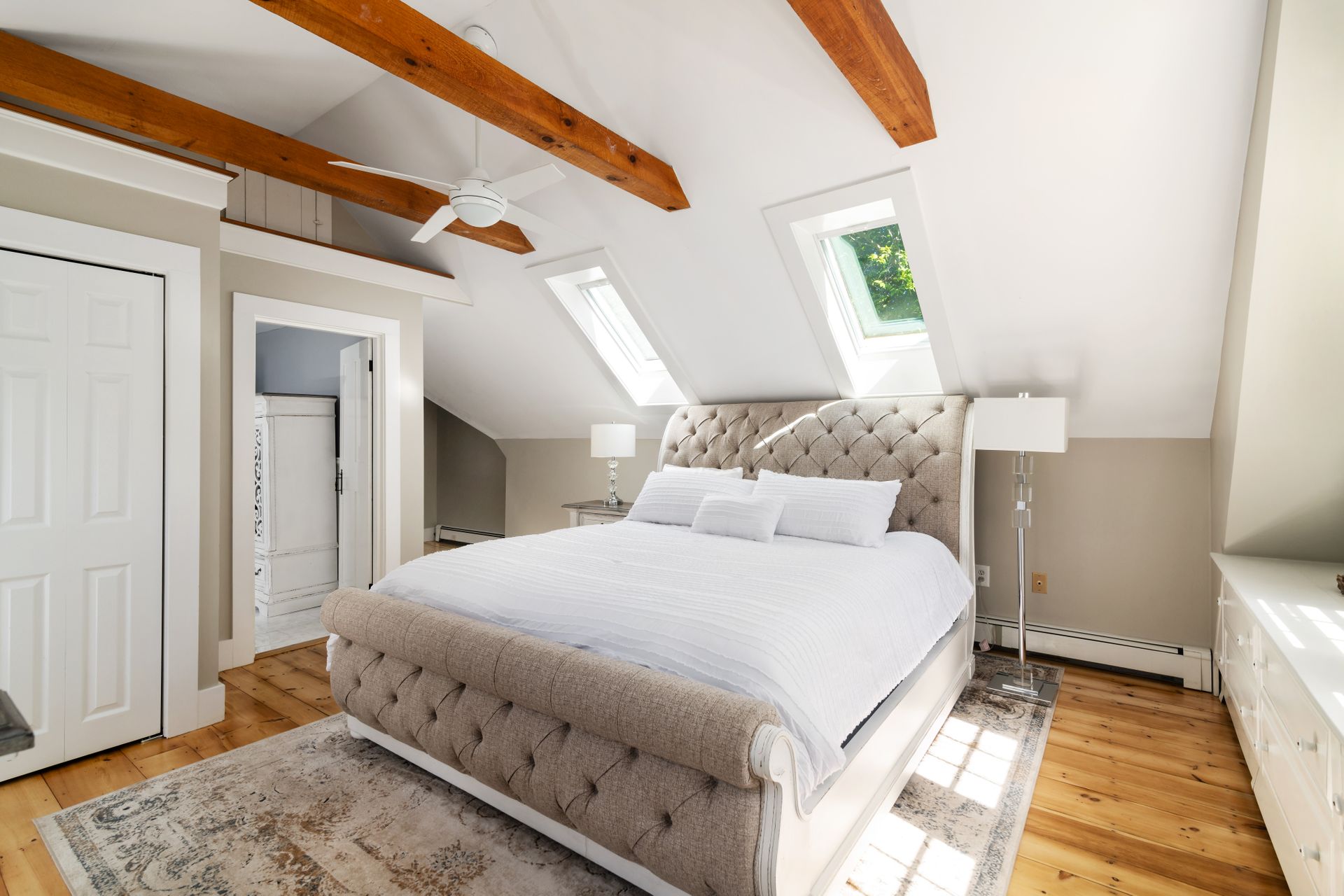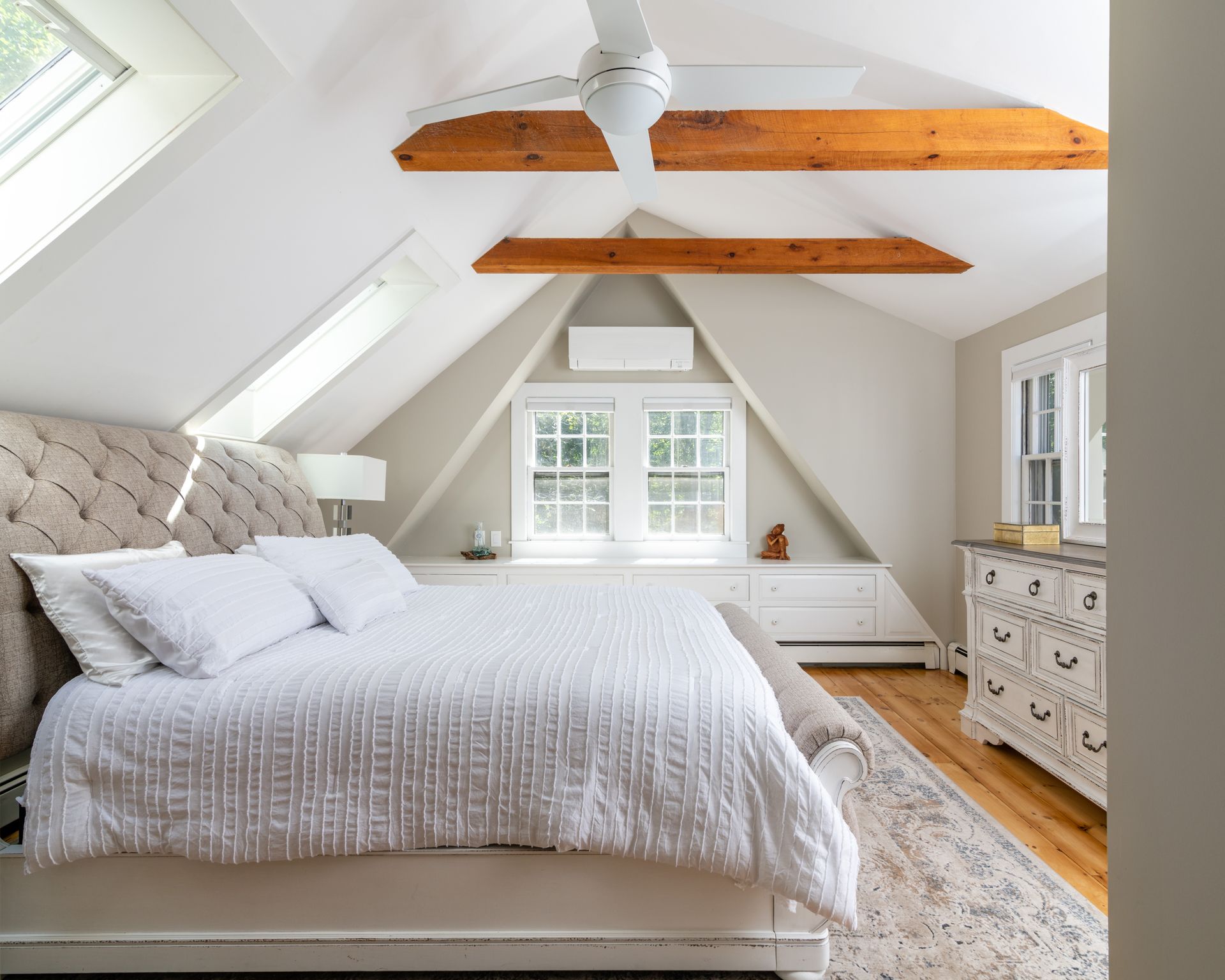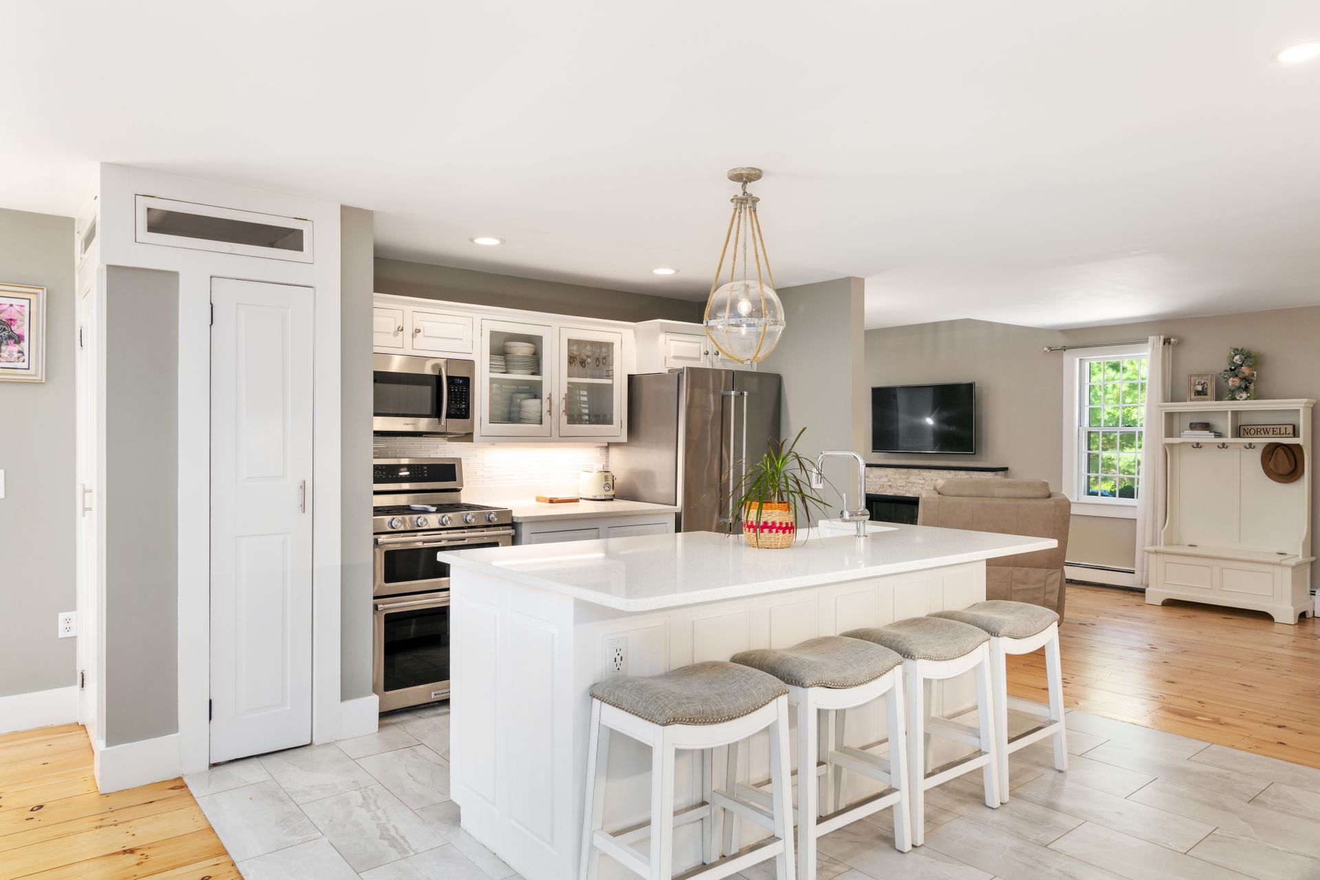 This gorgeous home features so many modern updates, you're going to fall in love the minute you walk through the door. Charming architectural features abound, including custom built-ins, wide plank pine floors, exposed wood beams, vaulted ceilings, skylights and a statement chandelier. The open and airy main living area is perfectly appointed for entertaining family and friends. Outside, the wraparound side and rear deck lead to manicured grounds abutting conservation land, making the lot extremely private. With a gas fireplace to keep you cozy and a 22kw whole house generator to add peace of mind, this special home is just waiting for you to move in and enjoy!
