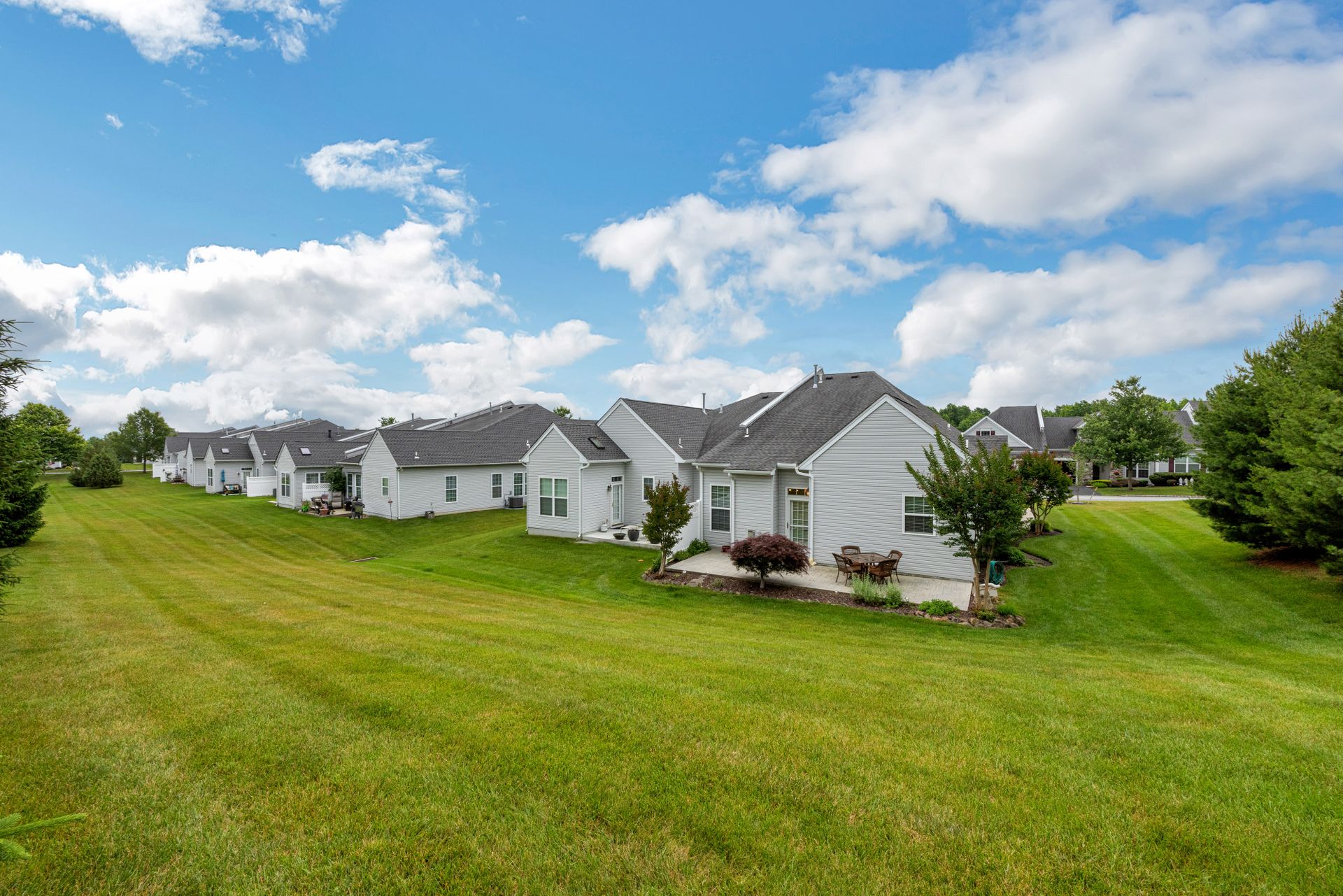 Welcome home to 1612 Boxwood Rd, a wonderful expansive end-unit home in the 55+ Foxfield Community. Highlights of the home include a large patio in a private setting, hardwood floors, incredible natural light, an open plan and beautiful condition. This impeccably maintained home is the largest carriage house plan, with three bedrooms, two full baths and a large storage room. Pull into the attached garage and enter directly into the home or take the walkway past the beautiful plantings including crepe myrtle trees and come through the front door into the entry hall. Straight ahead is a spacious formal dining room which lies adjacent to the kitchen. The kitchen features lovely white cabinetry, hardwood floors, granite counters, ample storage and island seating. Behind the kitchen is the laundry room and access to the garage. The kitchen is open to the family room with a large seating area, gas fireplace and French door to the beautiful patio. The primary suite is on the main level with a large bedroom, walk-in closet and private en-suite full bathroom with a dual vanity. To the front of the home is an open living room with windows overlooking the green space. To the right of the entryway is a full hall bath, a large bedroom/office and stairs to the second level. Upstairs is a sizeable unfinished storage room, a walk-in closet and the third bedroom. This wonderful home in a private setting is situated in the Foxfield Community offering an array of amenities. Foxfield is an active 55+ community with a clubhouse, two pools, tennis and pickleball courts, a library, health club, billiard room, shuffleboard, a large room for social gatherings and a short par 3 golf course. The very convenient location is in close proximity to I-95 and 322 and only minutes from tax-free DE shopping.